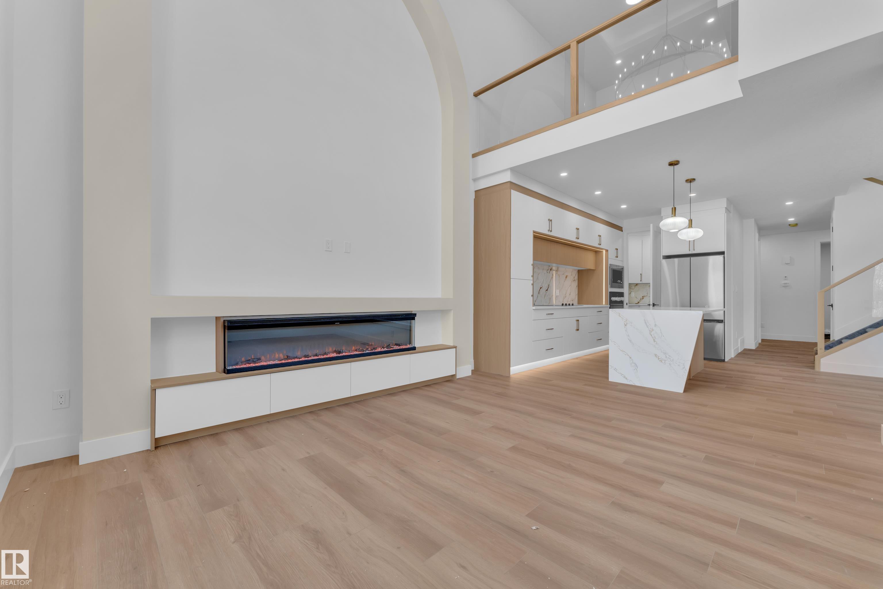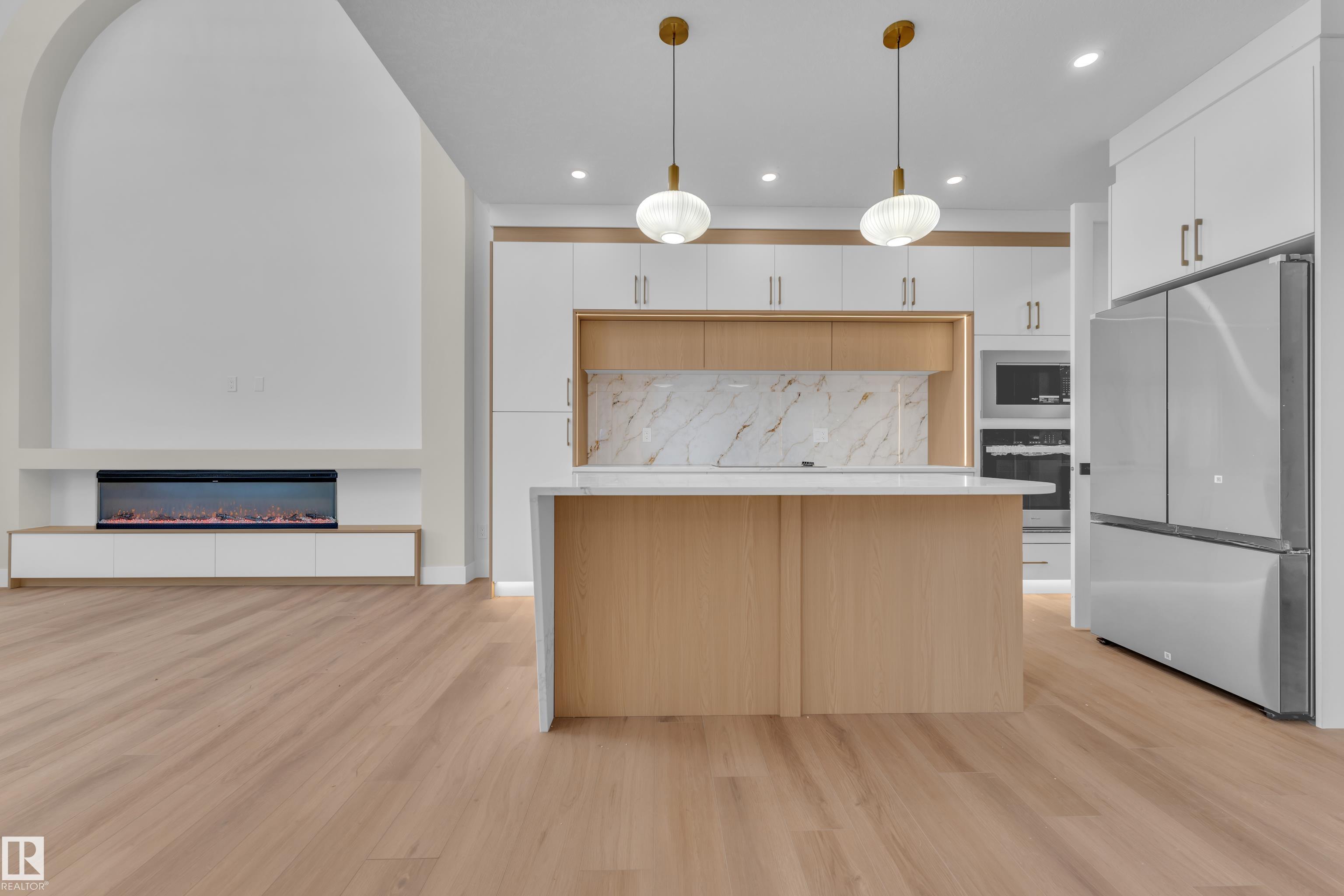 Stunning custom-built home located in the sought-after community of Alces. This beautiful 2 storey home features an open-concept layout with modern finishings throughout. The main floor offers a FULL BED/DEN and a 3 PC bathroom, along with an elegantly finished MODULAR KITCHEN with APPLIANCES , a separate SPICE KITCHEN, and an EXTENDED KITCHEN in the dining area. The OPEN TO BELOW living area features a stunning arc-designed feature wall with a 3-sided fireplace, complemented by large windows that bring in abundant natural sunlight. The second floor features a spacious Master bedroom with a Vaulted Ceiling, feature wall with ambient lighting and a 5PC Ensuite. 2 additional Bedrooms share a common 3-PC bathroom. A conveniently located upstairs Laundry Room and a Bonus Room provide the perfect space for family living and entertainment. The Basement includes 9-ft ceilings, two windows, and a Separate Entrance, offering excellent future development potential. All WINDOW BLINDS are included.