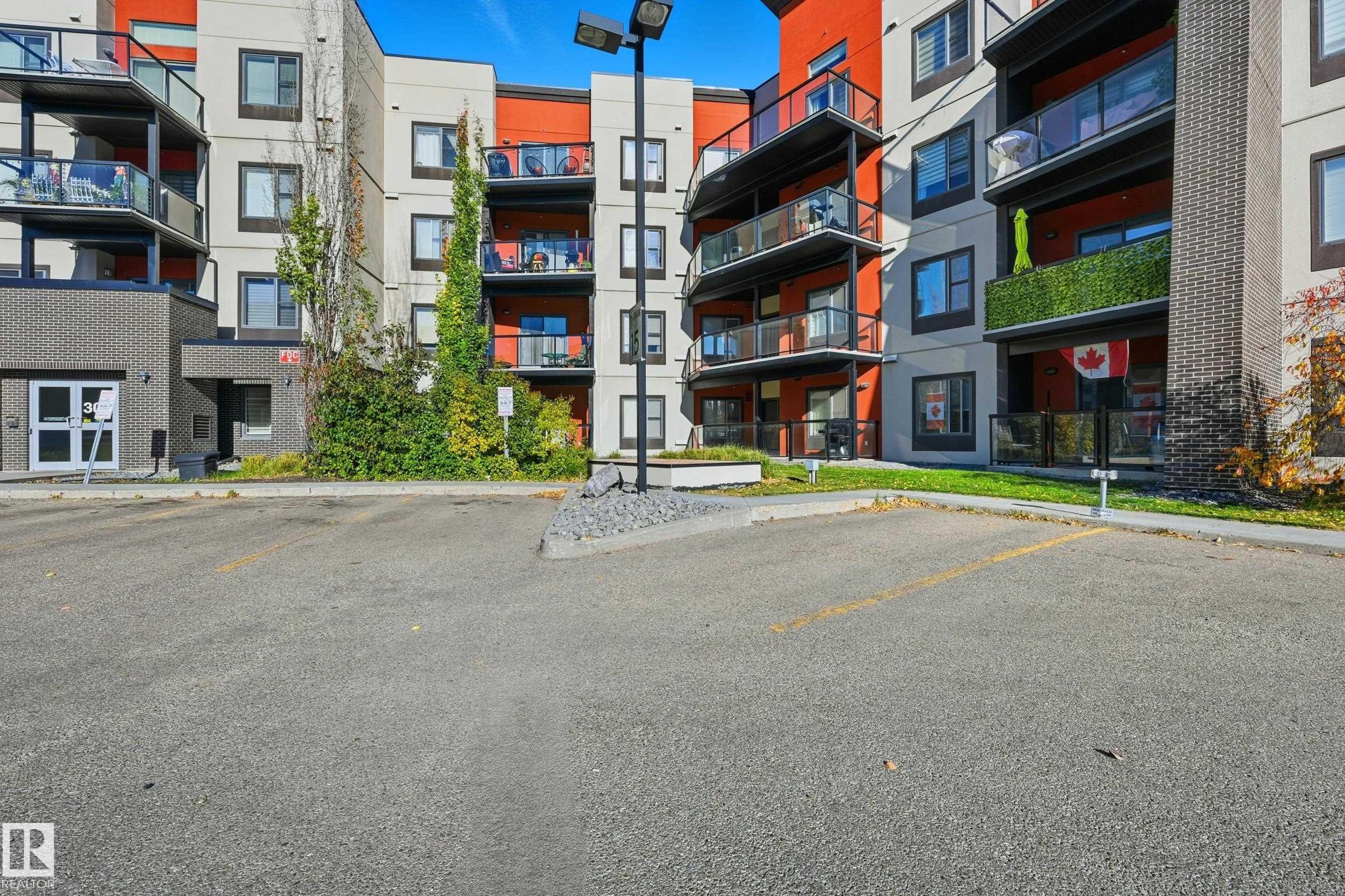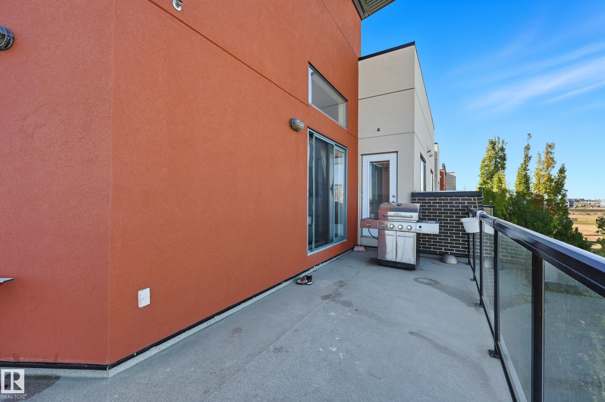 Executive Top Floor Corner Unit with 3 Bedrooms, and 2 Parking Stalls. Welcome to L'Attitude Studios where modern design meets executive living! This rare top-floor corner unit offers an Open Concept layout with Soaring 17 Foot ceilings in the living room, with floor to ceiling windows that flood the space with natural light. This home is loaded with upgrades including high-end flooring, quartz countertops in the kitchen, and bathrooms. The chef's kitchen is an entertainer's dream with a massive peninsula island, rich espresso cabinetry, and stainless steel appliances. The Master suite includes a walk-through closet leading to your Full Bathroom Ensuite. Two more large bedrooms. With access to the deck from all 3 Bedrooms. Stepping out onto the 292 SQFT Wrap Around Balcony with a gorgeous view overlooking the Windermere shopping plaza, perfect for relaxing or entertaining. Underground Parking with a Storage Cage. This is truly one of a kind, a stylish unit offering comfort, convenience, and luxury living.