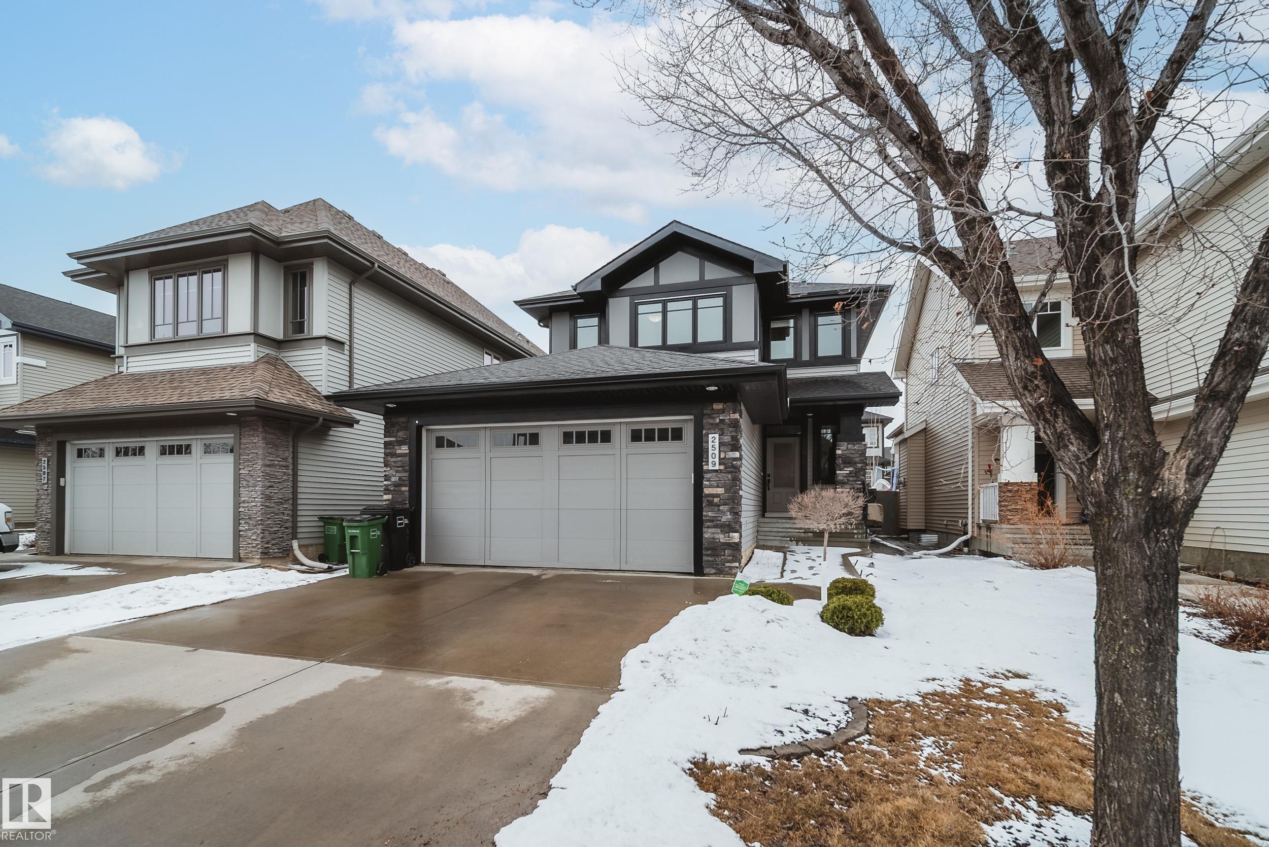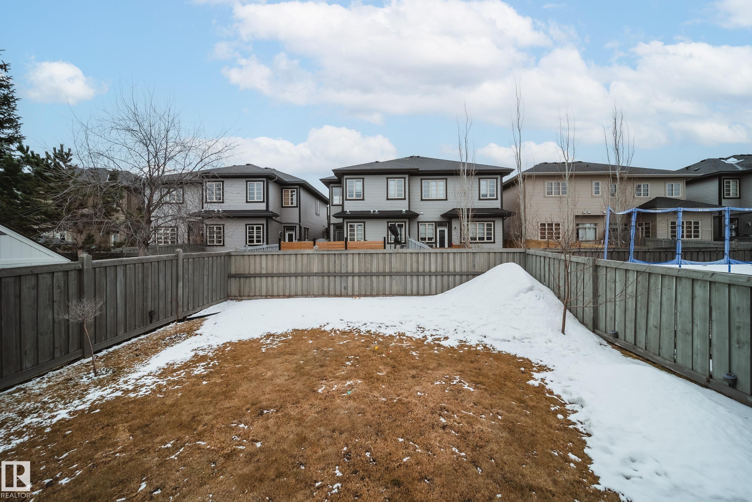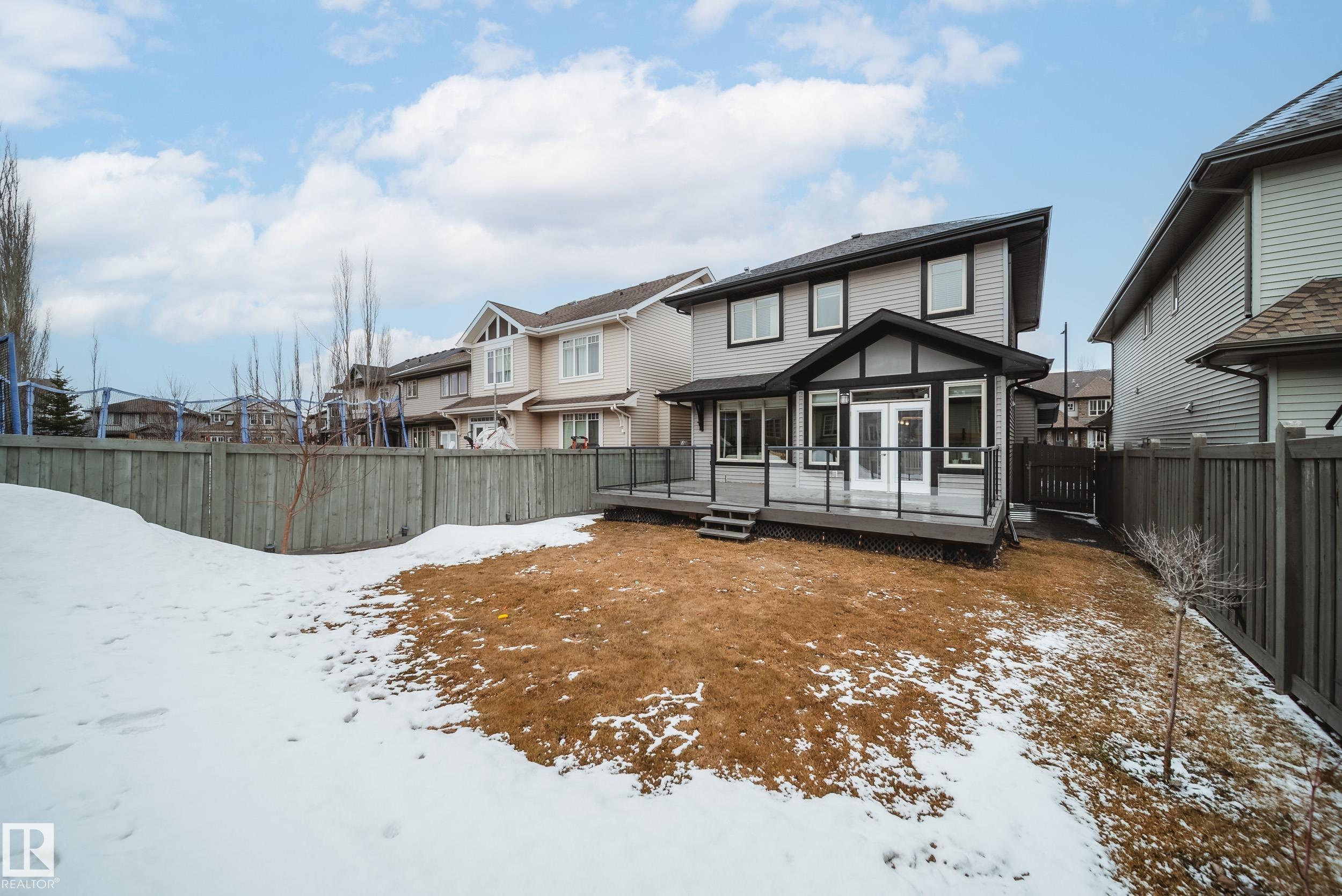 Stunning Ambleside home just steps to a K-9 school! This impeccably maintained, custom-built and AIR CONDITIONED property is loaded with upgrades and thoughtful design. The main floor showcases rich hardwood flooring and an open-concept layout with exceptional flow. The gourmet kitchen features a massive granite island, ample cabinetry, generous counter space, and stainless steel appliances. Bright south-facing windows flood the living room with natural light, complemented by a cozy fireplace. The spacious dining area opens to a large deck and sunny backyard--perfect for entertaining. Upstairs offers 3 generous bedrooms, upper laundry, and 2 full baths. The primary suite includes dual closets and a full ensuite. The unfinished basement is clean and ready for future development, plus a newer hot water tank. Oversized garage easily fits a truck. Located close to schools, shopping, restaurants, fitness, with quick access to Henday and the airport. A true must-see!