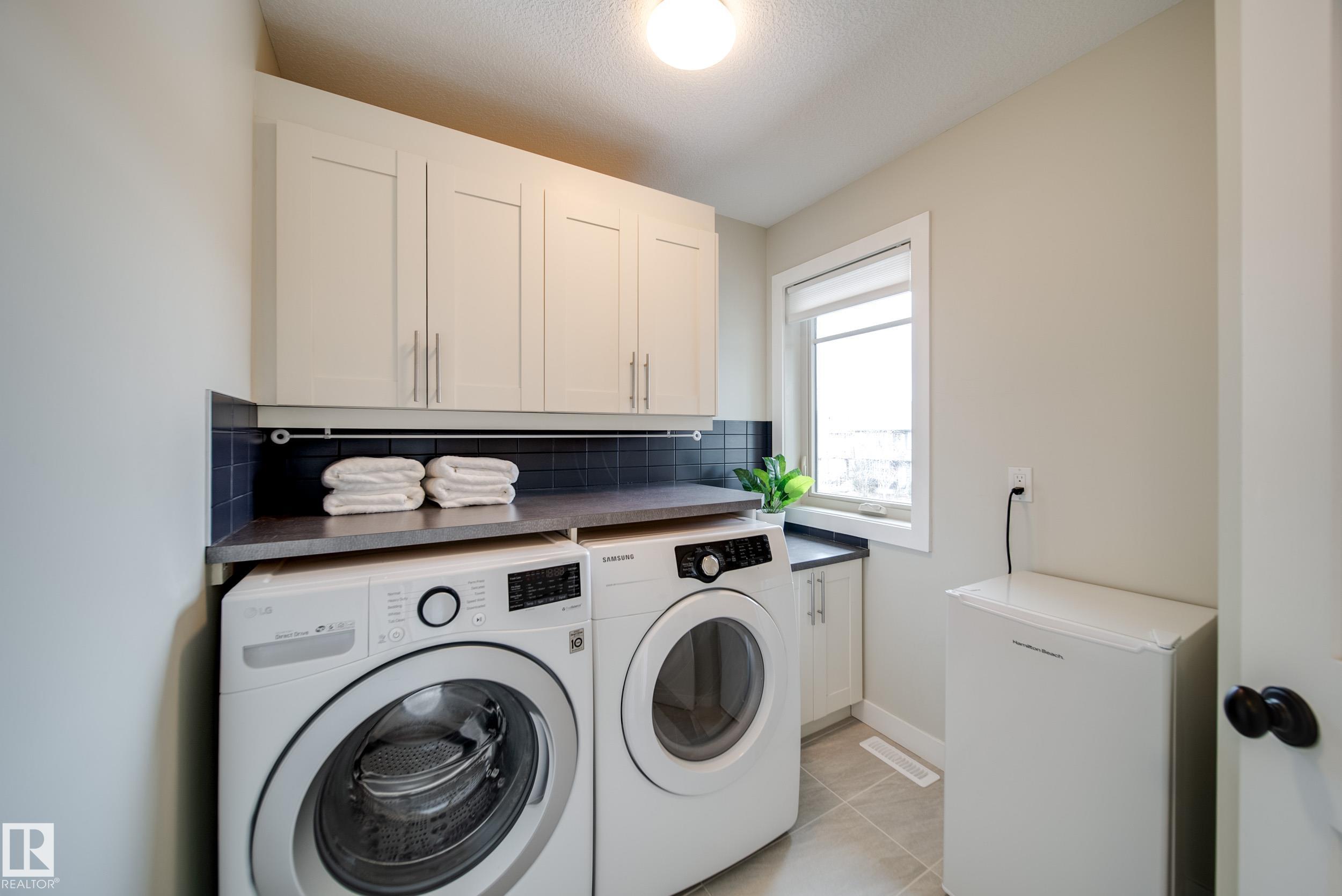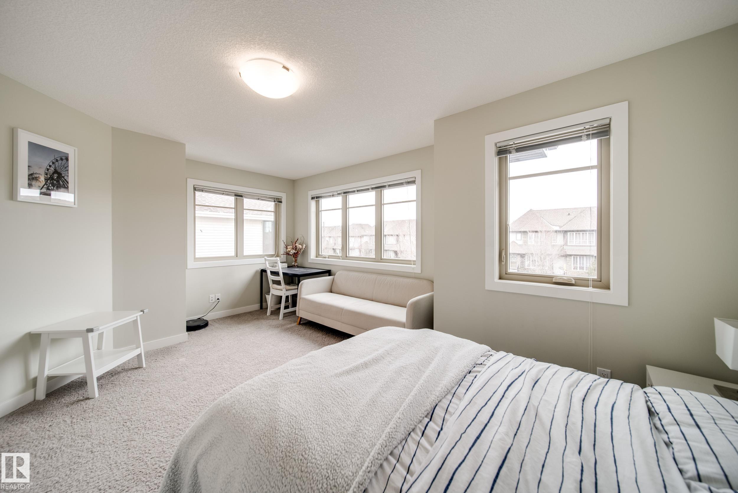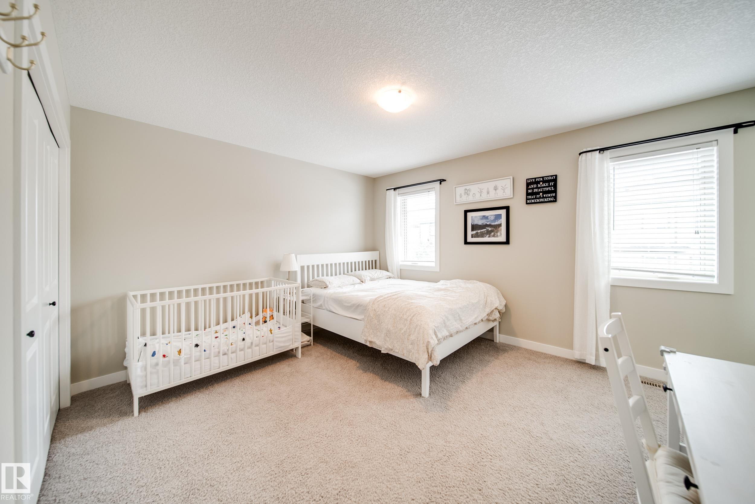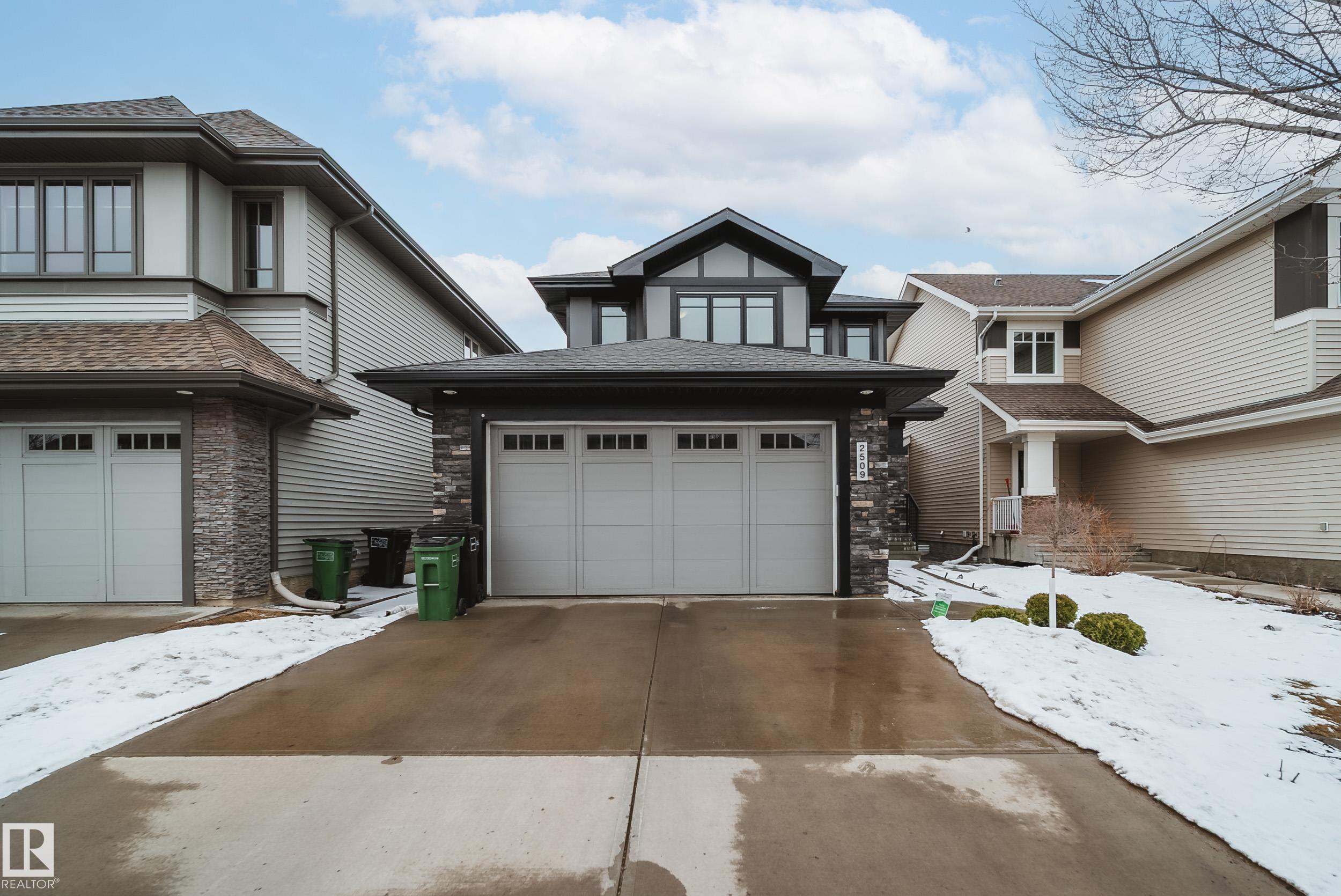 Stunning Ambleside home just steps to a K-9 school! This impeccably maintained, custom-built and AIR CONDITIONED property is loaded with upgrades and thoughtful design. The main floor showcases rich hardwood flooring and an open-concept layout with exceptional flow. The gourmet kitchen features a massive granite island, ample cabinetry, generous counter space, and stainless steel appliances. Bright south-facing windows flood the living room with natural light, complemented by a cozy fireplace. The spacious dining area opens to a large deck and sunny backyard--perfect for entertaining. Upstairs offers 3 generous bedrooms, upper laundry, and 2 full baths. The primary suite includes dual closets and a full ensuite. The unfinished basement is clean and ready for future development, plus a newer hot water tank. Oversized garage easily fits a truck. Located close to schools, shopping, restaurants, fitness, with quick access to Henday and the airport. A true must-see!