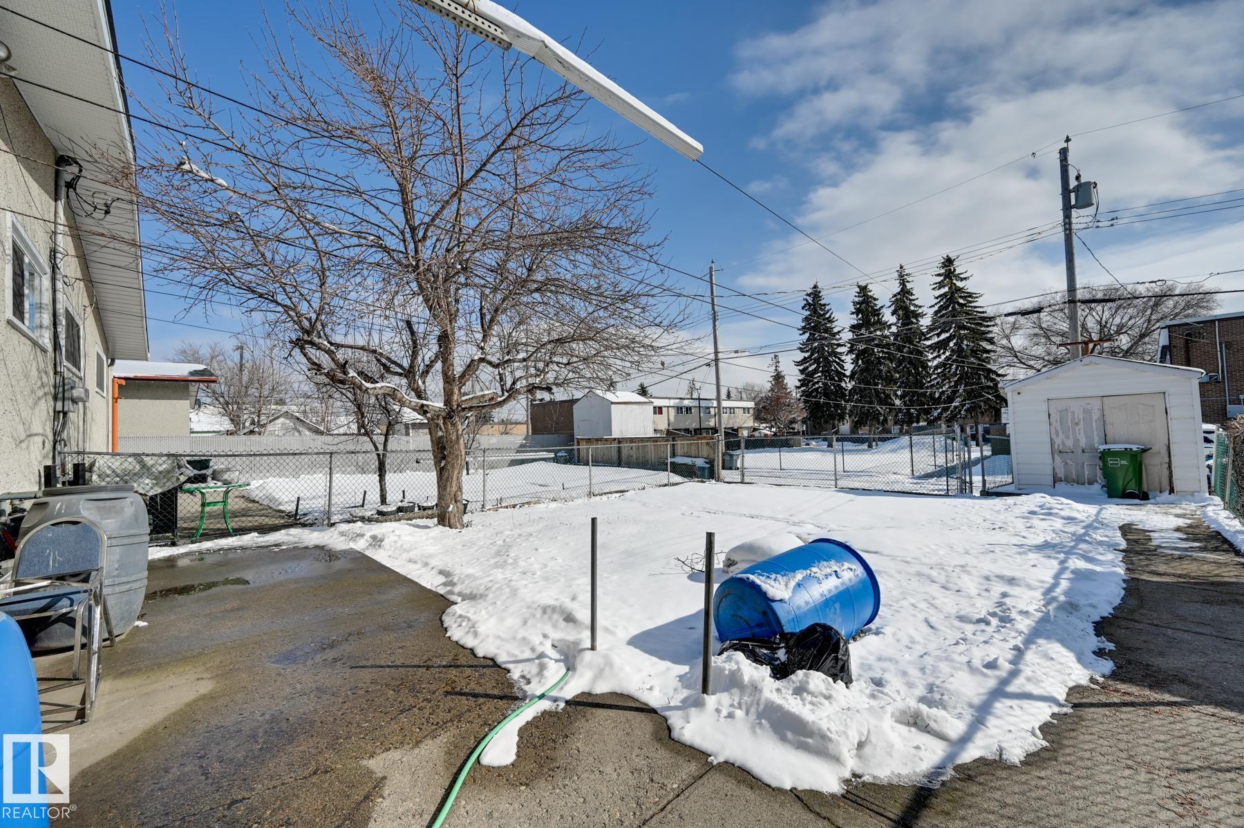 Great opportunity for a first-time buyer or investor! This upgraded half duplex offers 5 bedrooms and 2 full bathrooms, with 3 bedrooms up and 2 down. The main floor features a spacious living room, functional kitchen, dining area, and main floor laundry. The fully finished basement has a Separate Entrance, includes an in-law suite with its own kitchen, large living space, 2 bedrooms, full bath, storage, and washer/dryer ideal for revenue potential. Upgrades include newer shingles, hot water tank, A/C, updated countertops, paint. Enjoy a large, fenced and landscaped yard with two paved rear stalls. Located close to schools, shopping, transit, and LRT access. Immediate possession available. Fantastic value, just move in and enjoy!