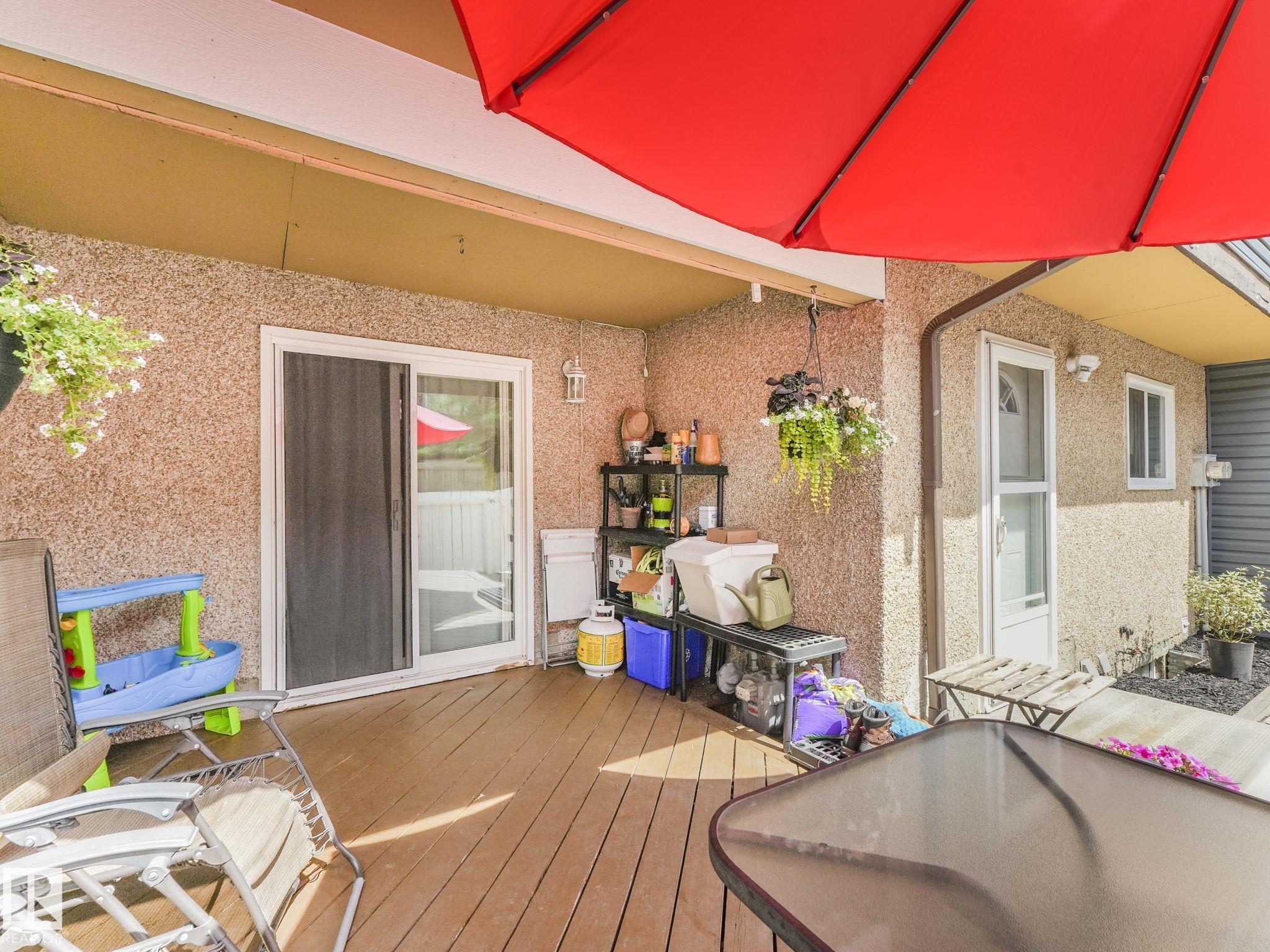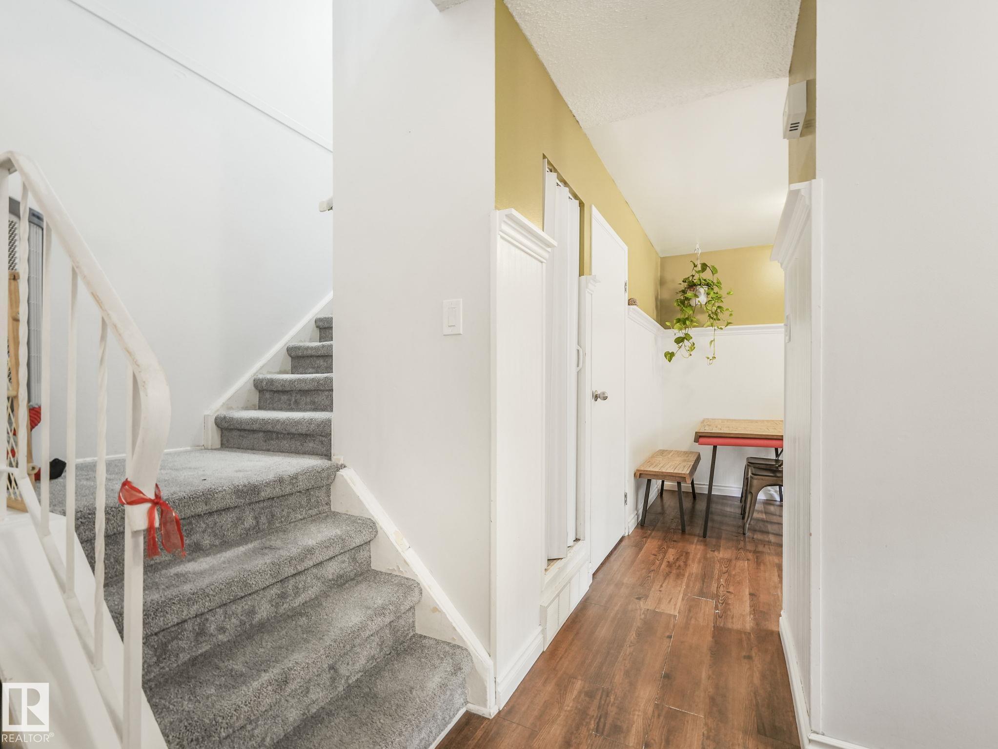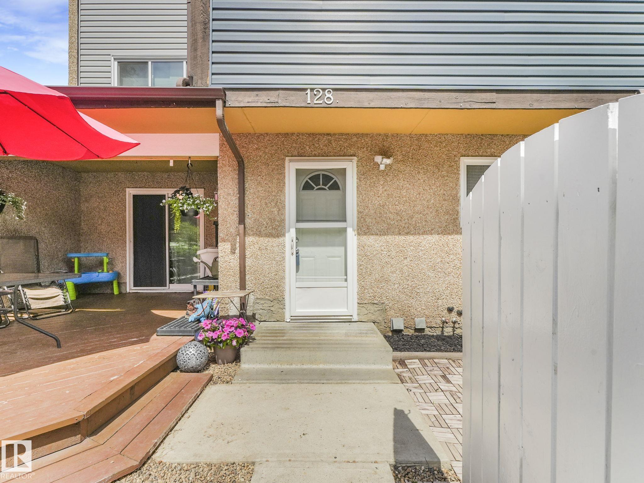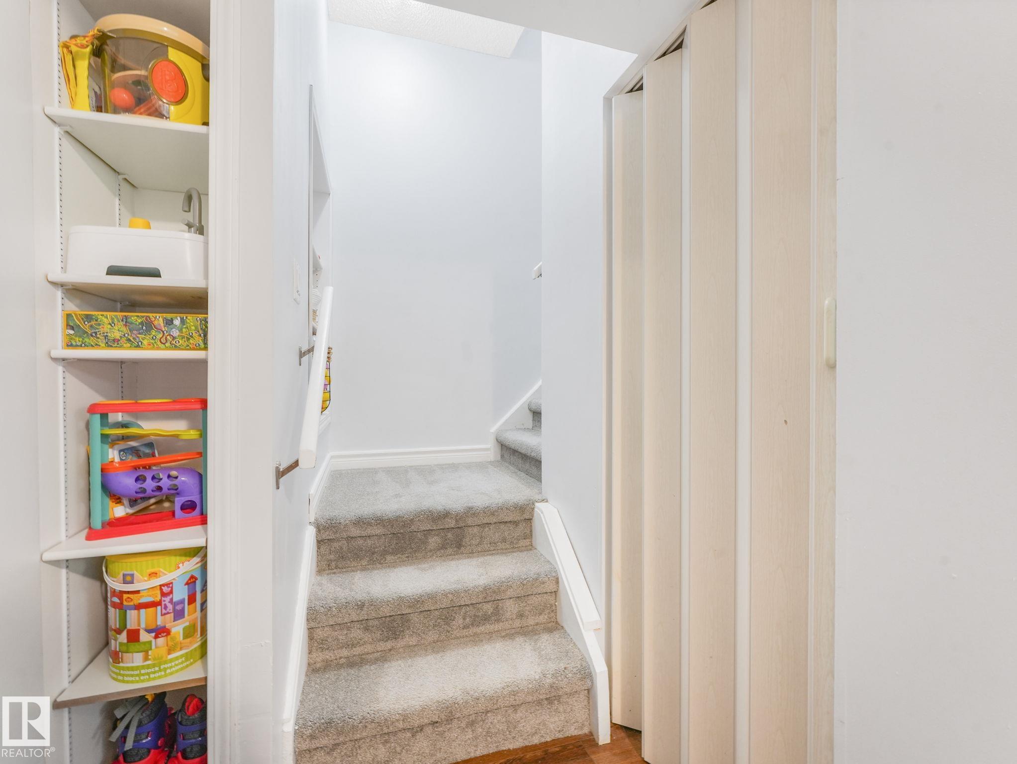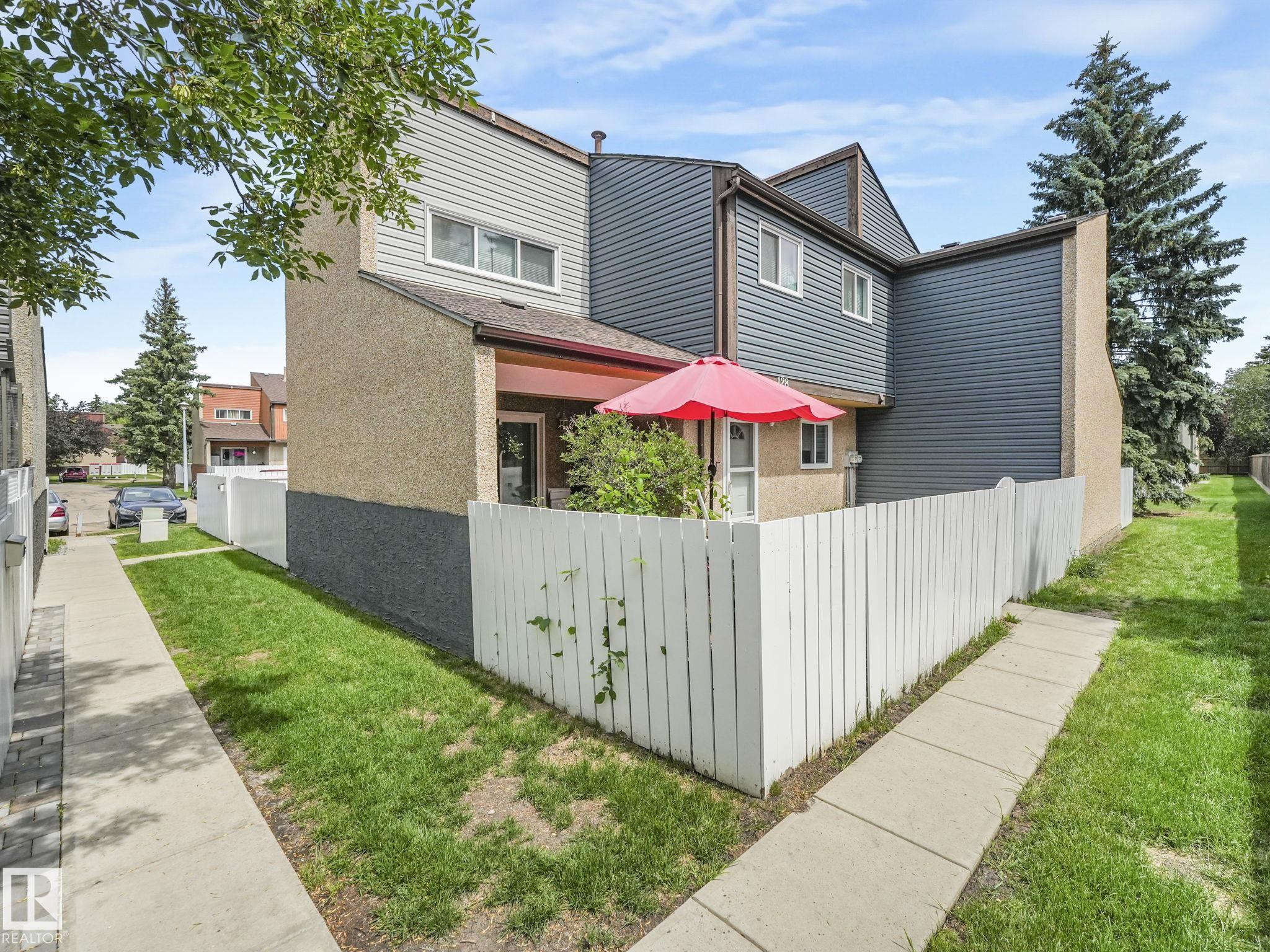 PICTURE PERFECT STARTER TOWNHOME IN KASKITAYO COURT! Outstanding location in BLUE QUILL with quick easy access to Southgate, 23 Ave amenities + parks and schools. First time buyers or investors will love this end-unit property featuring over 1,000 Sq. Ft. with 3 bedrooms, 1.5 baths, eat-in kitchen and a living room with patio door access to a large deck and a maintenance-free yard. Updated kitchen with maple cabinets & pantry. 1/2 bath & main bath vanity have also been updated as well. The basement is finished for an additional flex or bonus space and is where your laundry and extra storage is located. Recent upgrades incl.; fridge & dishwasher (2023), dryer (2022) and all carpets (2021). The complex itself features newer vinyl siding. Well run complex close to major transportation and golf course. Large dogs are allowed with Board approval. Additional parking stalls can be rented through the Condo Board.