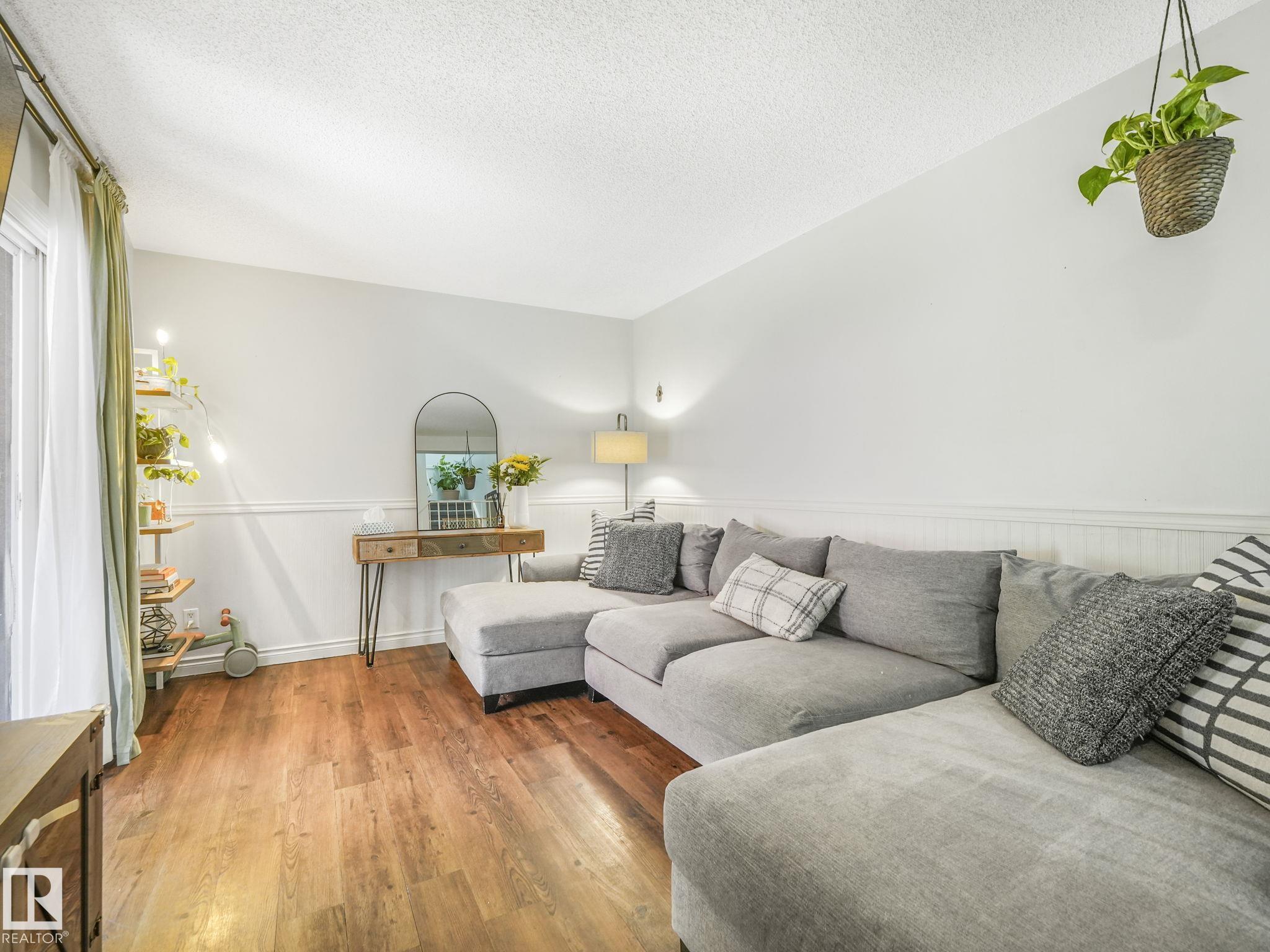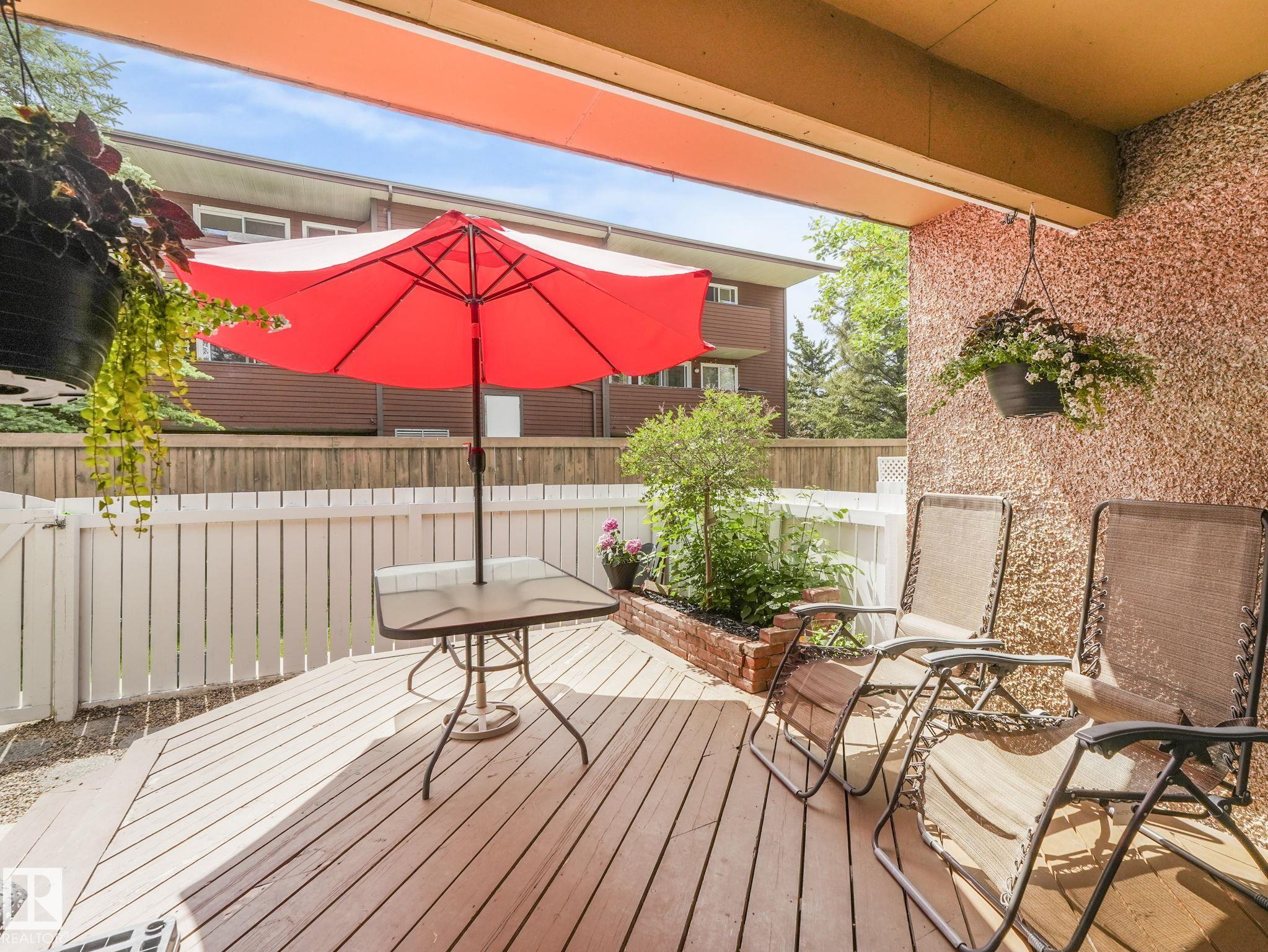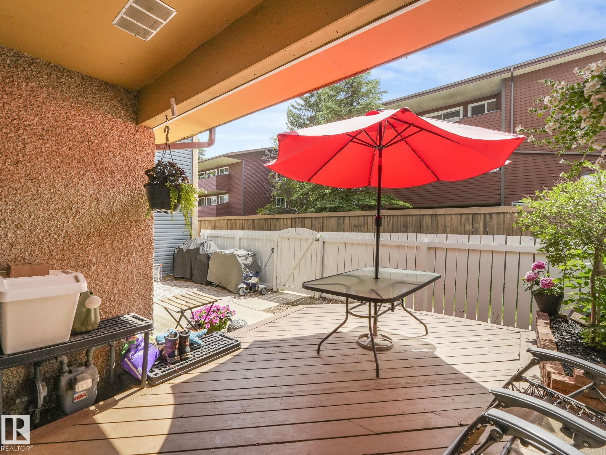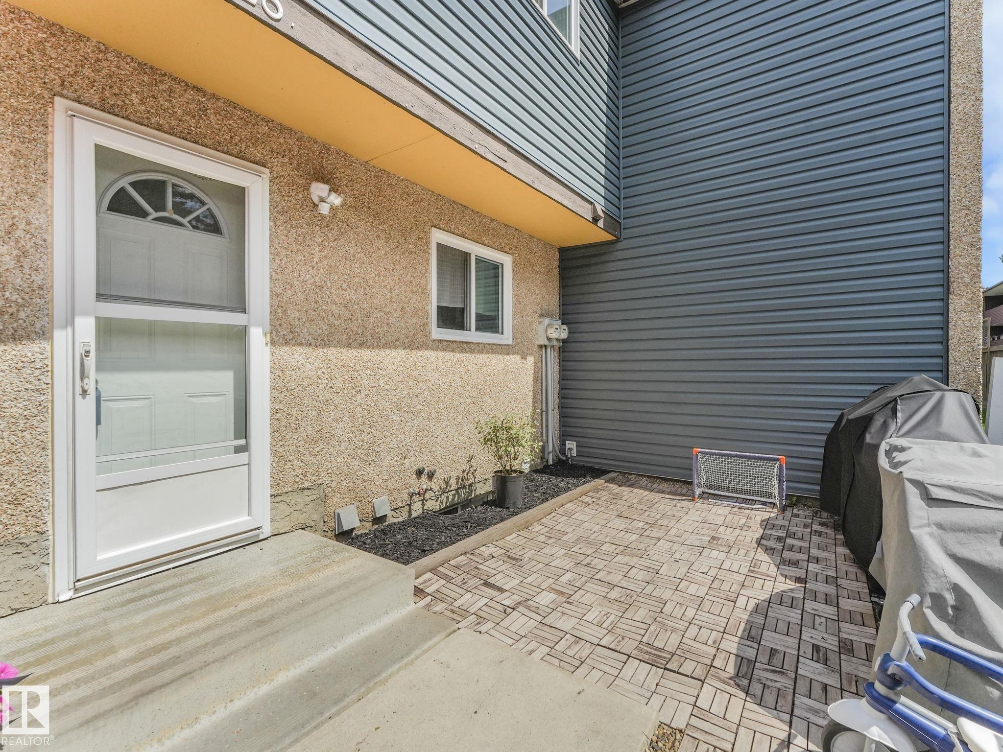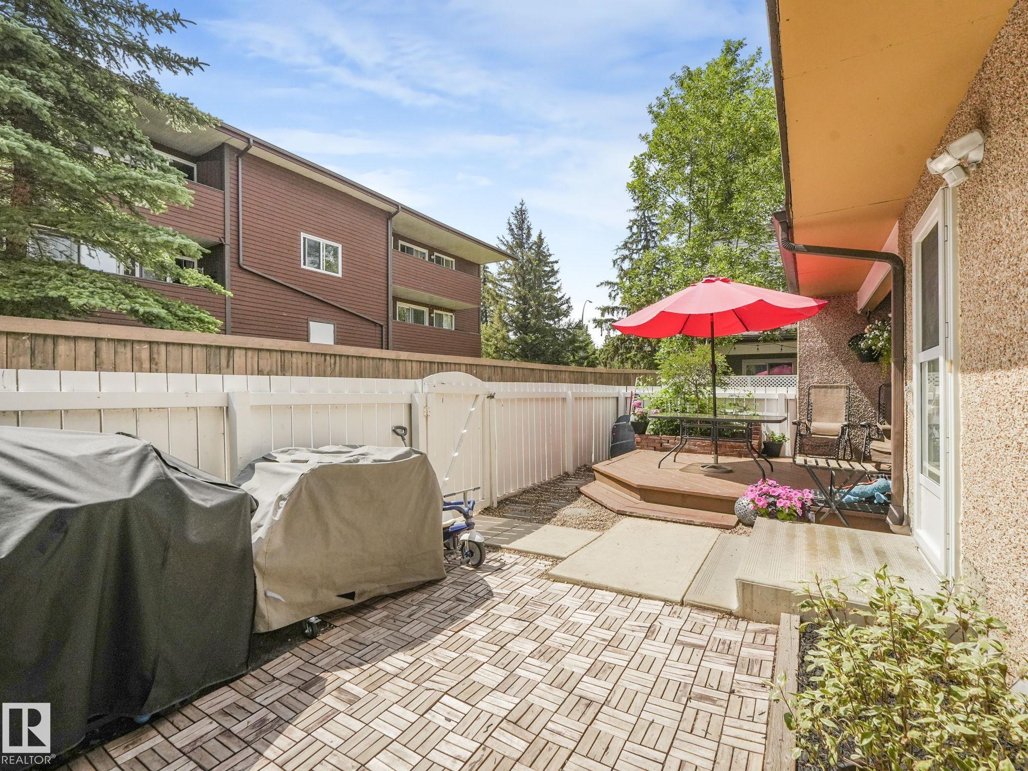 PICTURE PERFECT STARTER TOWNHOME IN KASKITAYO COURT! Outstanding location in BLUE QUILL with quick easy access to Southgate, 23 Ave amenities + parks and schools. First time buyers or investors will love this end-unit property featuring over 1,000 Sq. Ft. with 3 bedrooms, 1.5 baths, eat-in kitchen and a living room with patio door access to a large deck and a maintenance-free yard. Updated kitchen with maple cabinets & pantry. 1/2 bath & main bath vanity have also been updated as well. The basement is finished for an additional flex or bonus space and is where your laundry and extra storage is located. Recent upgrades incl.; fridge & dishwasher (2023), dryer (2022) and all carpets (2021). The complex itself features newer vinyl siding. Well run complex close to major transportation and golf course. Large dogs are allowed with Board approval. Additional parking stalls can be rented through the Condo Board.