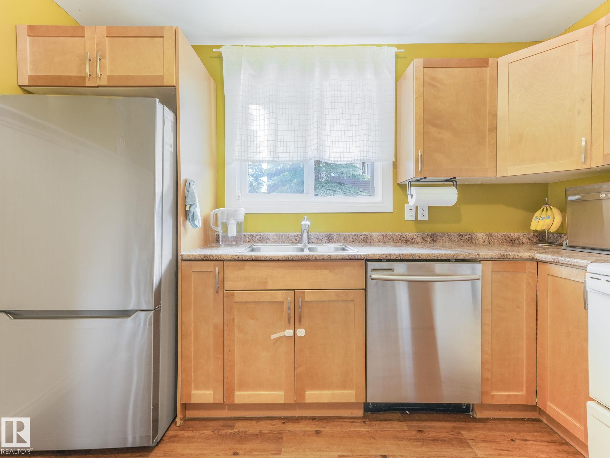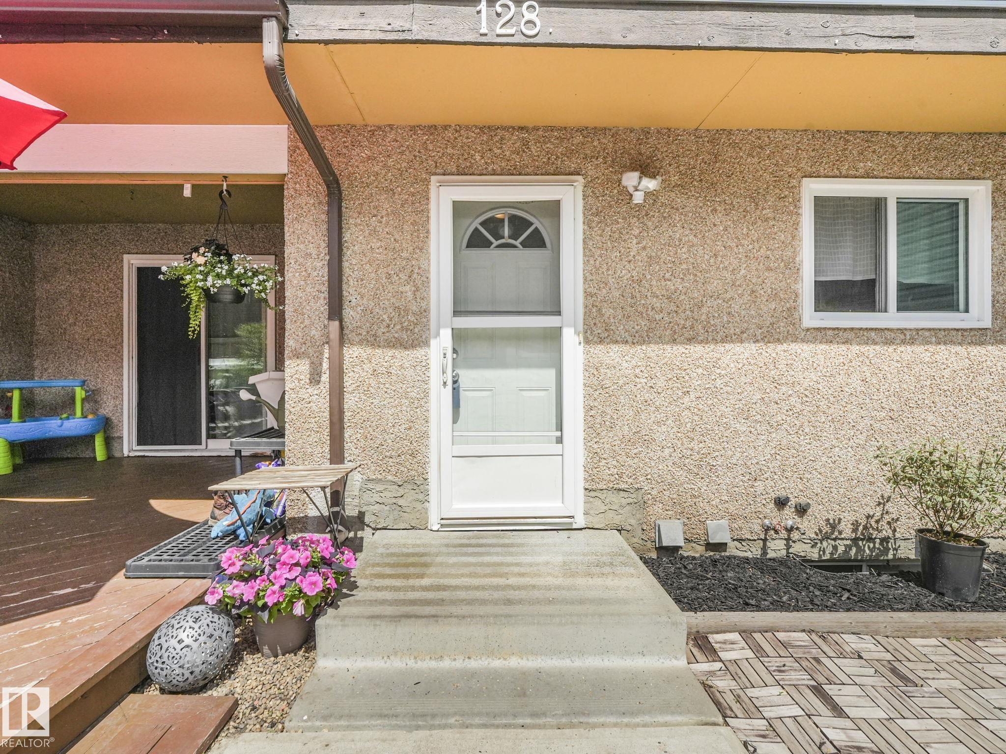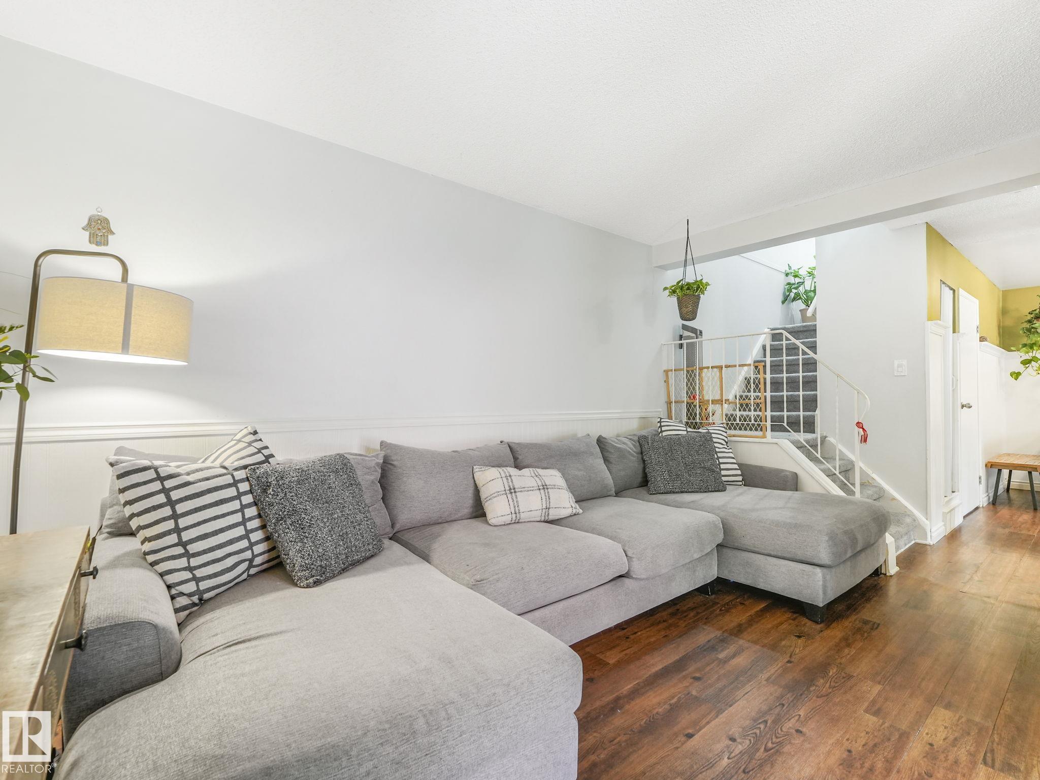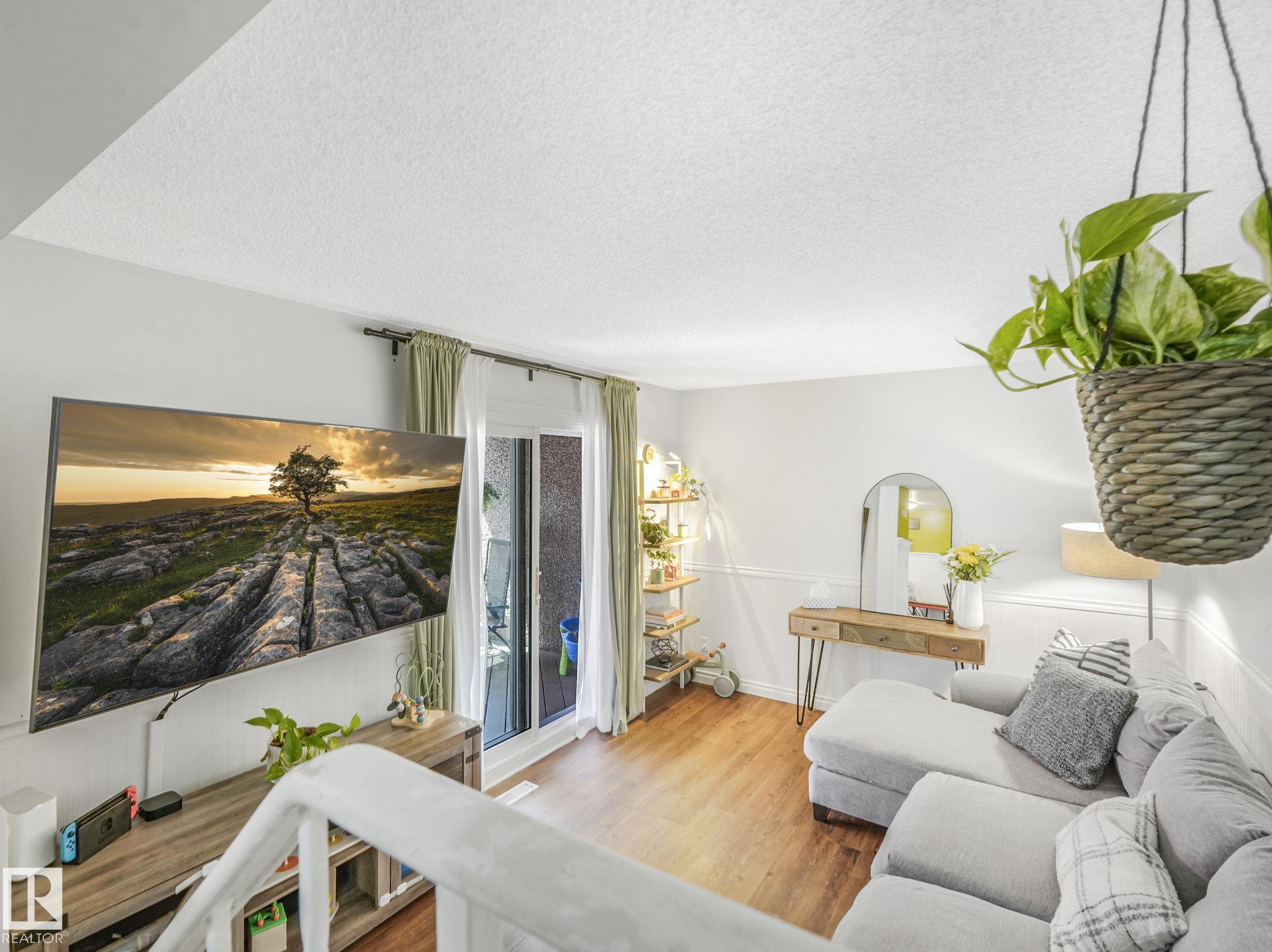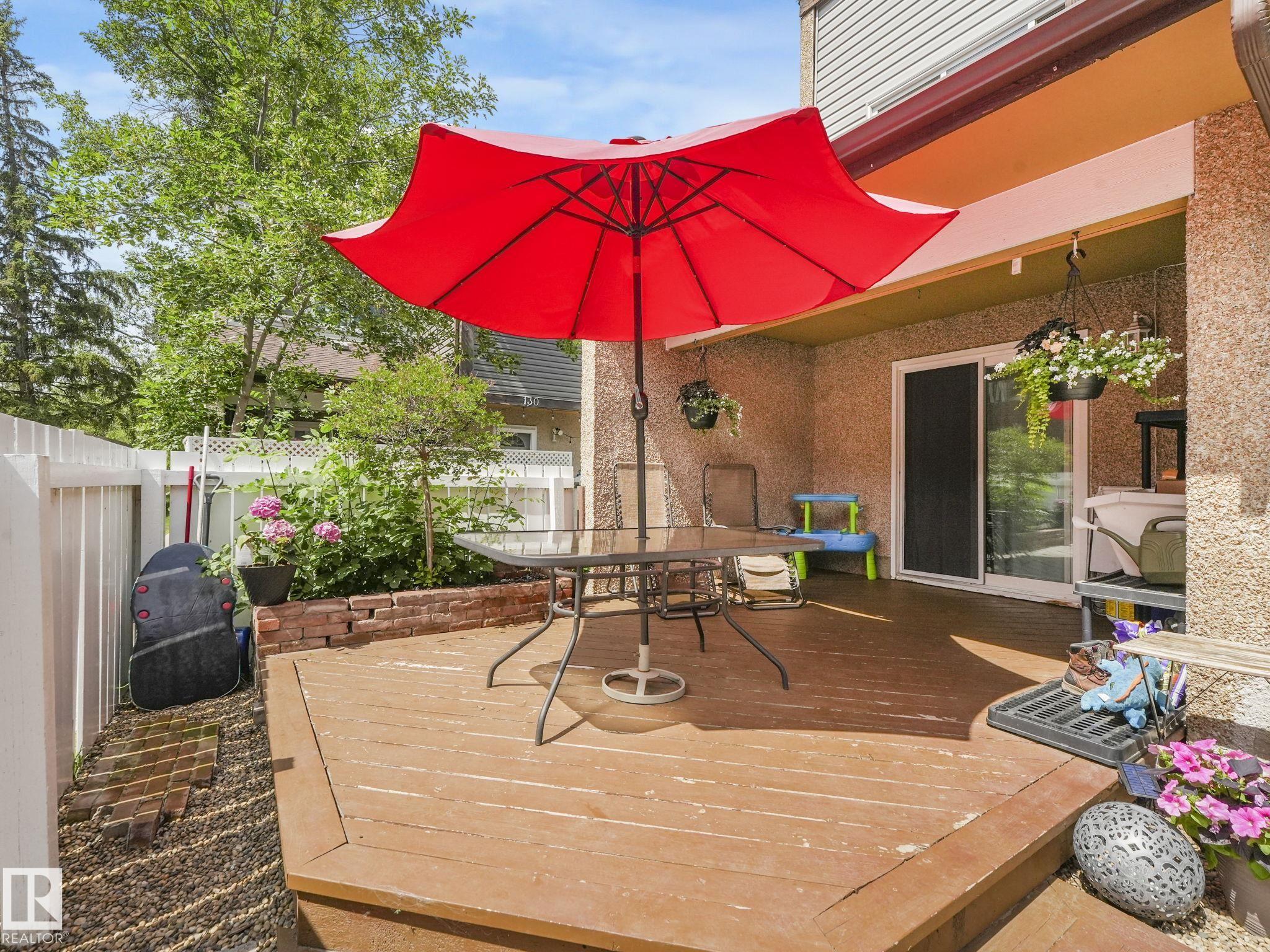 PICTURE PERFECT STARTER TOWNHOME IN KASKITAYO COURT! Outstanding location in BLUE QUILL with quick easy access to Southgate, 23 Ave amenities + parks and schools. First time buyers or investors will love this end-unit property featuring over 1,000 Sq. Ft. with 3 bedrooms, 1.5 baths, eat-in kitchen and a living room with patio door access to a large deck and a maintenance-free yard. Updated kitchen with maple cabinets & pantry. 1/2 bath & main bath vanity have also been updated as well. The basement is finished for an additional flex or bonus space and is where your laundry and extra storage is located. Recent upgrades incl.; fridge & dishwasher (2023), dryer (2022) and all carpets (2021). The complex itself features newer vinyl siding. Well run complex close to major transportation and golf course. Large dogs are allowed with Board approval. Additional parking stalls can be rented through the Condo Board.