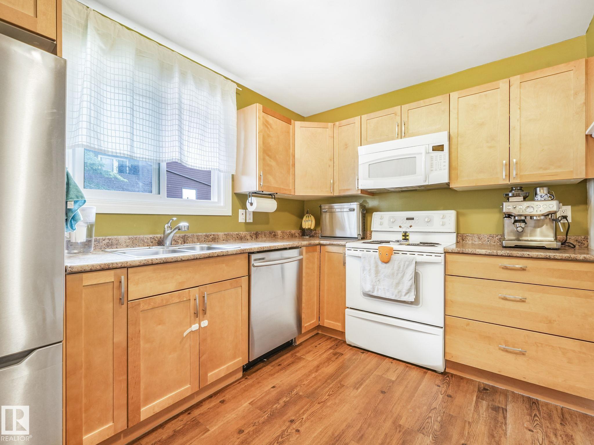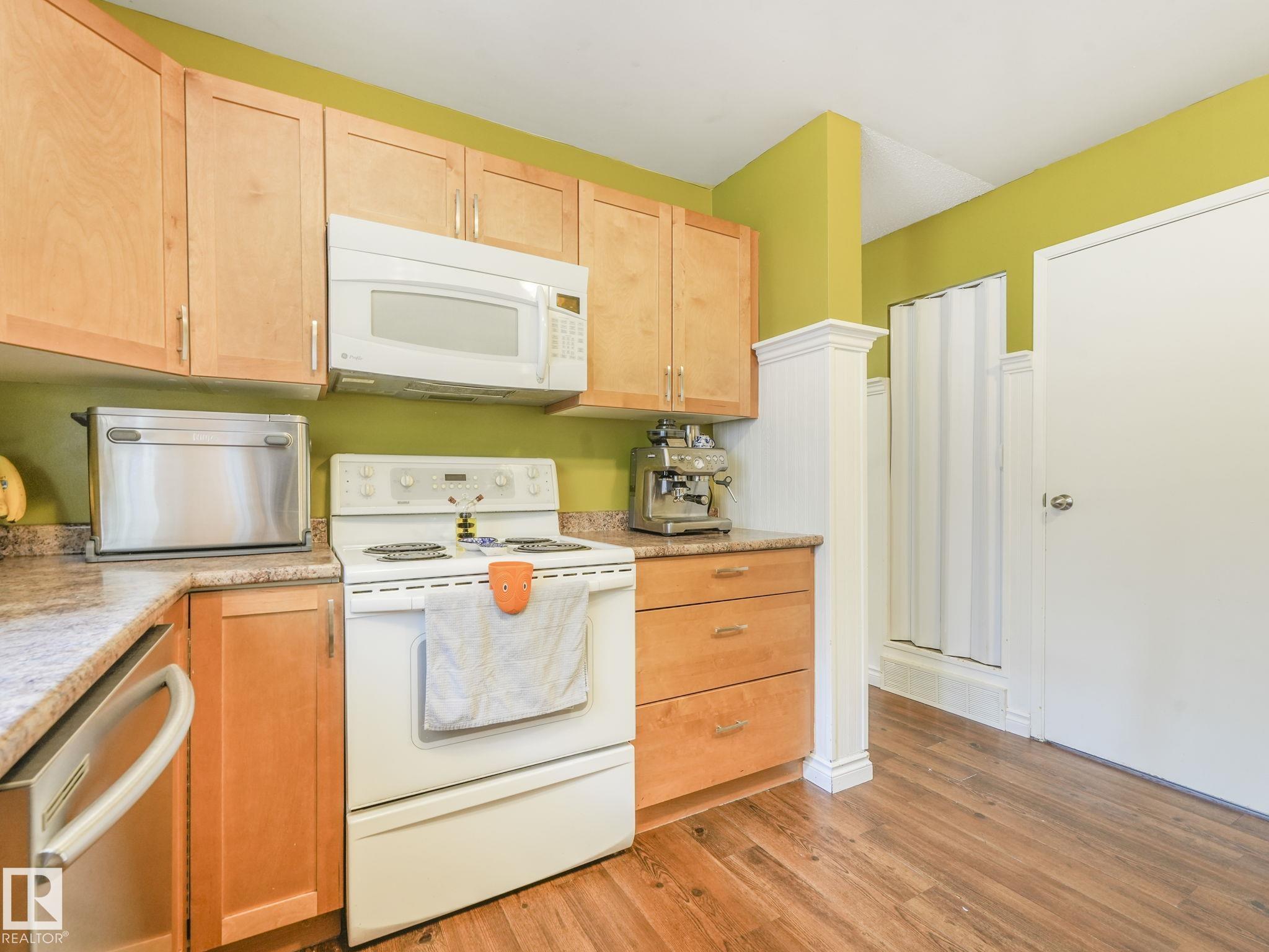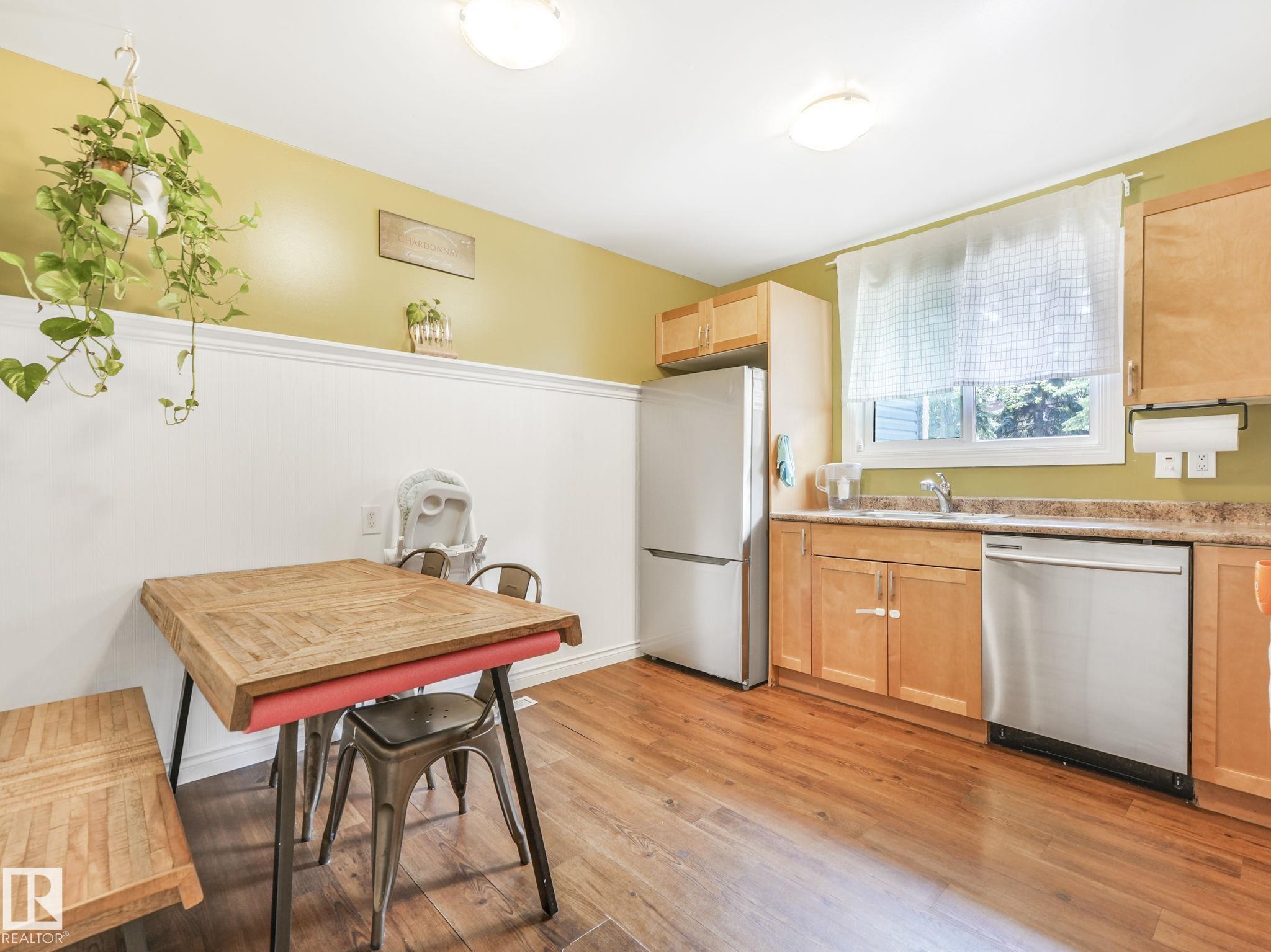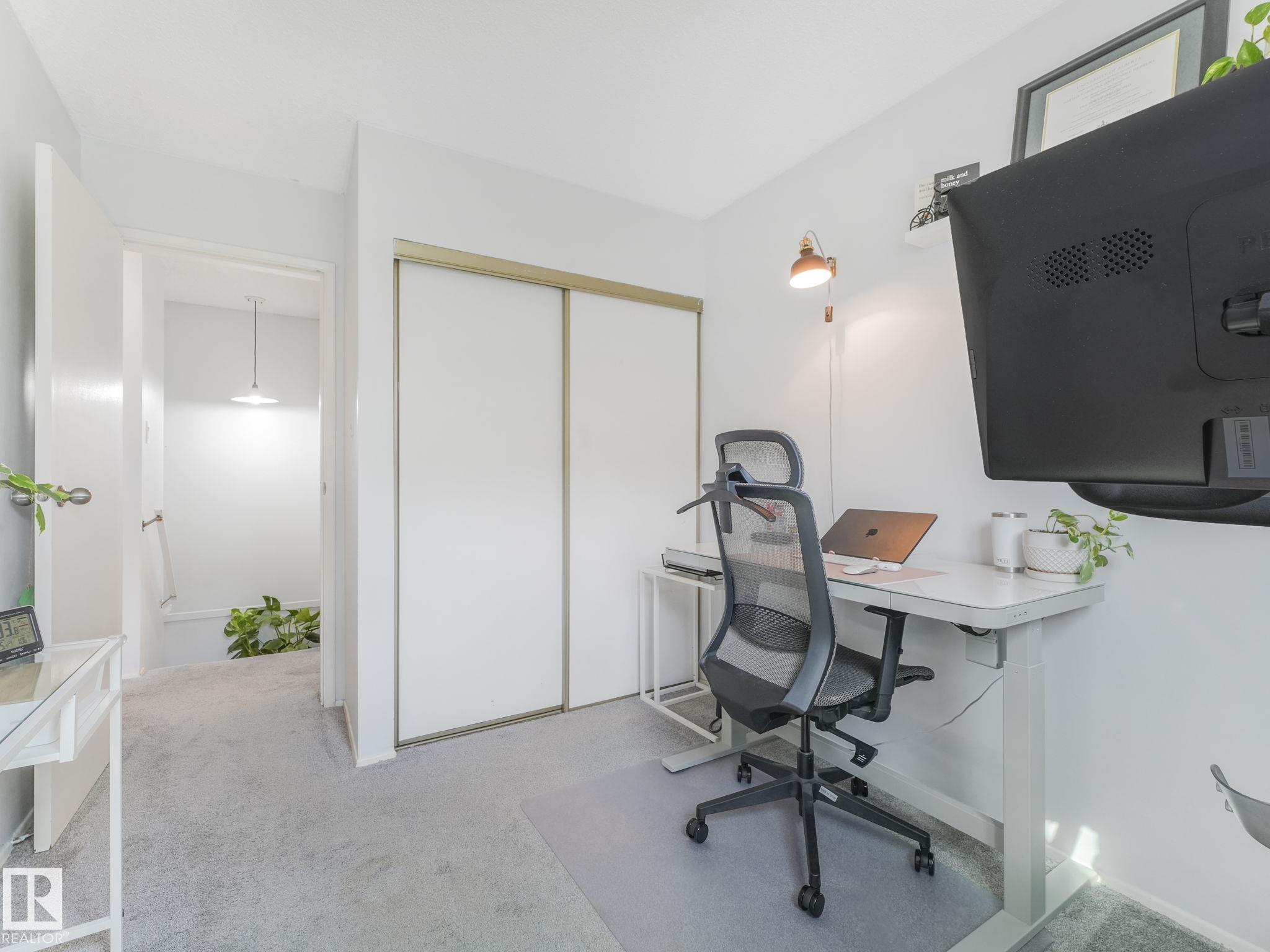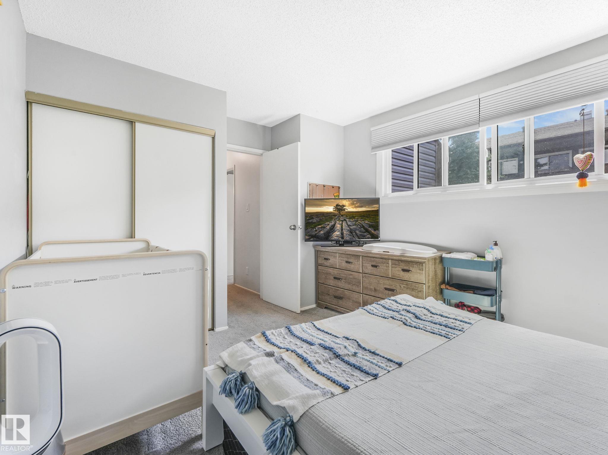 PICTURE PERFECT STARTER TOWNHOME IN KASKITAYO COURT! Outstanding location in BLUE QUILL with quick easy access to Southgate, 23 Ave amenities + parks and schools. First time buyers or investors will love this end-unit property featuring over 1,000 Sq. Ft. with 3 bedrooms, 1.5 baths, eat-in kitchen and a living room with patio door access to a large deck and a maintenance-free yard. Updated kitchen with maple cabinets & pantry. 1/2 bath & main bath vanity have also been updated as well. The basement is finished for an additional flex or bonus space and is where your laundry and extra storage is located. Recent upgrades incl.; fridge & dishwasher (2023), dryer (2022) and all carpets (2021). The complex itself features newer vinyl siding. Well run complex close to major transportation and golf course. Large dogs are allowed with Board approval. Additional parking stalls can be rented through the Condo Board.