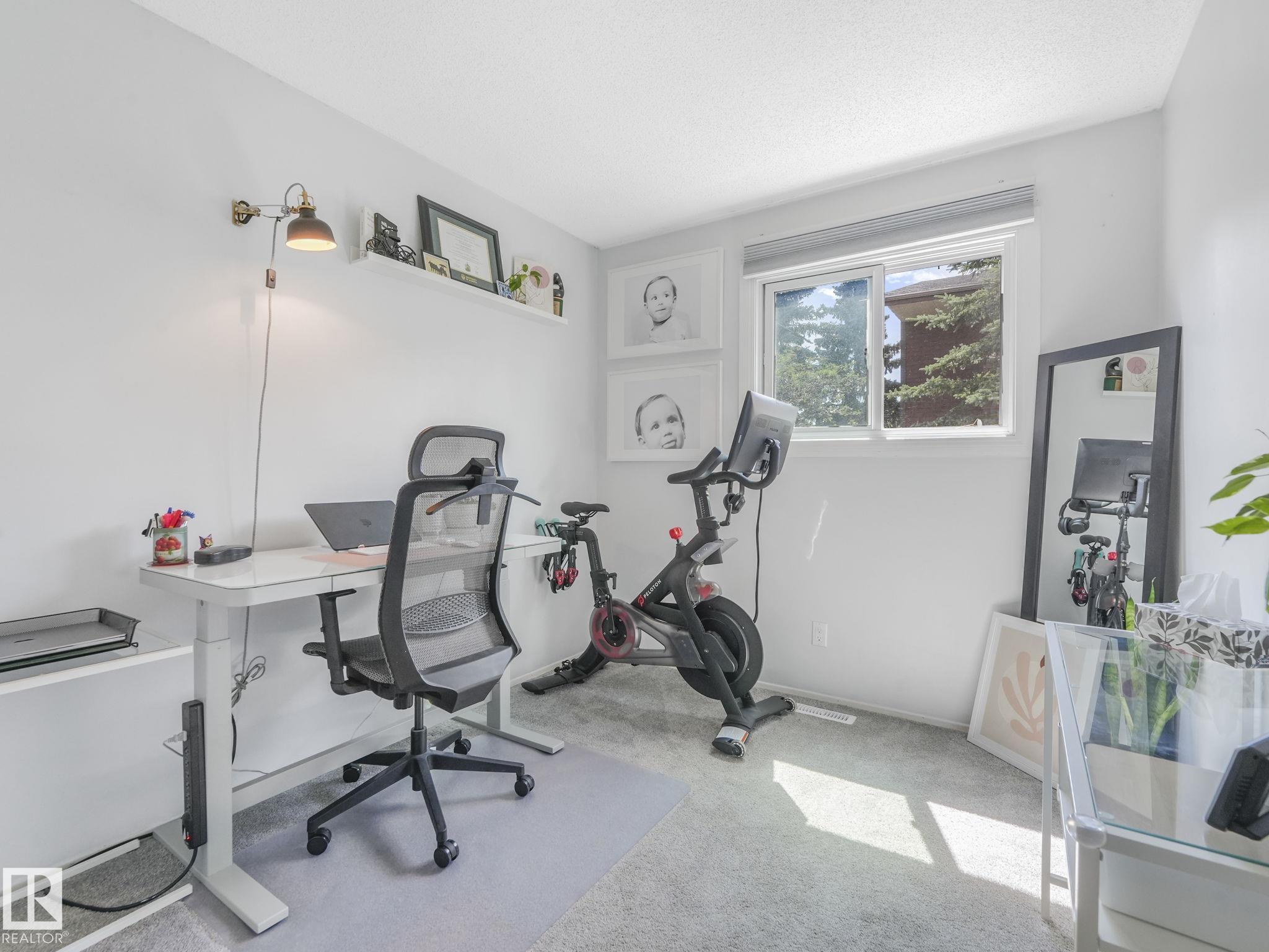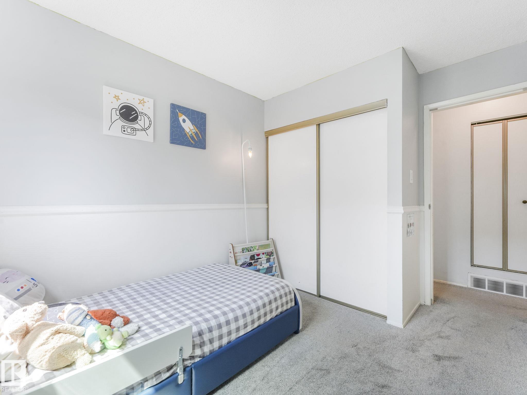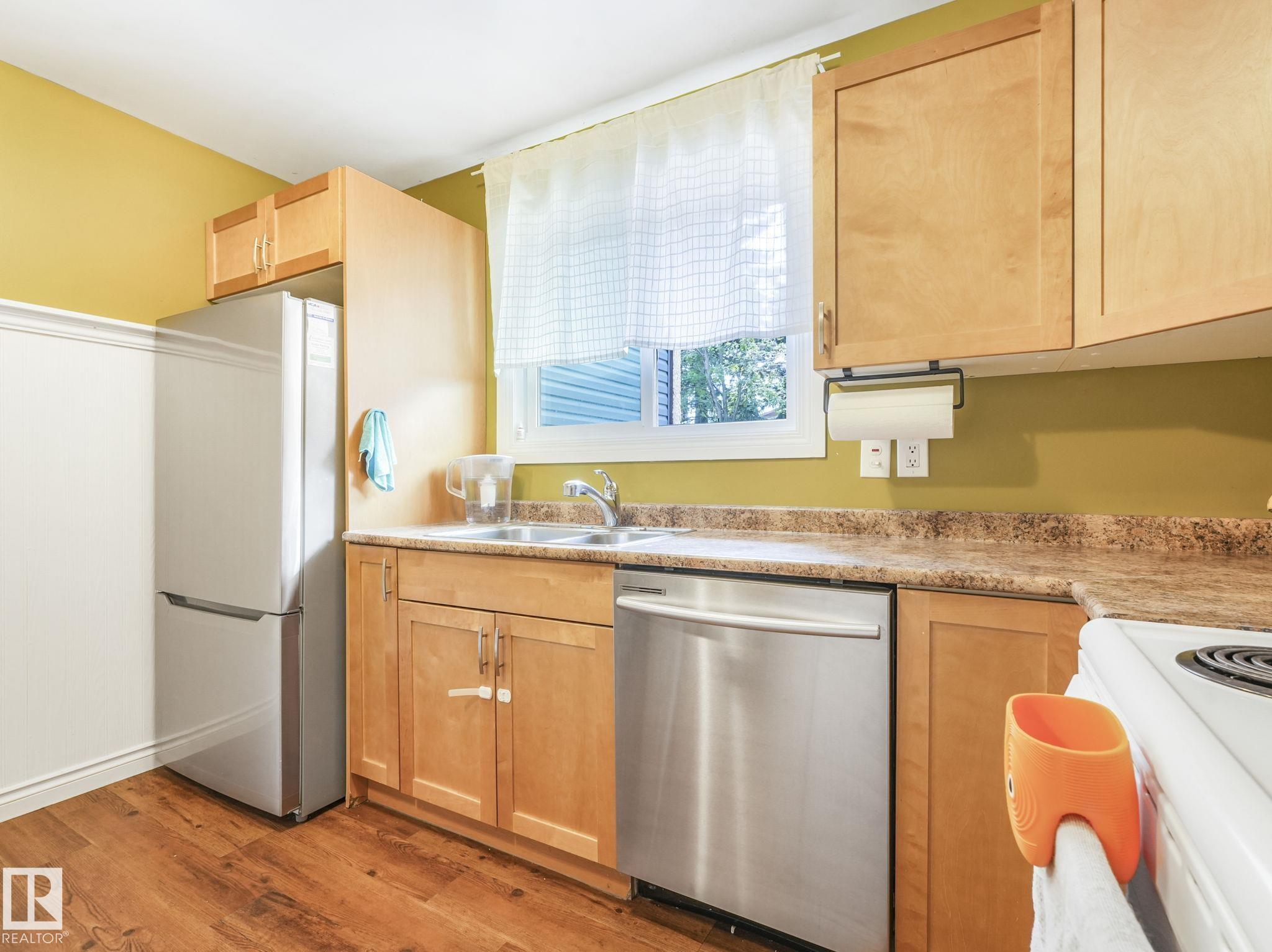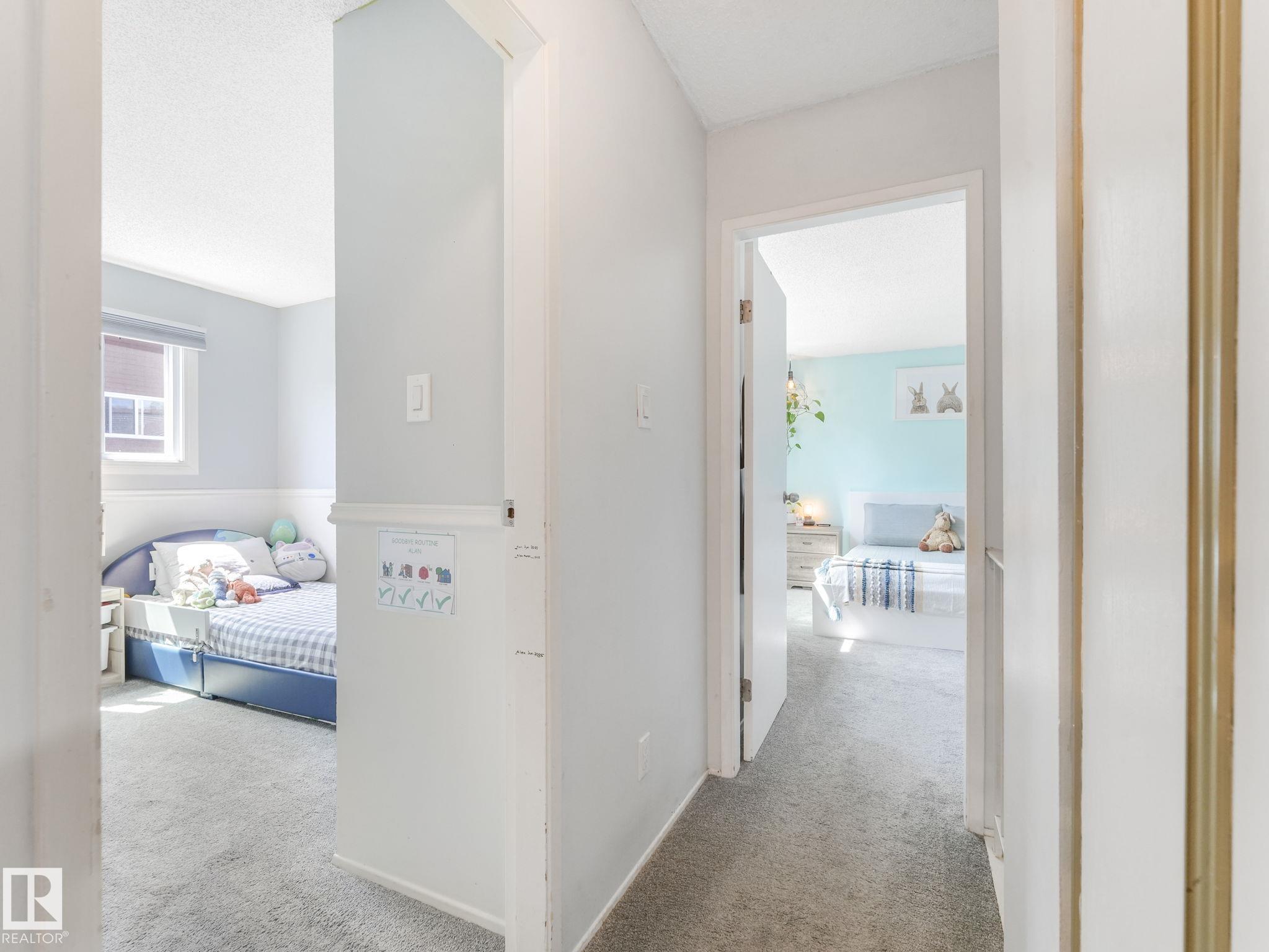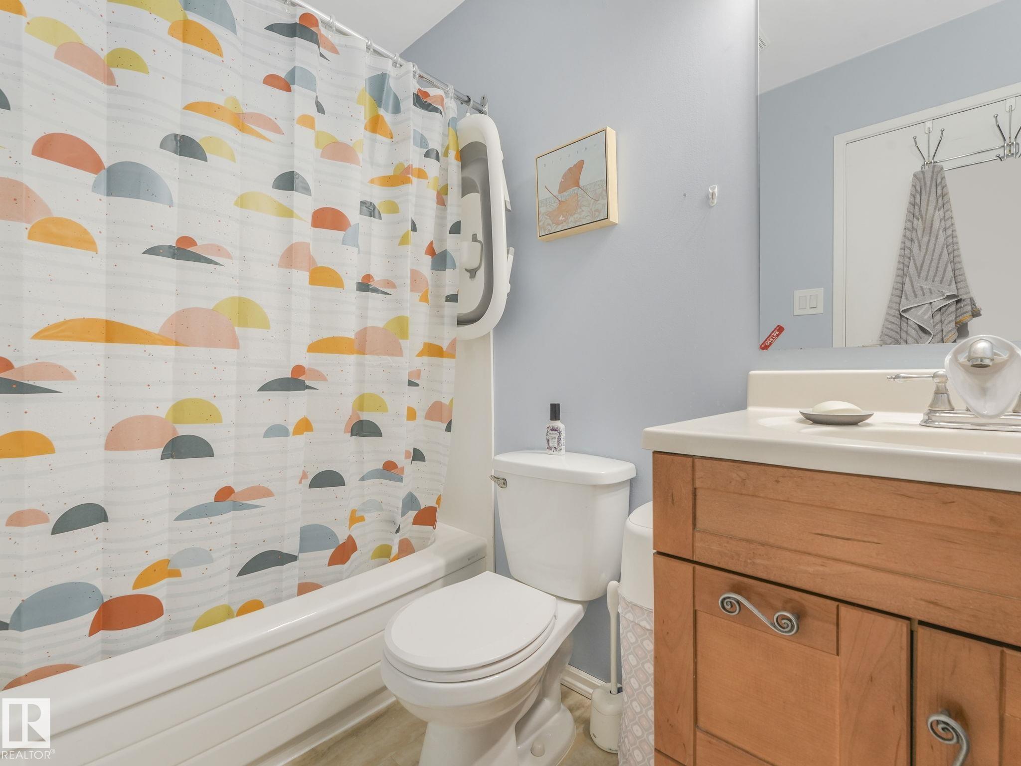 PICTURE PERFECT STARTER TOWNHOME IN KASKITAYO COURT! Outstanding location in BLUE QUILL with quick easy access to Southgate, 23 Ave amenities + parks and schools. First time buyers or investors will love this end-unit property featuring over 1,000 Sq. Ft. with 3 bedrooms, 1.5 baths, eat-in kitchen and a living room with patio door access to a large deck and a maintenance-free yard. Updated kitchen with maple cabinets & pantry. 1/2 bath & main bath vanity have also been updated as well. The basement is finished for an additional flex or bonus space and is where your laundry and extra storage is located. Recent upgrades incl.; fridge & dishwasher (2023), dryer (2022) and all carpets (2021). The complex itself features newer vinyl siding. Well run complex close to major transportation and golf course. Large dogs are allowed with Board approval. Additional parking stalls can be rented through the Condo Board.