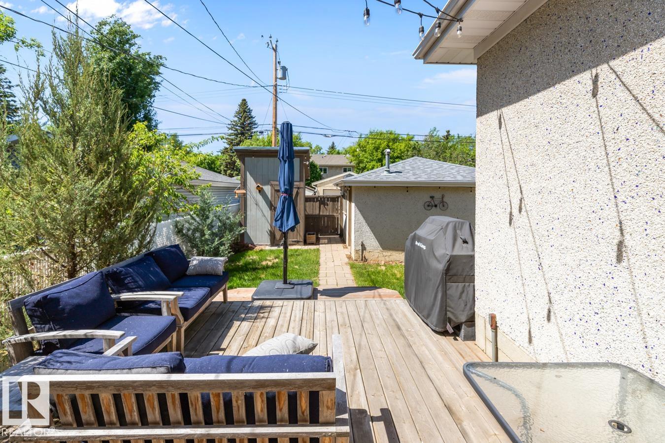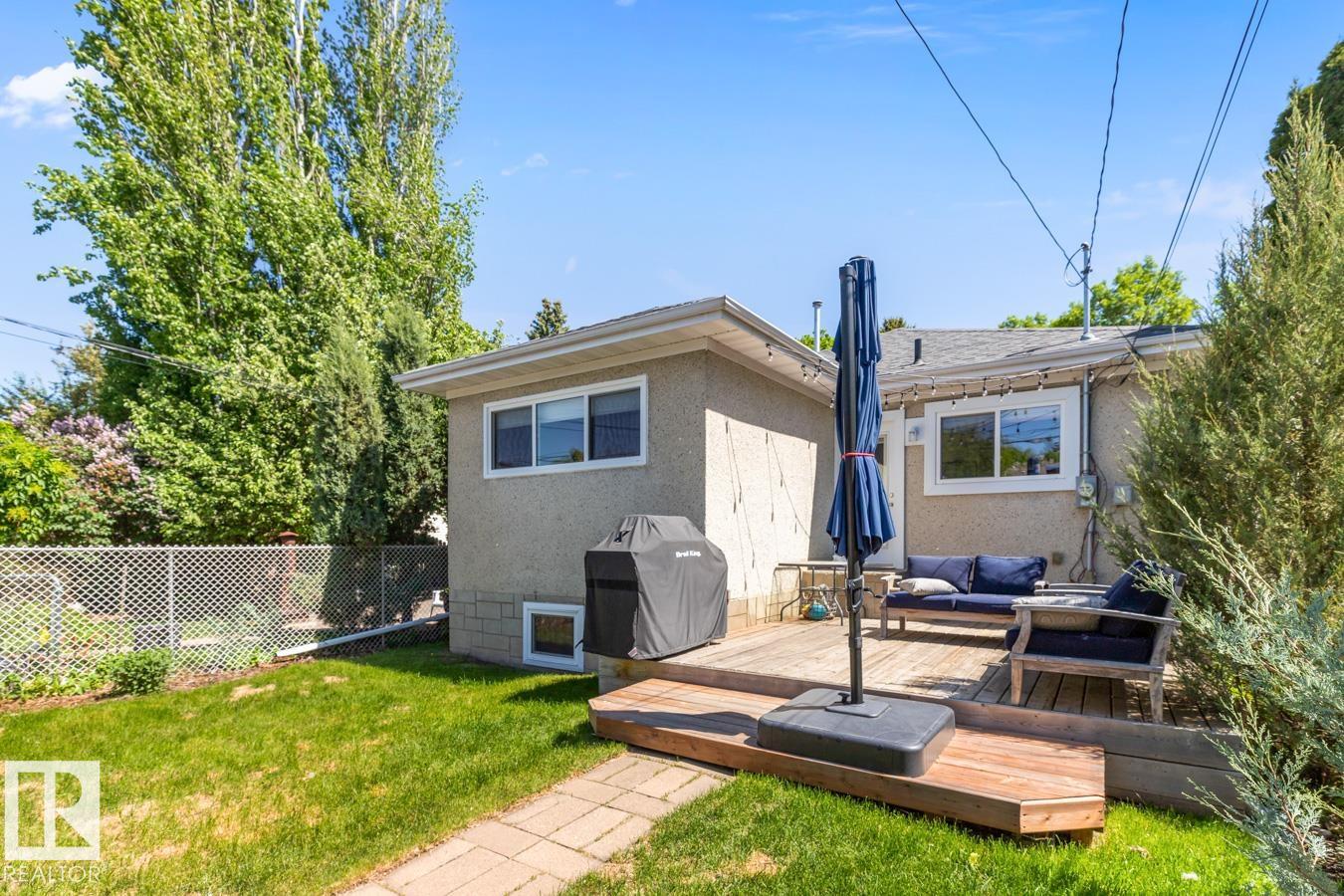 Fully updated raised bungalow in the heart of Bonnie Doon, set on a quiet, tree-lined street just steps to Mill Creek Ravine. Offering over 2200 sqft of total living space, this home with great curb appeal, features an open-concept main floor, rich hardwood, and large windows that fill the space with natural light. The kitchen is designed for everyday living with granite countertops, a gas range, and eat-up bar, seamlessly connected to the living and dining area. With 4 bedrooms and 3 bathrooms, including a primary suite with walk-through closet and ensuite, there is room for growing families or guests. The bright basement offers a spacious recreation room, wet bar, and dedicated laundry room. West-facing backyard with deck, mature landscaping, and heated oversized garage plus ample parking on driveway. Updates include New sewer line, electrical, roof (2016) and garage shingles (2021). A rare opportunity in Bonnie Doon, just steps to parks, schools, local caf‚s and river valley trail system.