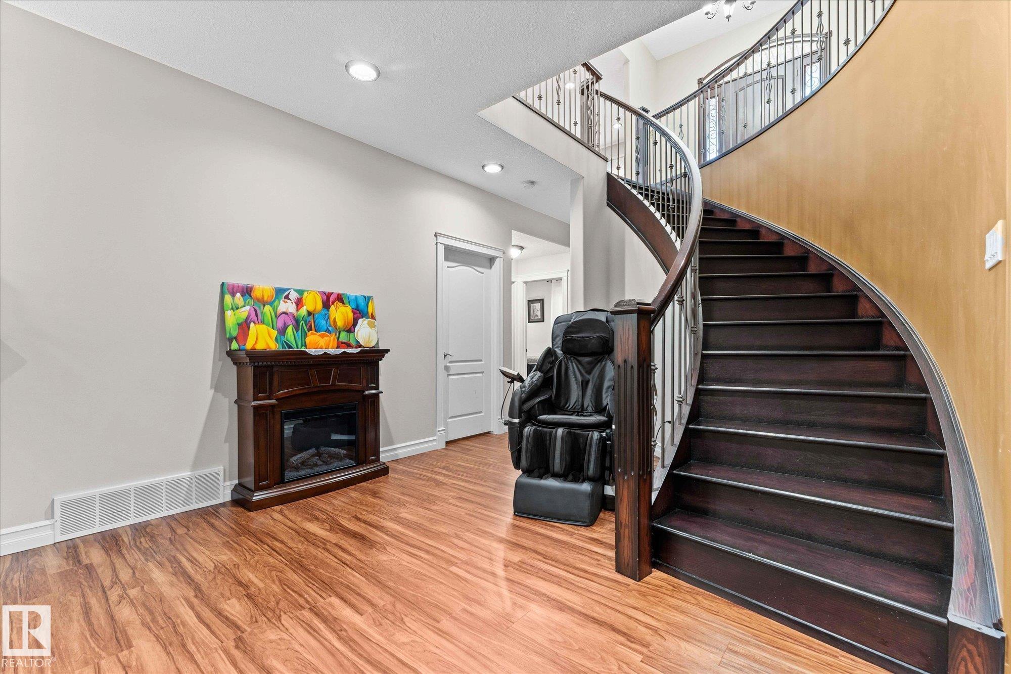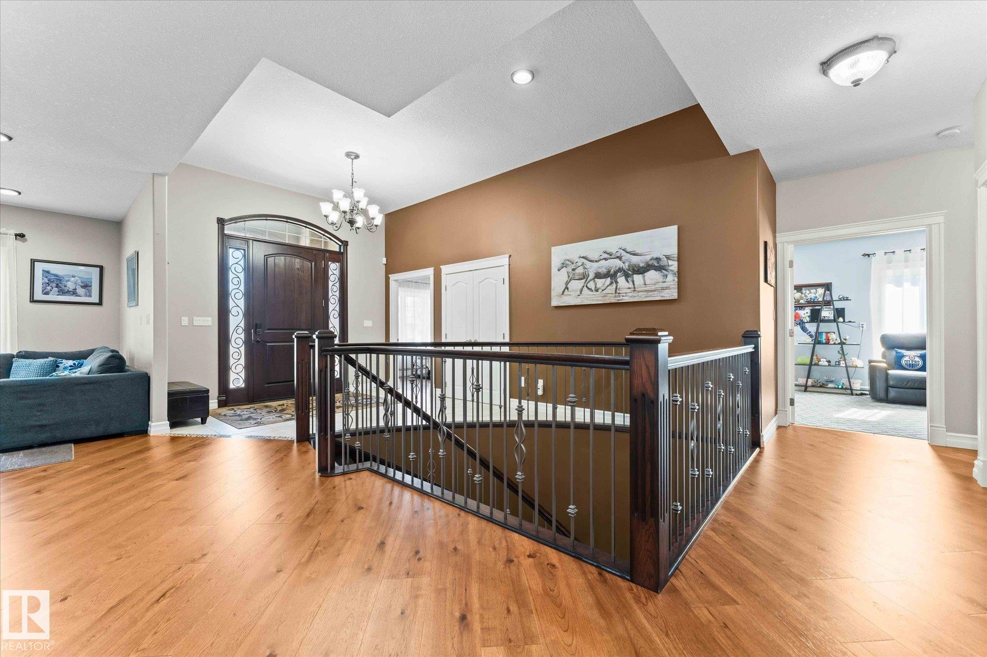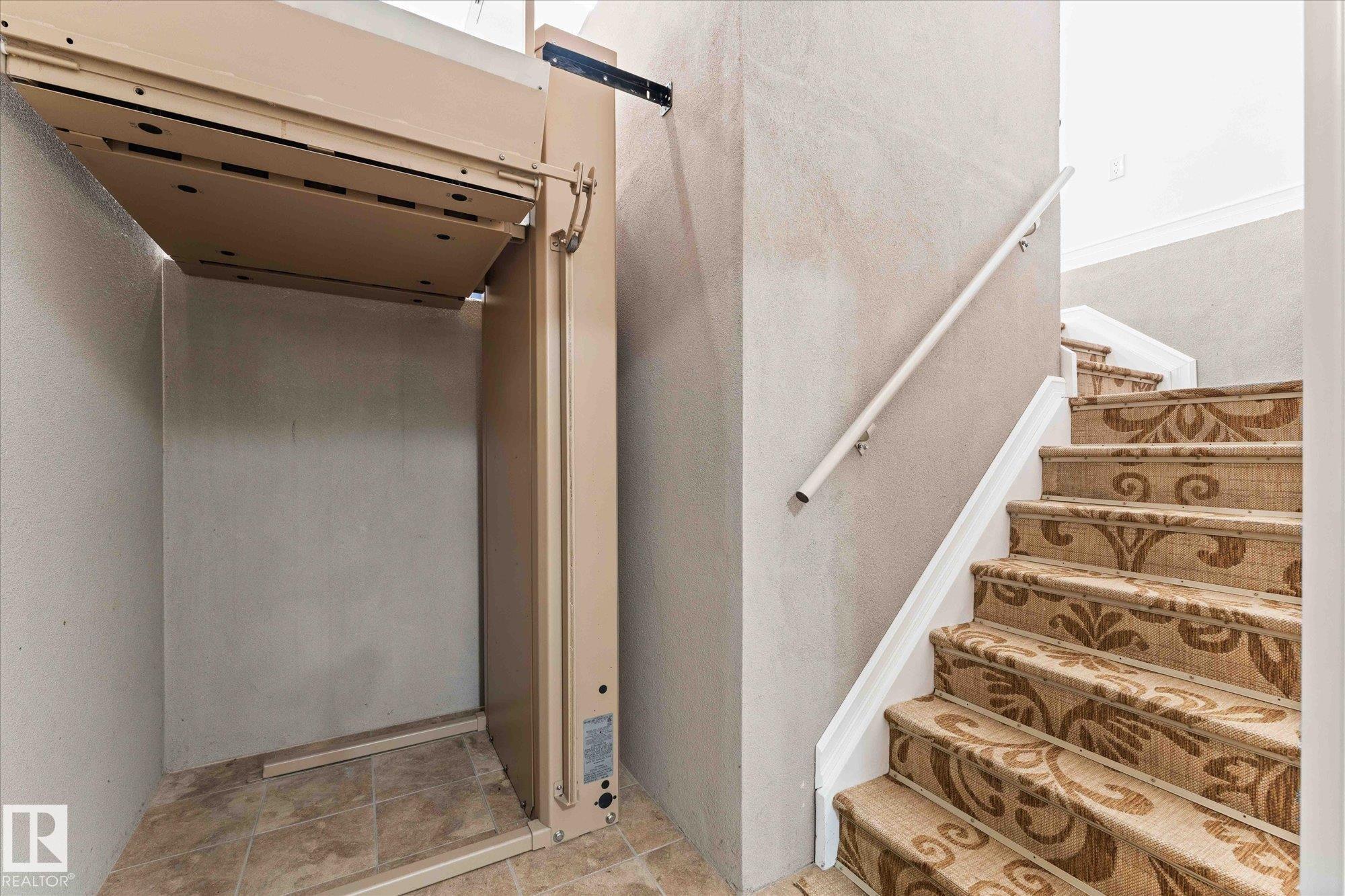 Designed with elegance & inclusive living in mind, this lovingly cared for 5-bedroom, 5-bathroom home offers luxurious finishes and accessible features to suit diverse needs. Every inch of this custom-built 4000+ sq ft home has been intricately designed in every detail. Upon entering, you are greeted with soaring ceilings & a grand spiral staircase setting the tone for this beautiful home. The spacious gourmet kitchen has high-end appliances, tall rich custom cabinetry, a walk-through pantry, & a massive island, perfect for entertaining. All 5 bedrooms are a generous size with walk-in closets. Upstairs there is an open concept bedroom & bathroom, ideal for someone needing a barrier-free space. A wall can be added to the room, making 2 masters with ensuites on the main level. The basement has a generous living space, wet bar, 3 bedrooms & 2 full bathrooms. This home features a rear attached garage with two lifts leading to each level. This home is truly one of a kind & radiates pride of ownership!
