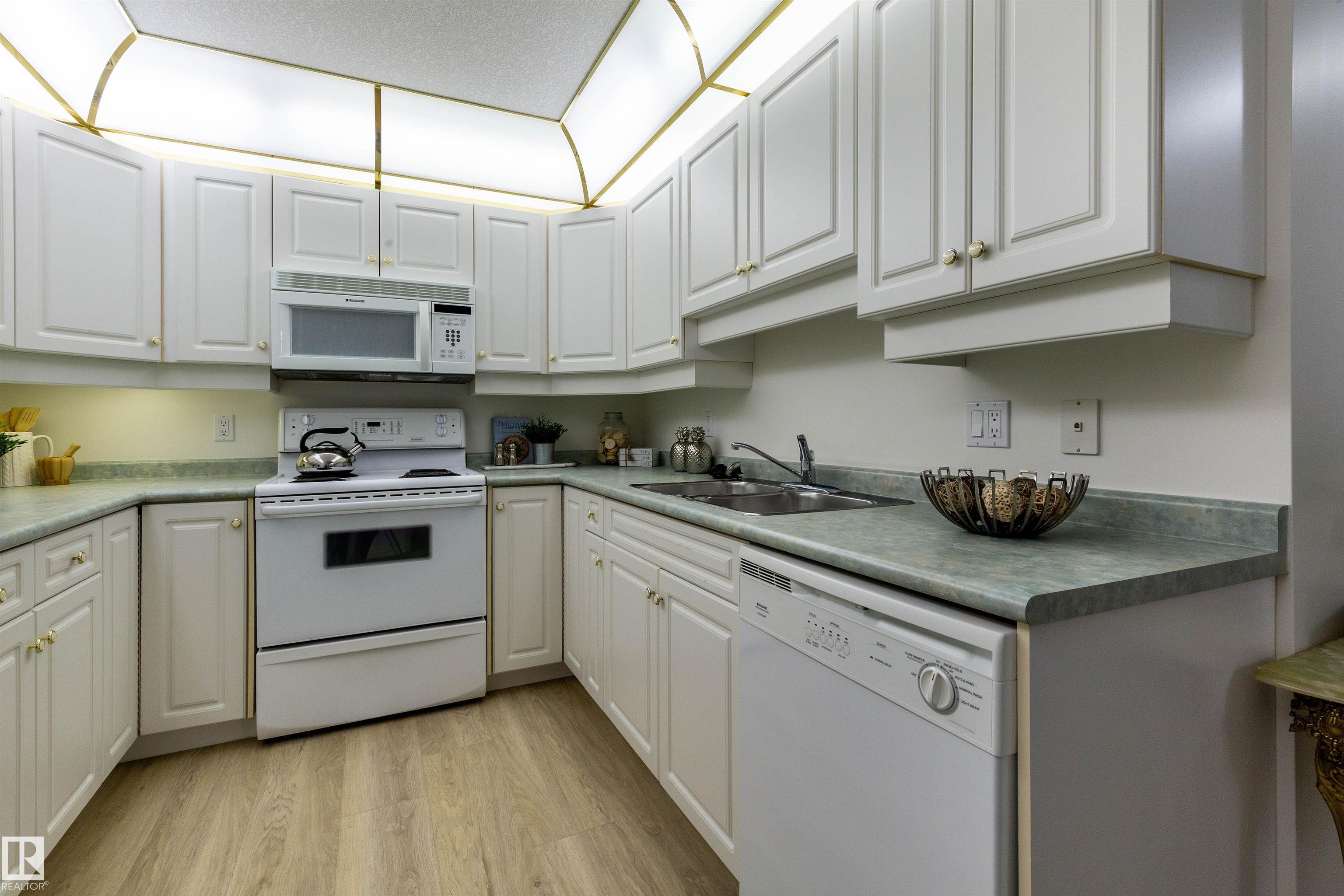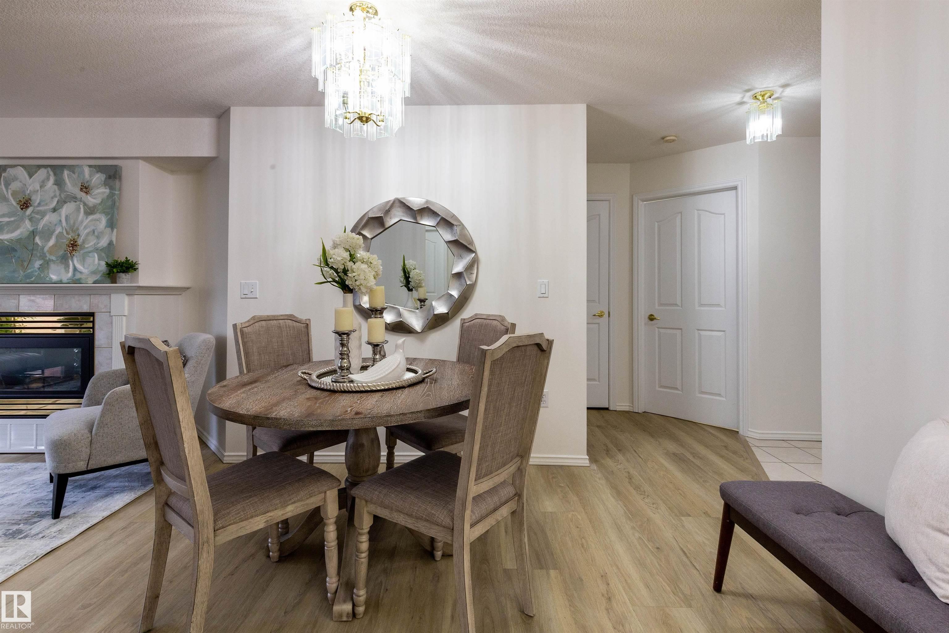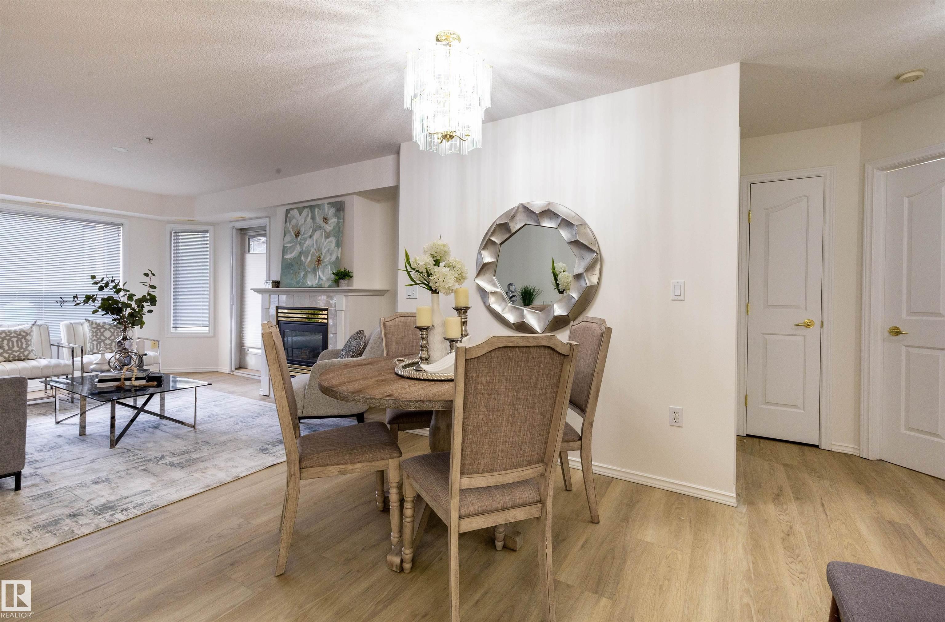 Fresh, Bright, and Move-In Ready! Adult (55) living at it's finest! This 2-bedroom, 1-bathroom main-floor suite offers 849 sq. ft. of comfortable living, tucked quietly at the back of the complex. Enjoy a spacious balcony with natural gas hookup--perfect for summer grilling. Recently updated with fresh paint, new luxury vinyl plank flooring, and modern lighting, the suite feels stylish and inviting. You'll love the convenience of a pantry and in-suite laundry. The building offers fantastic amenities: an exercise room, games room, and a social room with kitchen available for private gatherings. This friendly community hosts weekly coffee meet-ups and clubs--an ideal place to connect and belong. Heated underground parking included! All very close to shopping at the Market Place at Callingwood, walk to convenience stores and easy access to the WhiteMud and Henday.
