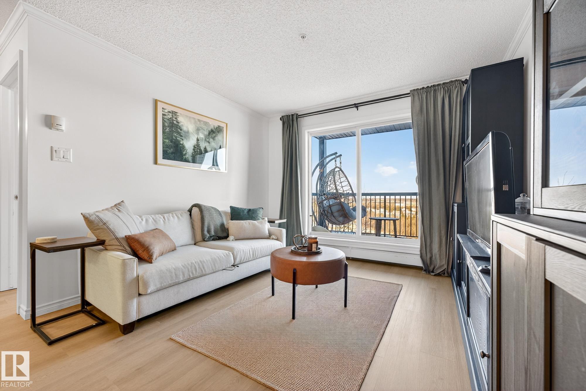 INCREDIBLE RIVER VALLEY VIEWS! Welcome to The Avenue at Hermitage, perfectly located on the beautiful, picturesque, serene riverbanks of Edmonton's desirable community of Canon Ridge. This 2-bedroom, 2-bathroom condo offers a well-designed layout features a modern upgraded kitchen with quartz counter tops, new stainless-steel appliances and new vinyl plank flooring. The bright, open living room is ideal for both relaxing and entertaining with gorgeous views. Primary is spacious with walkthrough closet into the 4 piece ensuite. Both bedrooms face the River Valley for additional views! In-suite side by side new washer/dryer and 2 TITLED UNDERGROUND PARKING STALLS complete this unit. Additional amenities include convenient access to bus stop, neighbourhood park, river valley park & trails, and quick access to Yellowhead Trail and Anthony Henday. The perfect starter home or excellent investment property!