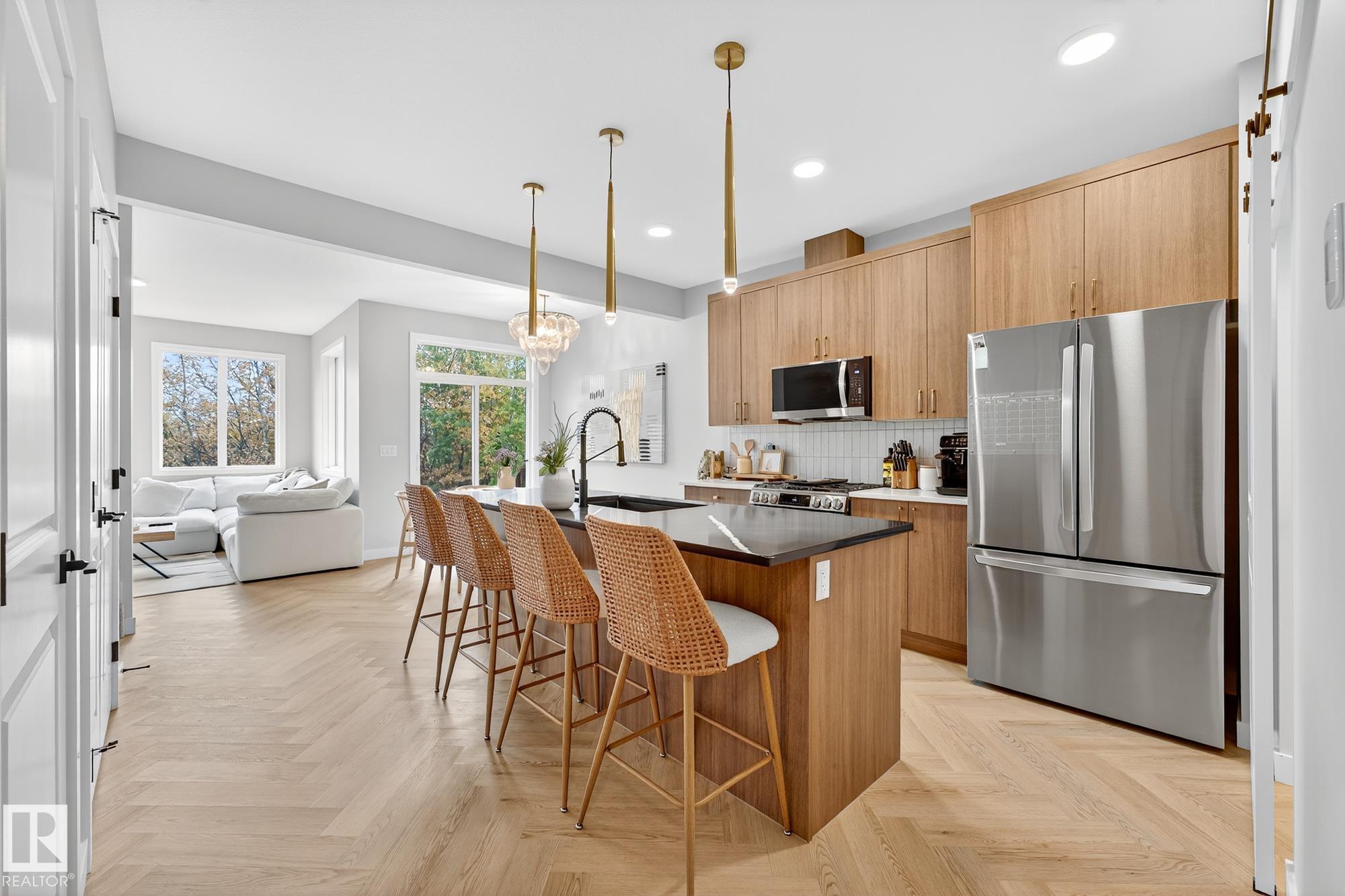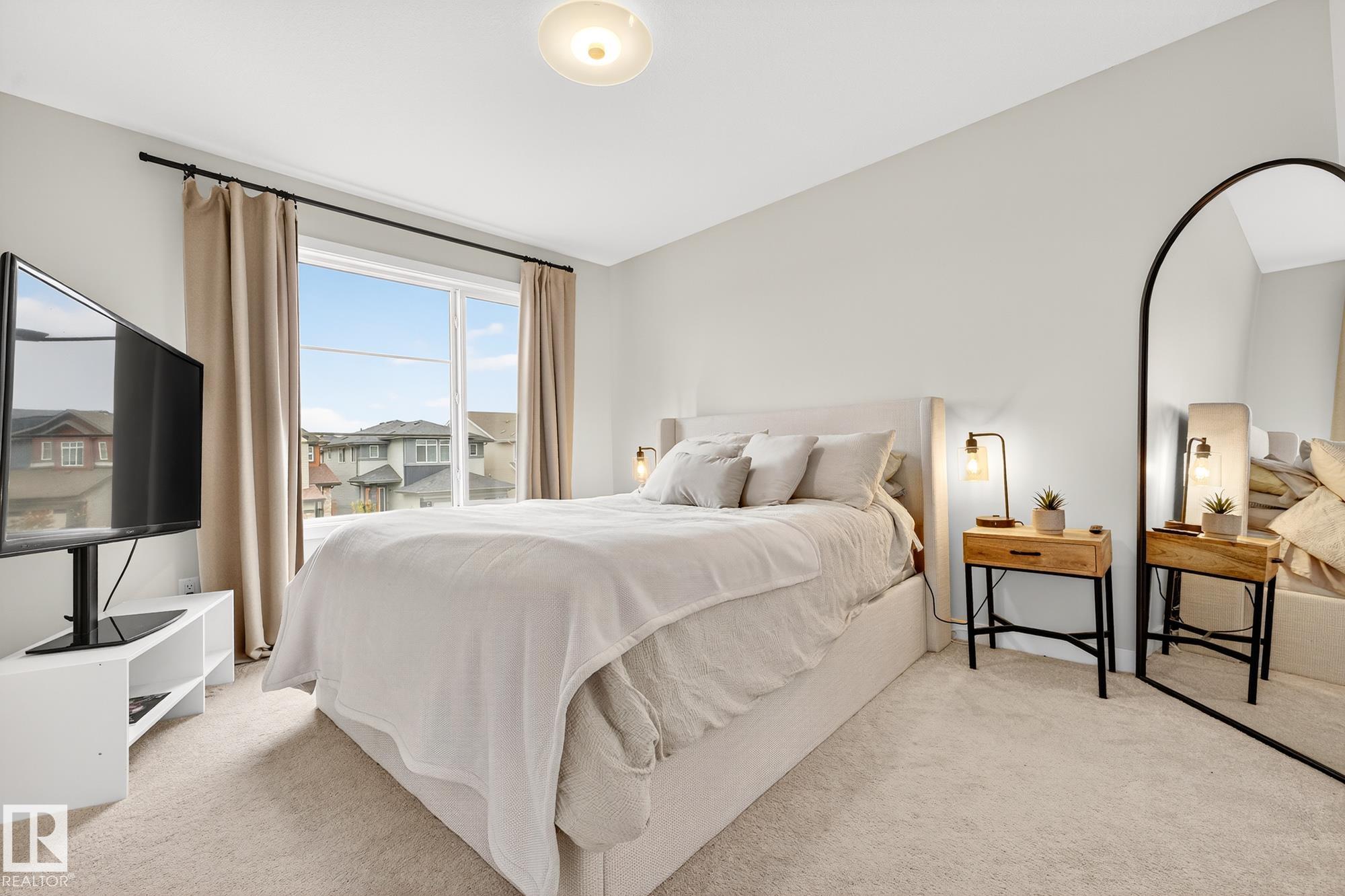 Welcome to this stunning home in South Edmonton, crafted by the multi-award-winning builder, Rohit! BACKING TREES!! FULLY LANDSCAPED FRONT AND BACK. SIDE Entrance!! This beautiful 2-storey home showcases an open-concept layout, 9' ceilings and expansive windows that flood the space with natural light. The chef-inspired kitchen features ample counter space, gas stove, stylish cabinetry, perfect for everyday living and entertaining. The adjoining dining area is ideal for hosting guests and offers direct access to the backyard through patio sliders. Upstairs, the primary suite is a serene retreat, complete with a 4-piece ensuite and a walk-in closet. Two additional bedrooms, a 4-piece main bath, and convenient upstairs laundry complete the upper level. Additional features include: a 2-piece powder room, mudroom, and a front-attached garage.This home offers an unbeatable combination of style, comfort, and convenience. Perfectly positioned with quick access to Hwy 2, Anthony Henday, schools, and airport