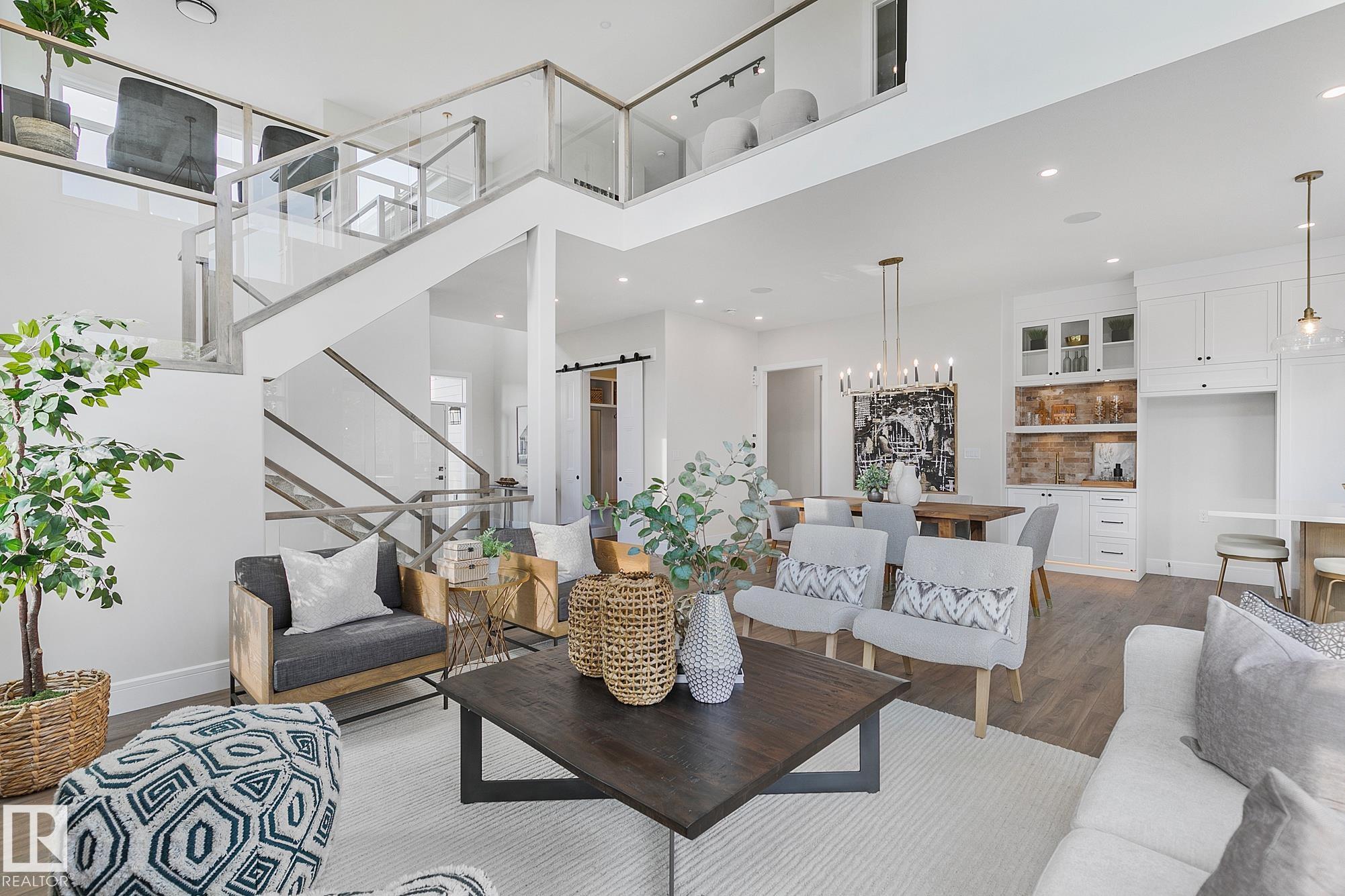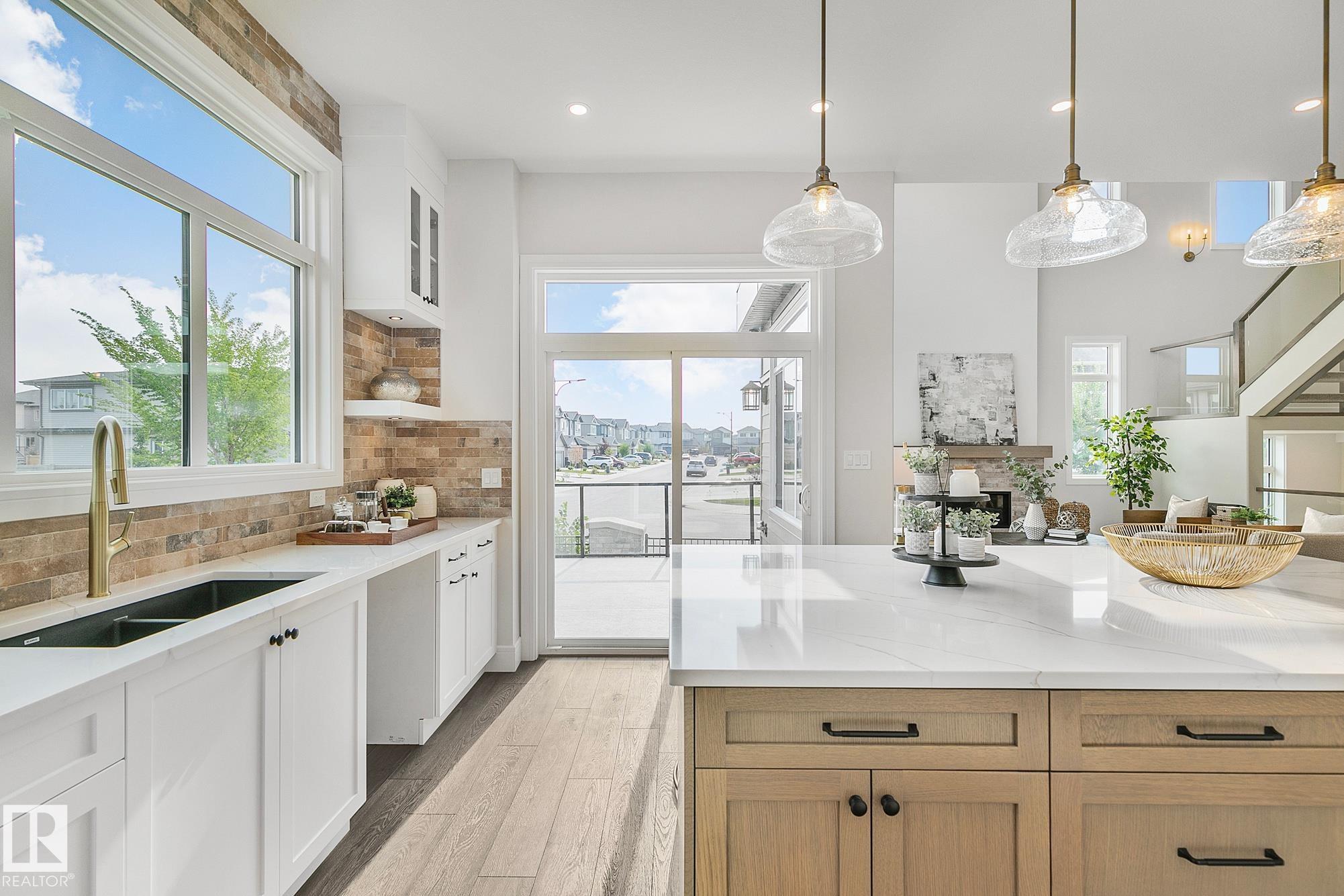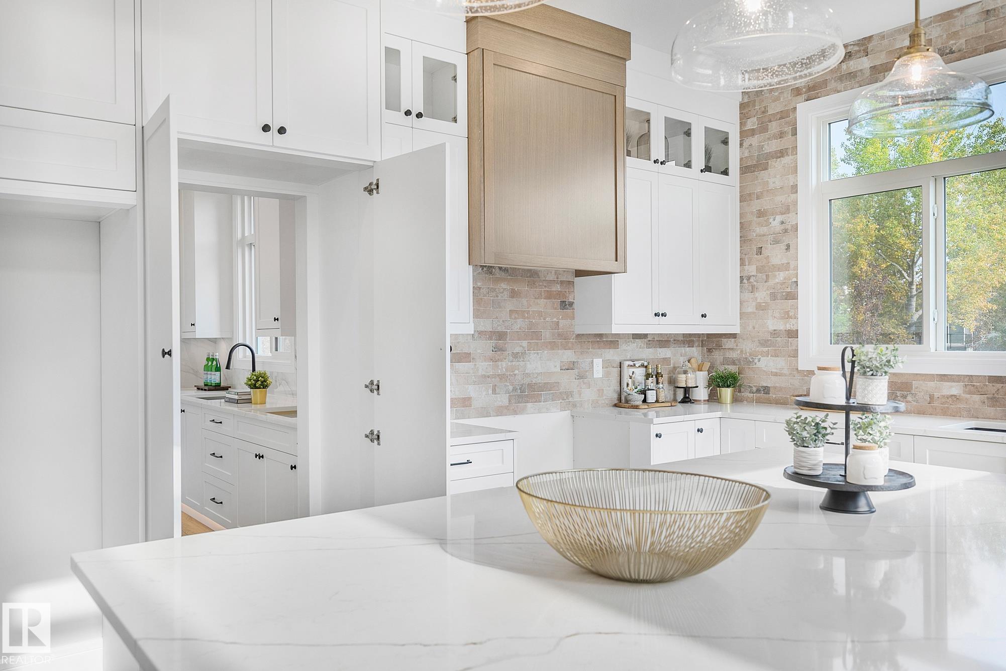Stunning! Legacy home /w 5 bdrms & 4.5 baths that bestows over 3400 sqft of luxury living &awaits only you! Unique &functional plan /w versatility for all situations. Main floor great rm is anchored by a gas fireplace that highlights a generous open to above feature while noting a customized chefs kitchen that extends to a "hidden" spice kitchen /w provisions for a 2nd cooktop, d/w, fridge, sink & microwave! This 2nd kitchen boasts 2nd exterior access for BBQ's or ease to backyard living! MAIN FLR BDRM highlights its own w/i closet & ensuite! Glorious mudroom/w cubbies &closed storage soars into an ovrszd garage that is home to a SEPARATE ENTRANCE! Legal suite? Workshop?...the possibilities are endless! Main flr office completes this level. Upstairs highlights a owners retreat w/ amazing views overlooking mature growth green space; an ensuite w/dual vanities & w/i closet. 3 more bdrms in addition to 2 more full bthrms are nestled near the amazing bonus rm with open to below view! You found your forever!