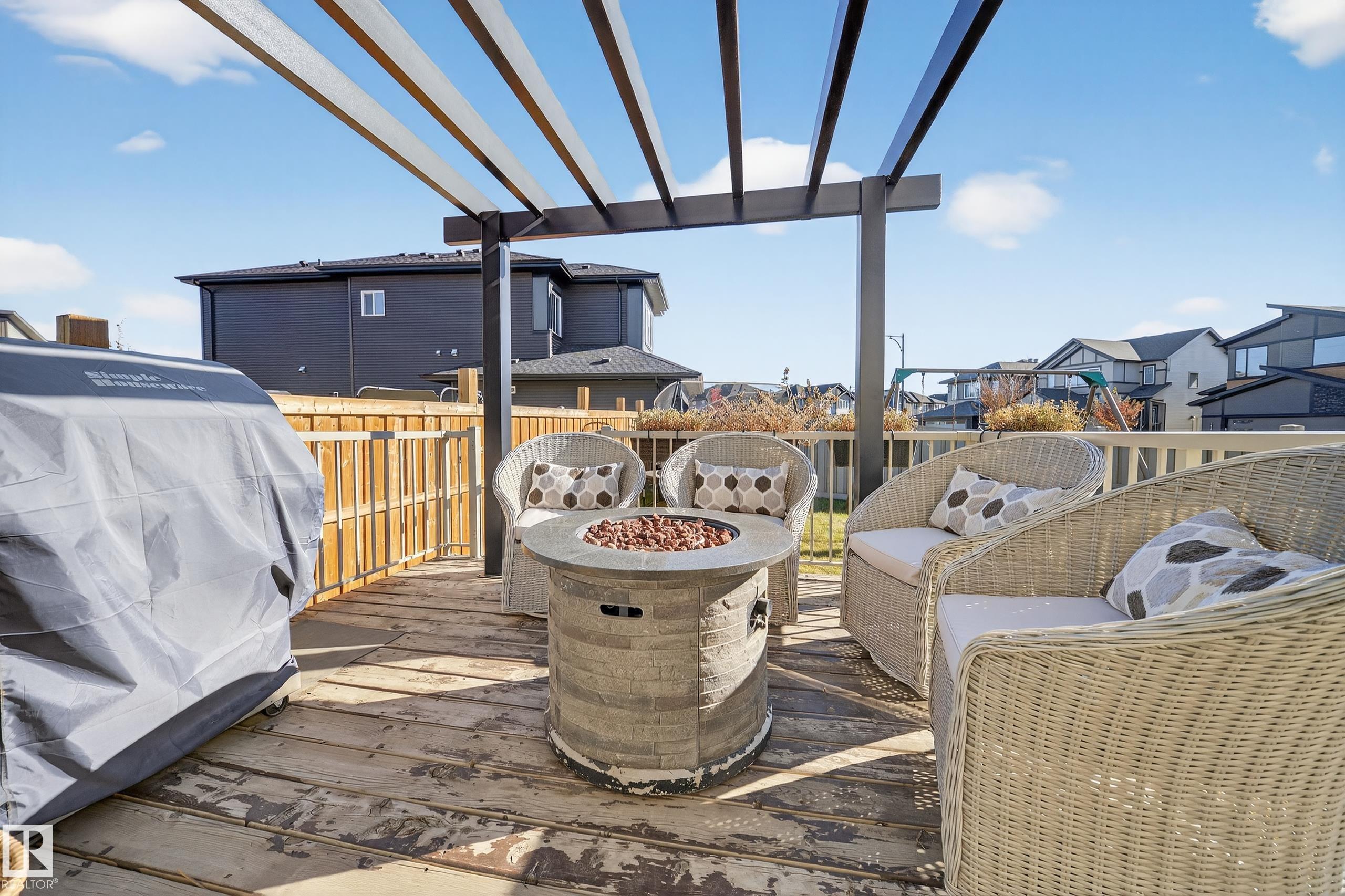 Welcome to this beautifully designed 5 bed, 3.5 bath home with a legal basement suite in the desirable Chappelle! Offering over 2,100 sq.ft. of elegant living space, this home highlights superior craftsmanship with granite countertops, rich maple cabinetry, stainless steel appliances, knockdown ceilings, ceramic tile, and stylish baseboards. The open-concept main floor features a chef's kitchen with soft-close drawers, glass uppers to the ceiling, walk-through pantry, 5-burner gas cooktop, built-in oven, and a large island overlooking the cozy family room with a sleek gas fireplace. A main-floor den adds space for work or study. Upstairs includes a bonus room, laundry, 3 bedrooms which includes a luxurious primary suite with double sinks, soaker tub, tiled shower, and walk-in closet. The fully finished basement has 2bedroom legal suite. Close to parks, schools, shopping & Edmonton International Airport!