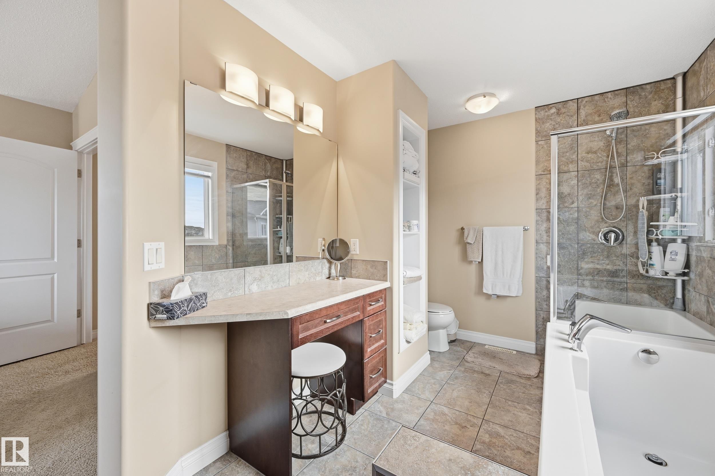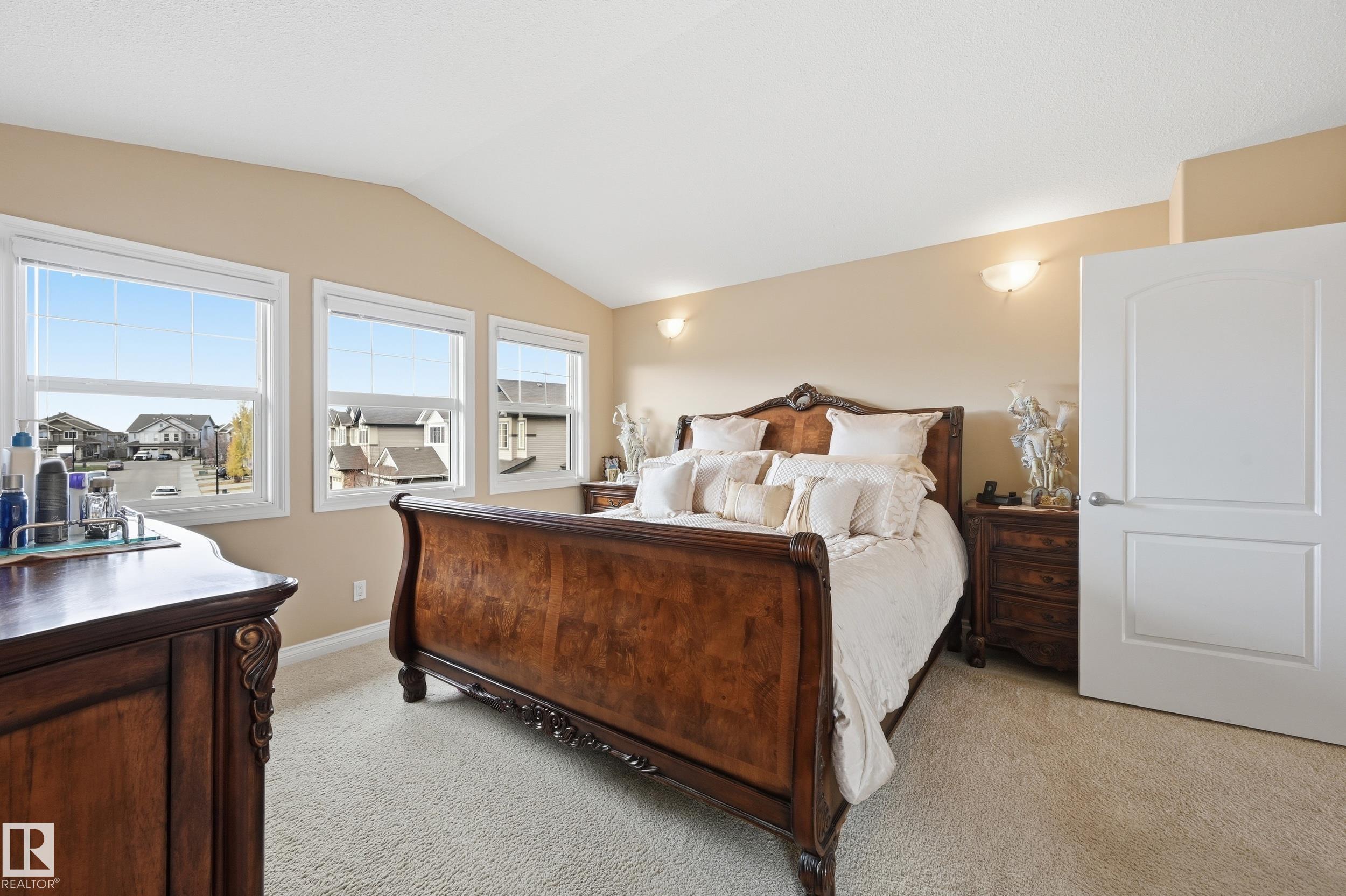 Welcome to this stunning custom-built property offering over 2,700 sqft of beautifully finished living space on a wide lot. From the moment you step inside, the spacious foyer sets the tone for this warm and inviting home. The open-concept main floor seamlessly connects the living room, dining area, and kitchen--flooded with natural light and framed by expansive lake views through thoughtfully added windows. Upstairs, a bright hallway leads to a large bonus room overlooking the pond, two spacious bedrooms, and a luxurious primary suite with a walk-in closet and a serene ensuite. The fully finished basement offers a generous rec room with a wet bar, full bath, and additional bedroom. Outside, enjoy your massive two-tiered deck--perfect for BBQs, gatherings, or simply relaxing with lakeside views. The landscaped yard features irrigation, a retaining wall, and direct access to walking trails. An oversized garage and access to Chapelle's recreation center complete this perfect package.