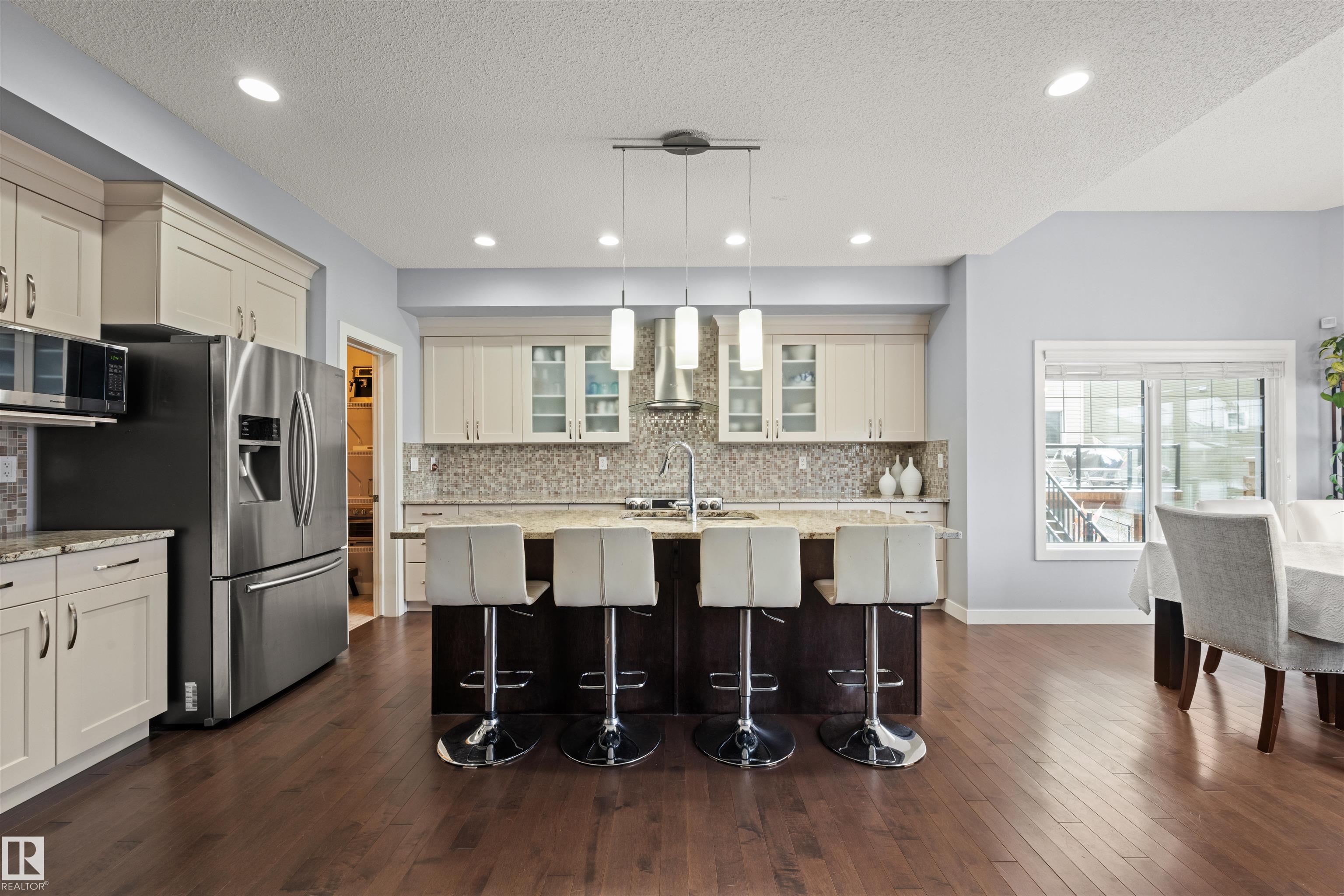 BACKING THE POND IN CHAPPELLE! A rare opportunity to own a true greenspace-backing home with no rear neighbors and tranquil water views. The elevated two-tier deck offers a private setting for morning coffee, summer evenings, or entertaining while enjoying the open backdrop and sunrise exposure. Inside, this immaculately maintained home reflects pride of ownership throughout. The open-concept main floor is bright and functional, with the kitchen flowing seamlessly into the dining and living areas to create an inviting space filled with natural light. Upstairs, the spacious primary suite features desirable east exposure and a versatile flex nook ideal for reading, working from home, or fitness. A cozy bonus room, two additional bedrooms, and a full bath complete the upper level. The unspoiled basement provides outstanding potential for future development and awaits your creative vision. Situated on a quiet, walkable street near parks, trails, schools, shopping, and quick access to the Henday. A rare find!