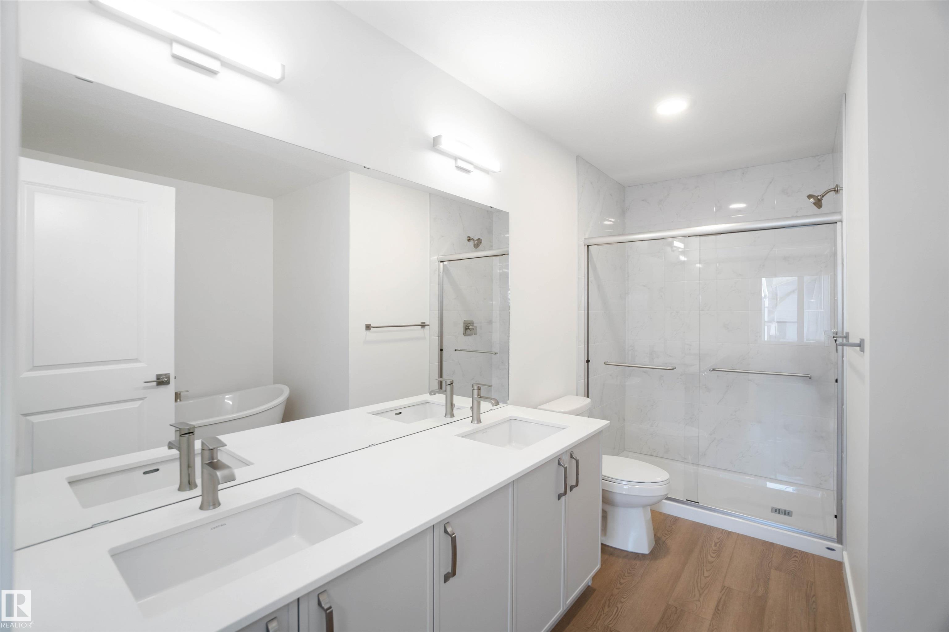 Built by Sterling Homes, this well-designed home offers a flexible layout ideal for today's families. Features include a double attached garage with floor drain, separate side entrance, 9-ft ceilings on the main and basement, and luxury vinyl plank flooring throughout the main floor. A welcoming foyer leads to a full 3-pc bath with a walk-in shower and a main-floor bedroom--perfect for guests or a home office. The open-concept nook, great room, and kitchen create a bright living space. The kitchen features an island with a flush eating ledge, a Silgranit undermount sink, a built-in microwave, pendant lighting, a chimney-style hood fan, a full-height tiled backsplash, soft-close cabinets, and a corner pantry. The great room includes an electric fireplace, large windows, and a patio door to the deck and backyard. Upstairs offers a primary suite with a walk-in closet and a 5-pc ensuite, bonus room, upper laundry, two additional bedrooms, and a full bath. Basement rough-ins included.