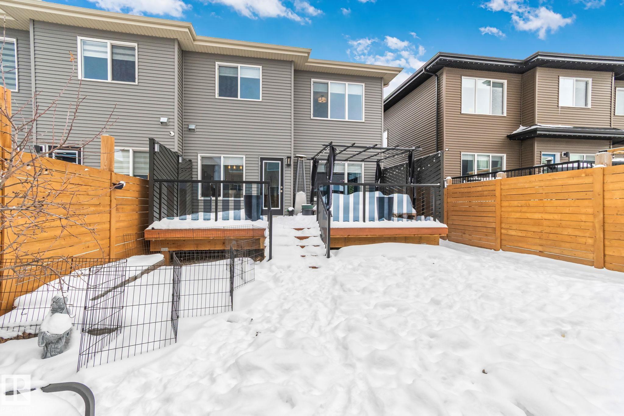 Stunning half duplex in desirable Charlesworth with NO CONDO FEES! This beautifully maintained home offers 3 spacious bedrooms, 2.5 bathrooms, and a double attached garage complete with a garage drain and water taps -- perfect for year-round convenience. The open-concept main floor is ideal for entertaining, featuring a modern kitchen, bright living area, and a cozy electric fireplace. Upstairs you'll find generous bedrooms, including a comfortable primary suite with ensuite, an electric towel warmer, convenient second-floor laundry, and newly added closet organizers for stylish and functional storage. Step outside to enjoy the new deck and fully landscaped yard, perfect for relaxing or hosting summer gatherings. Close to parks, schools, and amenities -- this home is truly a must see!