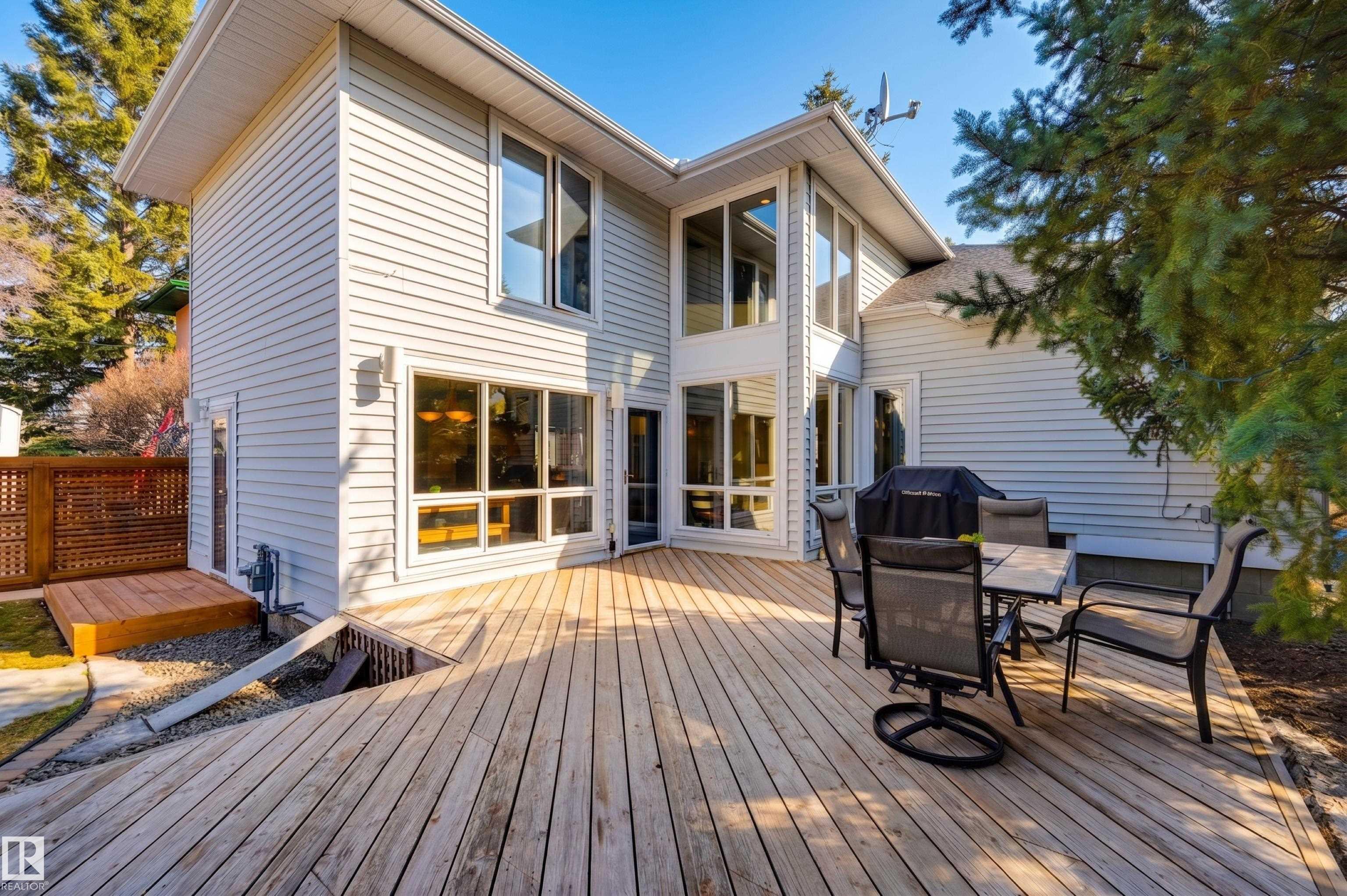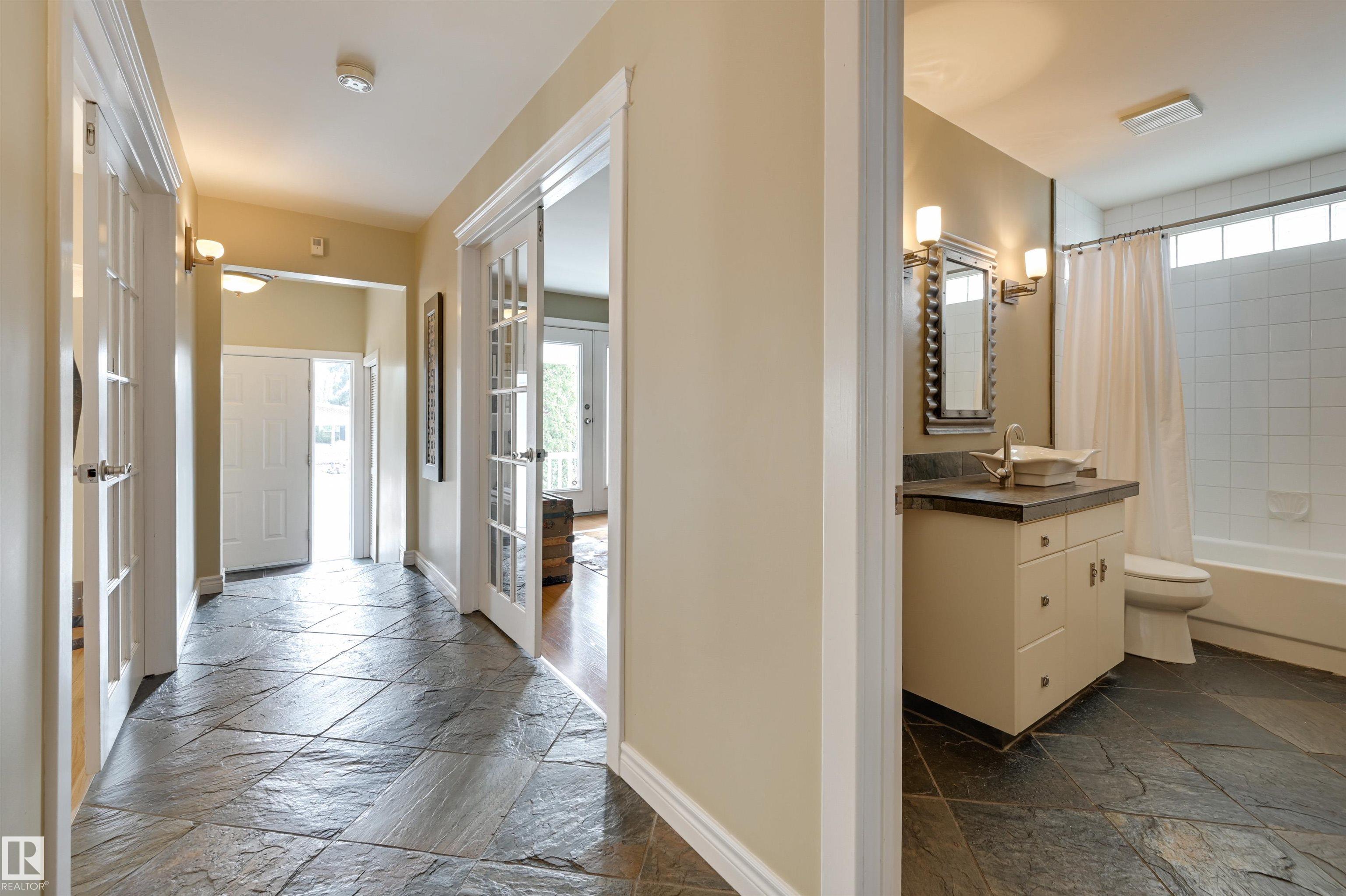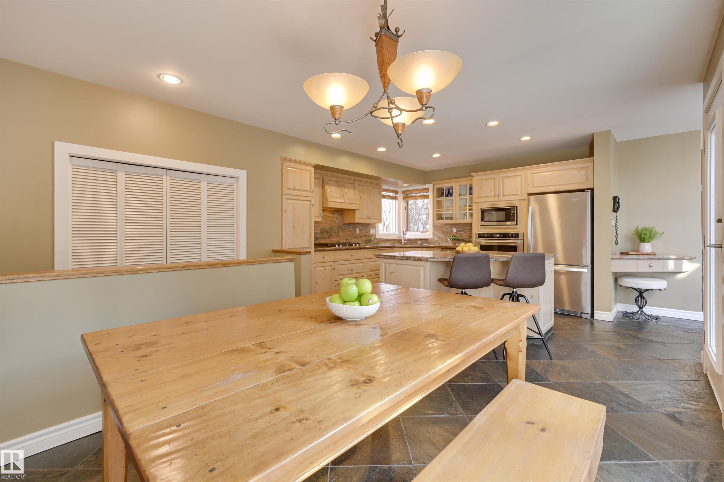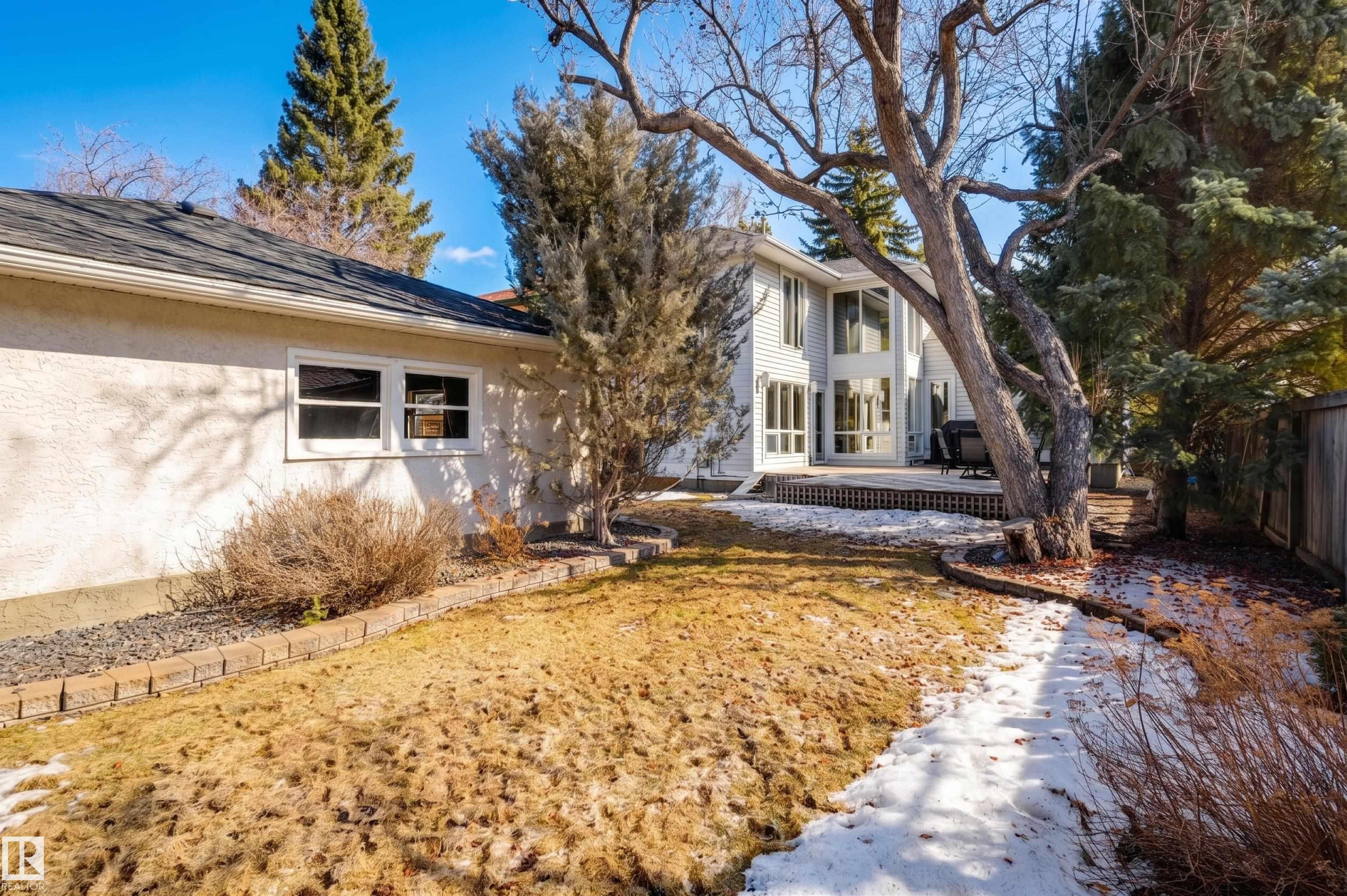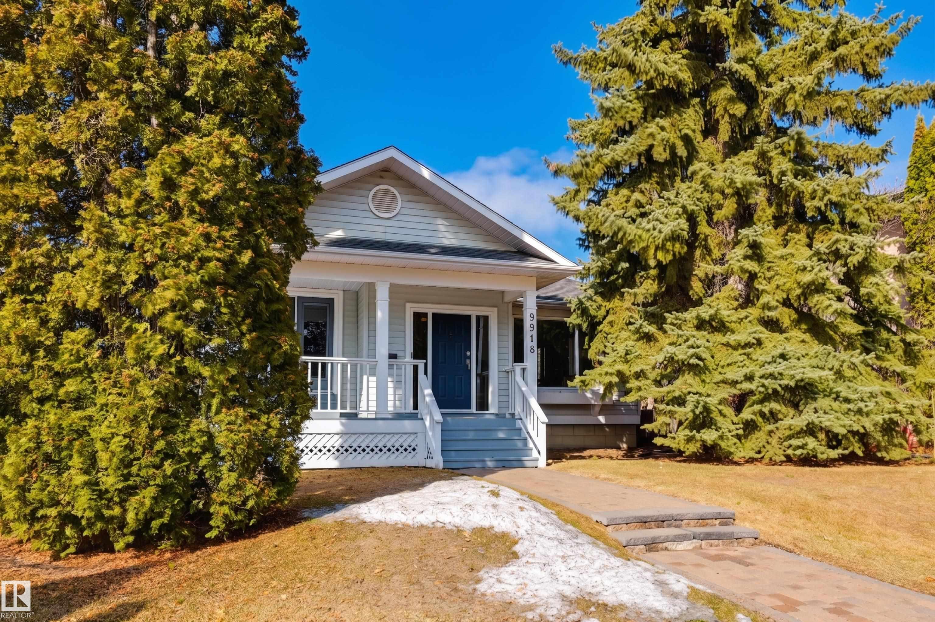 Tucked into the heart of Crestwood, this story-and-a-half blends charm with surprising scale, opening dramatically at the rear to a spacious porch and light-filled addition. The main floor offers two bedrooms/Offices -- one with garden doors to the front veranda -- alongside an inviting living room anchored by a floor-to-ceiling double-sided stone fireplace, seamlessly connecting to the family room (or can be used as a Dining Room) and 4-piece bath. The chef-inspired kitchen showcases slate floors, granite counters, a generous island with bar seating, and a sunny eat-in area. Upstairs, the private primary retreat features a 4-piece ensuite with Jacuzzi tub. The finished basement adds a large rec room, 4th bedroom, 3-piece bath, storage, and bright laundry. Outside, enjoy a fenced yard with cedar deck, green space, and double detached garage, just steps to MacKinnon Ravine. A rare opportunity to enjoy timeless character, thoughtful updates, and an unbeatable location just moments from the ravine.