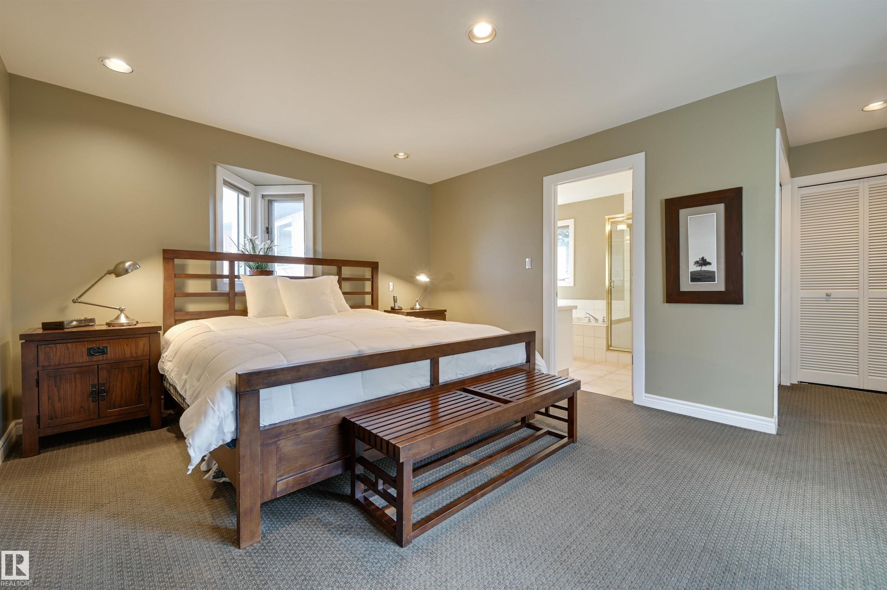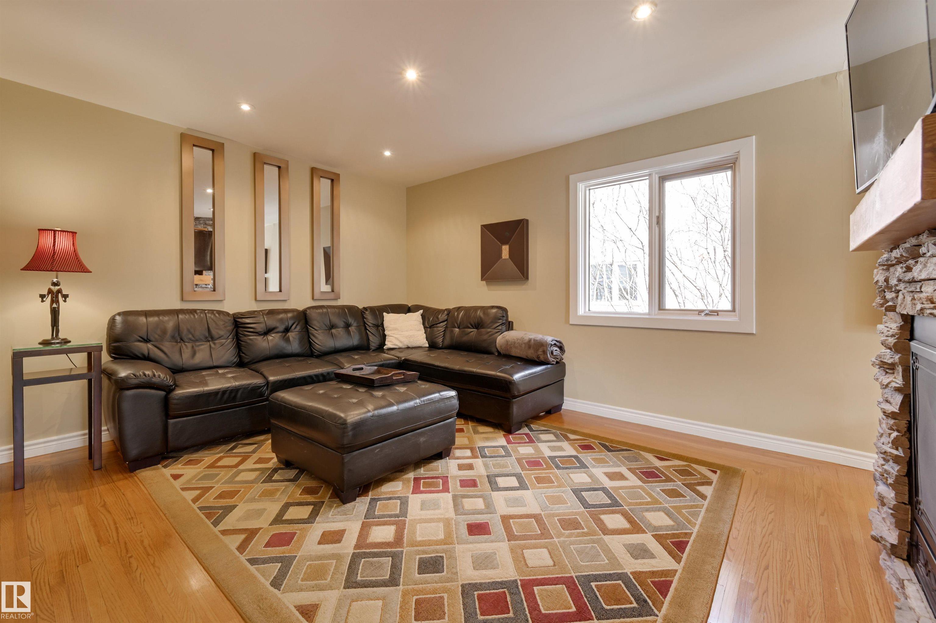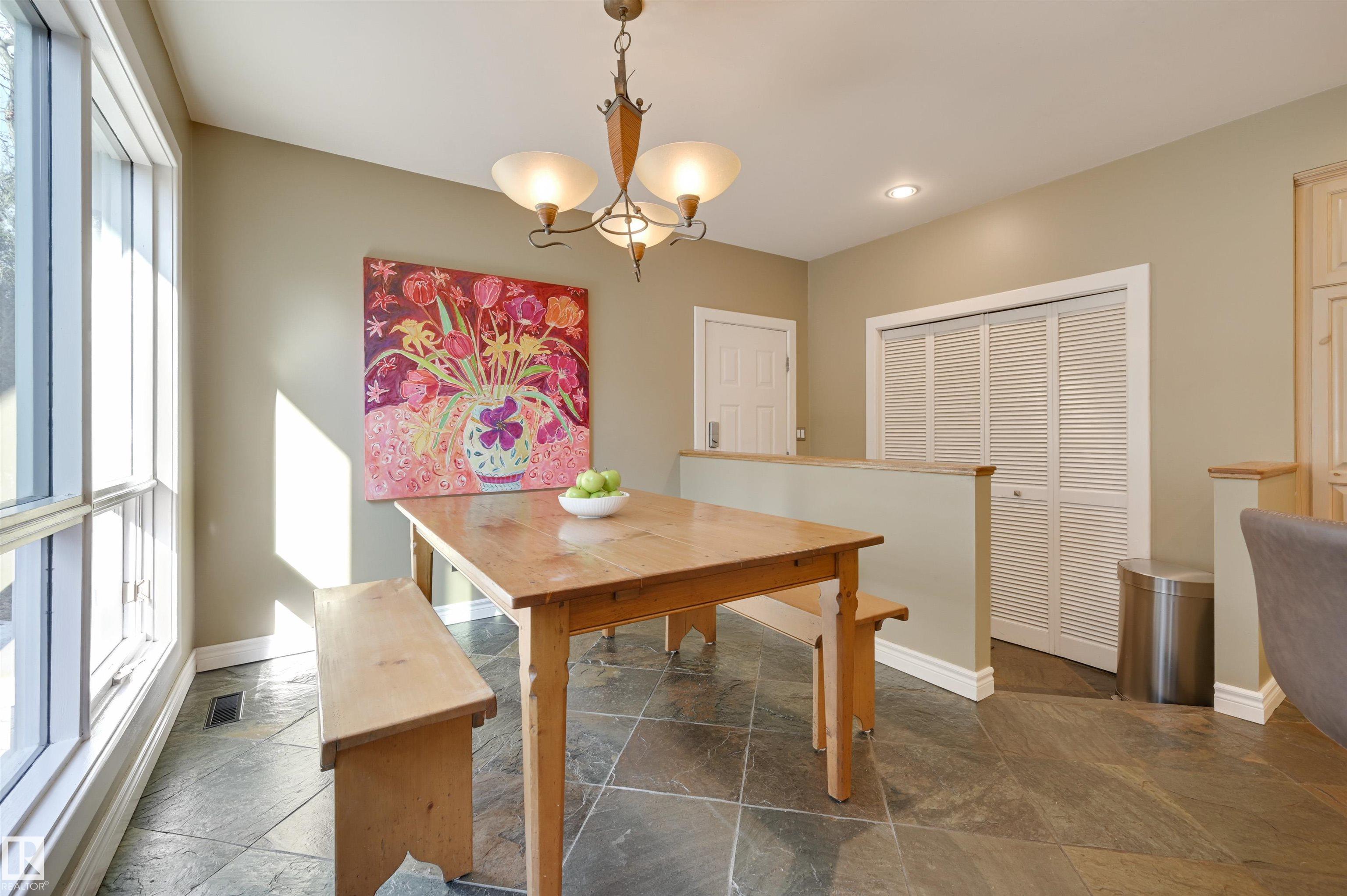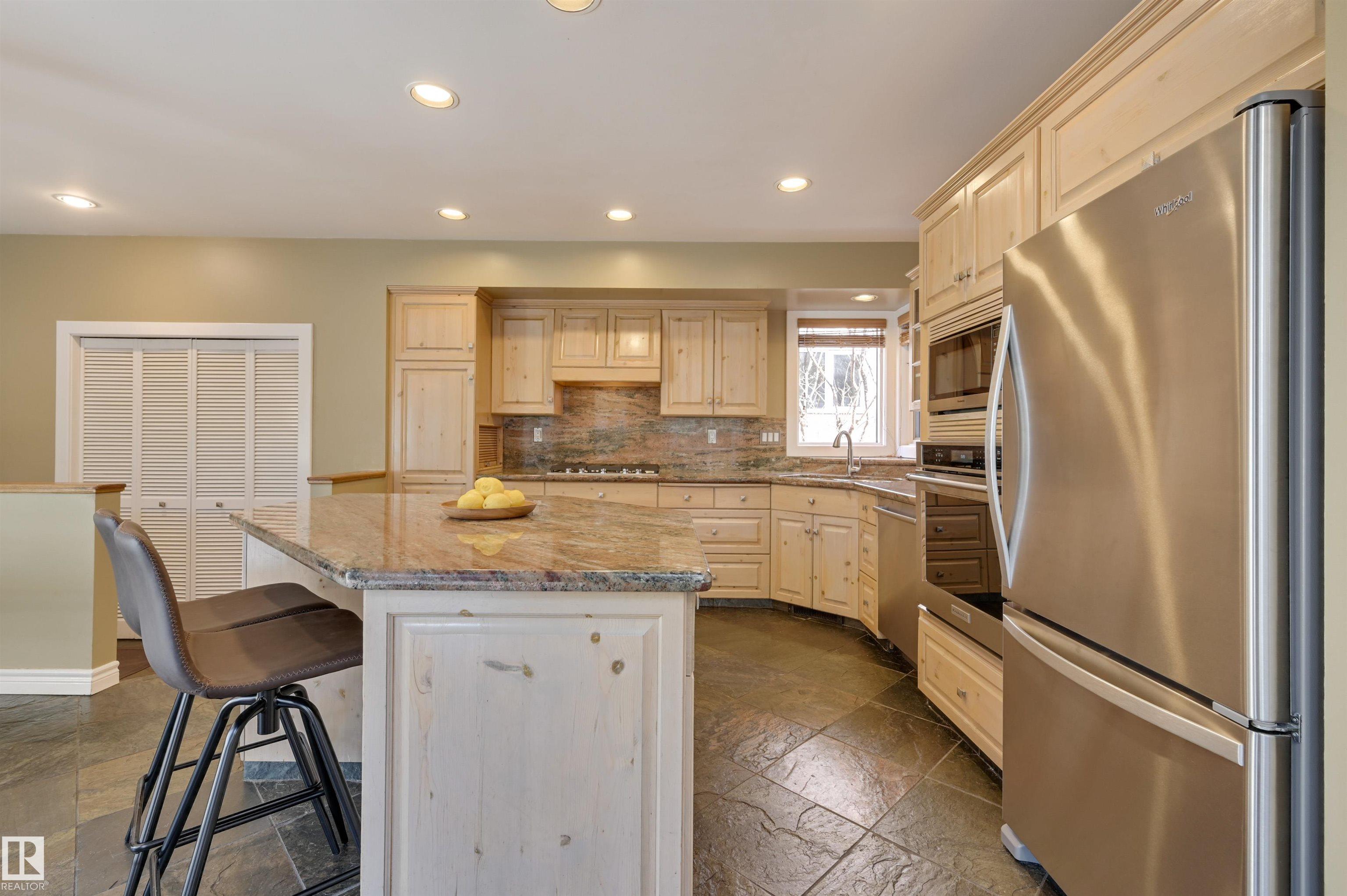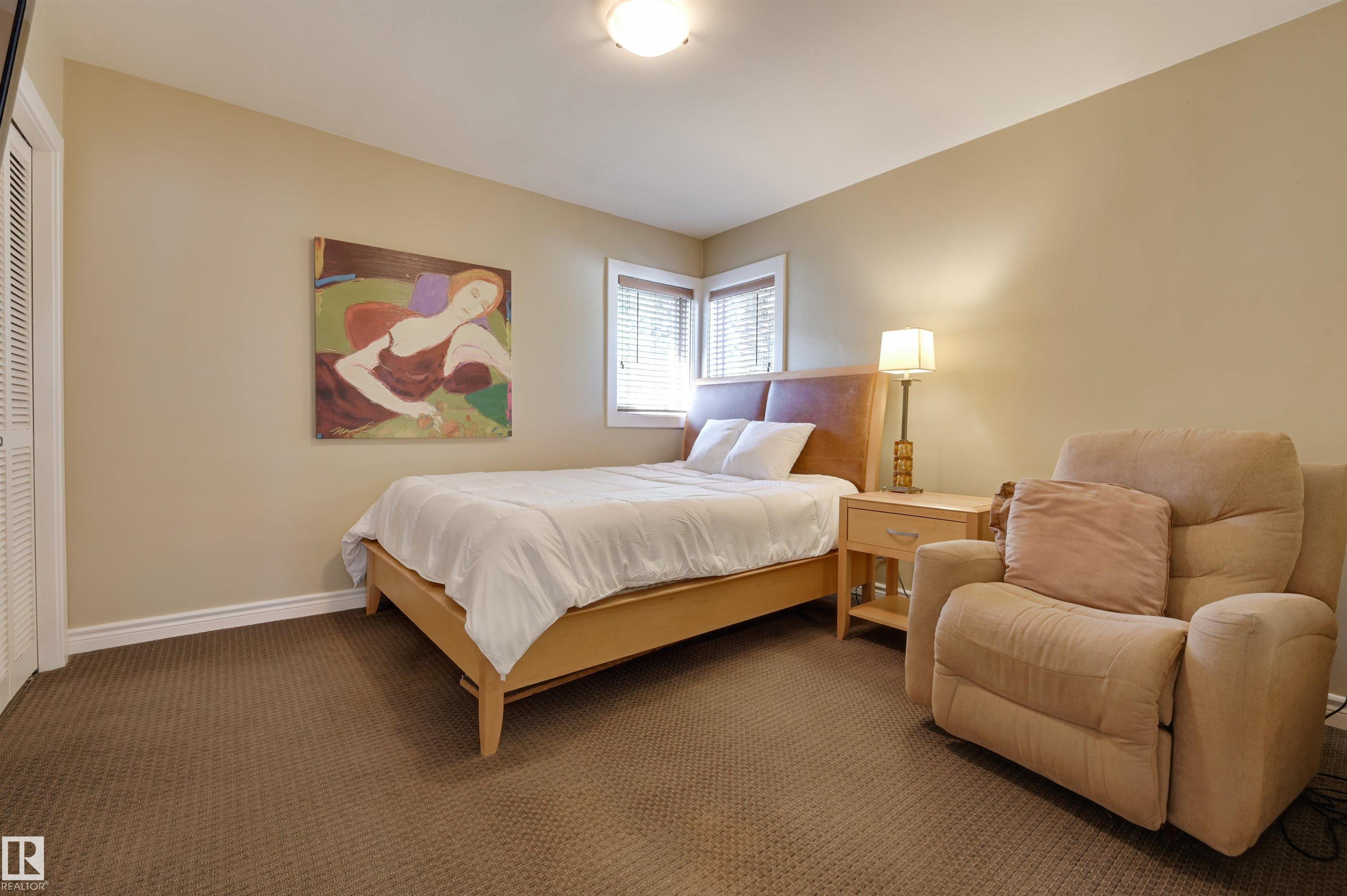 Tucked into the heart of Crestwood, this story-and-a-half blends charm with surprising scale, opening dramatically at the rear to a spacious porch and light-filled addition. The main floor offers two bedrooms/Offices -- one with garden doors to the front veranda -- alongside an inviting living room anchored by a floor-to-ceiling double-sided stone fireplace, seamlessly connecting to the family room (or can be used as a Dining Room) and 4-piece bath. The chef-inspired kitchen showcases slate floors, granite counters, a generous island with bar seating, and a sunny eat-in area. Upstairs, the private primary retreat features a 4-piece ensuite with Jacuzzi tub. The finished basement adds a large rec room, 4th bedroom, 3-piece bath, storage, and bright laundry. Outside, enjoy a fenced yard with cedar deck, green space, and double detached garage, just steps to MacKinnon Ravine. A rare opportunity to enjoy timeless character, thoughtful updates, and an unbeatable location just moments from the ravine.