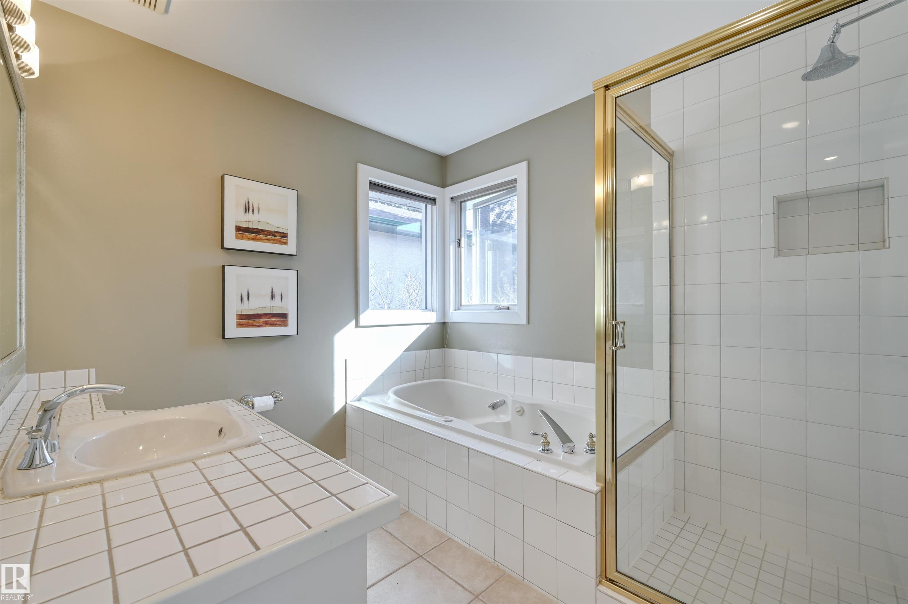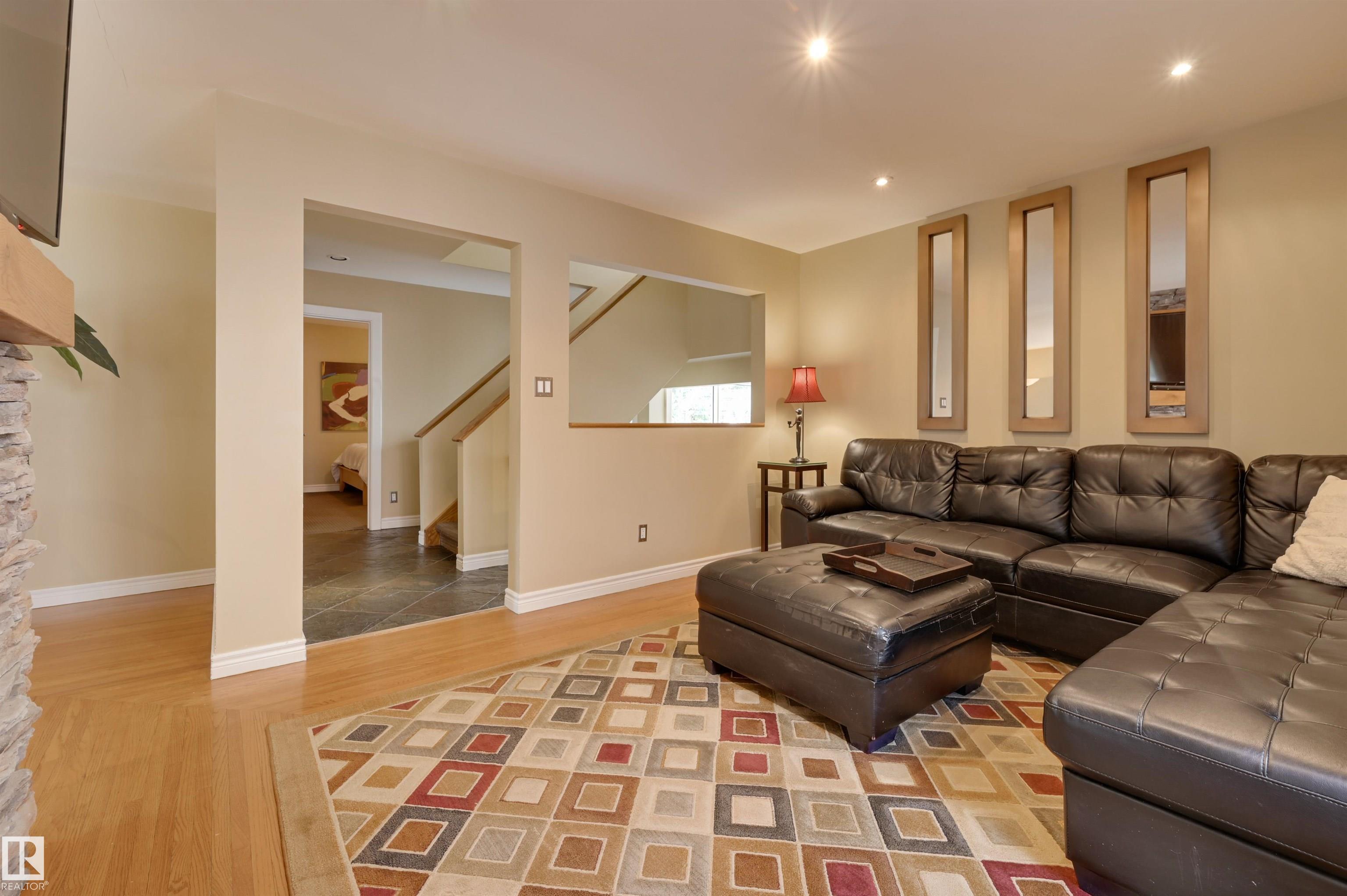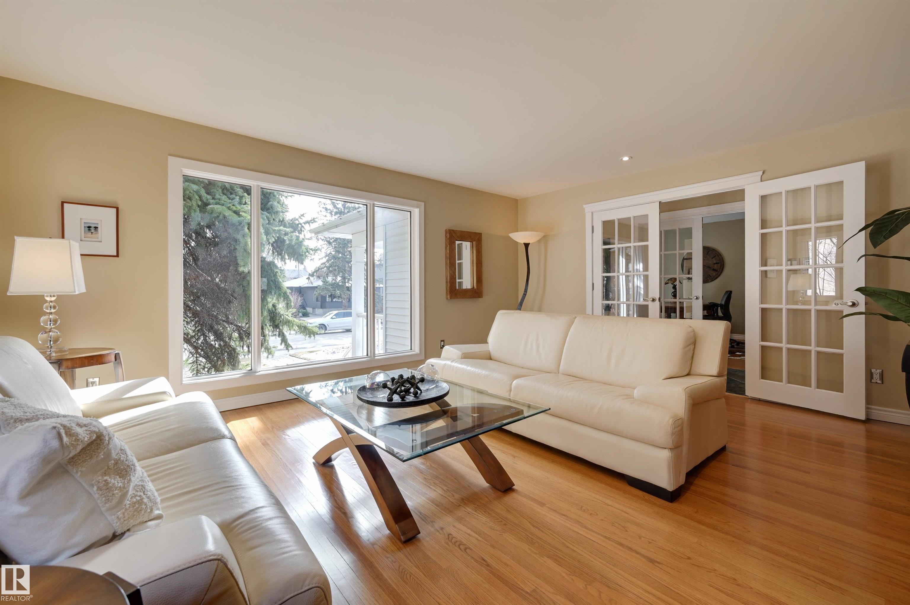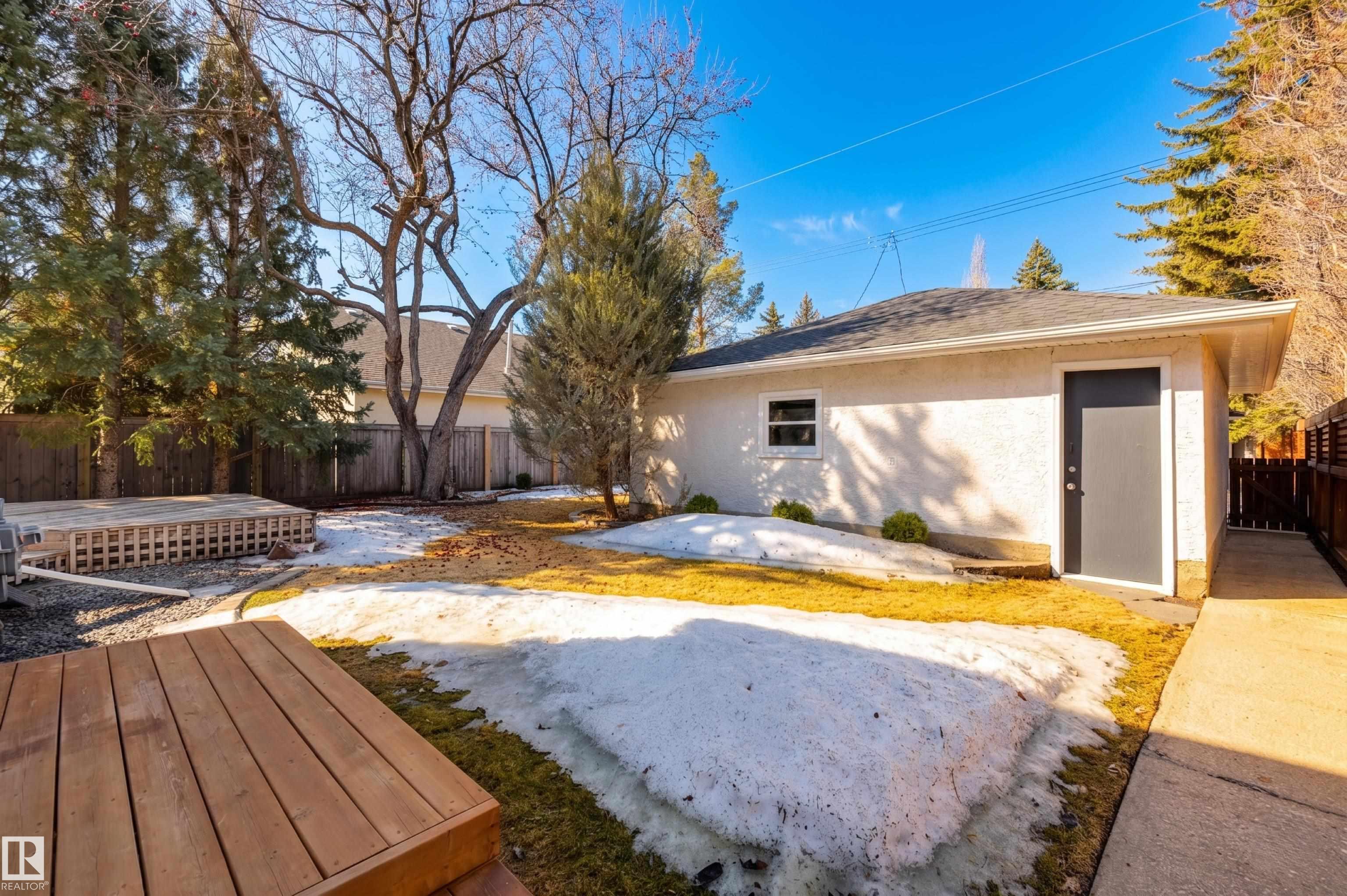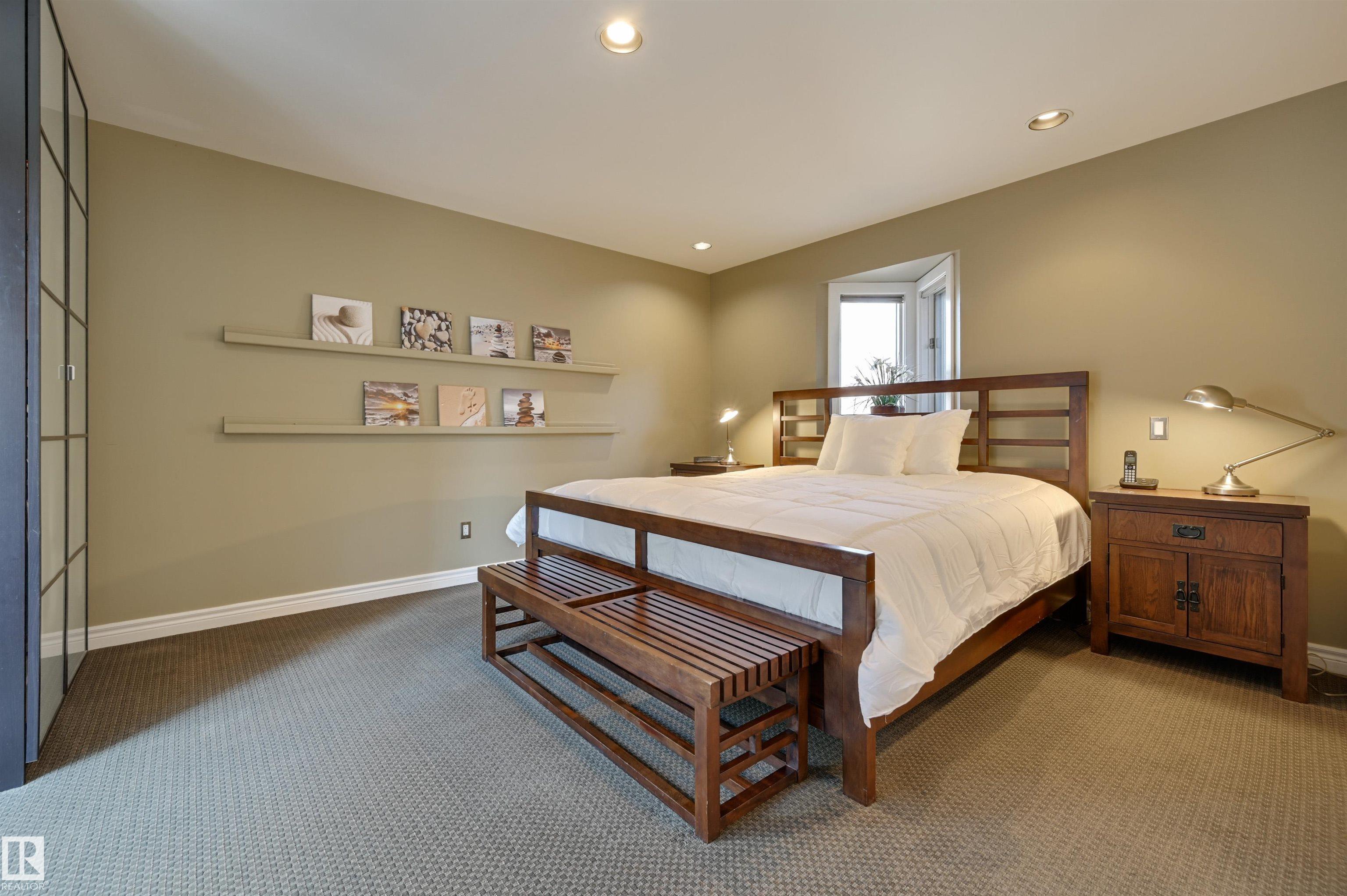 Tucked into the heart of Crestwood, this story-and-a-half blends charm with surprising scale, opening dramatically at the rear to a spacious porch and light-filled addition. The main floor offers two bedrooms/Offices -- one with garden doors to the front veranda -- alongside an inviting living room anchored by a floor-to-ceiling double-sided stone fireplace, seamlessly connecting to the family room (or can be used as a Dining Room) and 4-piece bath. The chef-inspired kitchen showcases slate floors, granite counters, a generous island with bar seating, and a sunny eat-in area. Upstairs, the private primary retreat features a 4-piece ensuite with Jacuzzi tub. The finished basement adds a large rec room, 4th bedroom, 3-piece bath, storage, and bright laundry. Outside, enjoy a fenced yard with cedar deck, green space, and double detached garage, just steps to MacKinnon Ravine. A rare opportunity to enjoy timeless character, thoughtful updates, and an unbeatable location just moments from the ravine.