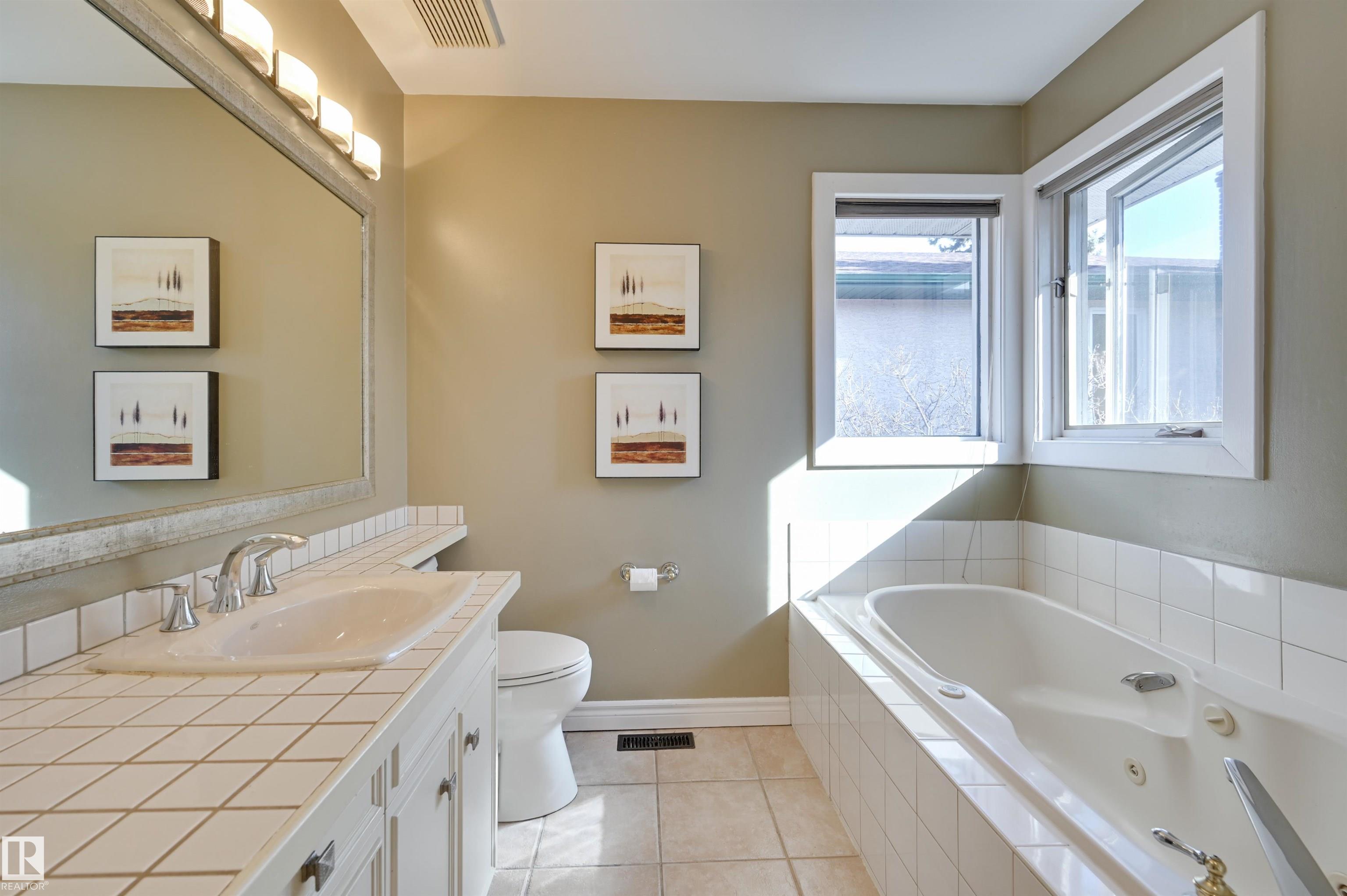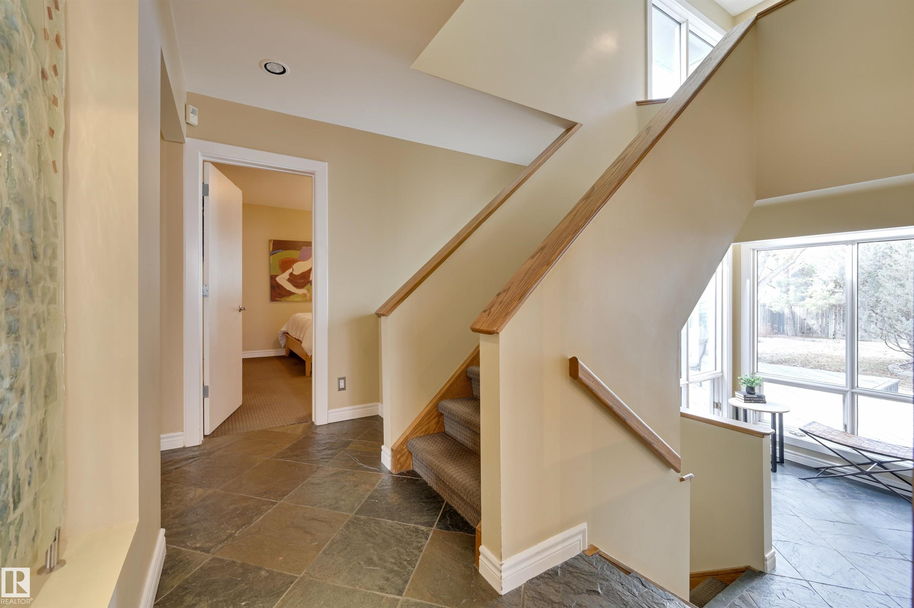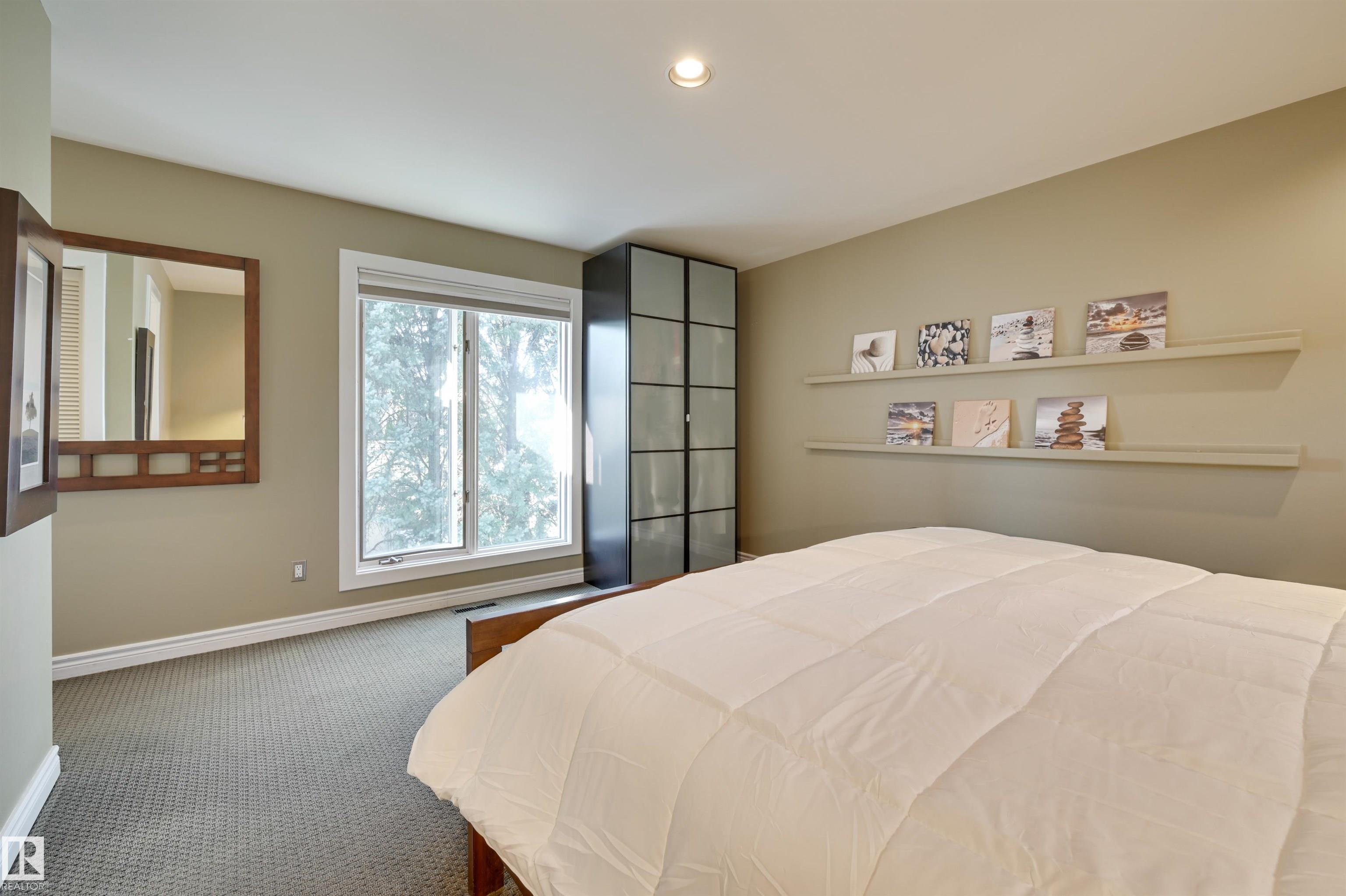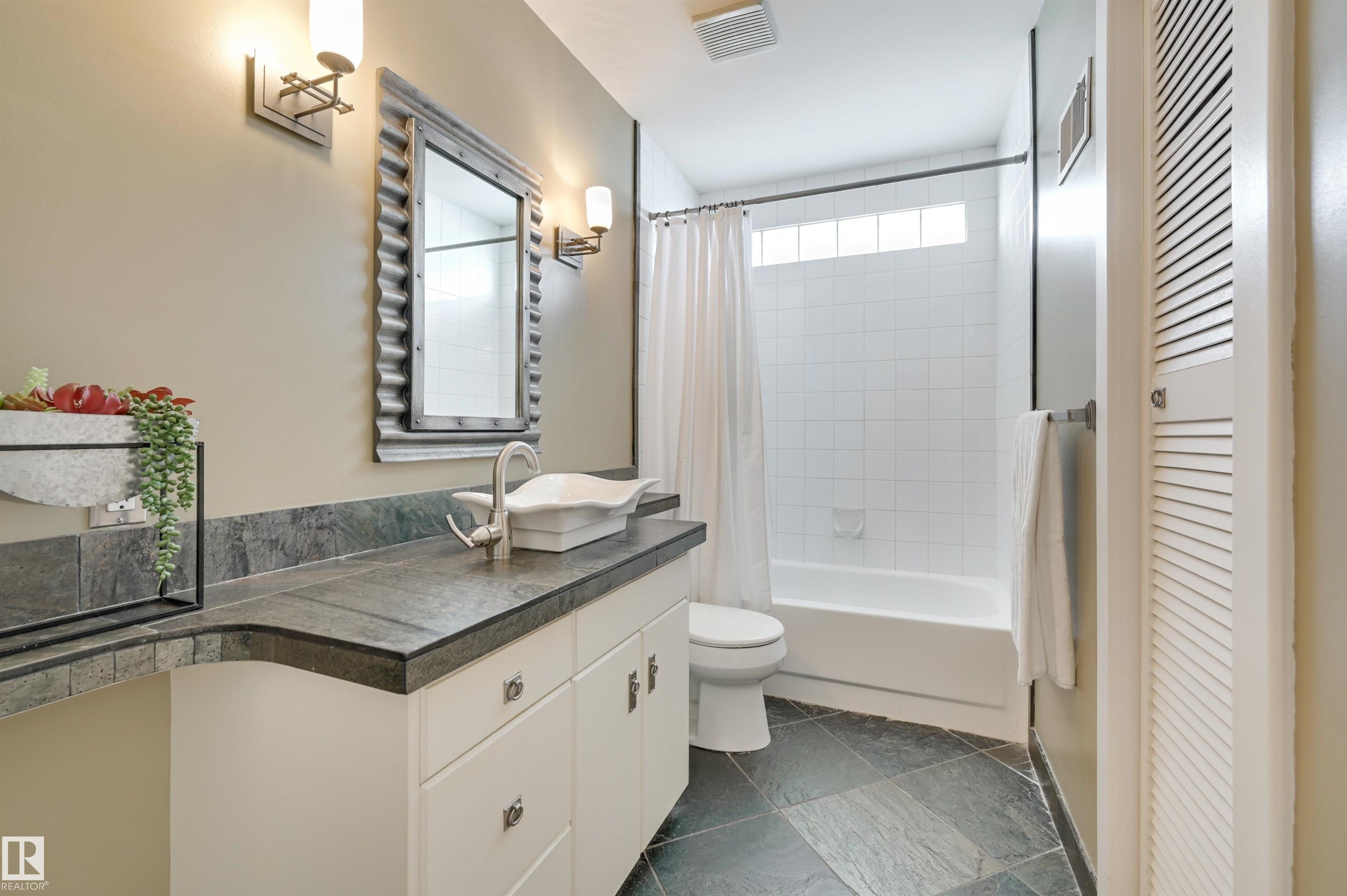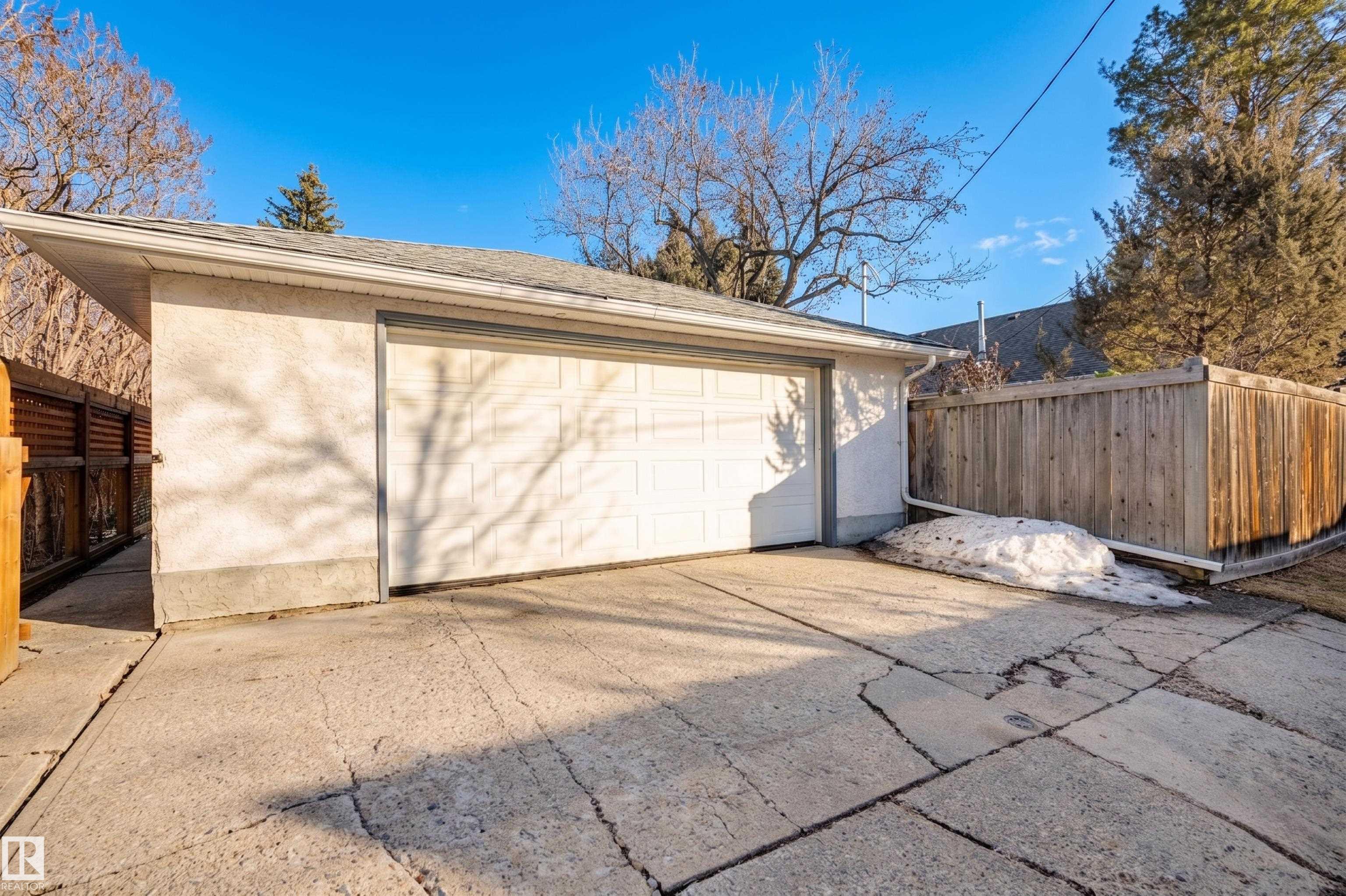 Tucked into the heart of Crestwood, this story-and-a-half blends charm with surprising scale, opening dramatically at the rear to a spacious porch and light-filled addition. The main floor offers two bedrooms/Offices -- one with garden doors to the front veranda -- alongside an inviting living room anchored by a floor-to-ceiling double-sided stone fireplace, seamlessly connecting to the family room (or can be used as a Dining Room) and 4-piece bath. The chef-inspired kitchen showcases slate floors, granite counters, a generous island with bar seating, and a sunny eat-in area. Upstairs, the private primary retreat features a 4-piece ensuite with Jacuzzi tub. The finished basement adds a large rec room, 4th bedroom, 3-piece bath, storage, and bright laundry. Outside, enjoy a fenced yard with cedar deck, green space, and double detached garage, just steps to MacKinnon Ravine. A rare opportunity to enjoy timeless character, thoughtful updates, and an unbeatable location just moments from the ravine.