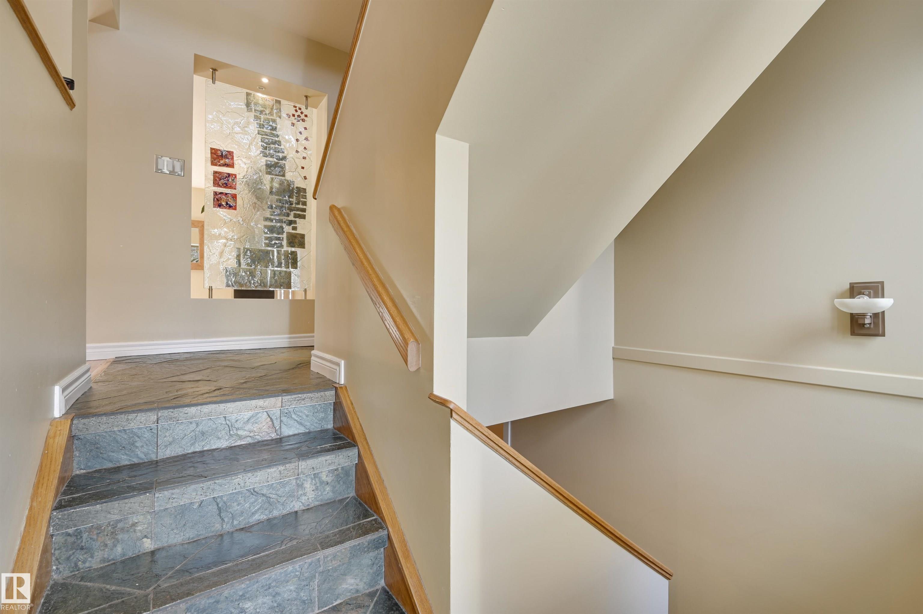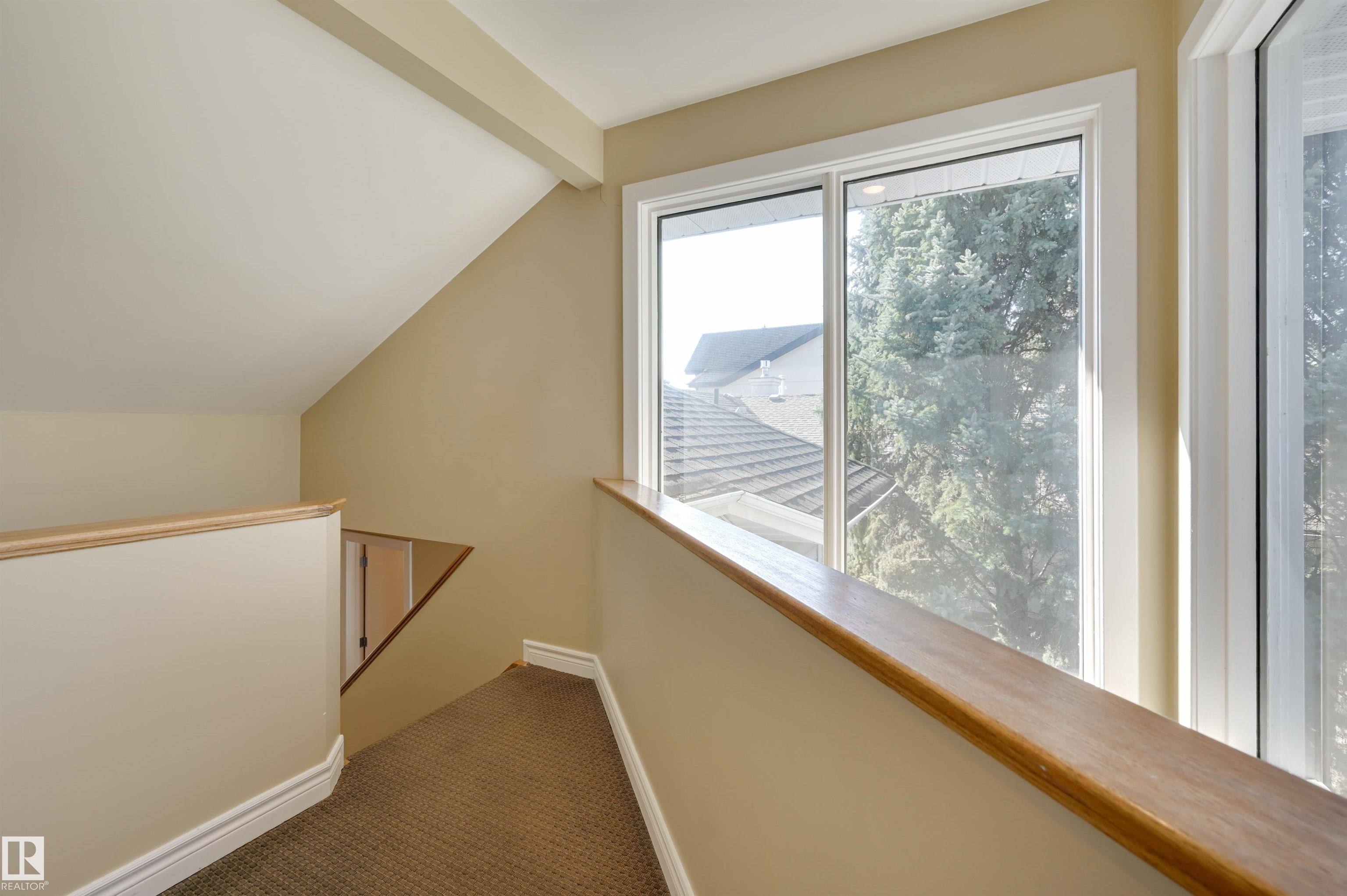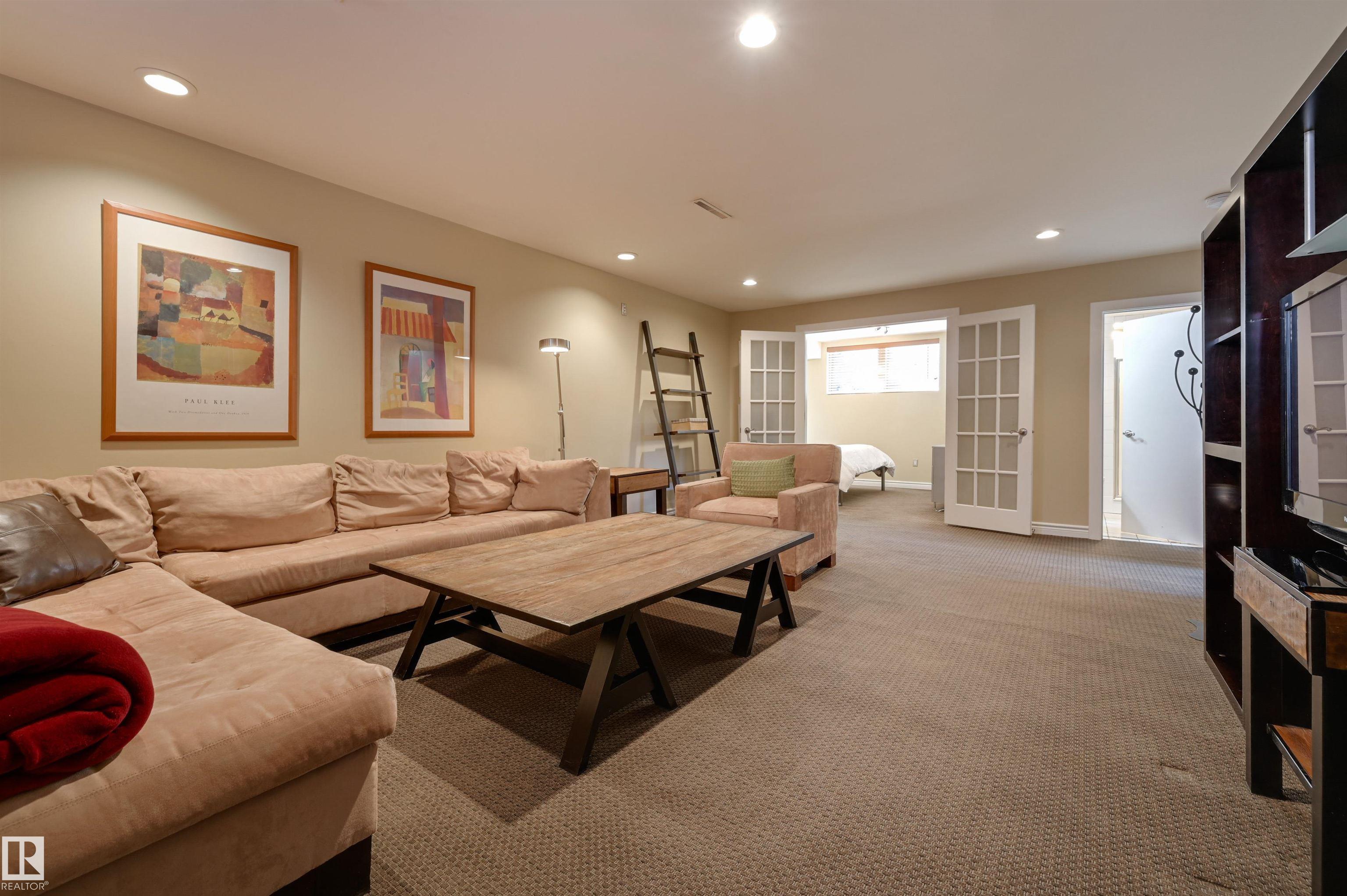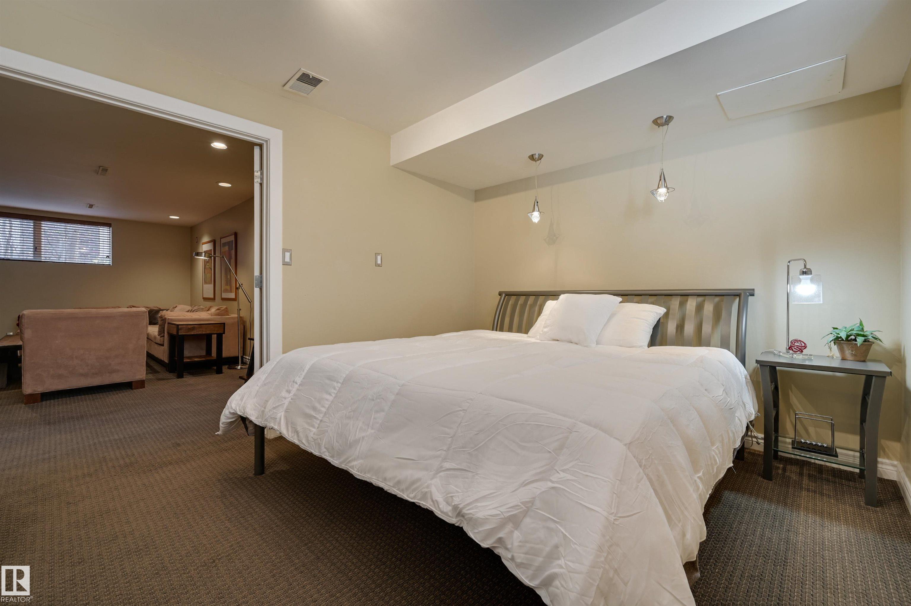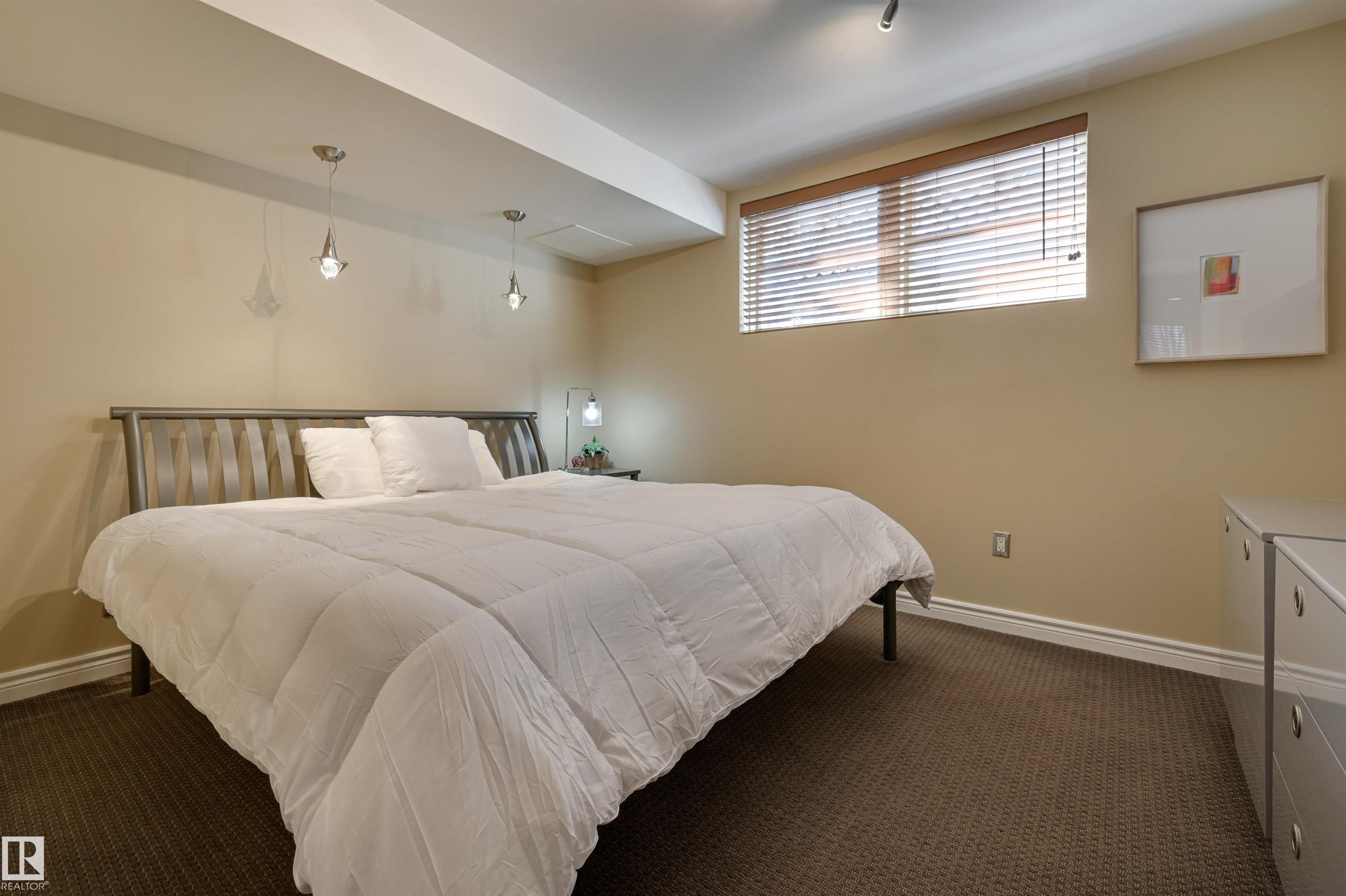 Tucked into the heart of Crestwood, this story-and-a-half blends charm with surprising scale, opening dramatically at the rear to a spacious porch and light-filled addition. The main floor offers two bedrooms/Offices -- one with garden doors to the front veranda -- alongside an inviting living room anchored by a floor-to-ceiling double-sided stone fireplace, seamlessly connecting to the family room (or can be used as a Dining Room) and 4-piece bath. The chef-inspired kitchen showcases slate floors, granite counters, a generous island with bar seating, and a sunny eat-in area. Upstairs, the private primary retreat features a 4-piece ensuite with Jacuzzi tub. The finished basement adds a large rec room, 4th bedroom, 3-piece bath, storage, and bright laundry. Outside, enjoy a fenced yard with cedar deck, green space, and double detached garage, just steps to MacKinnon Ravine. A rare opportunity to enjoy timeless character, thoughtful updates, and an unbeatable location just moments from the ravine.