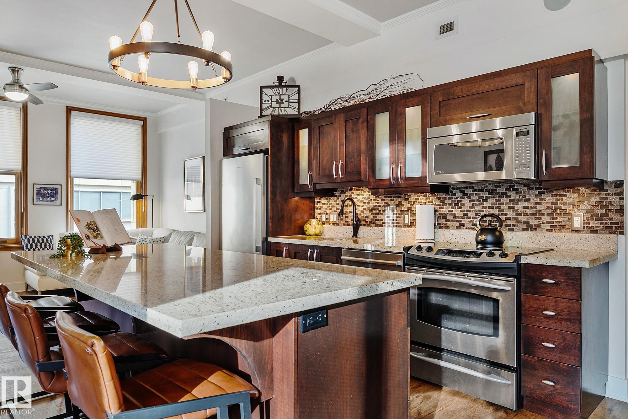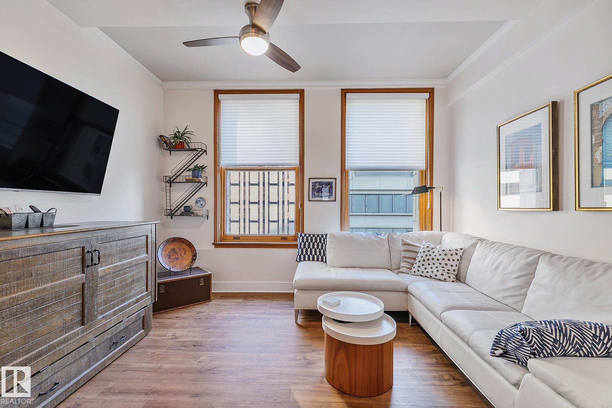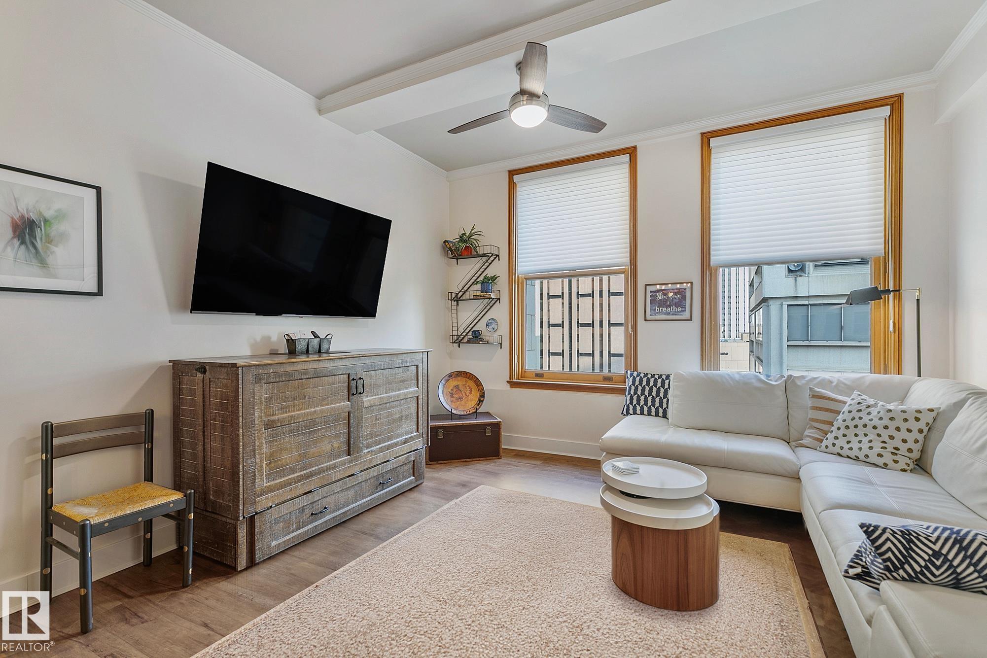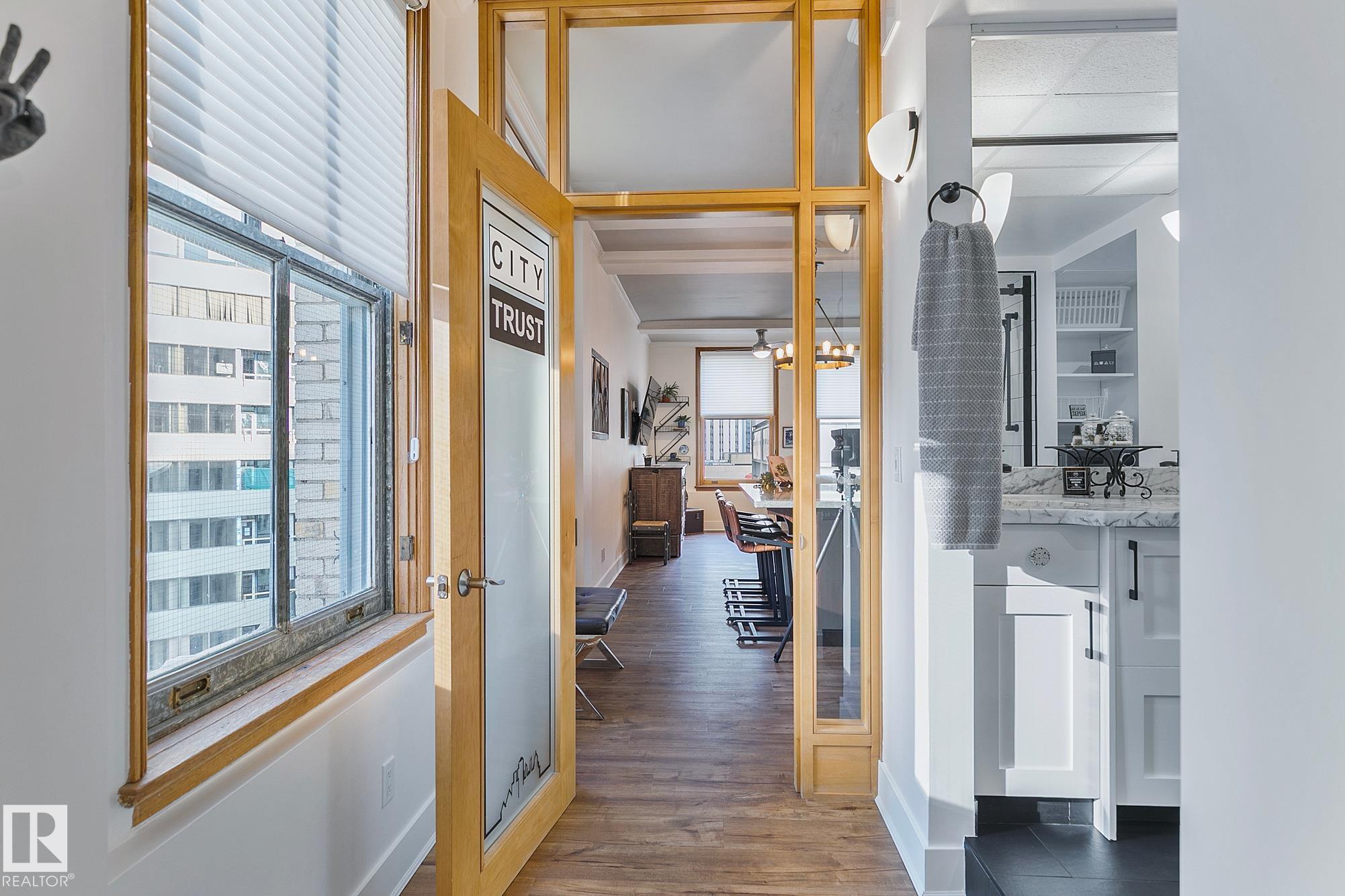 Rare find* Live the downtown executives' dream or empty nesters encore. Whatever draws you to the Historic McLeod Building, it's where location, lifestyle and character fuel your desire to bring you home to #910. Located on the top floor penthouse, you are enveloped with blankets of windows on all three walls to enjoy the city views and a connection with the outdoors. Fully furnished, beautifully and meticulously renovated & designed with quality artistry & attention to detail. The grand, main entrance could double as an office space/flex room. The gourmet kitchen features stainless steel appliances, granite countertops and excellent storage. The fully renovated spa-like ensuite features a full-size Euro washer/dryer combo, perfectly positioned next to the owner's fabulously designed retreat. Featuring quality, space-saving cabinetry, well-thought-out lighting & modern decor. Simplify your life, enjoy a nightcap downstairs at BarTrove, kick back, relax and know you are right where you are supposed to be.