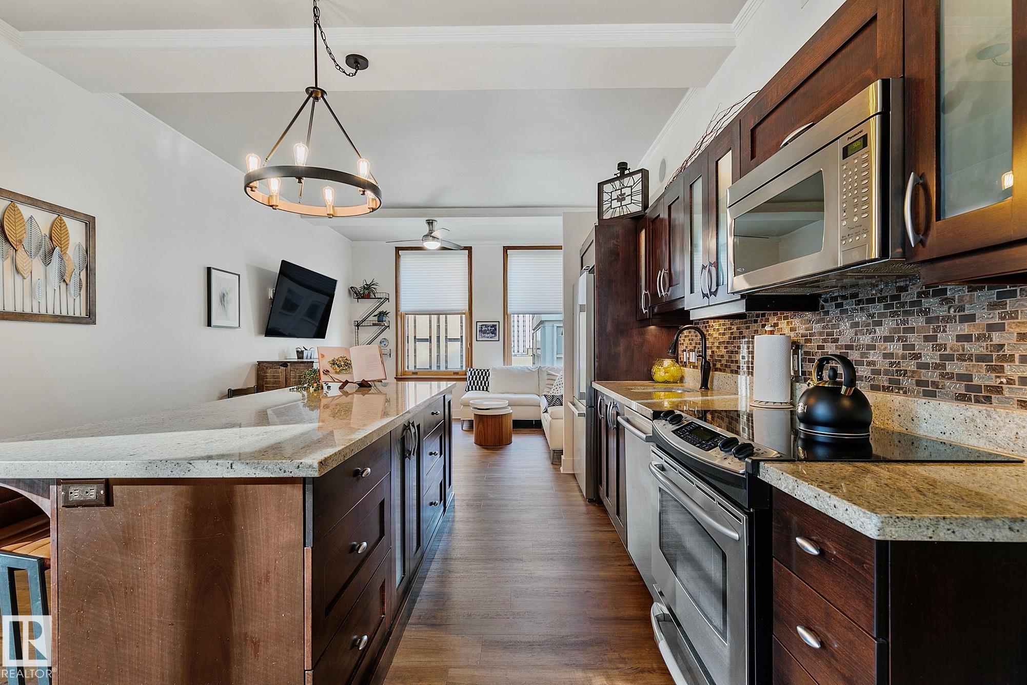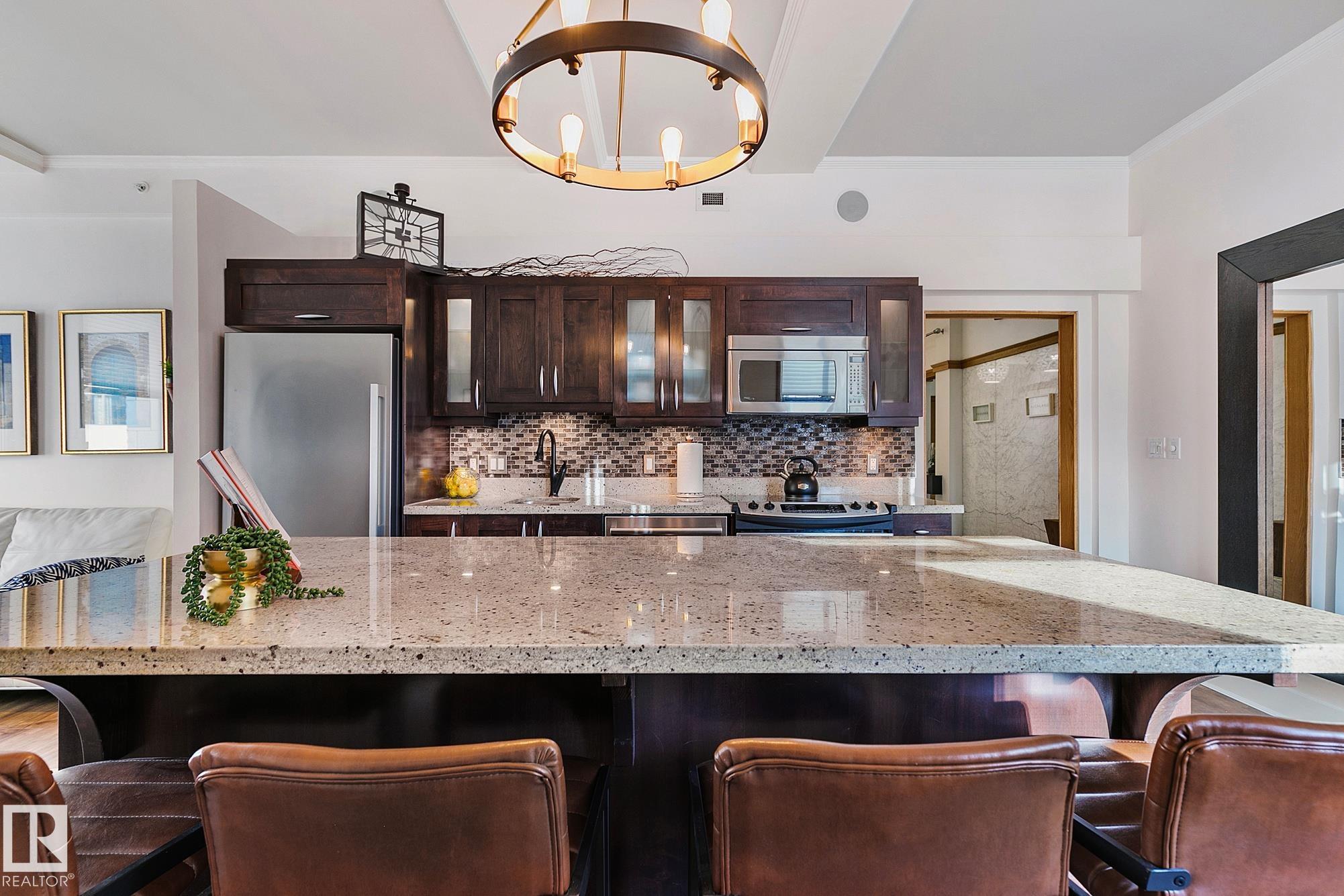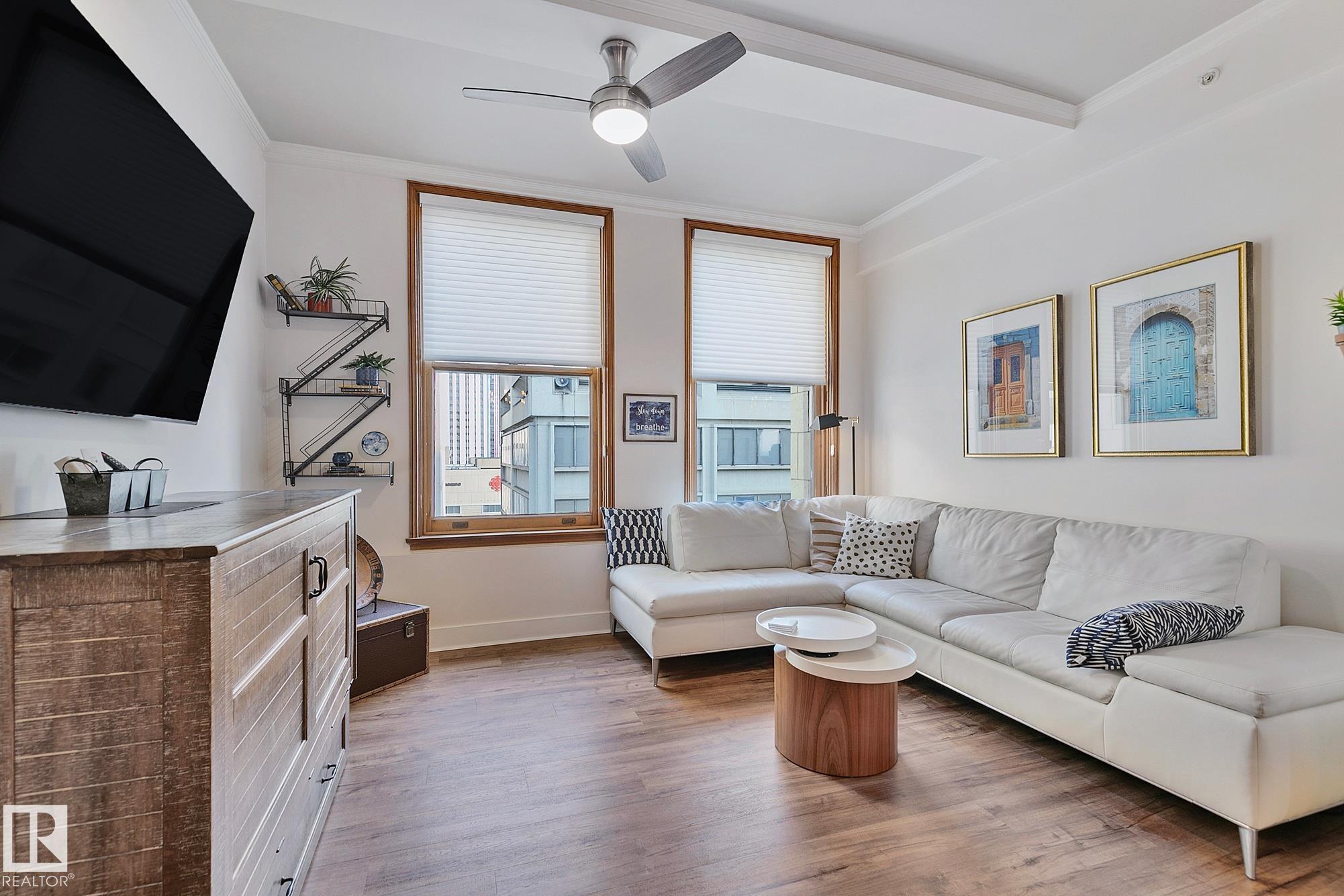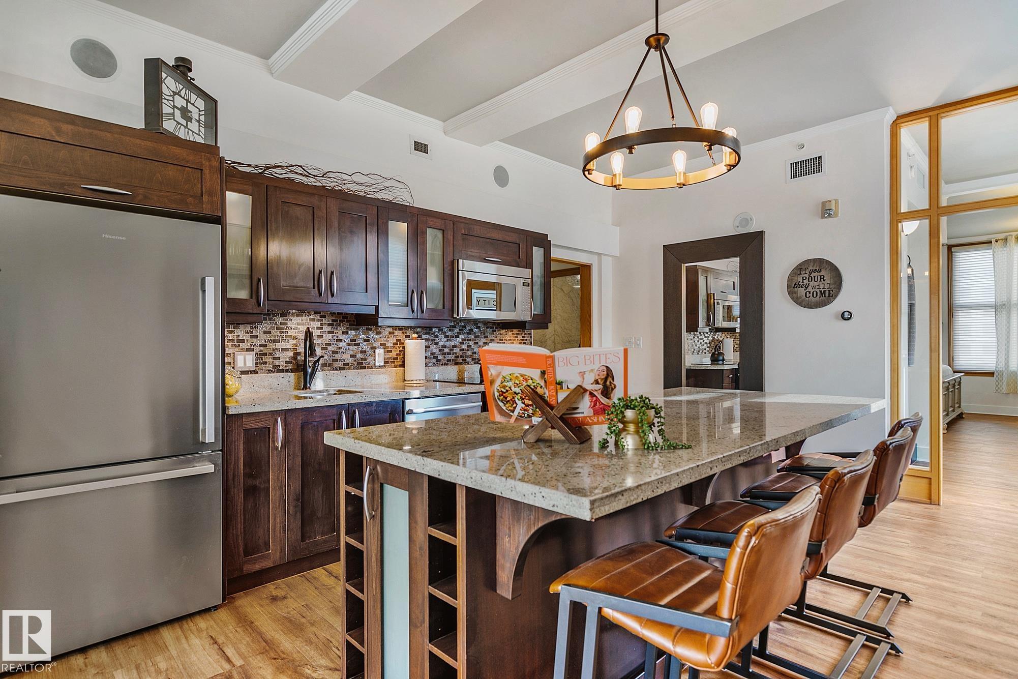 Rare find* Live the downtown executives' dream or empty nesters encore. Whatever draws you to the Historic McLeod Building, it's where location, lifestyle and character fuel your desire to bring you home to #910. Located on the top floor penthouse, you are enveloped with blankets of windows on all three walls to enjoy the city views and a connection with the outdoors. Fully furnished, beautifully and meticulously renovated & designed with quality artistry & attention to detail. The grand, main entrance could double as an office space/flex room. The gourmet kitchen features stainless steel appliances, granite countertops and excellent storage. The fully renovated spa-like ensuite features a full-size Euro washer/dryer combo, perfectly positioned next to the owner's fabulously designed retreat. Featuring quality, space-saving cabinetry, well-thought-out lighting & modern decor. Simplify your life, enjoy a nightcap downstairs at BarTrove, kick back, relax and know you are right where you are supposed to be.
