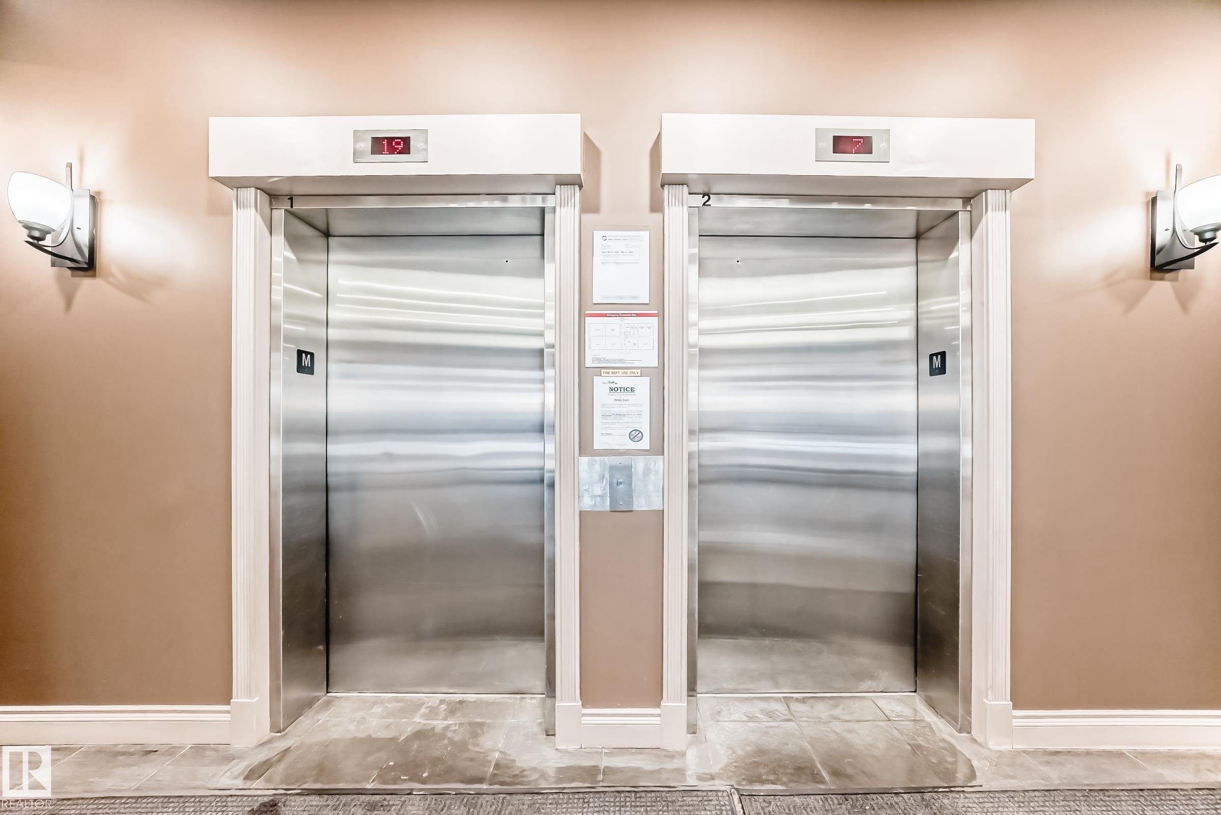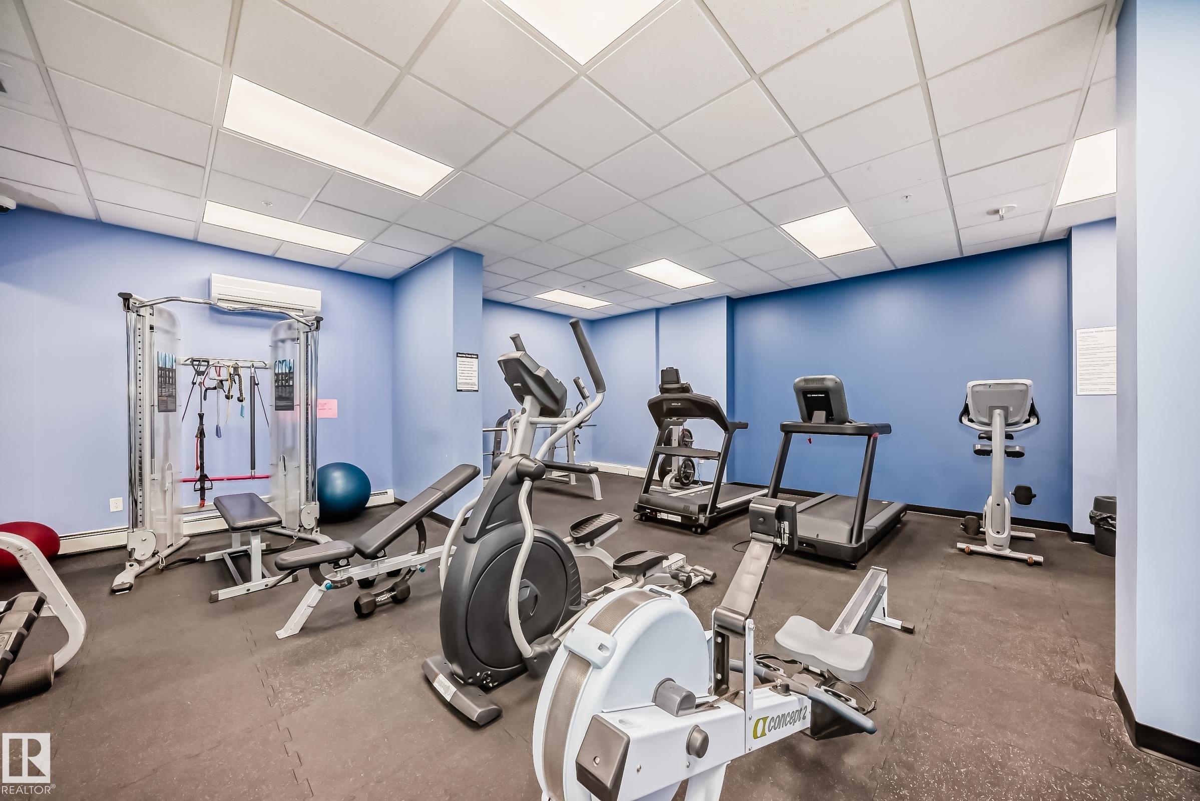 TOP FLOOR UNIT! PANORAMIC VIEW OF DOWNTOWN! CONCRETE BUILDING! TITLED UNDERGROUND PARKING! EXERCISE ROOM! SECURE BIKE STORAGE! WALKING DISTANCE TO ICE DISTRICT! TONS OF VISITOR PARKING! REASONABLE CONDO FEES INCLUDE HEAT & WATER. Stylish 1 bedroom condo located in the heart of Downtown in a sought after high rise. Offering an open layout w/expansive windows-perfect for living & entertaining! The bright contemporary kitchen has timeless white cabinetry & stainless appliances. Generous size master provides a peaceful retreat w/walk-thru closet to a luxurious 4pce bath. The spacious living room is anchored by a cozy fireplace & has patio doors to a private balcony. Additional features include convenient in-suite laundry, custom window coverings, hardwood floors & dedicated storage room. Enjoy close proximity to the river valley & trails, restaurants, coffee shops, shopping, LRT, UofA & MacEwan. This elevated urban home combines modern design, abundant natural light & an unbeatable Downtown location! MOVE IN!