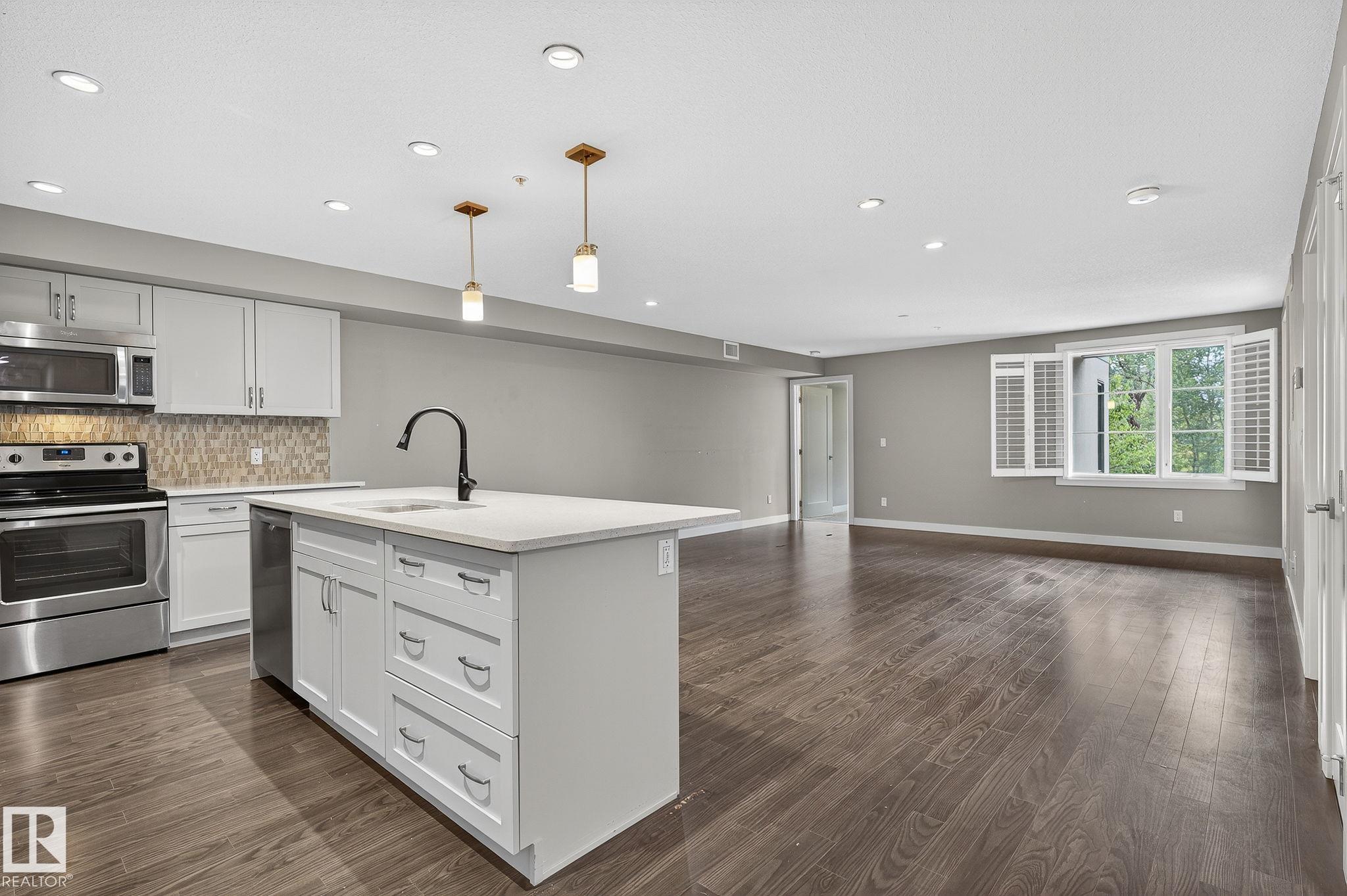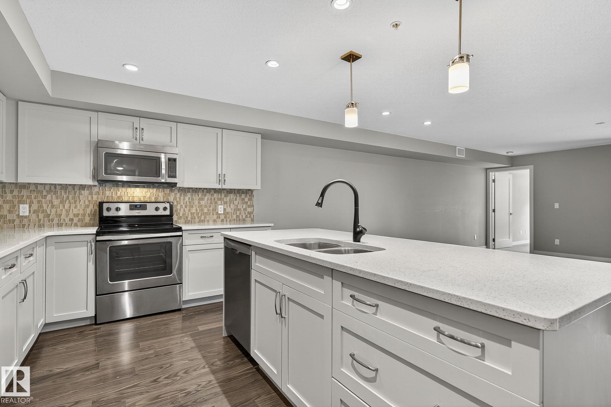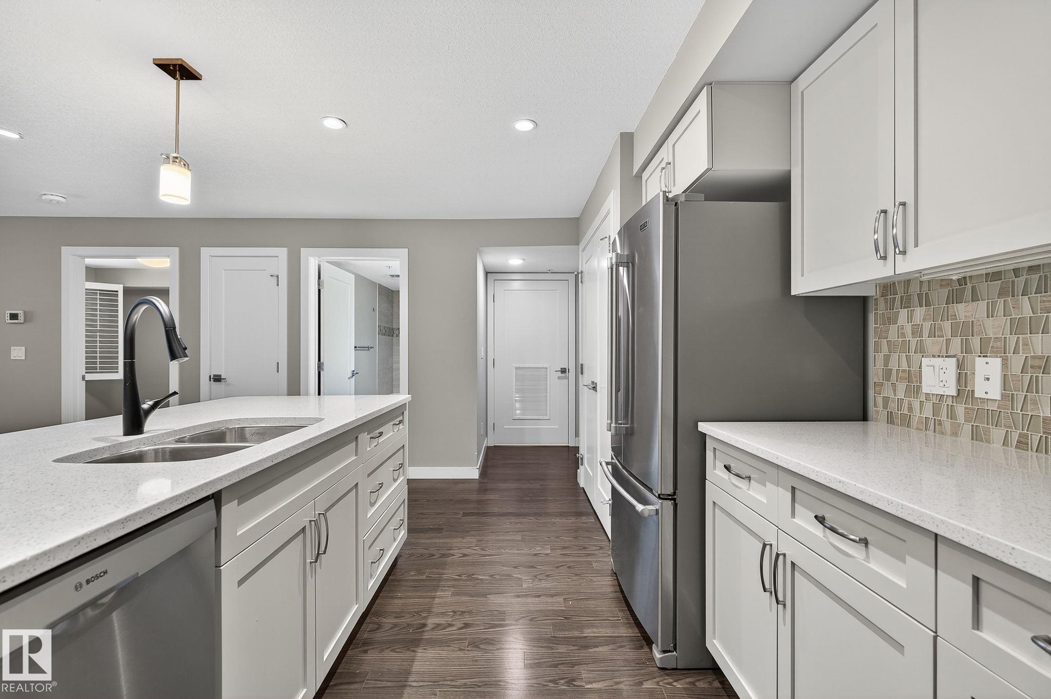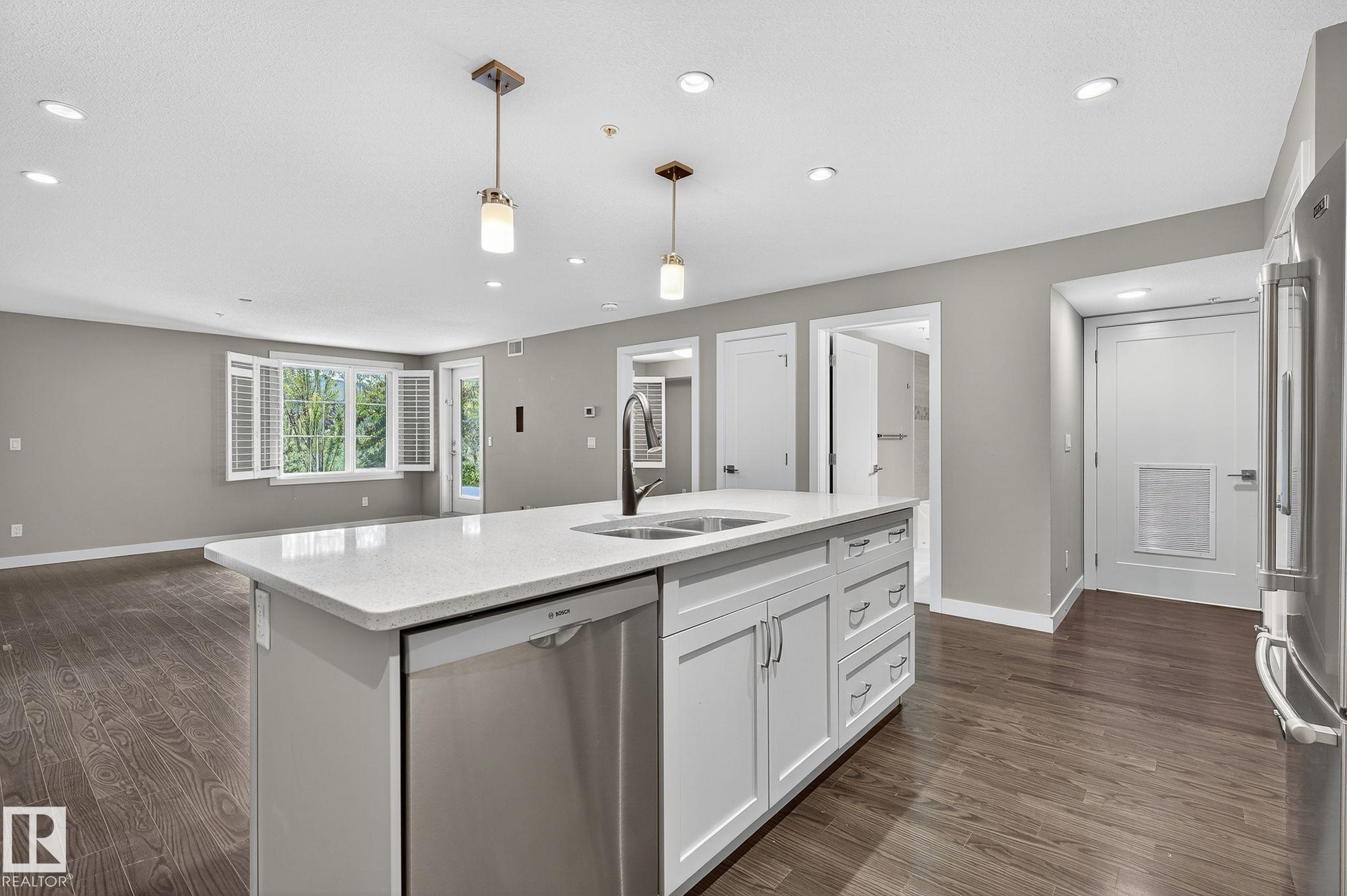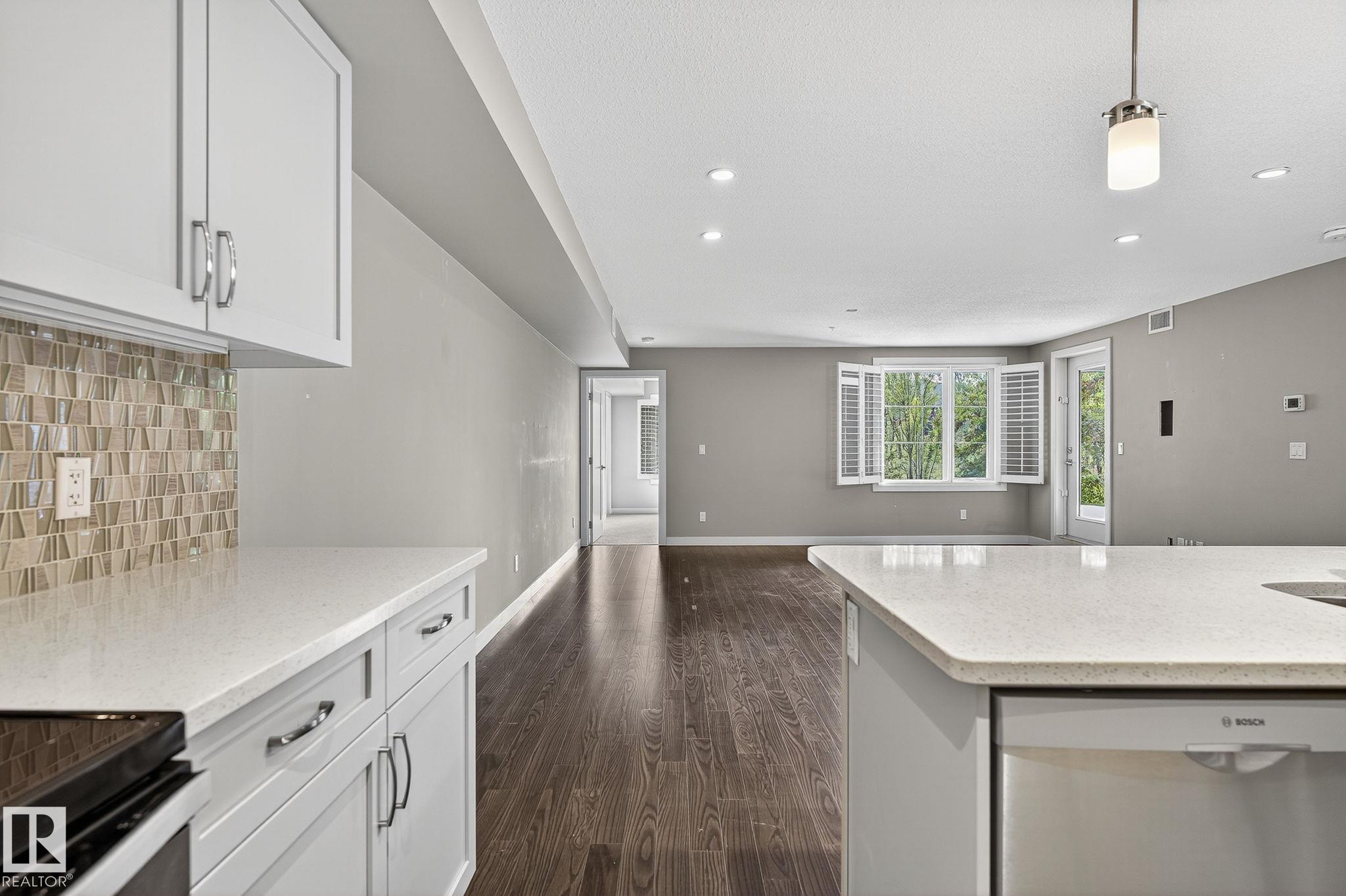 Welcome to The Parc at Edgemont Ravine, Adult living(18+) where dream condo living meets full ravine views! This rare SW-facing unit sits on the 1st floor with massive windows, flooding the the 1,111sqft open-concept plan with natural light. Featuring 2 bedrooms and 2 baths, the home's centerpiece is a stunning kitchen with a huge island, quartz counters, upgraded appliances, soft-close drawers, under-cabinet lighting, & ample storage. The spacious living room & dining area flow seamlessly, perfect for entertaining or relaxing with tranquil views. The primary suite includes a large walk-in closet & 3pc ensuite. Step outside to your large private patio with natural gas BBQ hookup--ideal for sunsets and summer nights. Complete with A/C, in-suite laundry, 1 titled parking stall, and 2 titled storage spaces (a large room just across the hall plus a storage cage). Rare opportunity to enjoy resort-style living with unmatched privacy and scenery, a true must see to be appreciated!