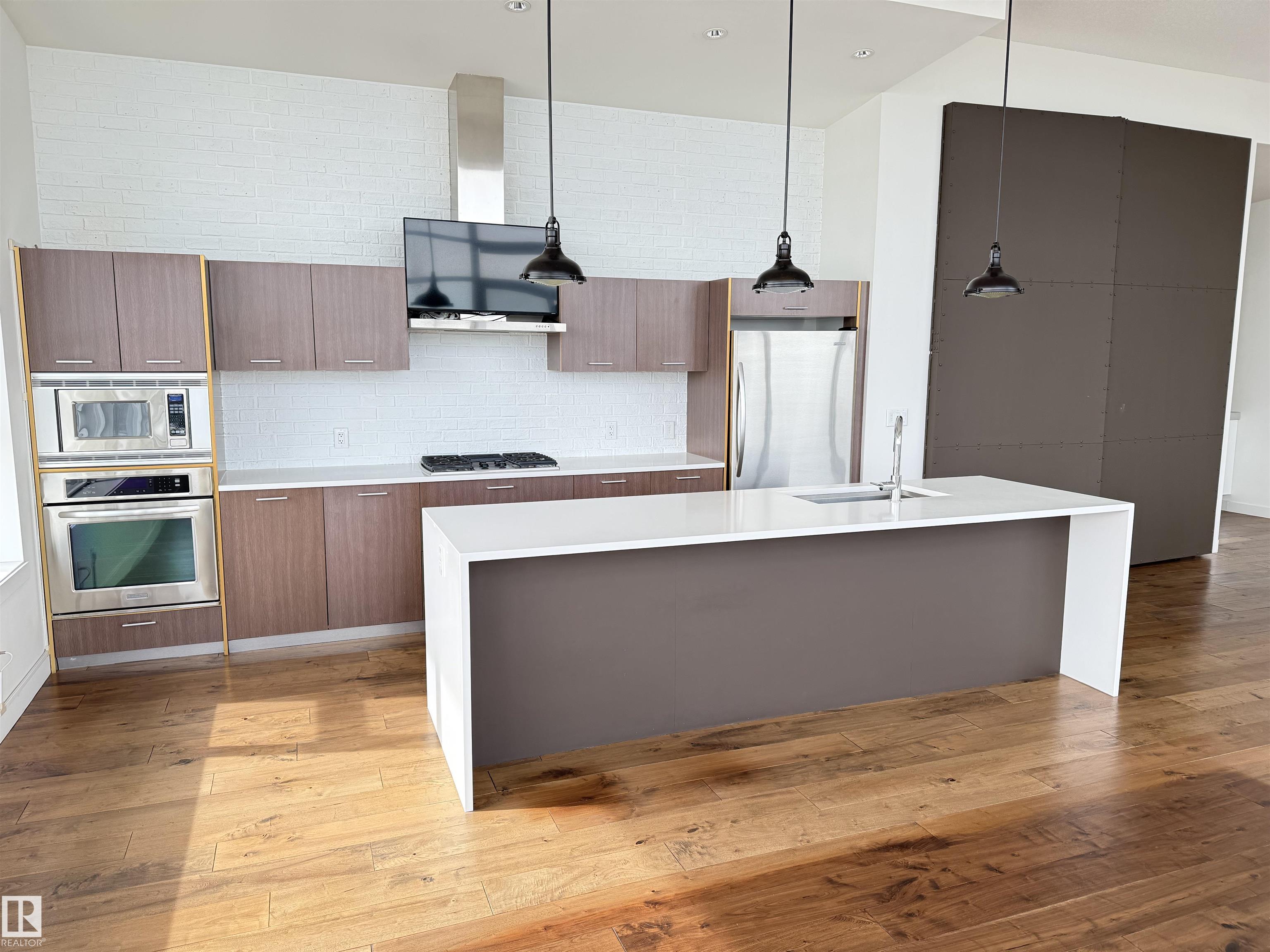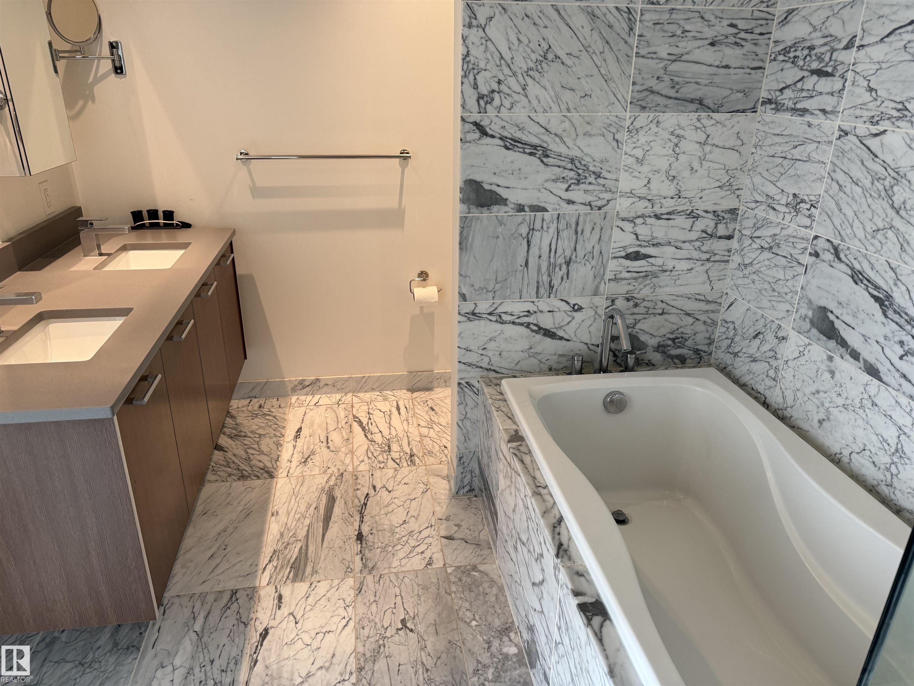 PENTHOUSE SUITE! END UNIT! This one is truly the unicorn of One Centruy Park! This one also boasts 3 TITLED UNDERGROUND PARKING STALLS, TITLED STORAGE, LARGEST UNIT IN THE COMPLEX, DUAL CLIMATE ZONES, UNOBSTRUCTED PANORAMIC VIEWS, AND IF THAT'S NOT ENOUGH, THIS ONE ALSO FEATURES IT'S OWN IN HOUSE GOLF SIMULATOR! Until you see it, you won't believe it! This one is not only upgraded to the 9's but is also in one of the most desirable locations in the city when it comes to amenities! Other amazing features of this spectacular unit include such things as gleaming hardwood flooring, upgraded counter-tops, walk-in closets, LED accent lighting throughout, newer washer, dryer and dishwasher, standup hallway desk/work space, 2 upgraded electric fireplaces, a stunning primary 5 pce ensuite, and soaring windows everywhere you look! Enjoy your morning coffee off of either the main walk-out patio from the living room, or the one from your own private primary bedroom.Truly one for the discriminating buyer!