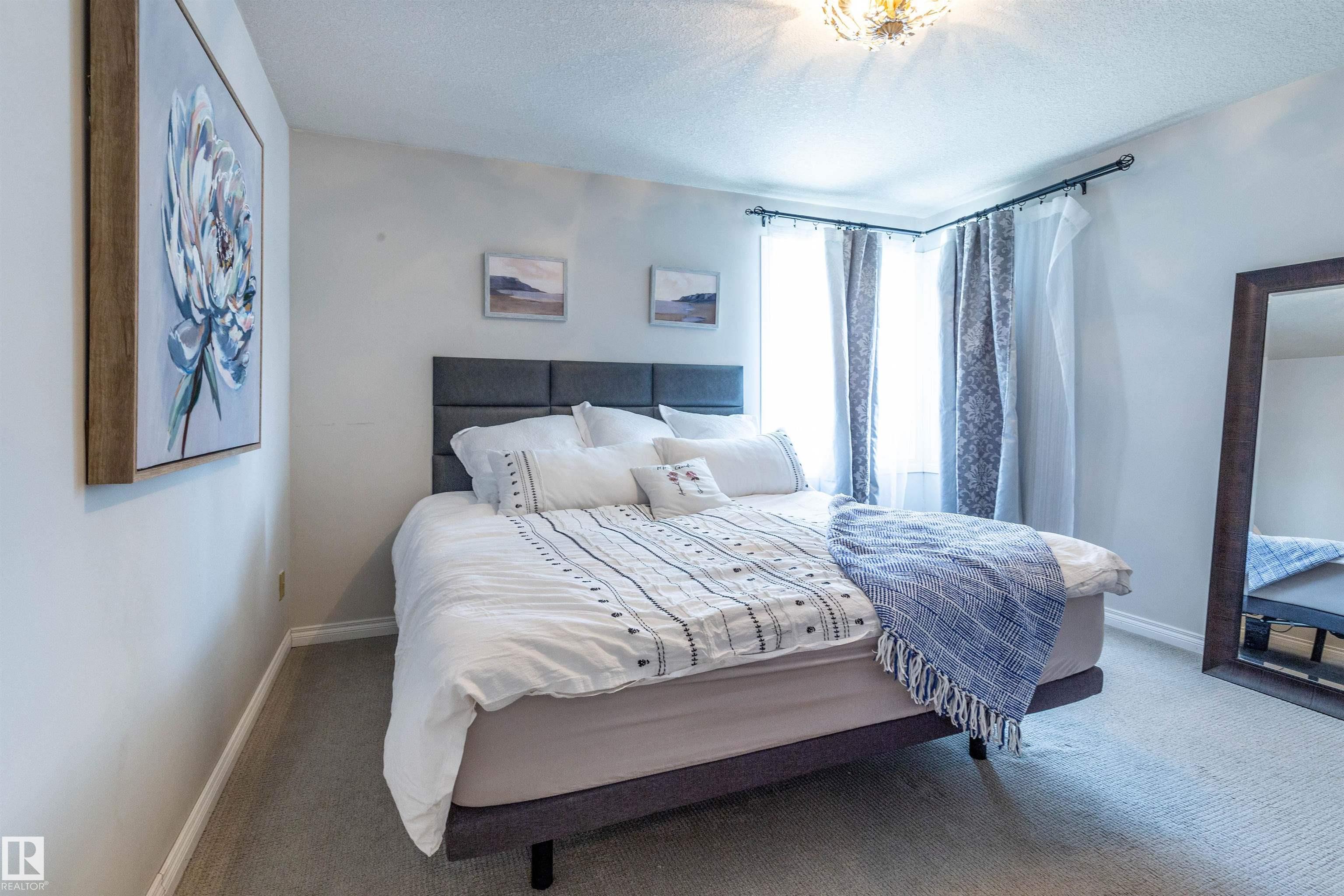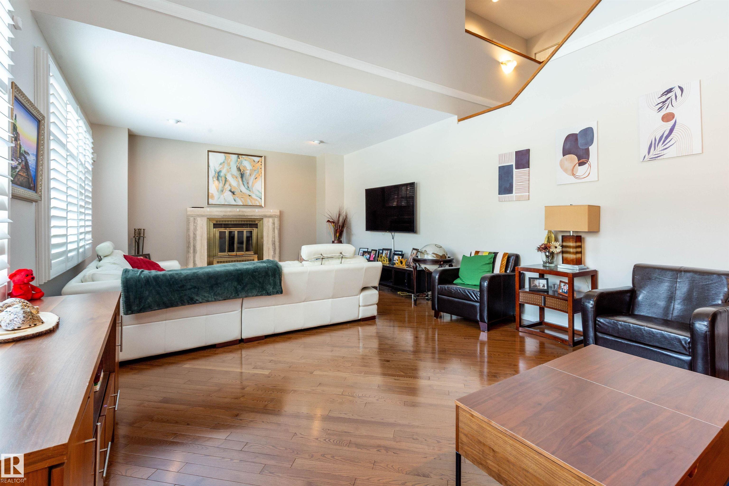 Great Gariepy family home! This 4 bedroom, vaulted and open 2 storey home offers over 4,000 sq ft of living space. Large living room with wood burning fireplace and vaulted ceiling open to the 2nd floor! Main level 4th bedroom. Formal dining room! Kitchen is spacious, with large windows showing the private backyard and resurfaced large deck. Upstairs features wide hallways for families and a laundry chute! Primary bedroom includes walk-in closet and luxurious new 5-piece ensuite with rain shower and soaker tub. New upper windows! Newly Painted. Finished basement offers rec room with wet bar, storage room. Large laundry room with sink. Hi efficiency furnaces and large work area, with built in vacuum as well! Heated double garage, landscaped yard with sprinkler system front/back. AC, Close To Rahma Mosque, Churches and Synagogues! Great schools nearby! Marketplace at Callingwood, Hawkstone Shopping, Lois Hole Library, Hockey rink, Jamie Platz YMCA, Super family location on a quiet updated Gariepy street!
