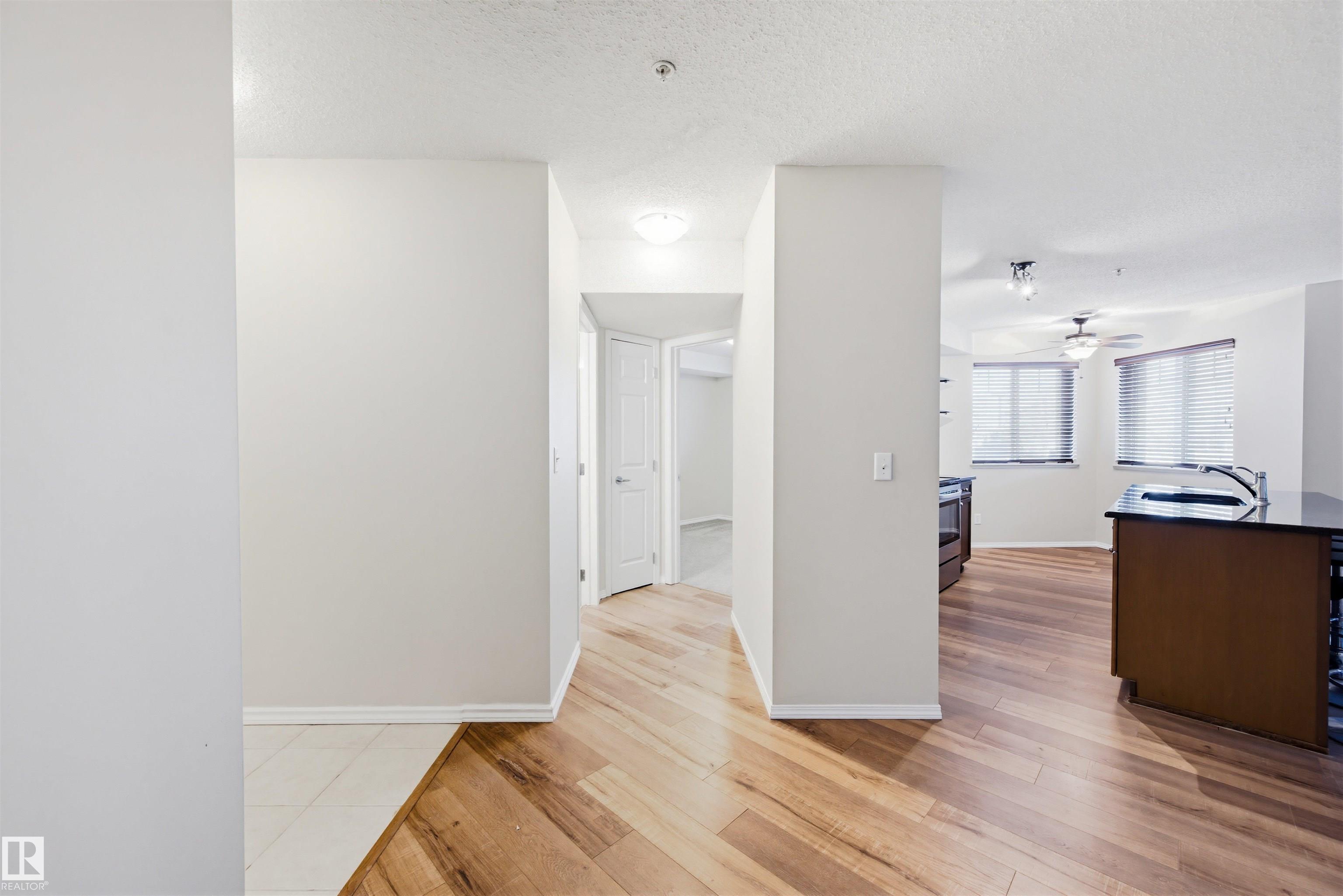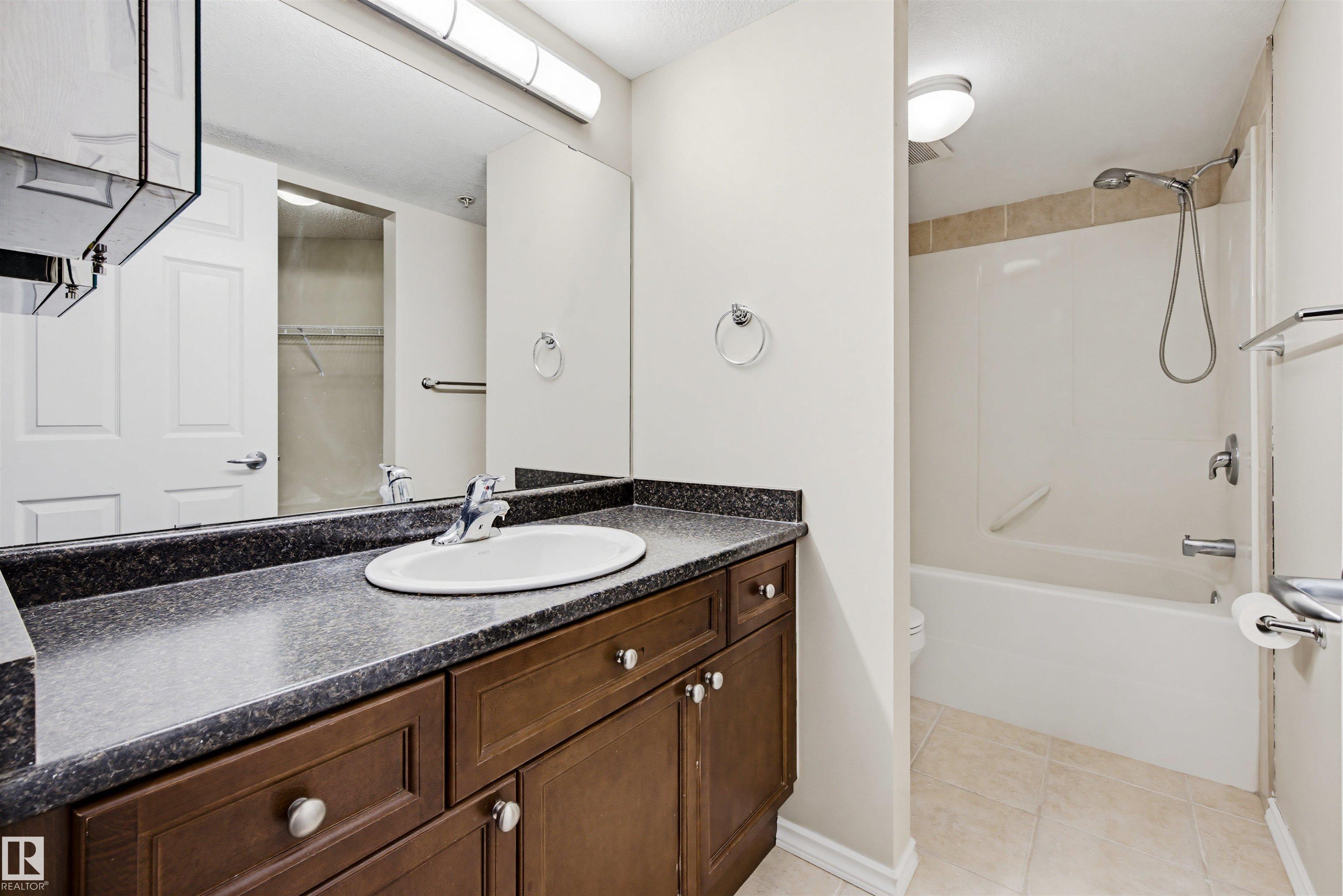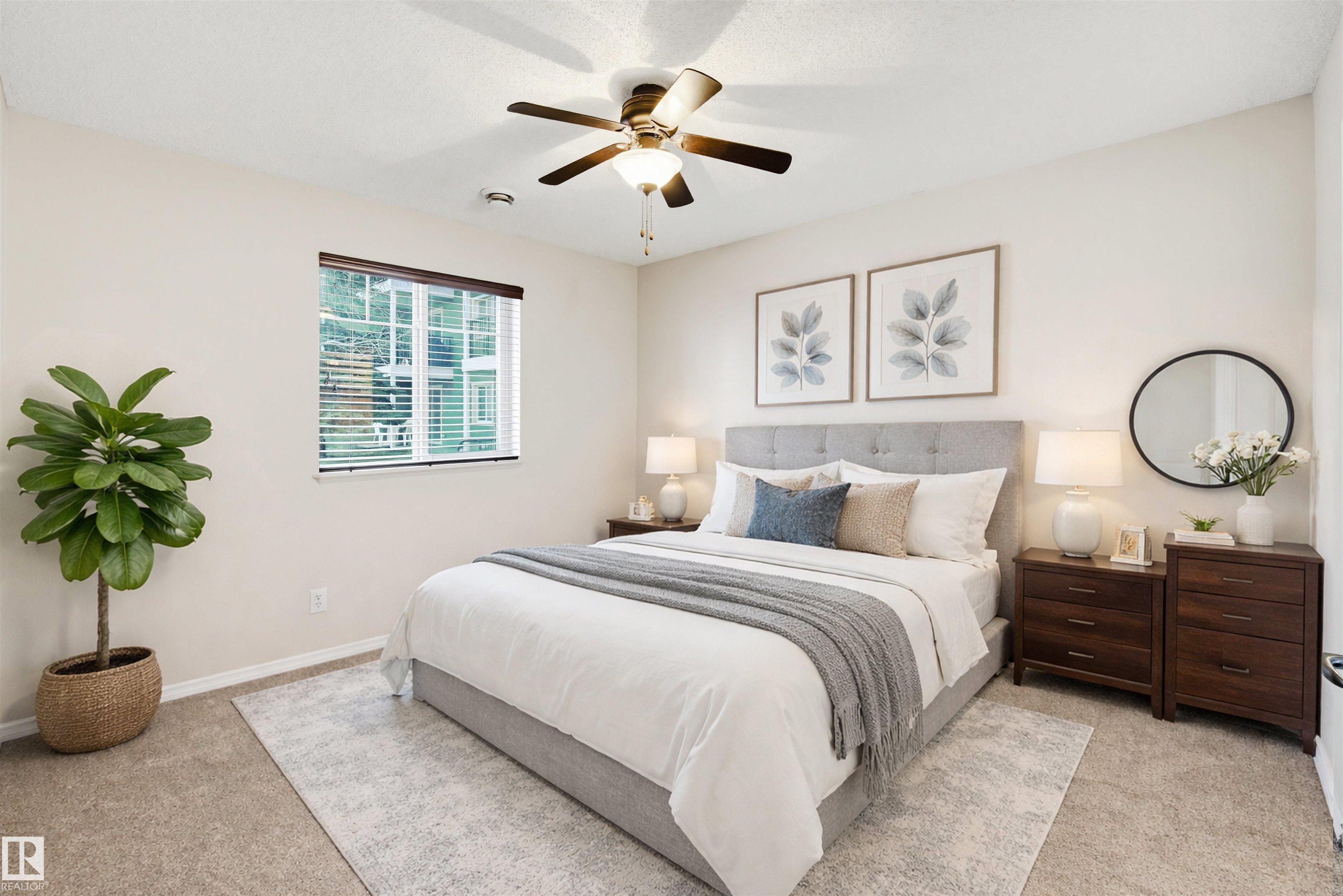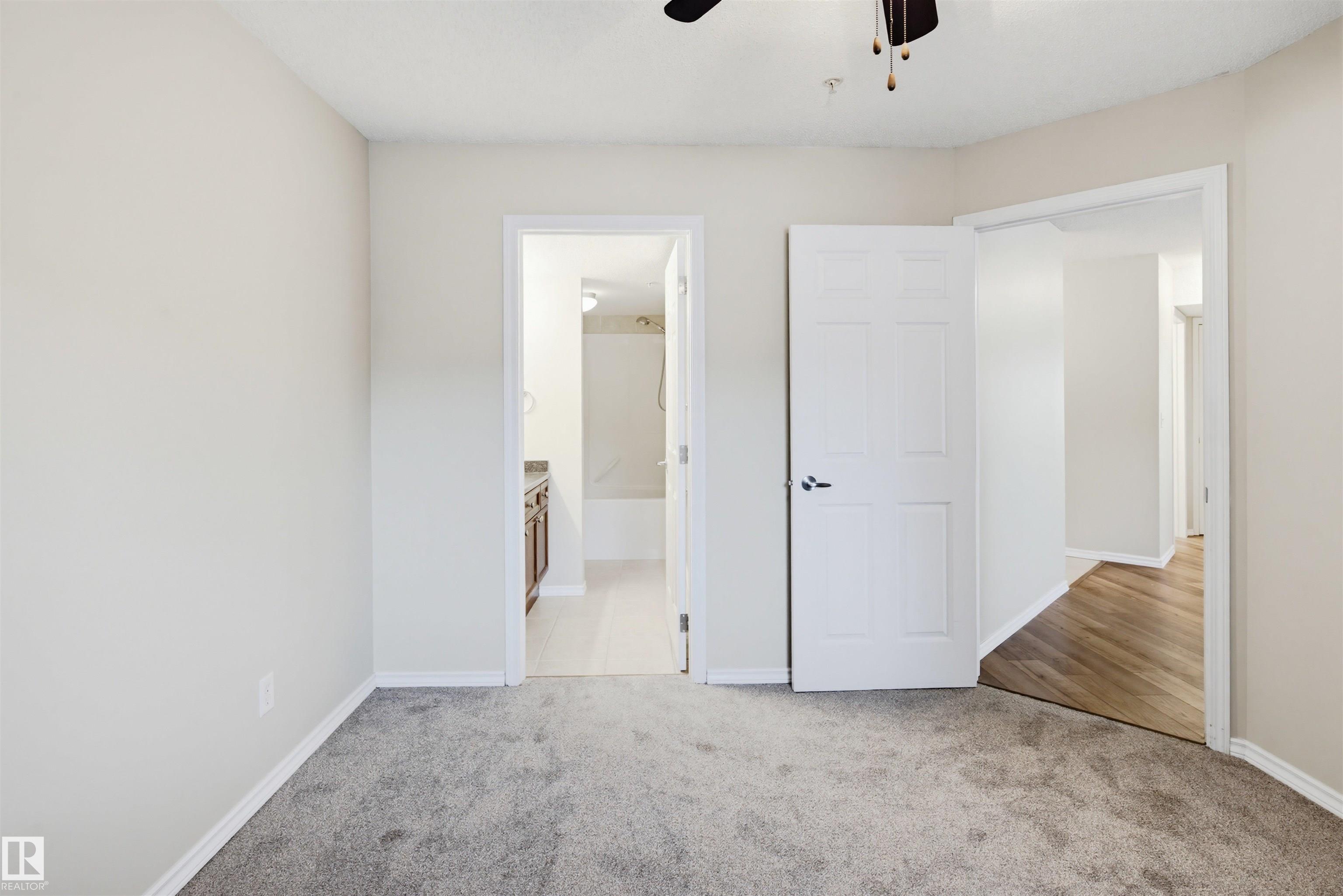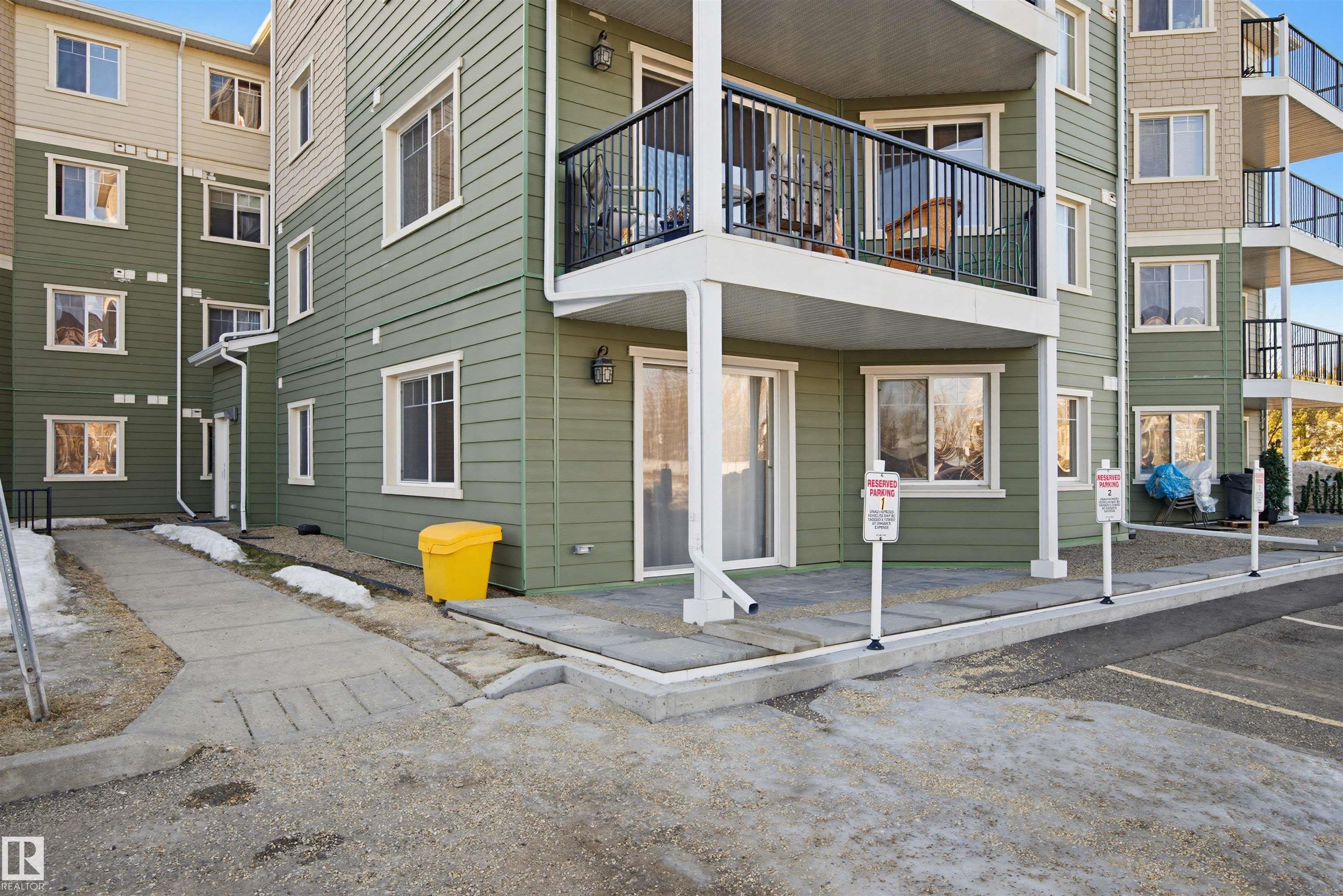 Fantastic end unit 2 bed, 2 bath condo in Glastonbury! This very well kept condo is perfect for any first time buyer looking for a move-in ready place to live. Over 1000 sq ft! Brand new laminate and carpet flooring throughout. Kitchen is nicely appointed with granite countertops and stainless appliances. Central island with sink overlooks the living room and dining area. Patio with gas hookup for barbecue and parking stall right outside your balcony. Primary bedroom is nice size and features a 4 piece ensuite with walk-in closet as well. Second bedroom on other side of unit with another 4 piece bath just outside the door. Insuite laundry as well. 2 parking stalls included, 1 above ground and one underground. Close to all amenities and quick access to the Anthony Henday. Condo fees include heat, water/sewer. Immediate possession available! Must be seen to be appreciated.