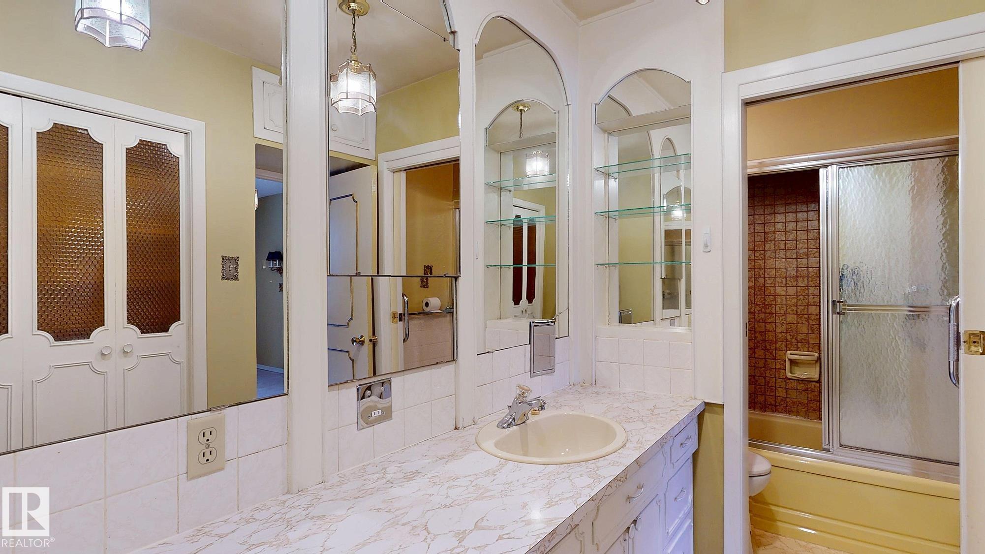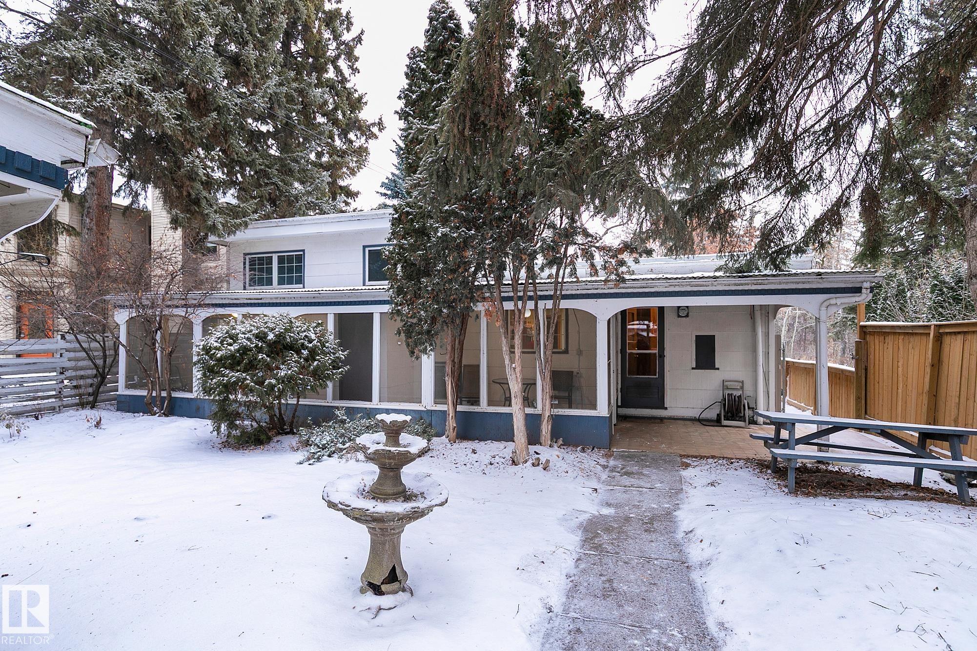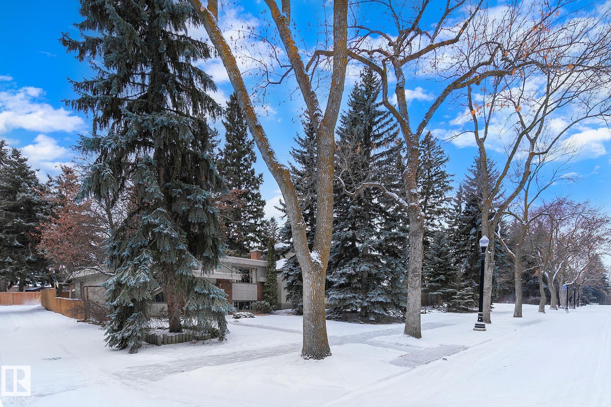 Character home located on coveted St. George's Crescent in Old Glenora, one of Edmonton's most prestigious with its lush tree lined streets and historic homes . Facing directly onto a wooded ravine, this 6,948 square foot lot (50' wide x 140' deep) has a SW facing private backyard. The 1,625 sq. foot 4 level split features 4 bedrooms, 3 bathrooms, air conditioning, a brass and glass gas fireplace, screened in back patio and lots of character. This Home makes ample use of warm walnut paneling & has storage galore. On the upper level, you will discover three bedrooms, 4 piece ensuite plus a 4 piece bath. Main level features a large living room with fireplace, adjoining dining room, kitchen & mud room/laundry area. Third level has a Family room with an electric fireplace, wet bar, 2 piece bath plus the 4th bedroom. Sauna is on the 4th level. Double detached garage in the landscaped back yard. Close to schools. Title to this property is protected by the Carruthers Caveat, allowing only single family homes.