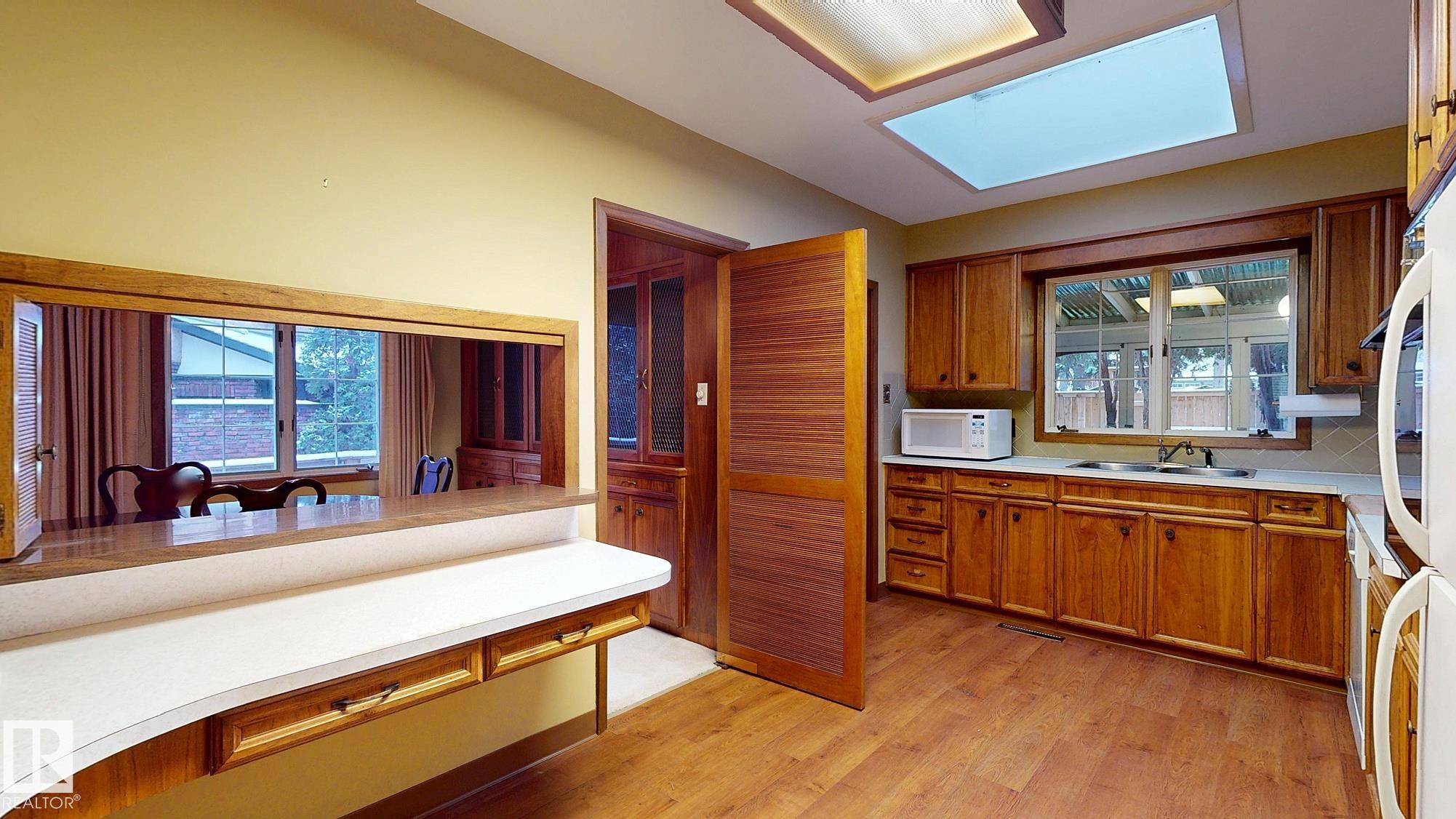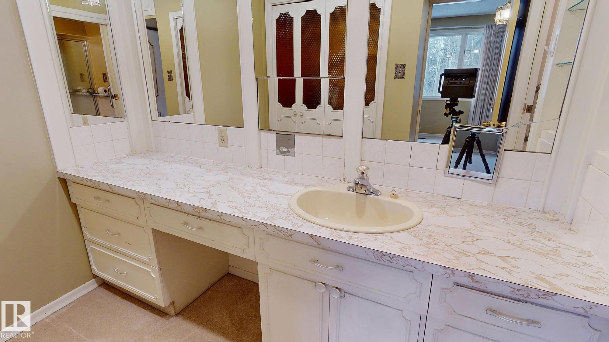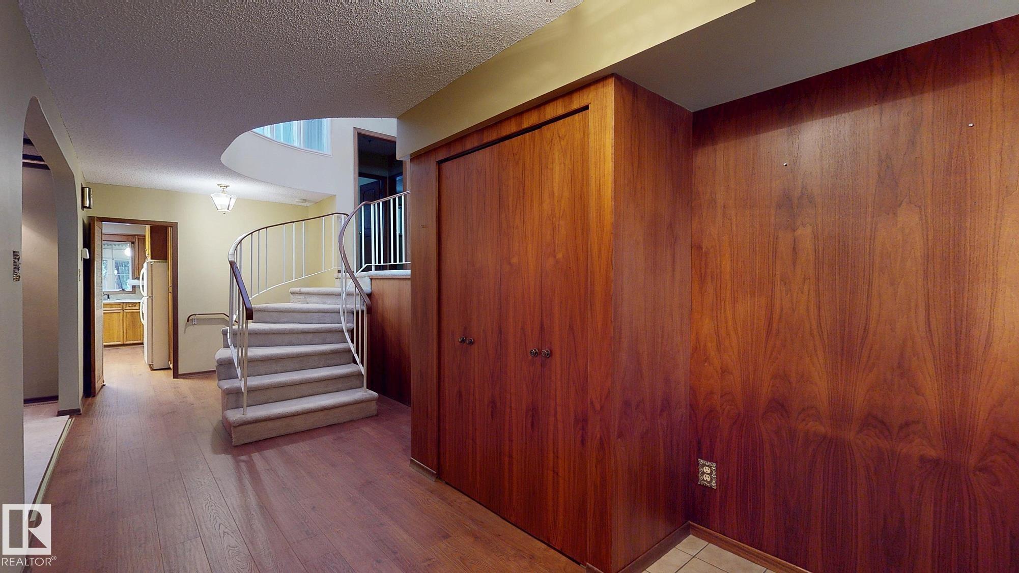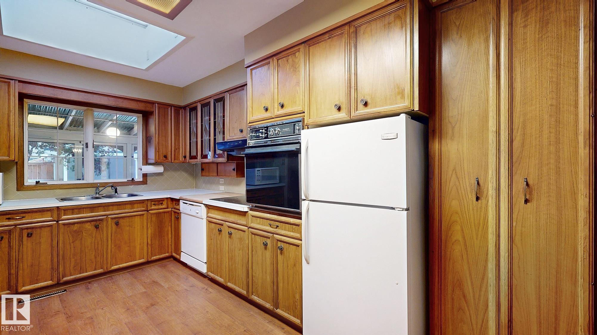 Character home located on coveted St. George's Crescent in Old Glenora, one of Edmonton's most prestigious with its lush tree lined streets and historic homes . Facing directly onto a wooded ravine, this 6,948 square foot lot (50' wide x 140' deep) has a SW facing private backyard. The 1,625 sq. foot 4 level split features 4 bedrooms, 3 bathrooms, air conditioning, a brass and glass gas fireplace, screened in back patio and lots of character. This Home makes ample use of warm walnut paneling & has storage galore. On the upper level, you will discover three bedrooms, 4 piece ensuite plus a 4 piece bath. Main level features a large living room with fireplace, adjoining dining room, kitchen & mud room/laundry area. Third level has a Family room with an electric fireplace, wet bar, 2 piece bath plus the 4th bedroom. Sauna is on the 4th level. Double detached garage in the landscaped back yard. Close to schools. Title to this property is protected by the Carruthers Caveat, allowing only single family homes.