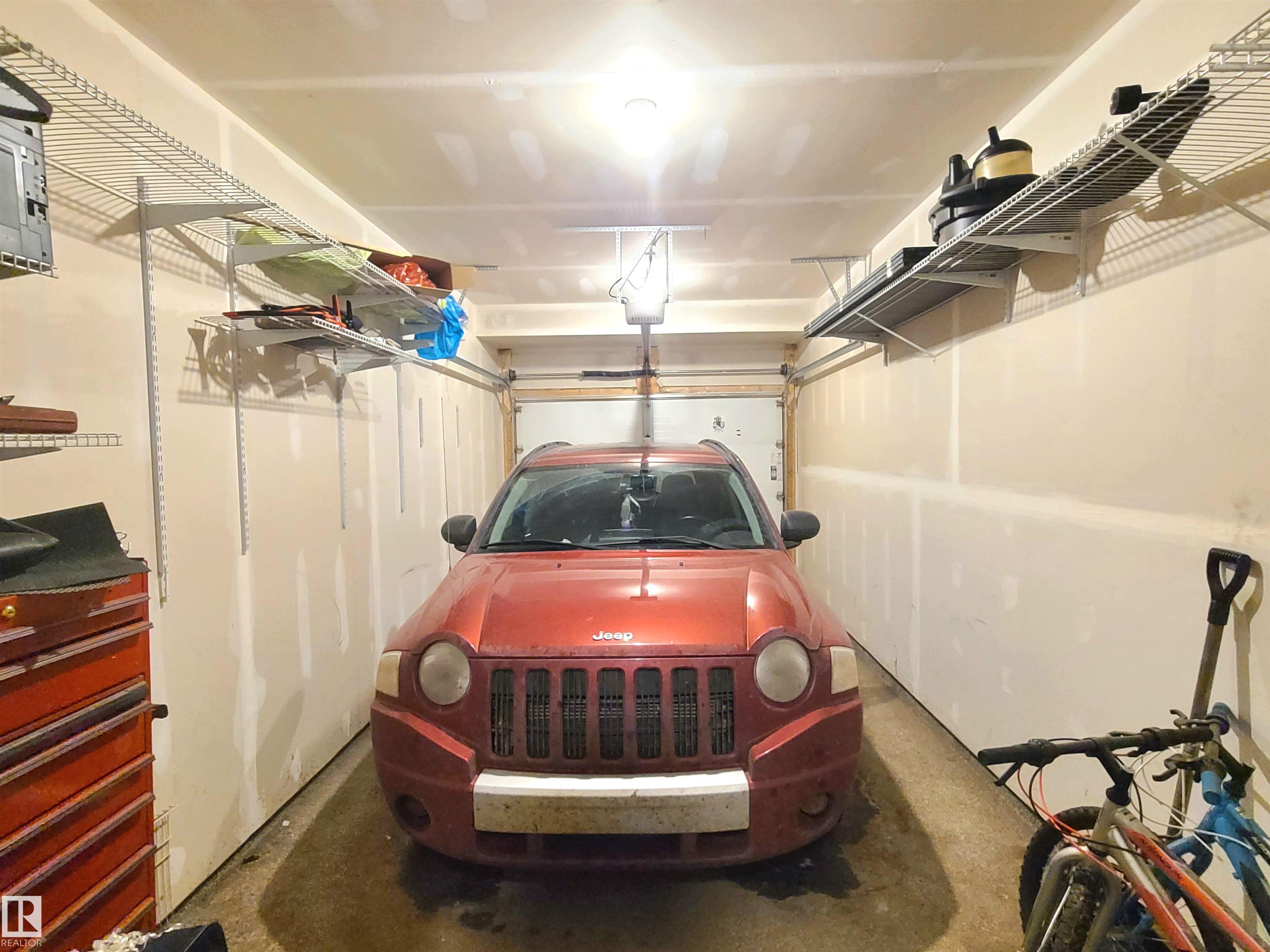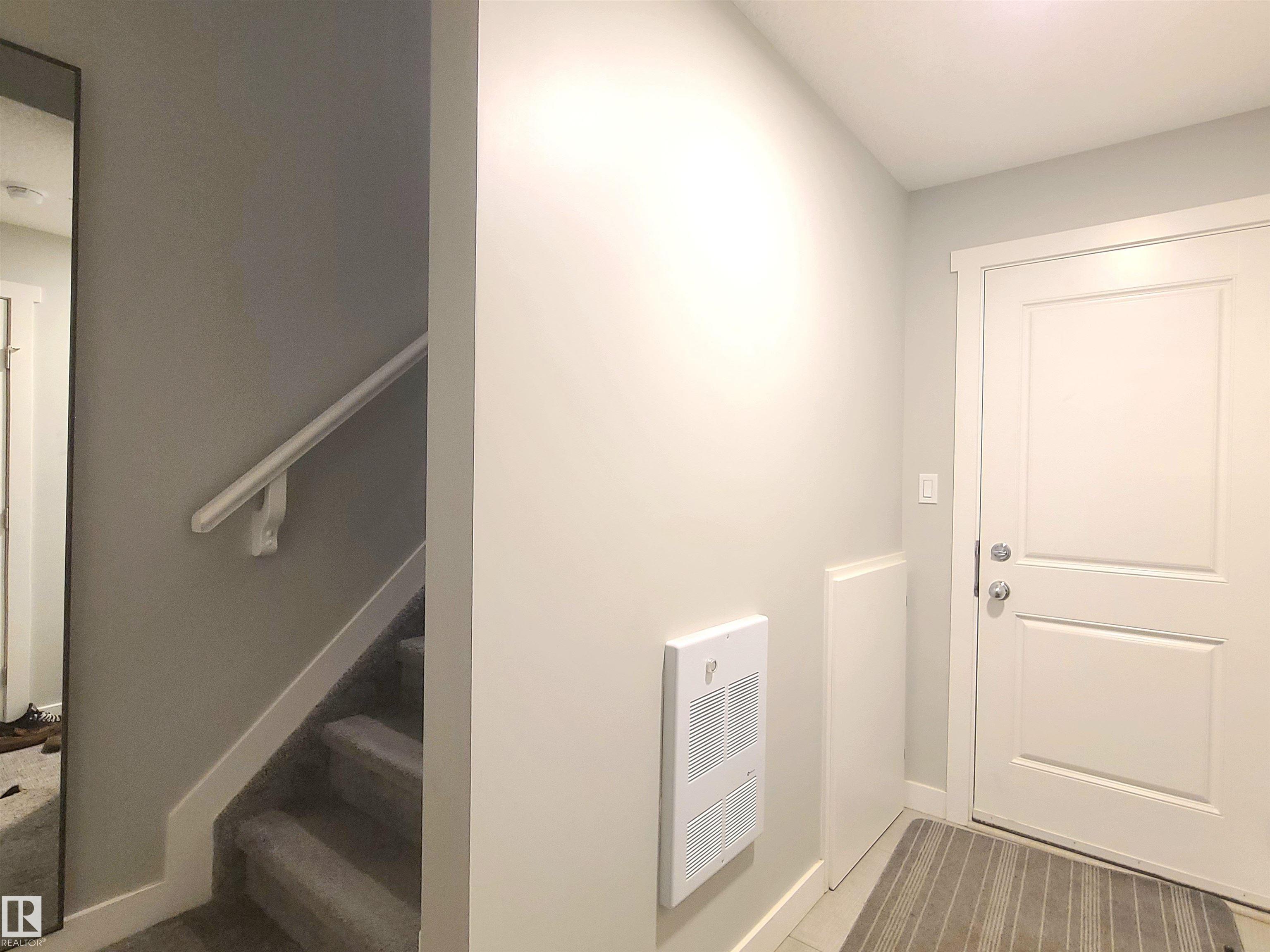 Contemporary 2 storey townhouse with single over sized garage in the upscale neighborhood of Glenridding Heights. Features open concept layout with vaulted ceiling living room and beautiful stone (up to the ceiling) fireplace, modern kitchen with quartz countertops, S/S appliances and large island. The upper level also includes a primary bedroom with a spacious deck facing a beautiful green area, good sized 2nd bedroom and 4pc bath. Visitor parking just steps away. Conveniently located off of Ellerslie rd. Close to parks, Anthony Henday, Currents of Windermere and International Airport.
