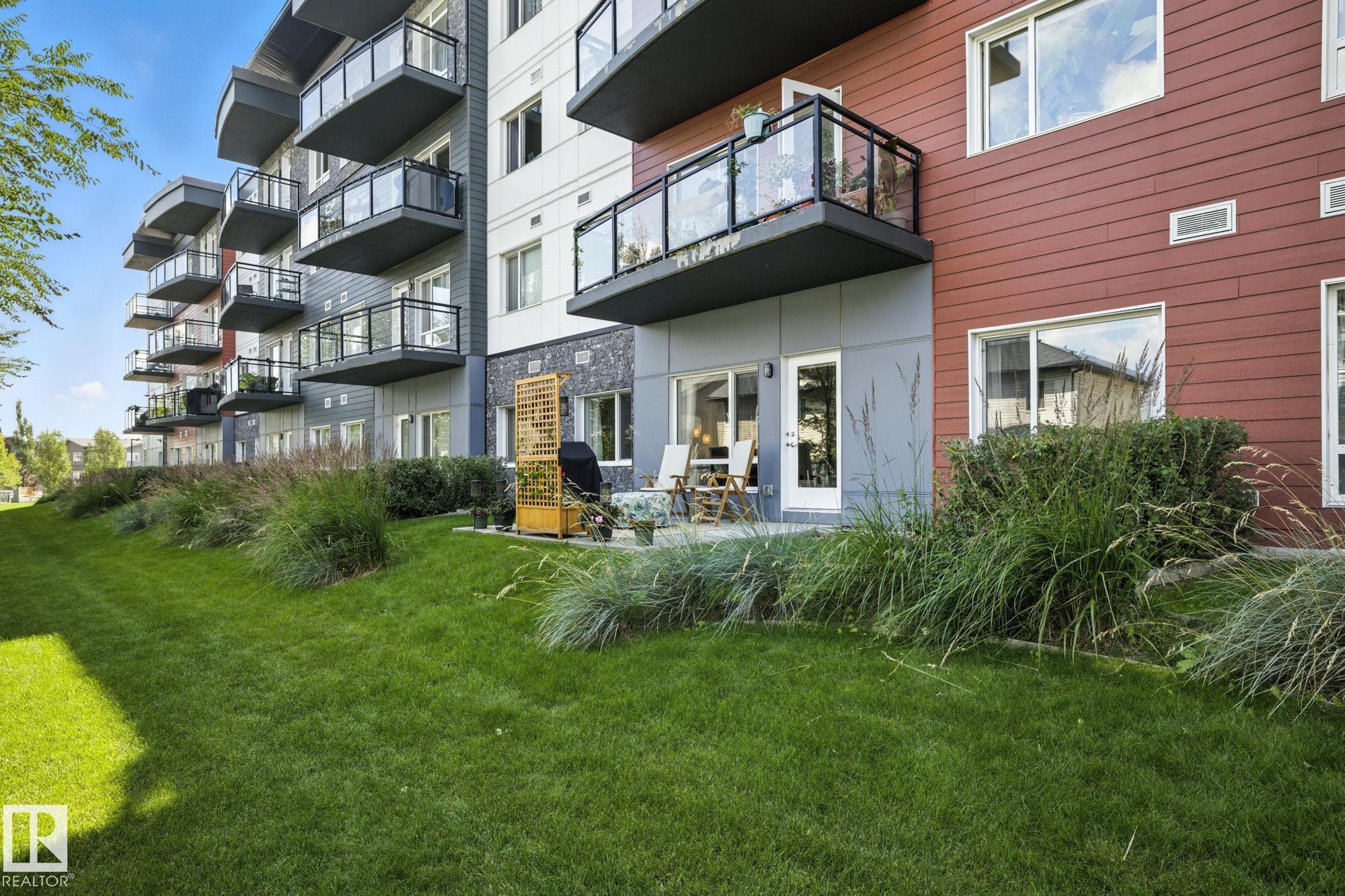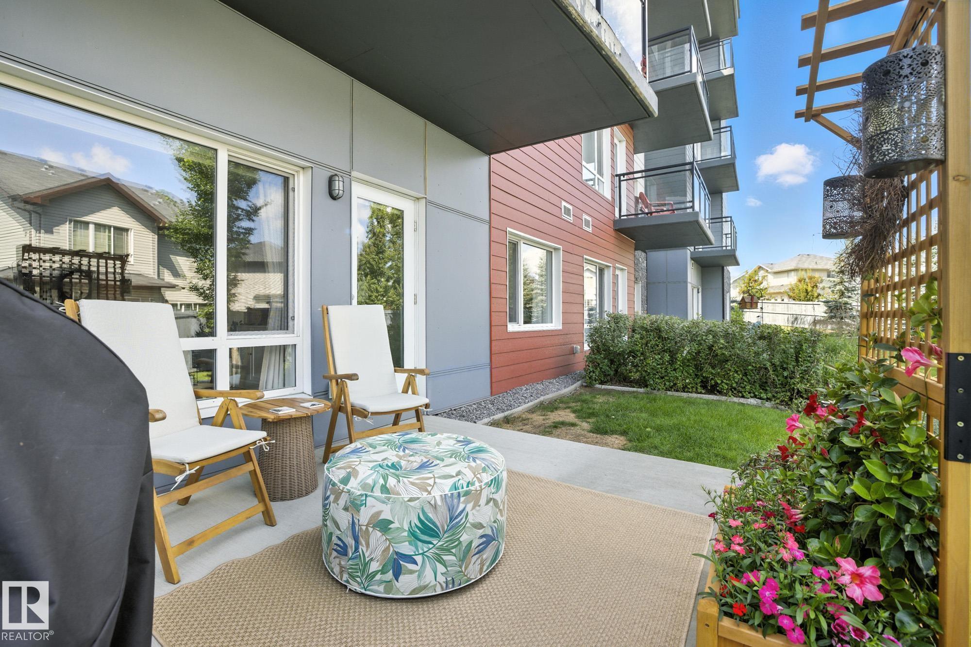 ~ IMMAQULATE 2 BEDROOM, 2 BATH MAIN FLOOR CONDO ~ CENTRAL AIR CONDITONING ~ 2 PARKING STALLS ~ 10 FOOT CEILINGS in LIVING ROOM ~ GORGEOUS HIGH END SAMSUNG APPLIANCES ~ 2 STORAGE CAGES ~ PET FRIENDLY COMPLEX ~ This unit is in absolutely mint condition. There is a good sized patio off the unit for your enjoyment of the outdoors. The kitchen has loads of cupboard space and quartz countertops, extended eating bar, garburator, and under counter lighting, plus beautiful backsplash. The flooring is Luxury Vinyl Plank throughout the unit. There is a good sized laundry room inside the unit with some extra storage space. The primary bedroom has his and hers closets plus a gorgeous ensuite bath. CONCRETE & STEEL CONSTRUCTION which makes this a quiet building to live in. The building is in great condition and has a very nice lobby. The blinds in the unit have electric motors and are remote control. Located in the wonderful community of Granville in West Edmonton, close to Anthony Henday Dr.