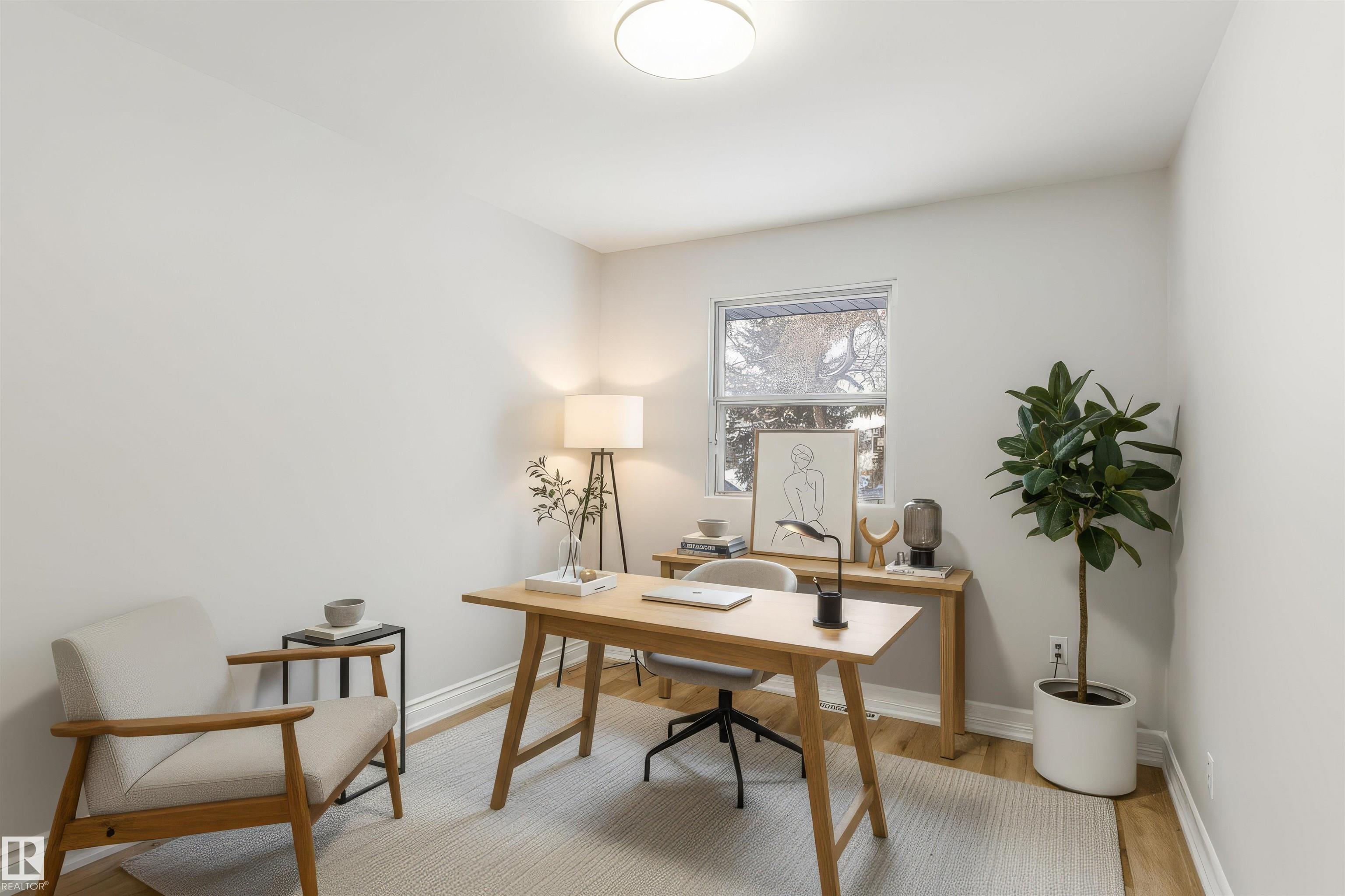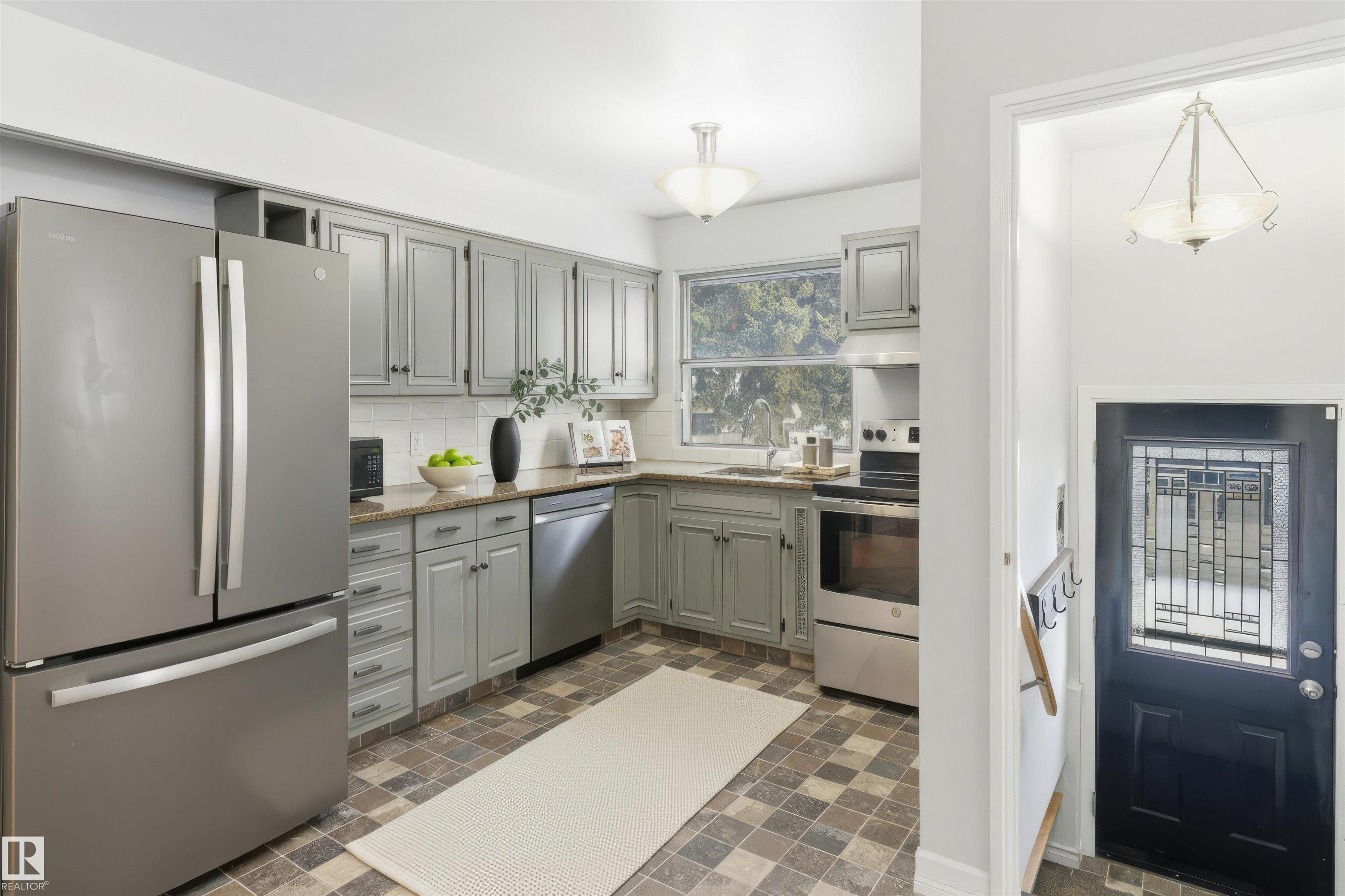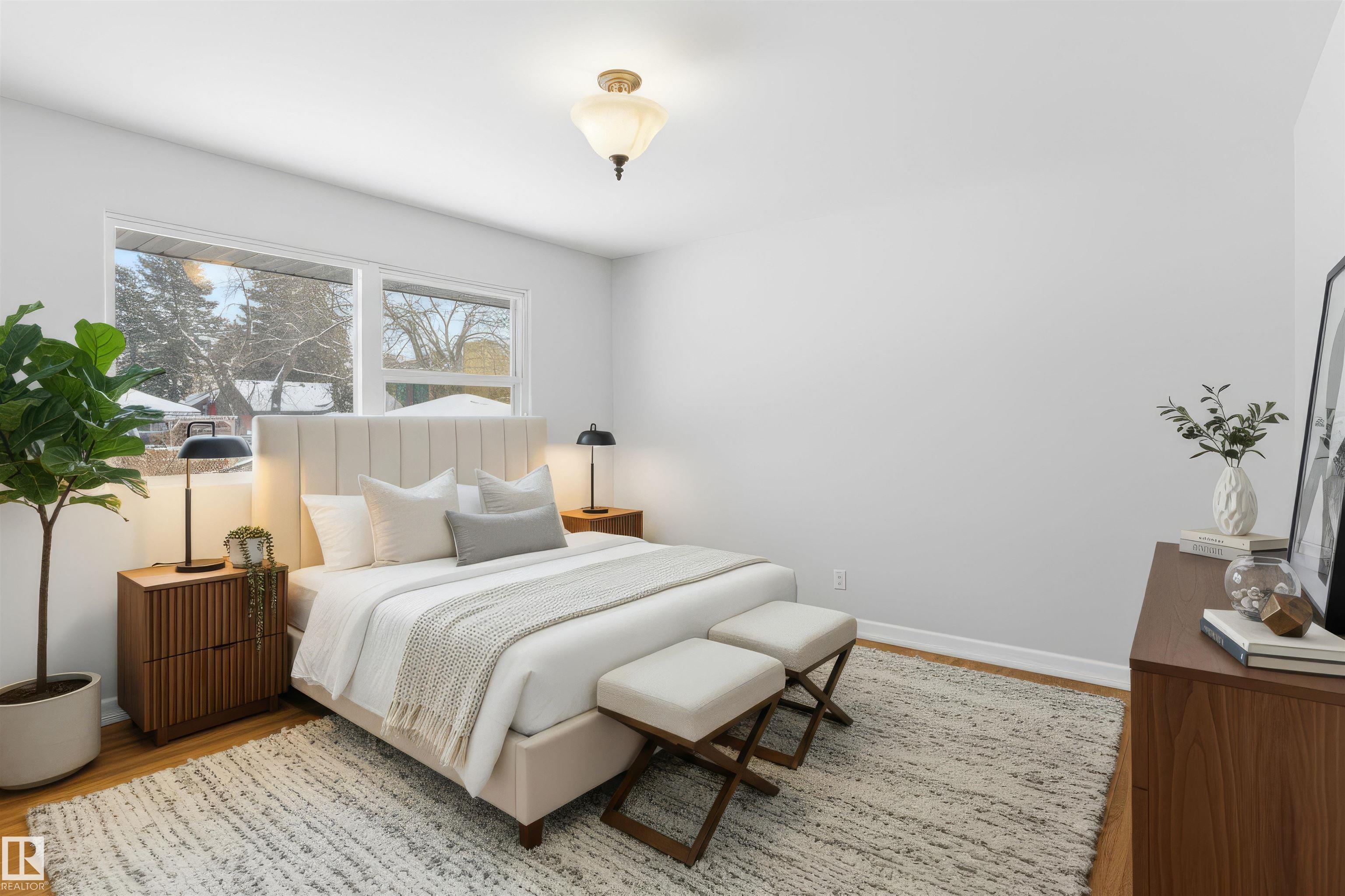 Discover the perfect blend of timeless character & contemporary updates in this truly delightful bungalow, nestled on an spacious lot along a tree lined street in Grovenor. The Living & Dining room are highlighted by gleaming hardwood floors, & coved ceilings. The eat-in kitchen features granite counters, tile backsplash, rich cabinetry, & sleek stainless steel appliances. 3 ample bedrooms & a 4pc bathroom complete the main level. The fully finished basement adds even more living space with a generous rec room, cozy fireplace, Den, Bonus Room, a 3pc bath, & a laundry (New Washer). Modern comfort upgrades include a newer furnace & hot water tank. The exterior has also been refreshed with upgraded insulation, vinyl siding, newer soffits, fascia, & eavestroughs. The beautifully landscaped and fenced backyard offers a large deck, excellent privacy, & a double detached garage. All of this with quick access to downtown, shopping, transit & more. Some photos are virtually staged.