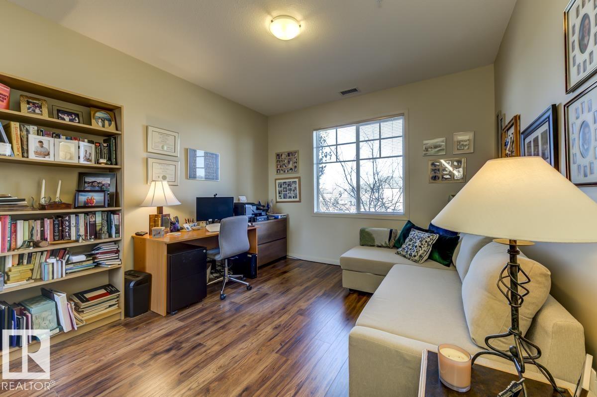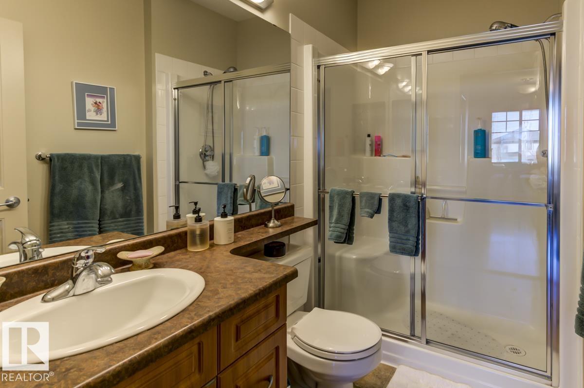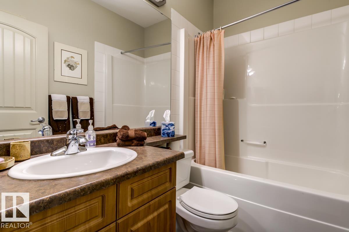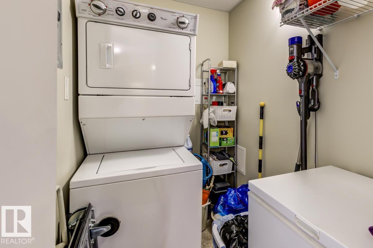 Discover stylish, low-maintenance living in this beautifully maintained 2-bedroom condo offering 970 sq ft in Tradition at Riverside in sought-after Haddow. Located on the 2nd floor, this bright, inviting home features 9' ceilings, air conditioning, and a spacious open-concept layout perfect for relaxing or entertaining. The generous primary suite offers a 3-pc ensuite and ample closet space, while the second bedroom and full 4-pc bath provide flexibility for guests, family, or a home office. The kitchen includes an eating bar and abundant cabinetry. Enjoy the convenience of in-suite laundry and a titled underground parking stall. Step onto your private patio with gas line--ideal for summer BBQs or quiet evenings outdoors. Residents enjoy fantastic amenities including a fitness centre, guest suite, social rooms, and car wash. Condo fees include heat, water/sewer, and professional management. Perfectly located near the Terwillegar Rec Centre, schools, shopping, and transit--an exceptional place to call home!