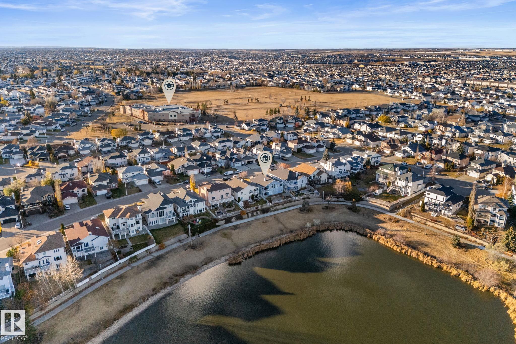 Experience luxury in this completely renovated and fully upgraded WALKOUT bungalow backing on to a lake. This home offers 2955 sqft of living space. It features 4 bedrooms and 3 full bathrooms. The main floor is bright and open with high ceilings, a stunning kitchen with gas stove, spacious living room with beautiful views of lake, covered patio, 2 bedrooms, main floor laundry and front room den/flex space. The walkout basement offers a large rec room, wet bar, full bath, and additional two bedrooms. Backyard is landscaped with a large deck with gazebo and firepit area. Notable upgrades: new furnace, hot water tank. In floor heating in primary and basement bathroom. Large heated garage 23'5 by 23 with water drain. Don't miss out on this rare find! Close to schools, shopping, all amenities, Anthony Henday and so much more.
