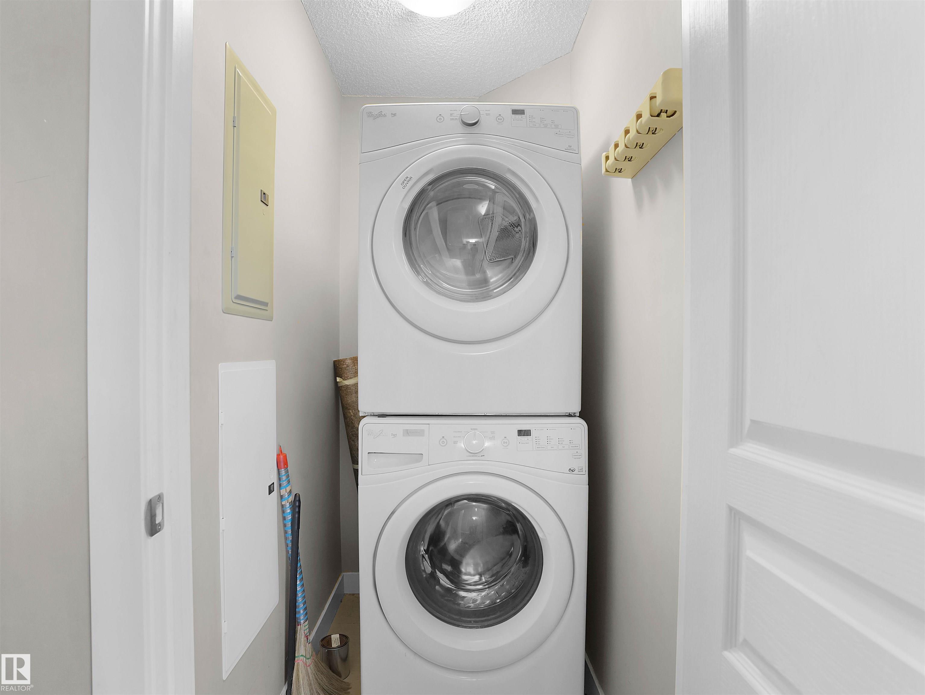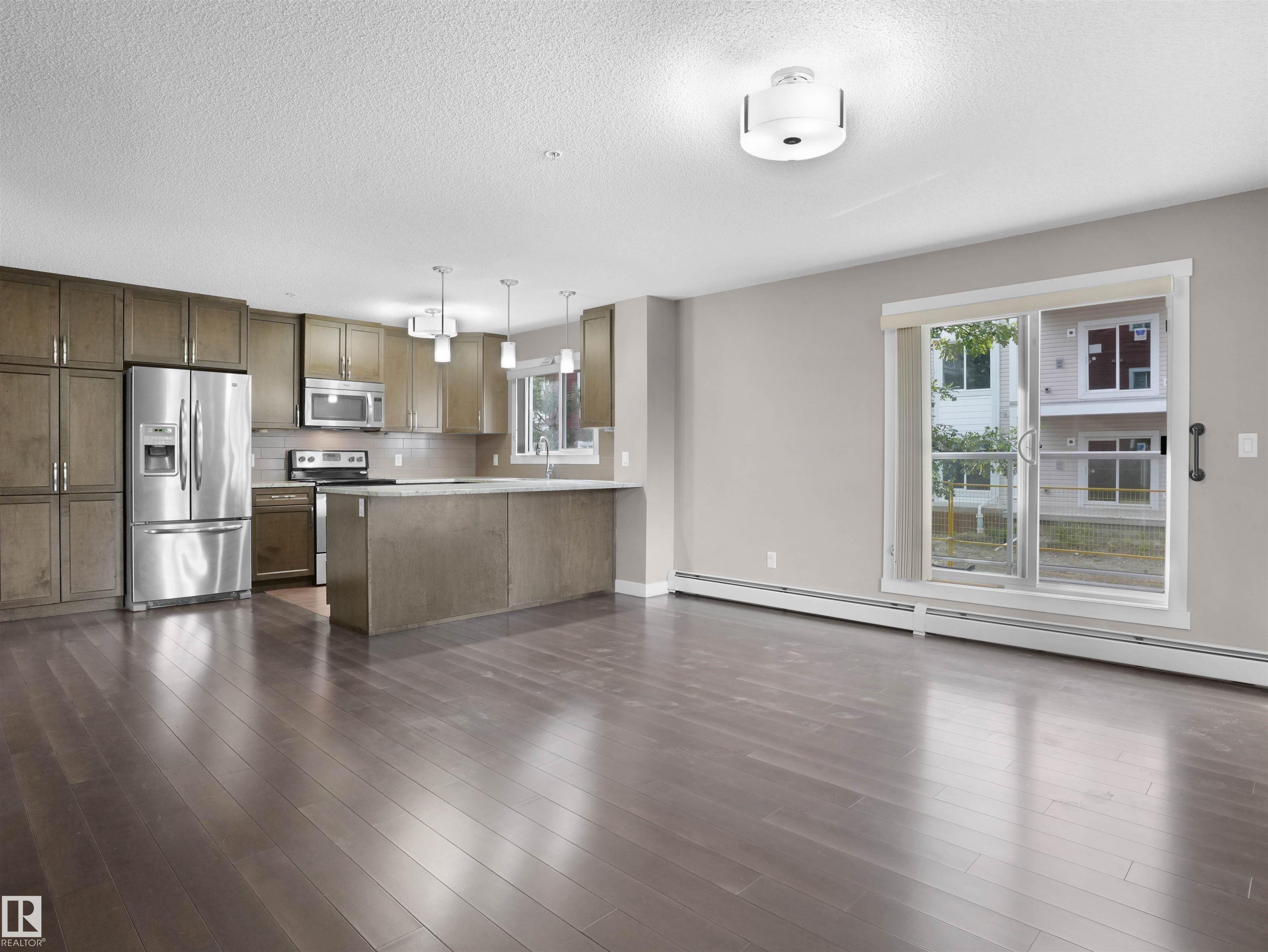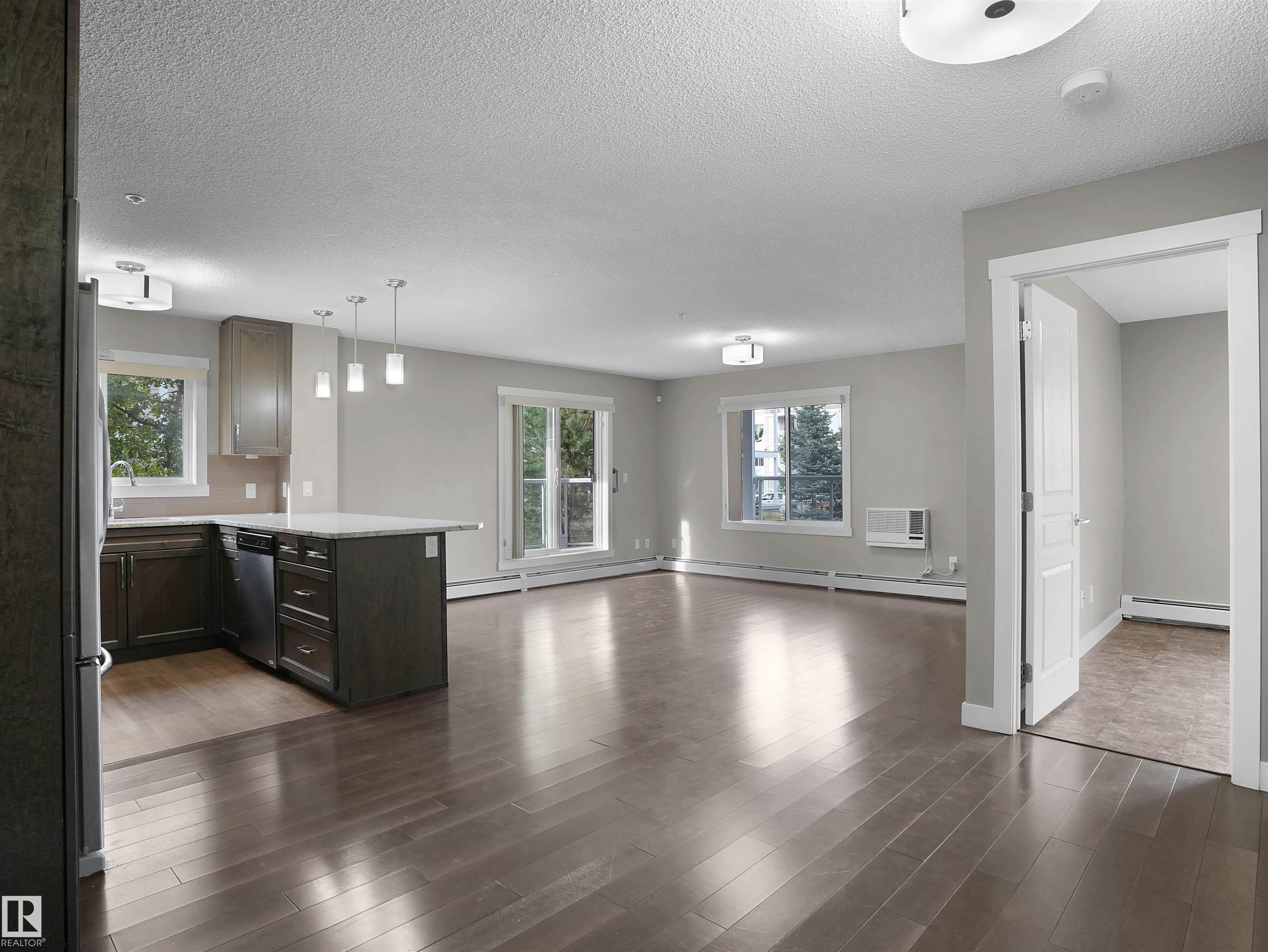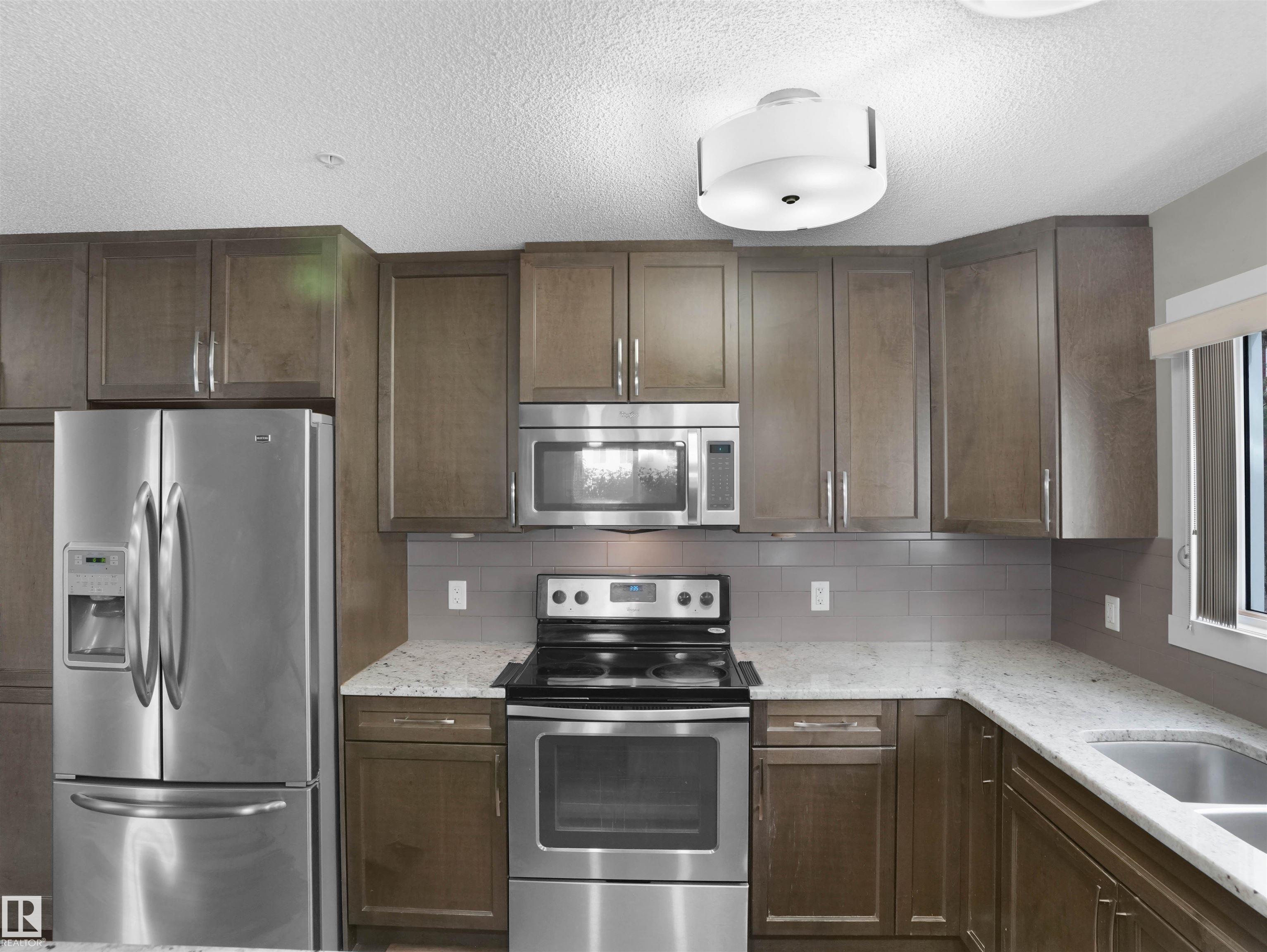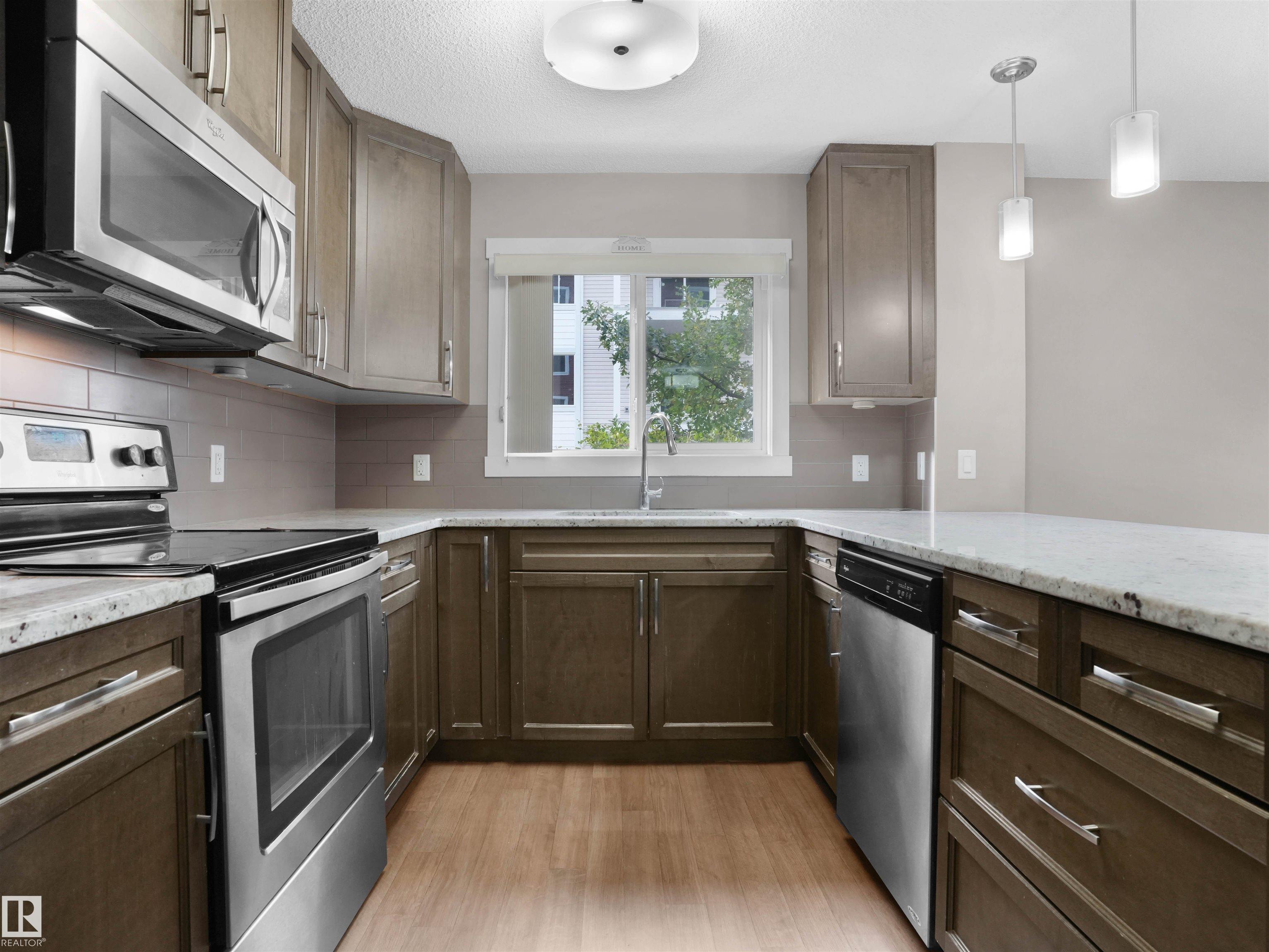 Immaculate & well-maintained, this main-floor condo blends style & convenience in the heart of Larkspur. The open-concept living/dining area is bright & welcoming while the functional U-shaped kitchen stands out with a window for natural light, SS appliances, abundant cabinetry & a breakfast bar. Bedrooms are thoughtfully separated for privacy: the primary suite offers a WI closet and 3-pc ensuite, while second bedroom is served by a full 4-pc bath. Everyday comfort is enhanced with in-suite laundry & two assigned storage units. From the living room, step onto your spacious, covered patio with glass railing--a perfect spot to relax outdoors while enjoying extra privacy and shade. Underground parking keeps winters stress-free while the building's gym & amenities room support an active lifestyle. Walk to Superstore, with Meadows Rec Centre, RioCan Shopping Centre, schools, parks, and transit nearby, plus quick access to Whitemud and Anthony Henday. Condo fees include all utilities including electricity.