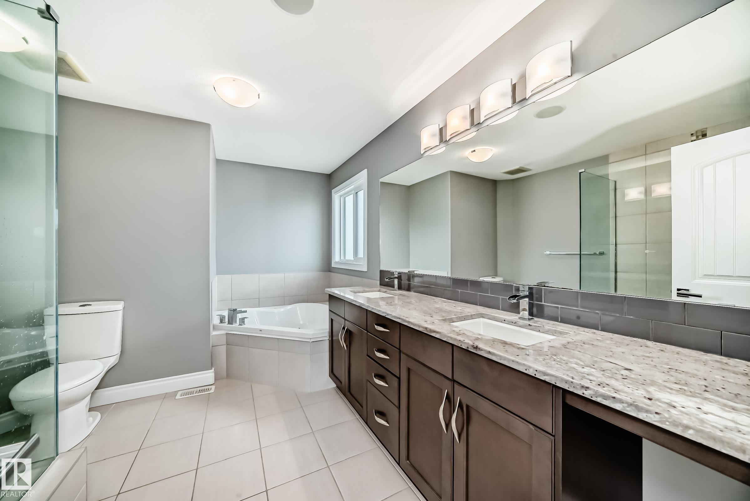 A lavish home steeped in quiet luxury! Award-winning design in the desirable comm. of Laurel! Approx. 2300 sq.ft. above grade + fully fin. bsmt, this stunning home offers the best in style & comfort. Open flr plan c/w ceramic & gleaming hardwood, 9' ceilings, 8' drs, flex/dining rm w/French drs, great rm w/gas FP, & gourmet kitchen w/exotic white granite, lrg island & eating bar. Upper flr boasts 3 spacious bdrms + vaulted bonus rm. Primary suite offers WIC & lux 5-pce ensuite. Granite in all baths + exquisite lighting pkg. Upgrades incl: central A/C, heated garage, 2-stage variable speed furnace, Water softner, declorinator, tankles hot water & built-in speakers. Lower lvl fully fin. w/rec rm, full bath/ensuite & 2 bdrms. Outdoor living c/w sun deck, fenced & landscaped yard, playset, gazebo & shed. Steps to comm. lake, walking/biking paths, transit, w/excellent access to Henday & Whitemud. Stop Waiting - Start Living!