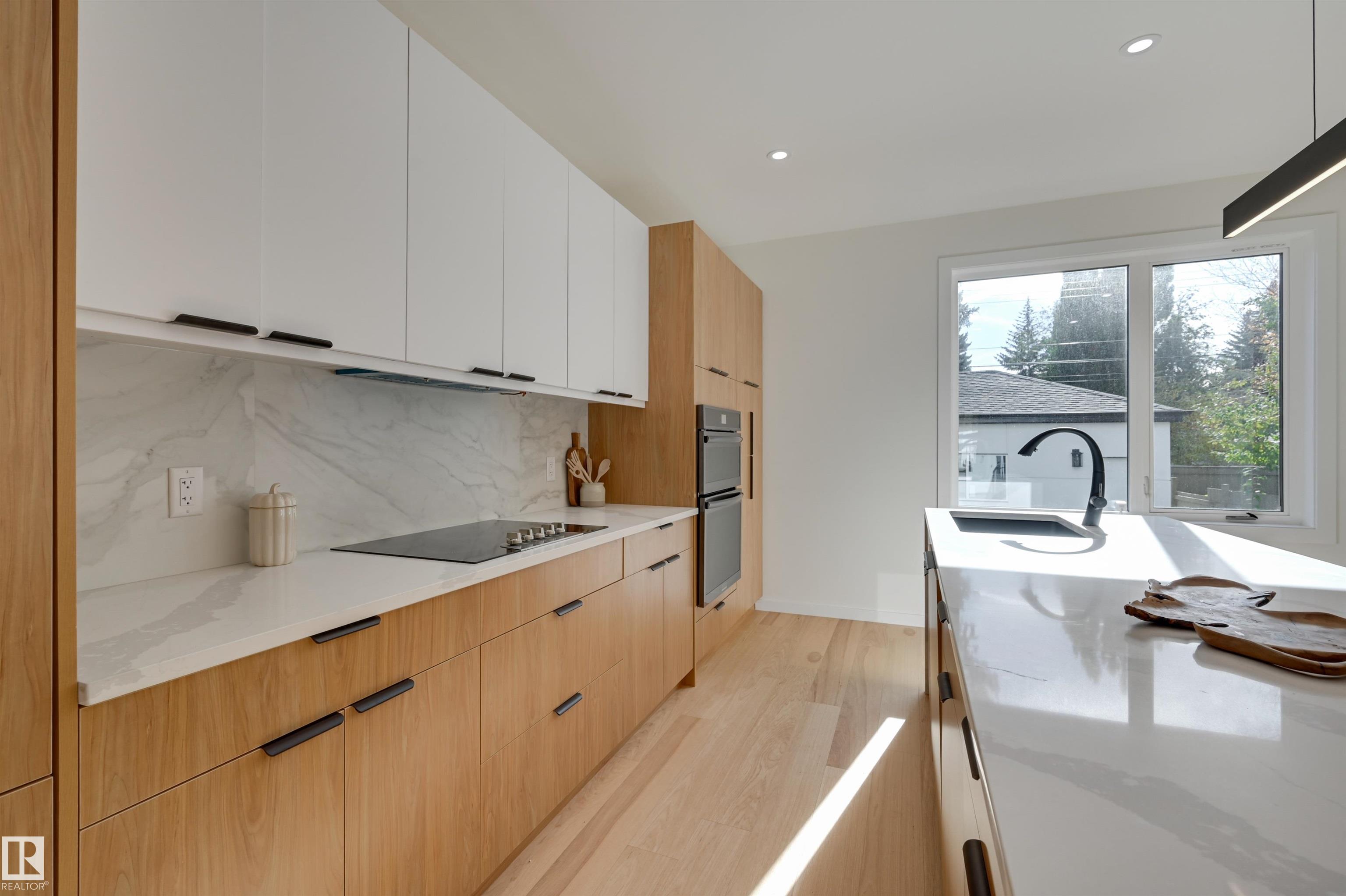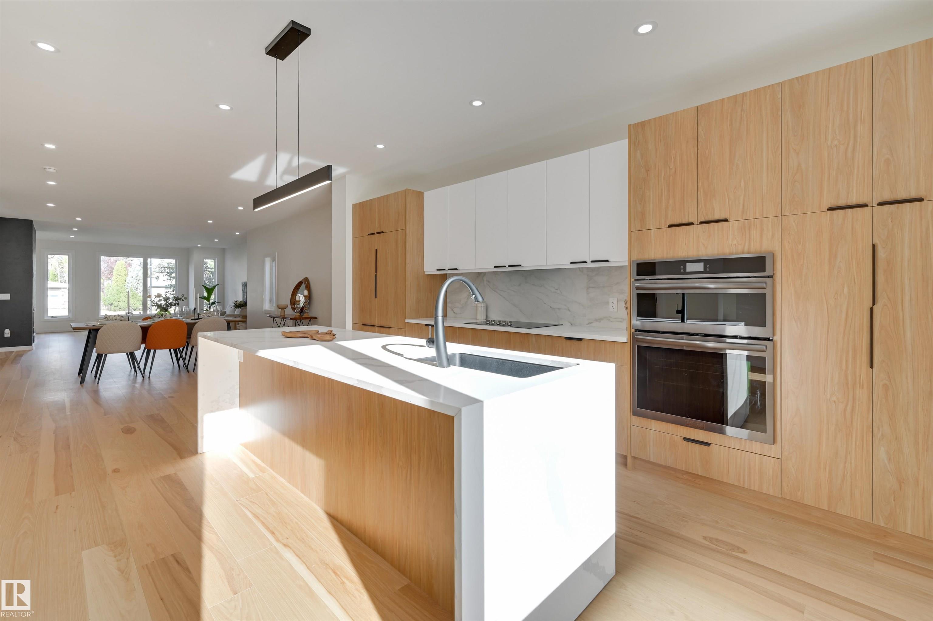 New HOME in Laurier Heights! This beautifully built 2 storey home offers over 3400 sq ft of thoughtfully designed living space. The main floor features a grand open-concept living & dining area that flows seamlessly into the kitchen overlooking the backyard. The kitchen includes a waterfall island, custom cabinetry, integrated fridge, double ovens, & walk-in pantry. The back entry provides convenience and easy outdoor access. Upstairs, you'll find a loft, laundry rm, serene primary bedroom with walk-in closet and relaxing ensuite, plus 2 spacious bedrooms--each with its own ensuite. Additional Upgrades: premium Belgian waterproof hardwood, artist-finished patina walls, & full spray foam insulation ensure beauty, efficiency, & quiet throughout. The 2-bedroom legal basement suite includes a private entrance, full kitchen, laundry, --ideal for rental income, extended family, or home business. Situated in Laurier Heights, just steps from the River Valley, the Zoo, parks, trails & schools.