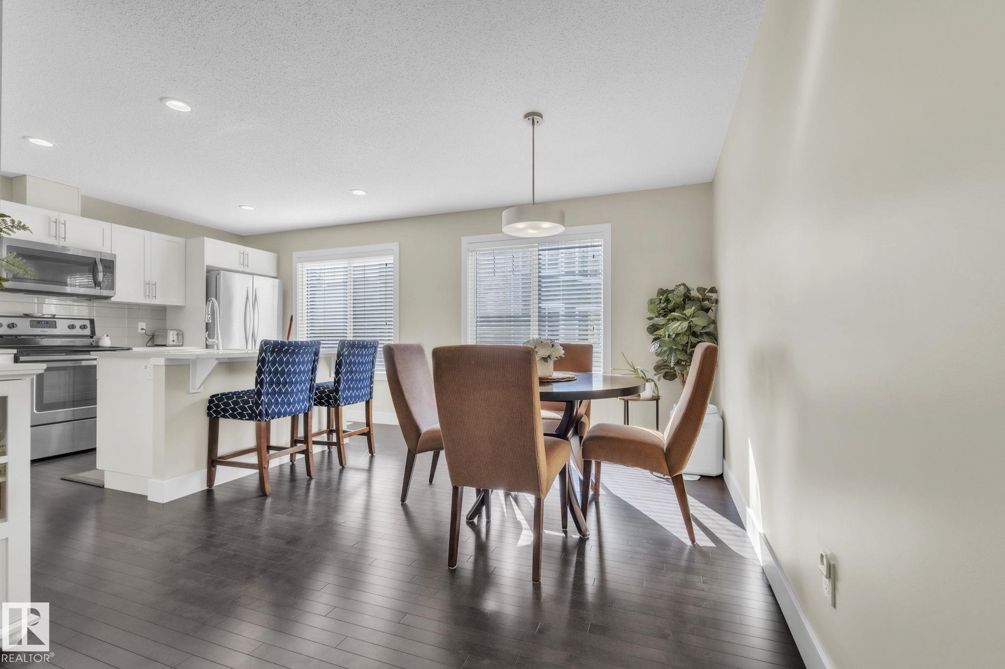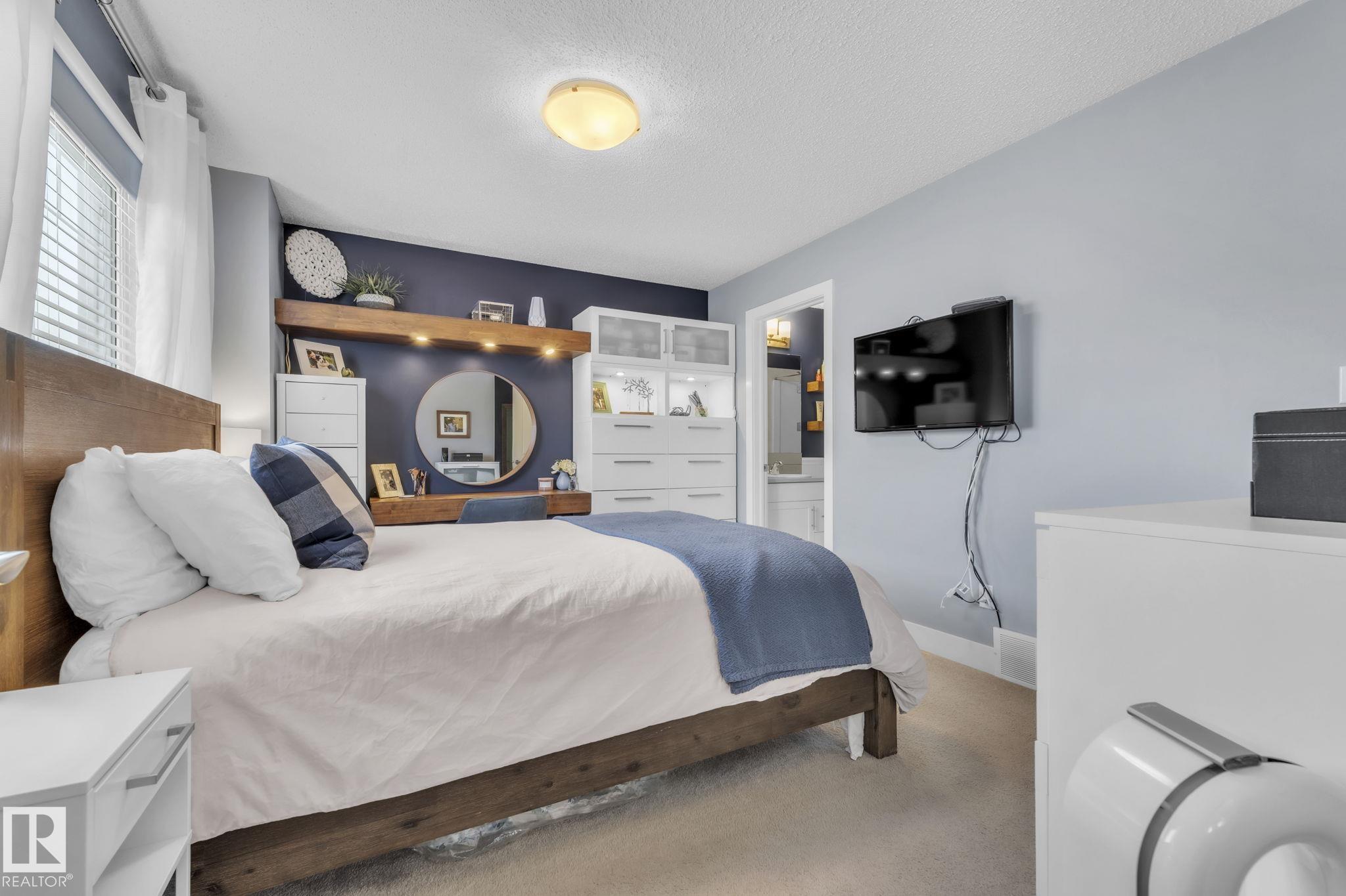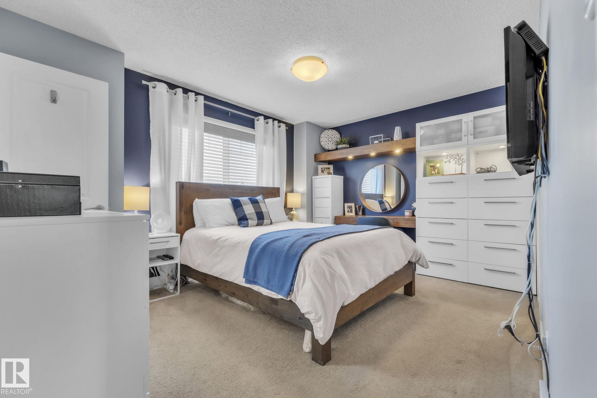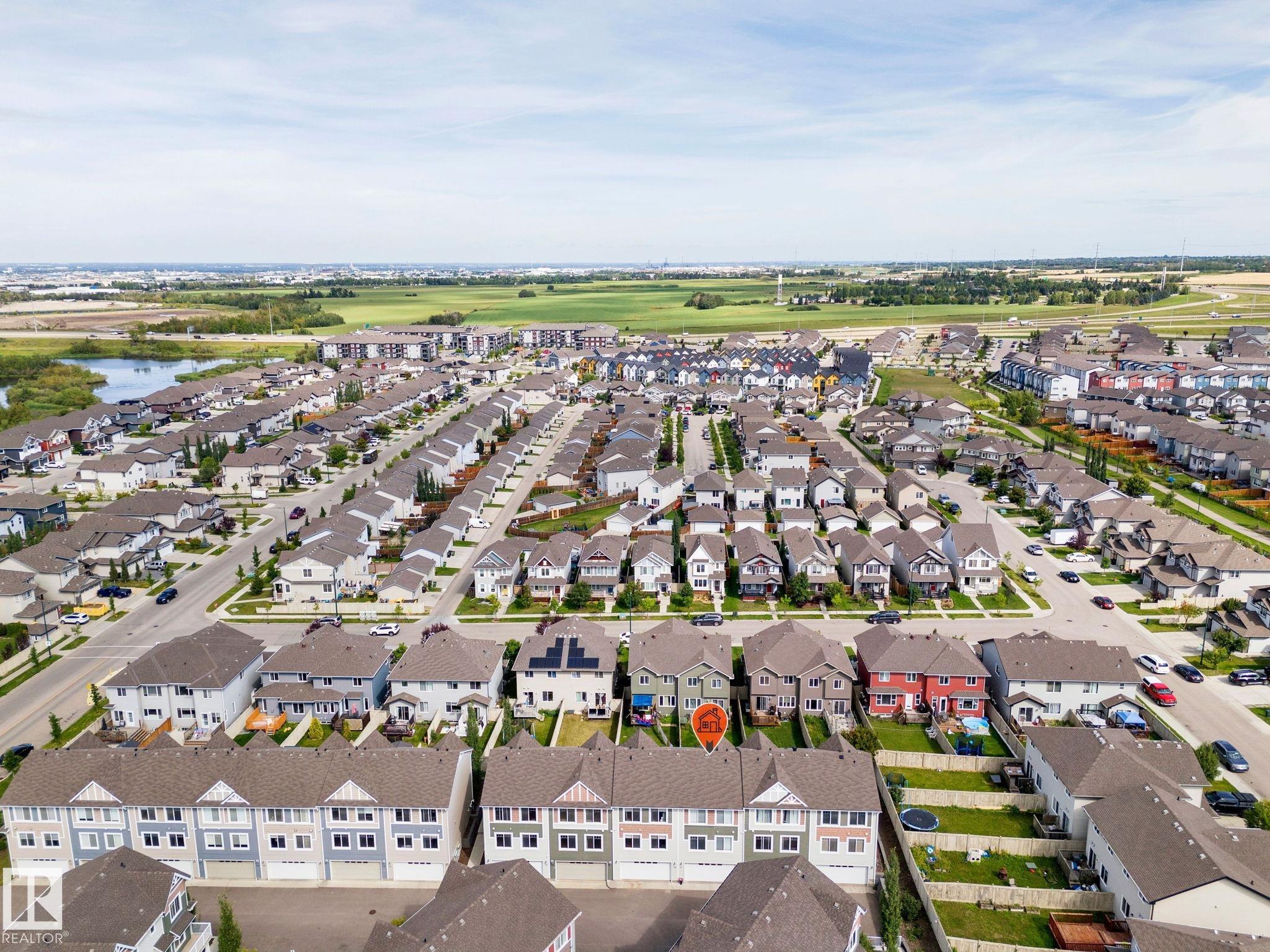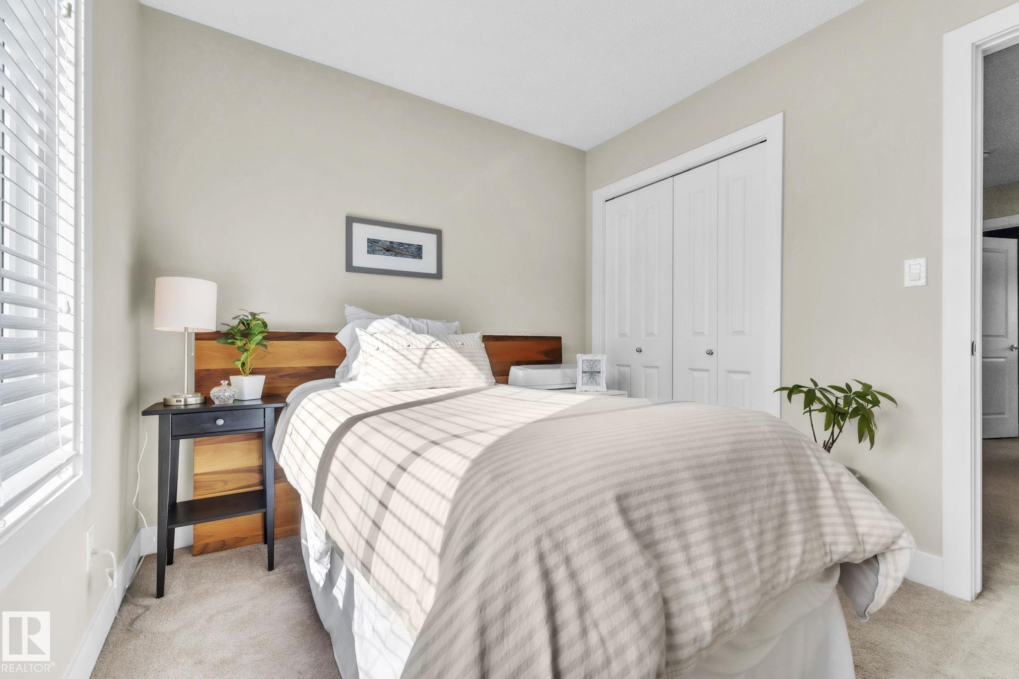 Upgraded To Perfection! You will love the sleek built-in entertainment unit in the living room, on-point makeup desk & built-in dressers in the primary bedroom & a built-in bench with storage just off the garage. Things get cooler with A/C, on-trend color palette with modern finishes & decor throughout. An unbeatable location - lakes, shops, schools & parks in a desirable condo community. Stylish kitchen with quartz counters, plenty of cabinets & an eating bar at the island overlooking the dining area. Mainfloor laundry with a new high end stacked washer/dryer. Upstairs has 3 bedrooms, including a dreamy primary suite with walk-in closet & 4-piece ensuite, plus another full 4-piece bath for the family. A large double garage to keep the car warm in the winter. Outside, relax or entertain on your private patio - perfect for BBQ nights, summer evenings, or a quiet morning coffee. This home combines style, comfort & convenience. The perfect space for families to grow, create memories & enjoy! Don't delay
