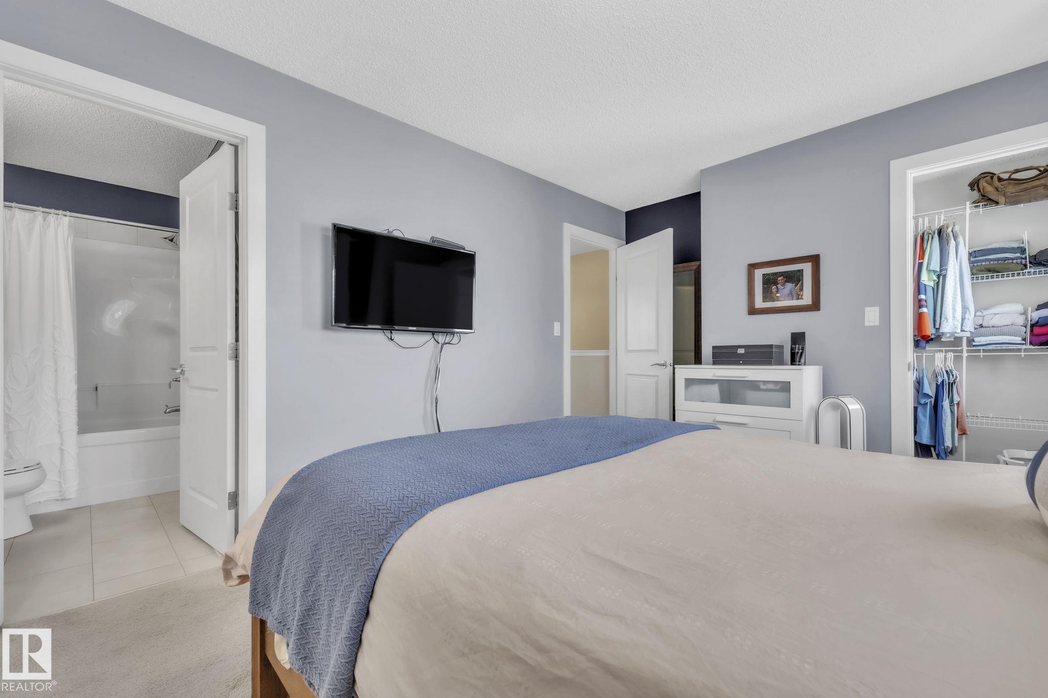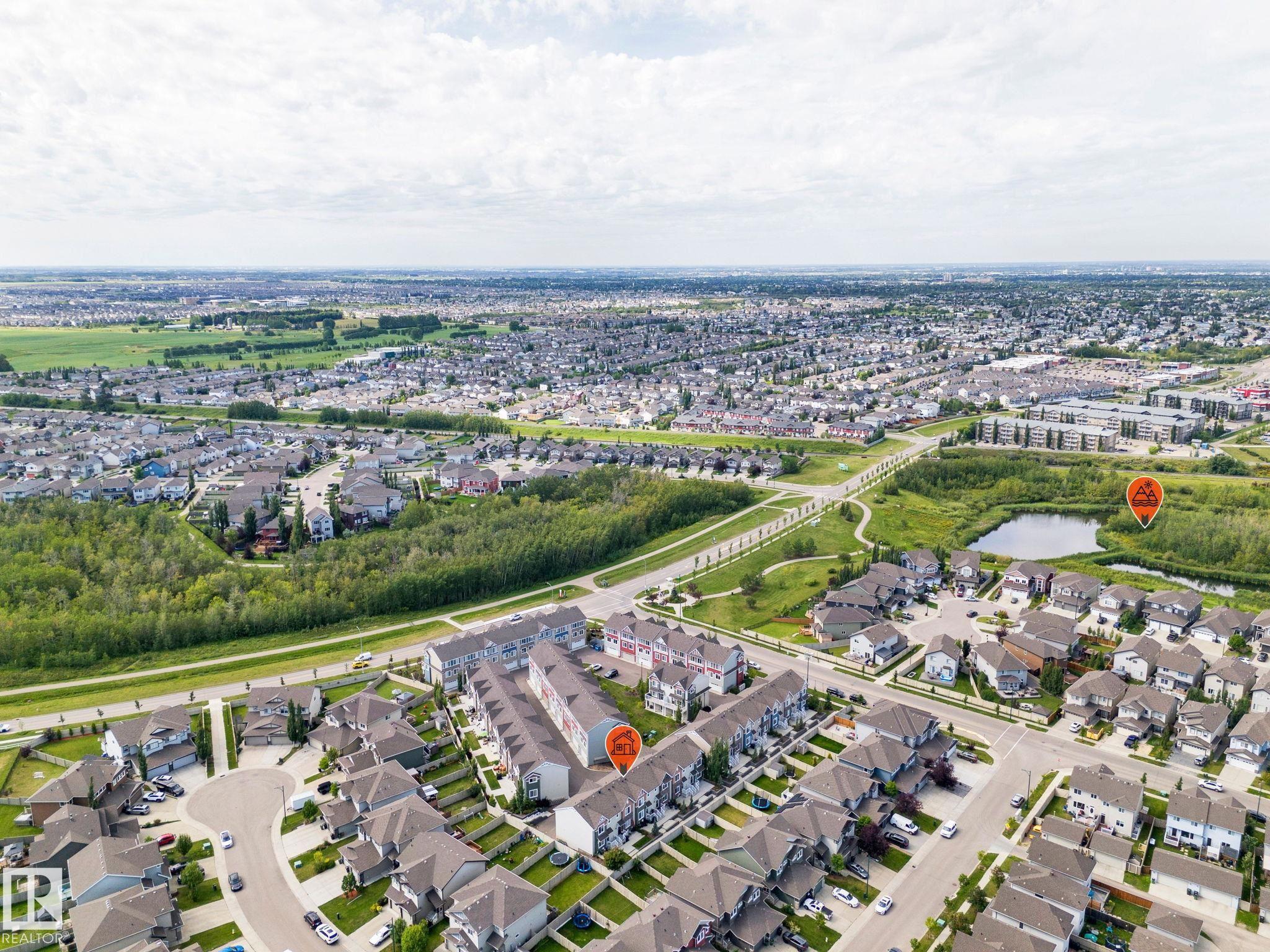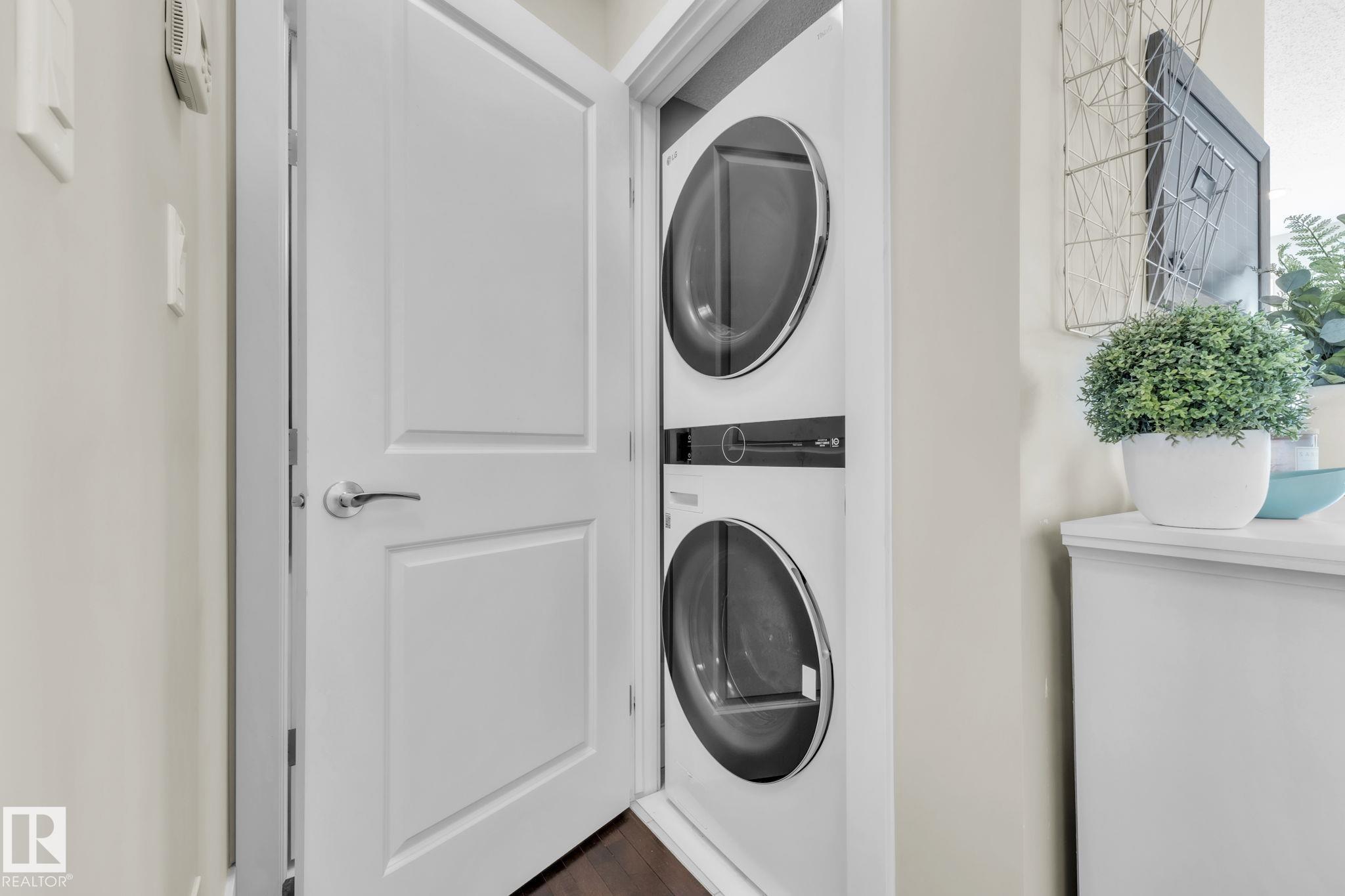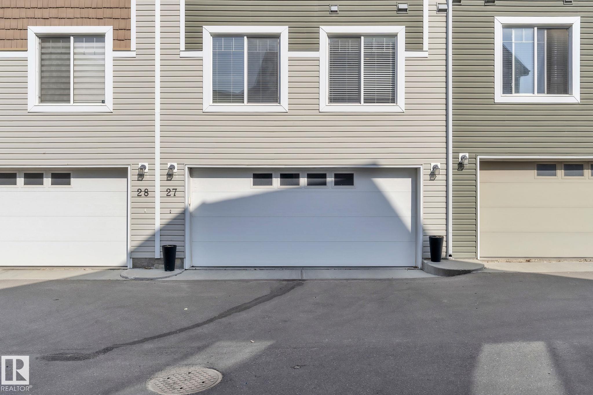 Upgraded To Perfection! You will love the sleek built-in entertainment unit in the living room, on-point makeup desk & built-in dressers in the primary bedroom & a built-in bench with storage just off the garage. Things get cooler with A/C, on-trend color palette with modern finishes & decor throughout. An unbeatable location - lakes, shops, schools & parks in a desirable condo community. Stylish kitchen with quartz counters, plenty of cabinets & an eating bar at the island overlooking the dining area. Mainfloor laundry with a new high end stacked washer/dryer. Upstairs has 3 bedrooms, including a dreamy primary suite with walk-in closet & 4-piece ensuite, plus another full 4-piece bath for the family. A large double garage to keep the car warm in the winter. Outside, relax or entertain on your private patio - perfect for BBQ nights, summer evenings, or a quiet morning coffee. This home combines style, comfort & convenience. The perfect space for families to grow, create memories & enjoy! Don't delay