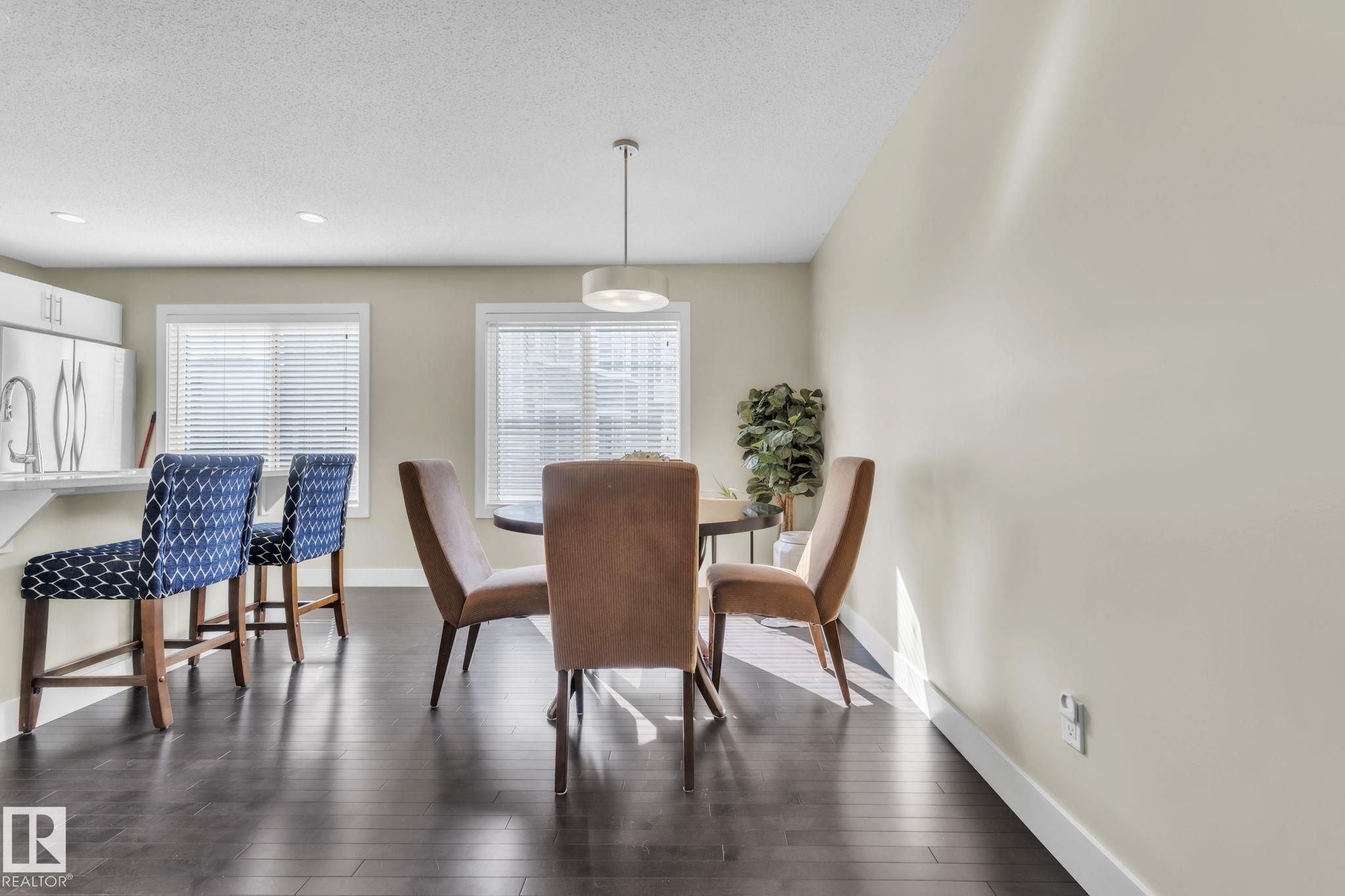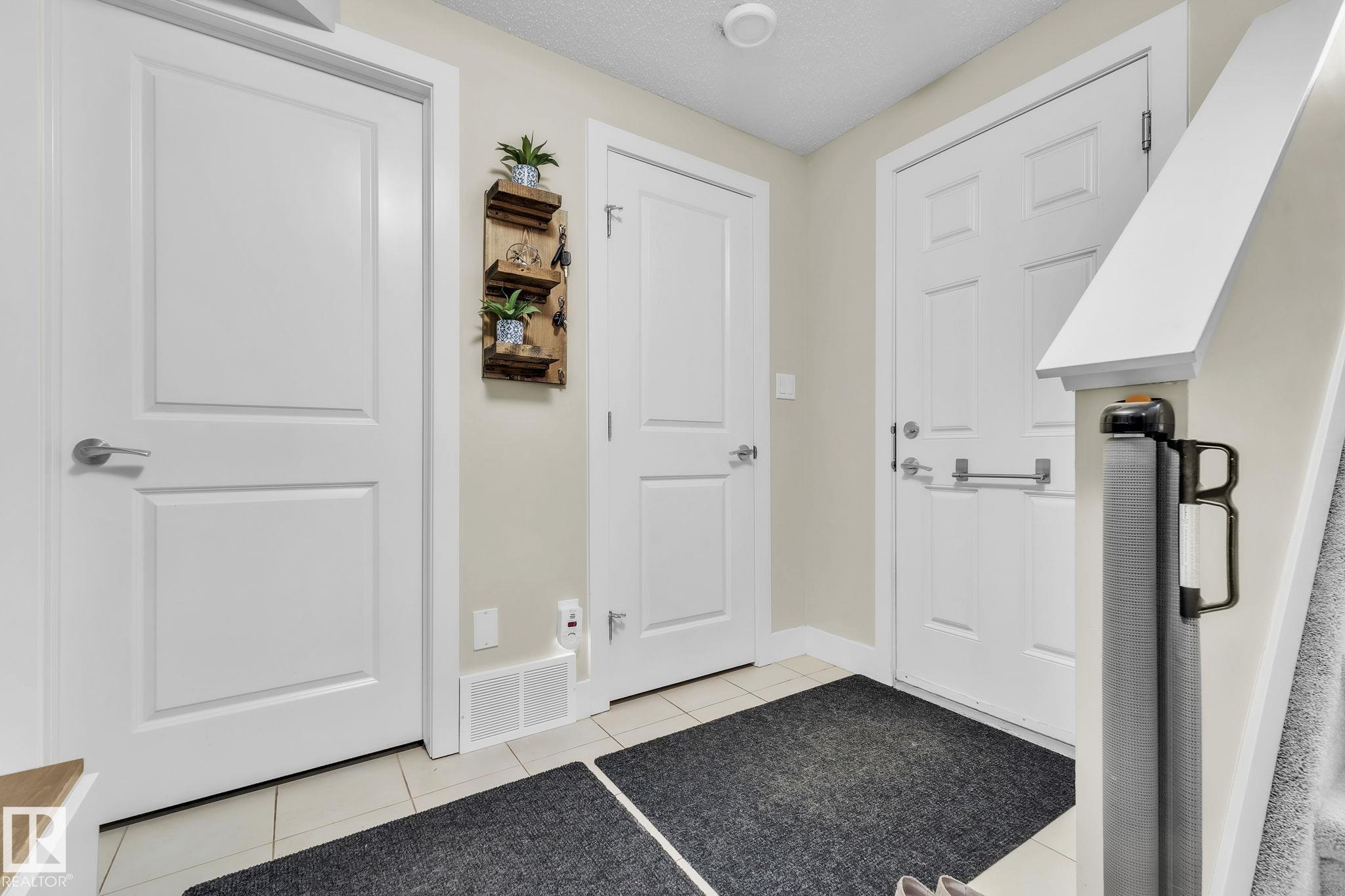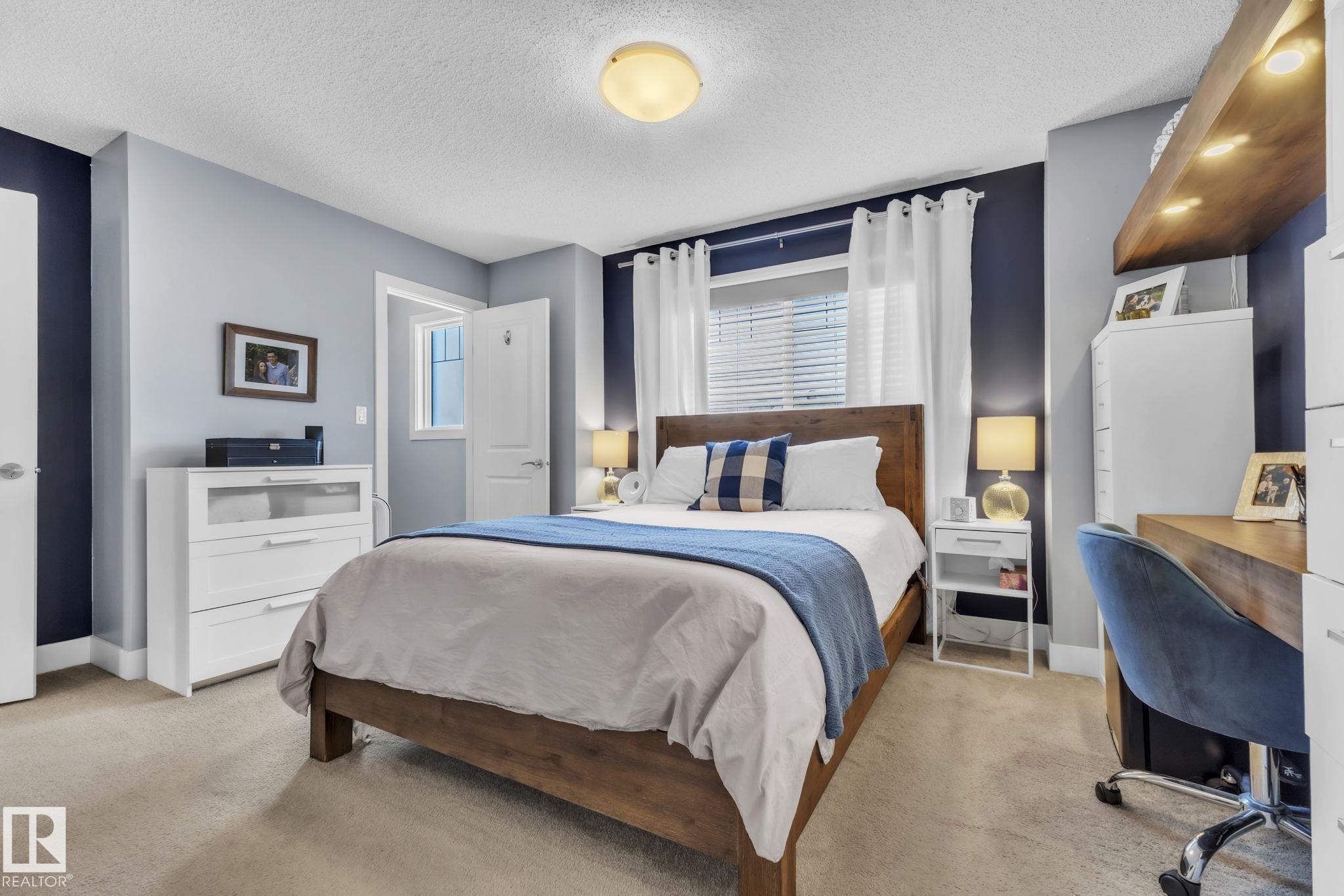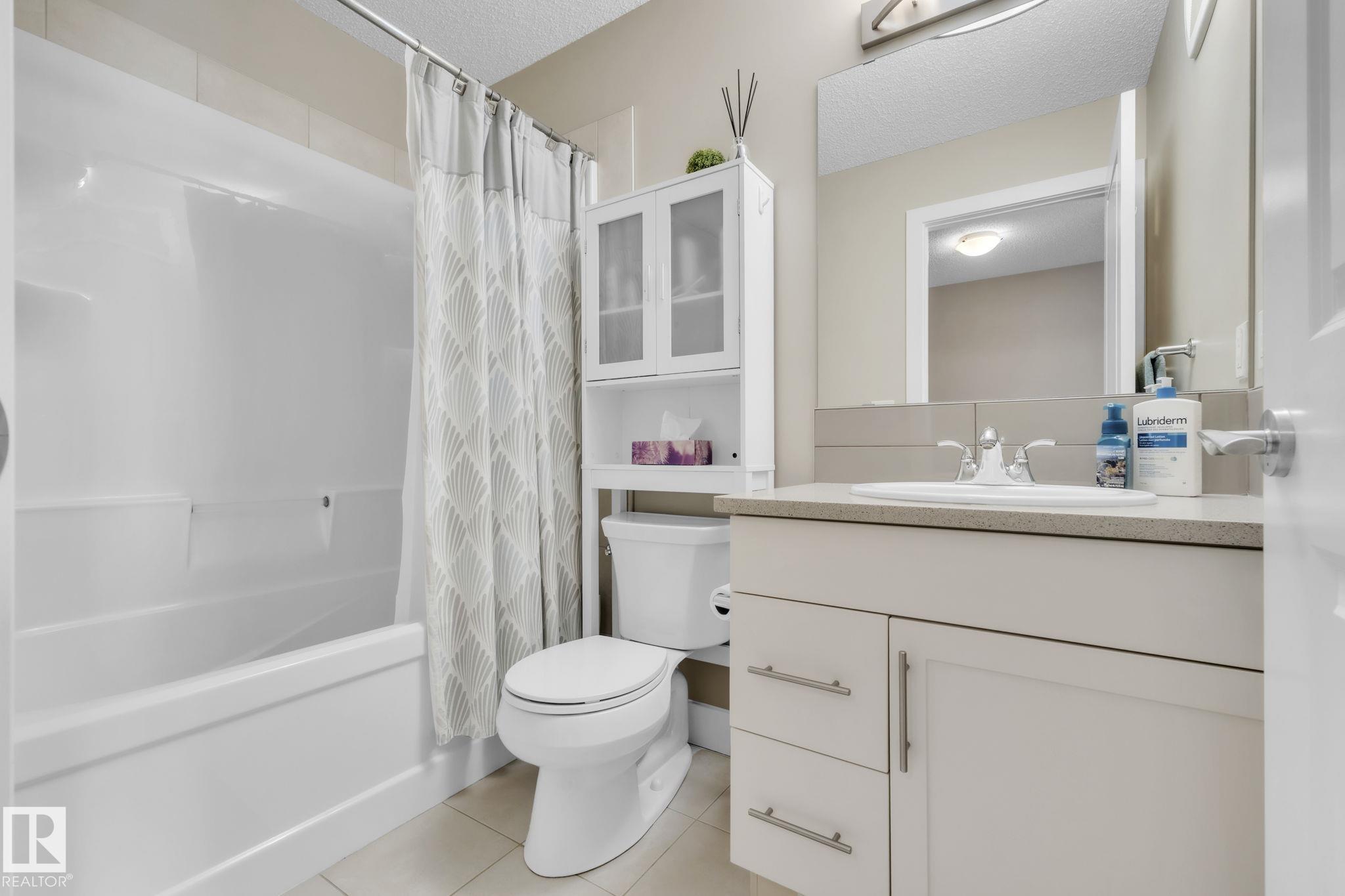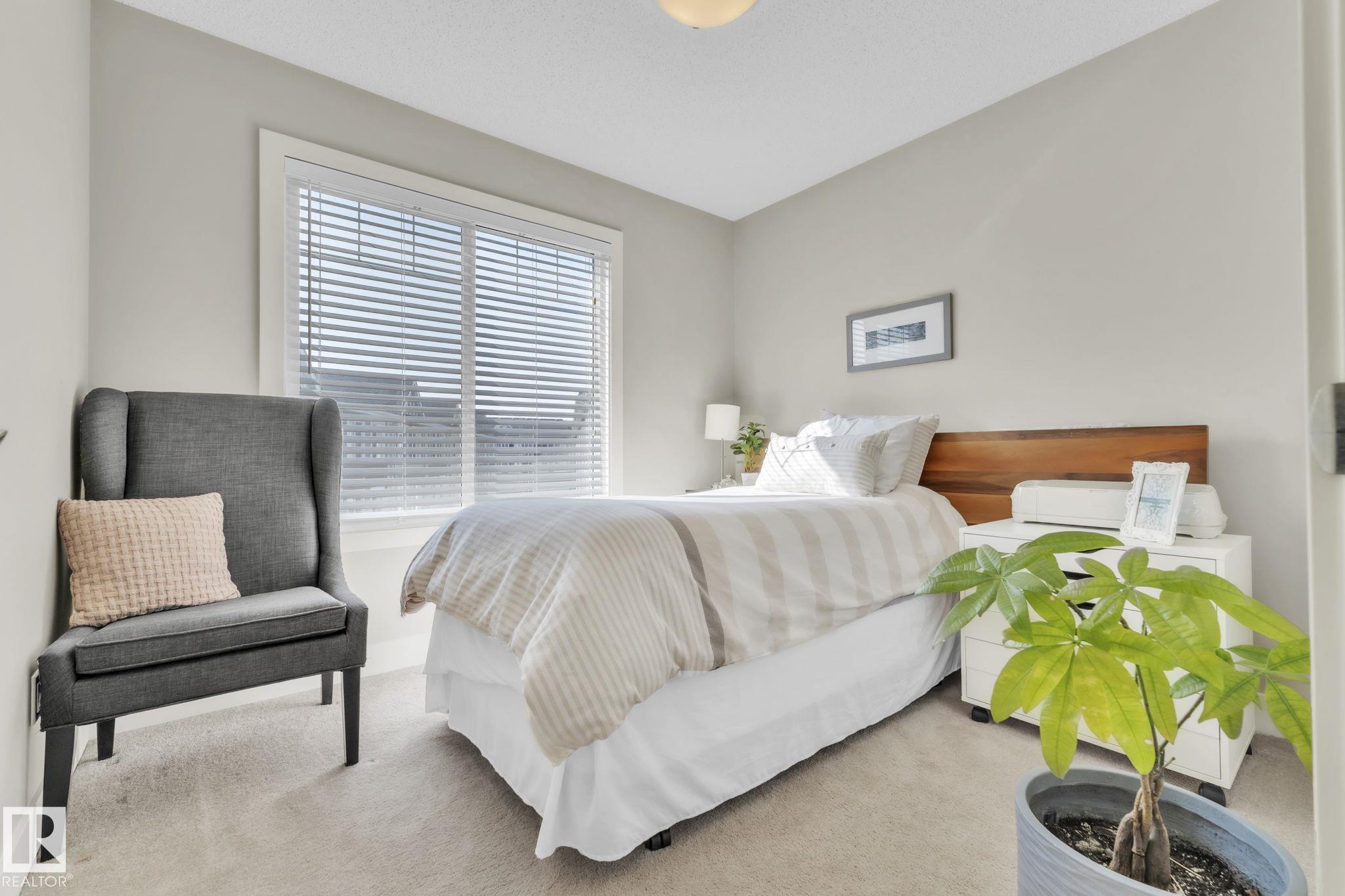 Upgraded To Perfection! You will love the sleek built-in entertainment unit in the living room, on-point makeup desk & built-in dressers in the primary bedroom & a built-in bench with storage just off the garage. Things get cooler with A/C, on-trend color palette with modern finishes & decor throughout. An unbeatable location - lakes, shops, schools & parks in a desirable condo community. Stylish kitchen with quartz counters, plenty of cabinets & an eating bar at the island overlooking the dining area. Mainfloor laundry with a new high end stacked washer/dryer. Upstairs has 3 bedrooms, including a dreamy primary suite with walk-in closet & 4-piece ensuite, plus another full 4-piece bath for the family. A large double garage to keep the car warm in the winter. Outside, relax or entertain on your private patio - perfect for BBQ nights, summer evenings, or a quiet morning coffee. This home combines style, comfort & convenience. The perfect space for families to grow, create memories & enjoy! Don't delay
