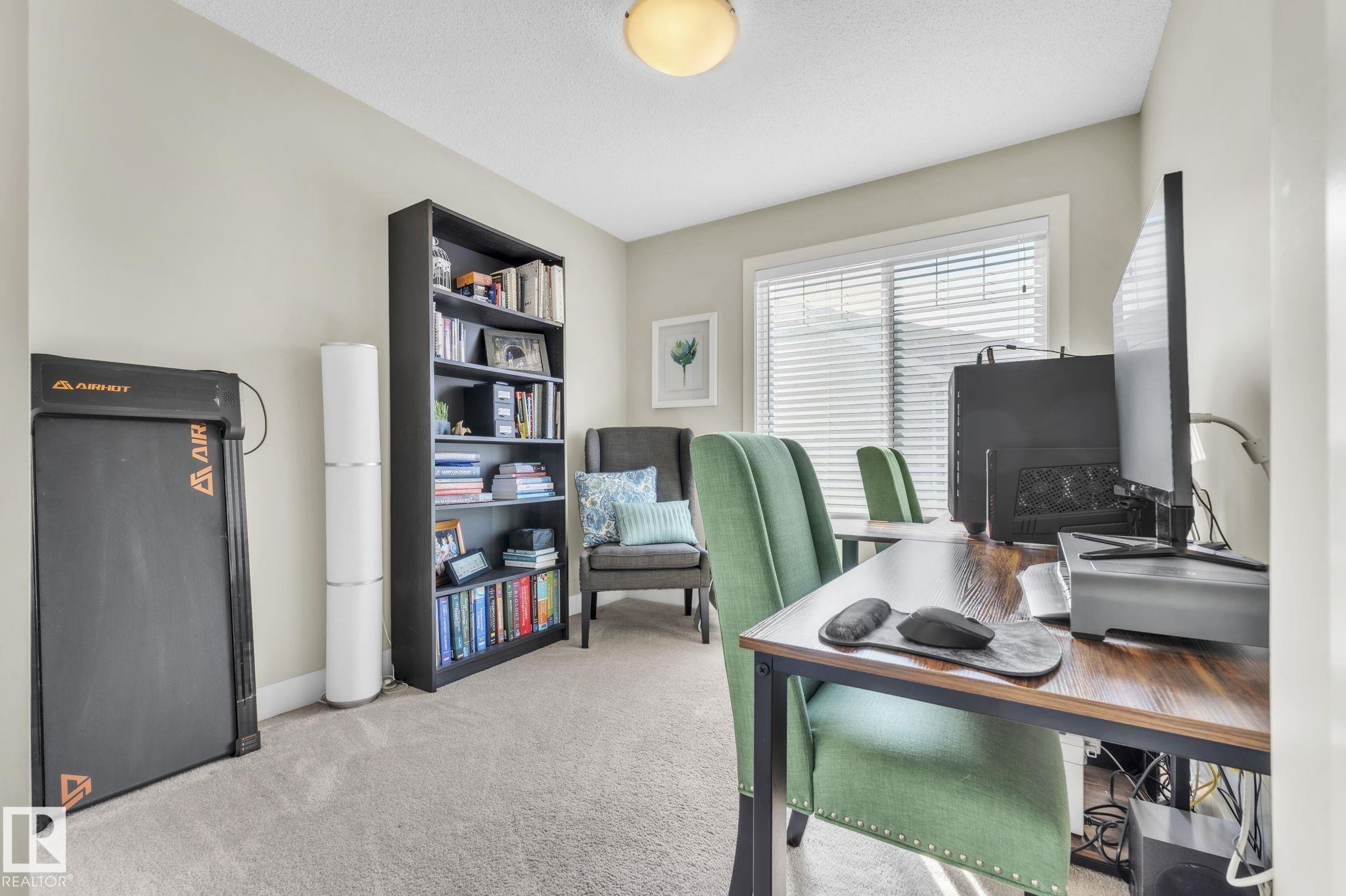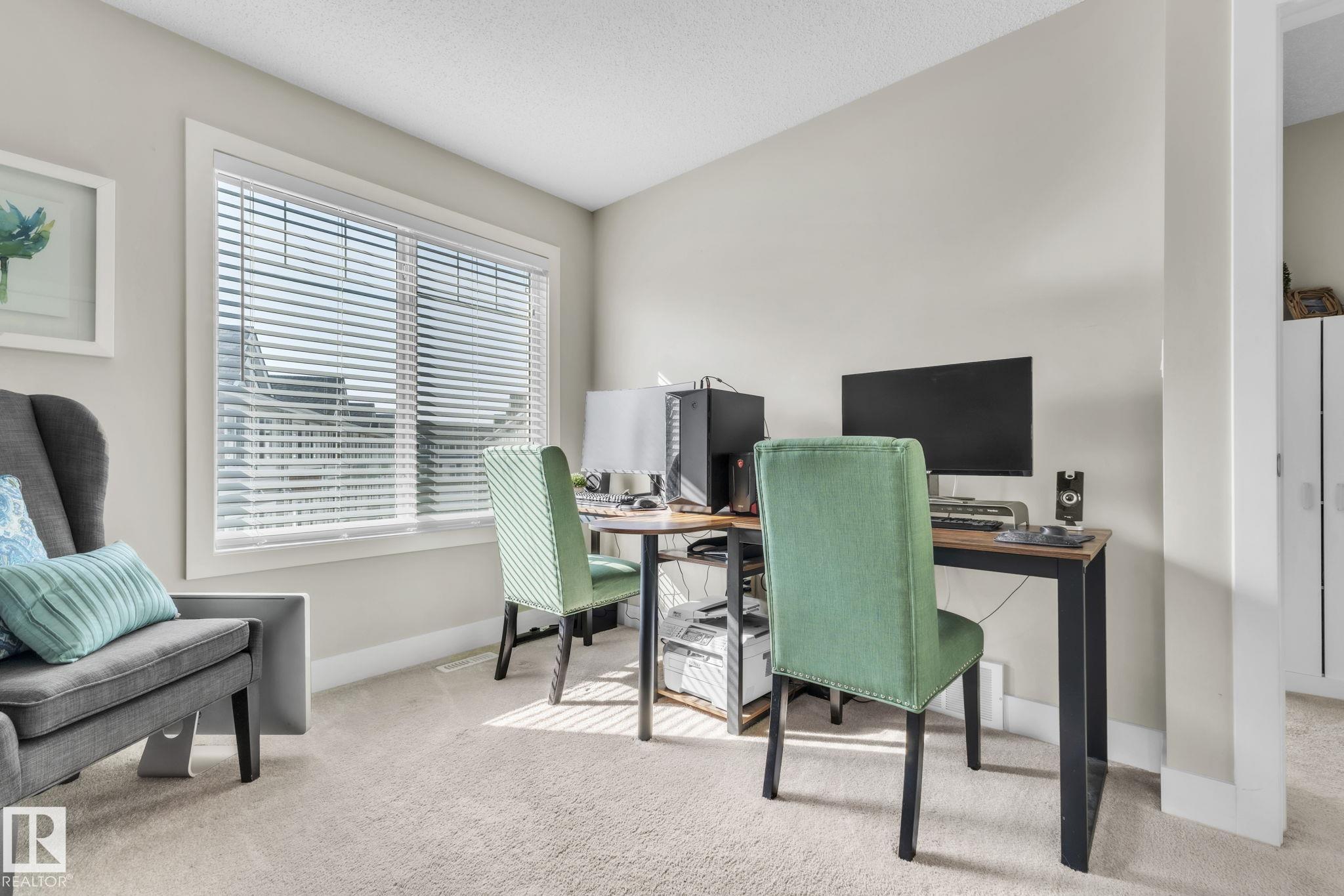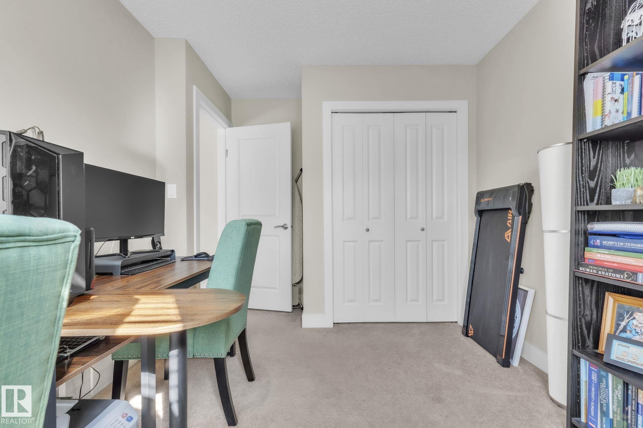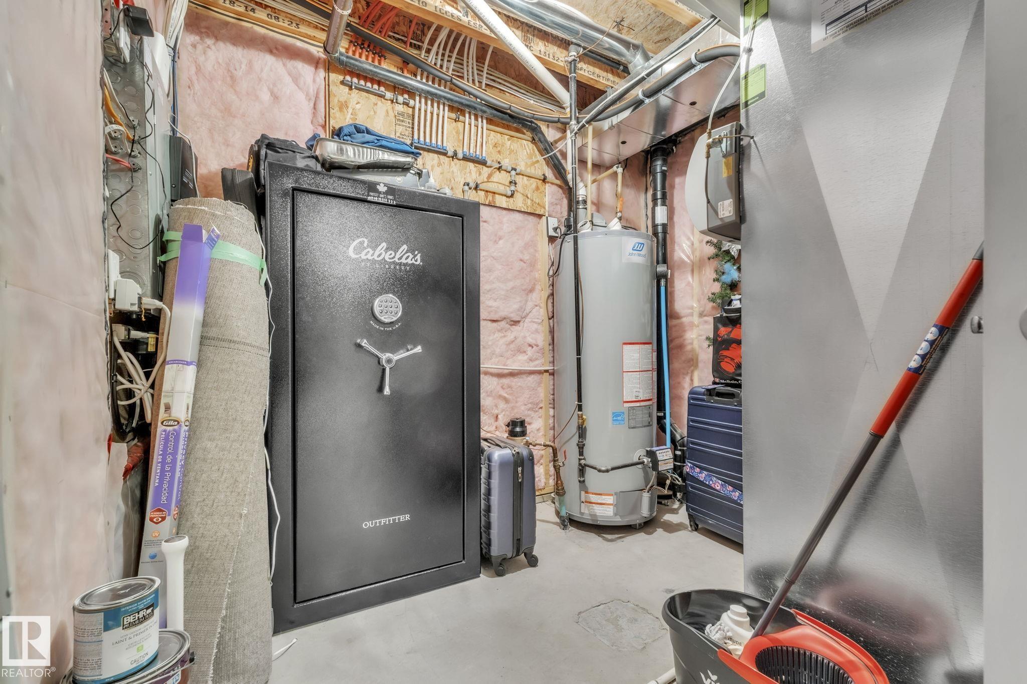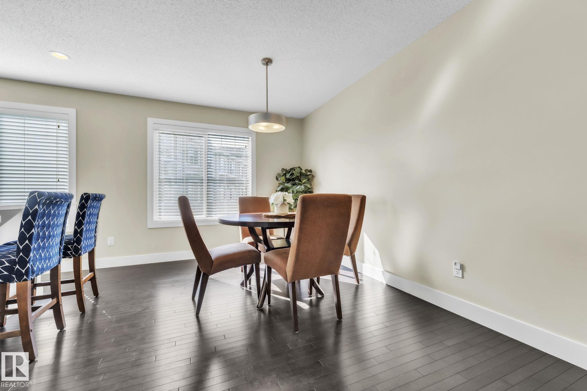 Upgraded To Perfection! You will love the sleek built-in entertainment unit in the living room, on-point makeup desk & built-in dressers in the primary bedroom & a built-in bench with storage just off the garage. Things get cooler with A/C, on-trend color palette with modern finishes & decor throughout. An unbeatable location - lakes, shops, schools & parks in a desirable condo community. Stylish kitchen with quartz counters, plenty of cabinets & an eating bar at the island overlooking the dining area. Mainfloor laundry with a new high end stacked washer/dryer. Upstairs has 3 bedrooms, including a dreamy primary suite with walk-in closet & 4-piece ensuite, plus another full 4-piece bath for the family. A large double garage to keep the car warm in the winter. Outside, relax or entertain on your private patio - perfect for BBQ nights, summer evenings, or a quiet morning coffee. This home combines style, comfort & convenience. The perfect space for families to grow, create memories & enjoy! Don't delay