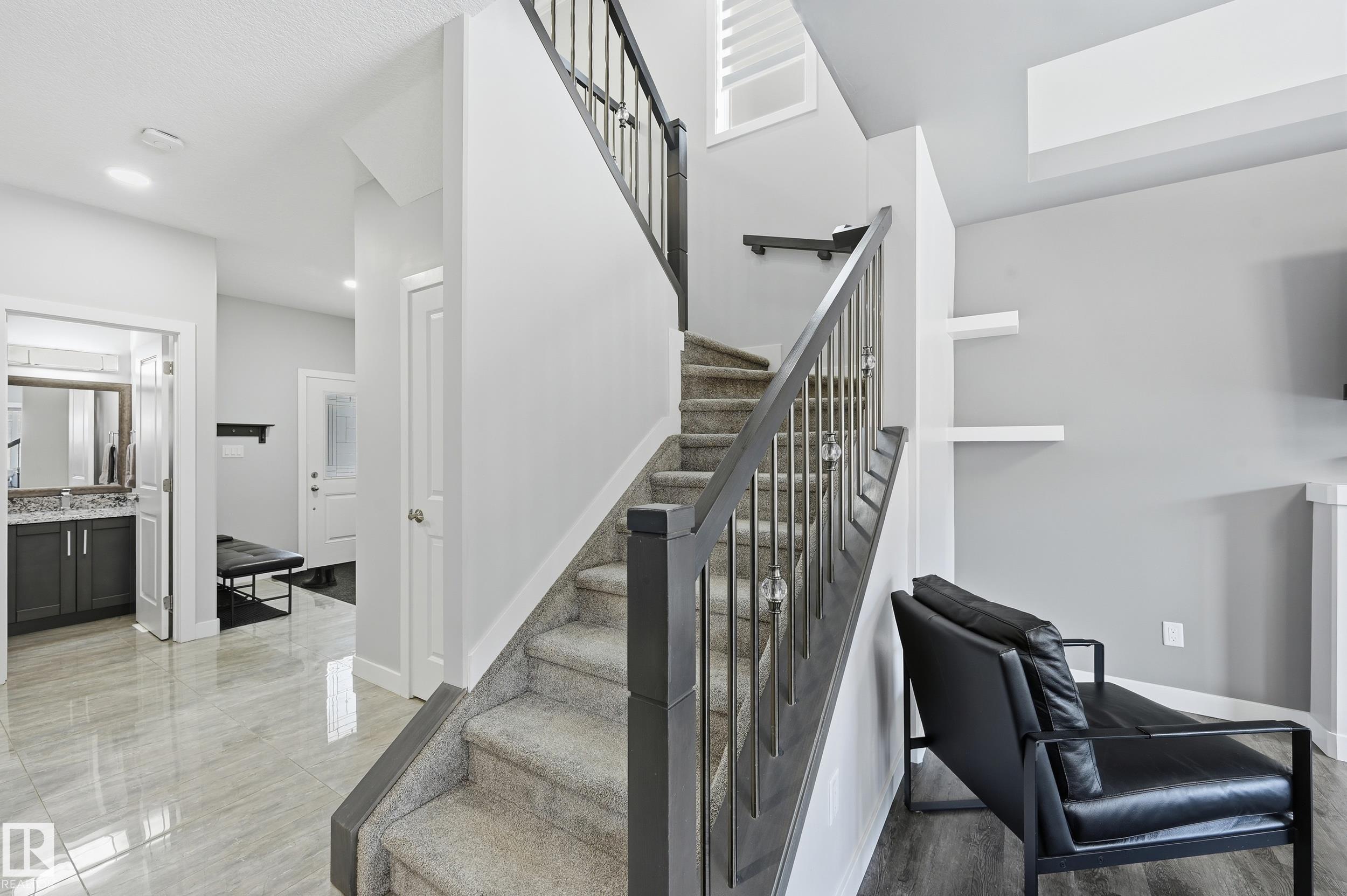 Welcome to this 1,709 SQ/FT Custom-Built Two Storey Half Duplex offering 3 Bedrooms, 2.5 Bathrooms and a thoughtfully designed layout with a SEPARATE ENTRANCE perfect for Growing Families or Future Suite Potential. The Open Concept main floor showcases High End Finishes throughout including an Executive Chef's Kitchen with Stainless Steel Appliances, Upgraded Countertops, Elegant Tiled Flooring, Coffered Ceilings and Detailed Crown Moulding creating a space that is both functional and sophisticated. Upstairs the Spacious Master Bedroom is a true retreat featuring a Large Walk In Closet with Built In Shelving and a Luxurious 4 Piece Ensuite complete with Double Sinks and Premium Finishes. Two additional Well Sized Bedrooms and a Full Bathroom + Laundry Complete the Upper Level. The Large Backyard is ideal for Family Gatherings, Pets and Outdoor Entertaining finished with a Deck perfect for BBQs and Relaxation. A heated Double Attached Garage comfortably fits Two Vehicles and provides Additional Storage.