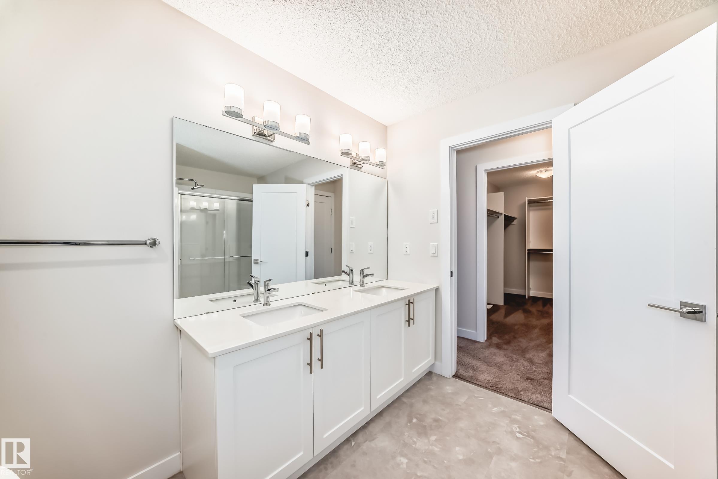 Experience luxury living in this stunning single-family home with a front-attached garage, located in the sought-after community of McConachie. Thoughtfully designed, the main floor features a bedroom and a full 4-piece bathroom--ideal for guests or multi-generational living. A separate dining and living area highlights the home's efficient layout and impressive architectural design, with every inch of space beautifully utilized. Upstairs, the spacious primary bedroom offers a walk-in closet and a spa-inspired 5-piece ensuite. Two additional well-sized bedrooms share a modern 4-piece bathroom, while a generous sitting area provides the perfect space for family entertainment or relaxation. Large windows throughout the home allow for abundant natural light, excellent ventilation, and a bright, fresh ambiance. Perfect for families, t