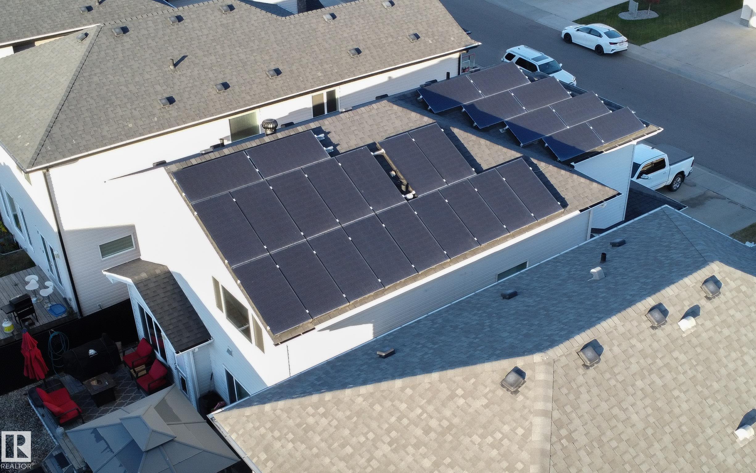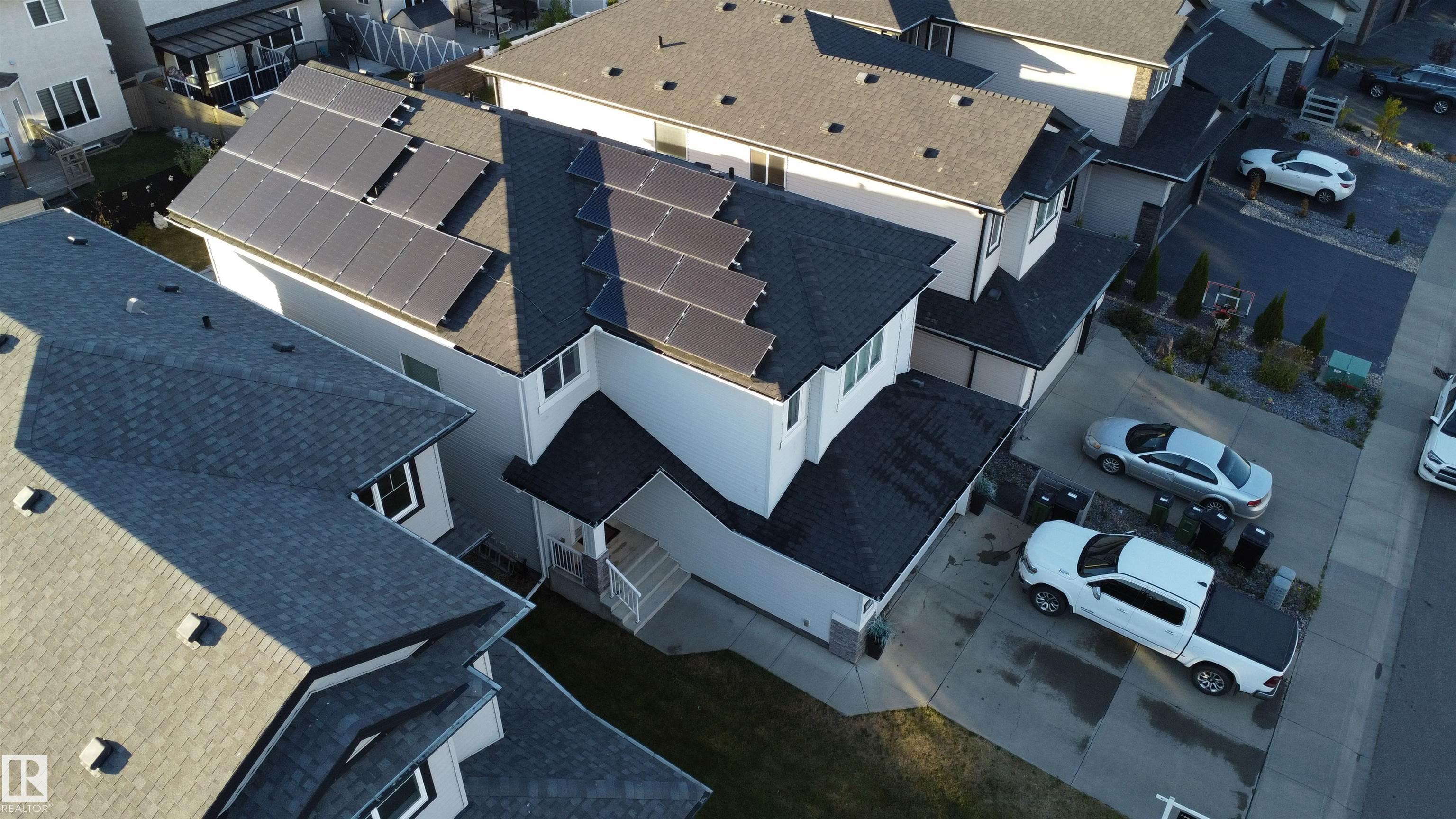 FULLY LOADED HOME, it has ALL the Options for today's busy household. From the moment you step through the front door you will be impressed by 2-Stry Ceiling that opens to the upstairs for that wow factor, and there's huge ceramic tile too. There is fabulous wrought iron railing and bright windows on the staircase that makes this property very inviting. The main floor has a huge open concept living room, kitchen & dining space with new Luxury Plank Flooring. The kitchen has stunning granite and a fabulous island & a walk-in pantry. Upstairs you will find a Huge Bonus Room and three Extra Large bedrooms inclusive of the Owners Bedrm with loads of closet space and fabulous ensuite bathroom with a double shower. Other features in the home include main floor laundry, main floor bathrm with shower, oversized garage with EV charger, built in Christmas lights, and enough Solar Panels to light up all of Edm. but seriously the seller hasn't paid and Electric bill in over 5 years, and charges his Tesla for Free.